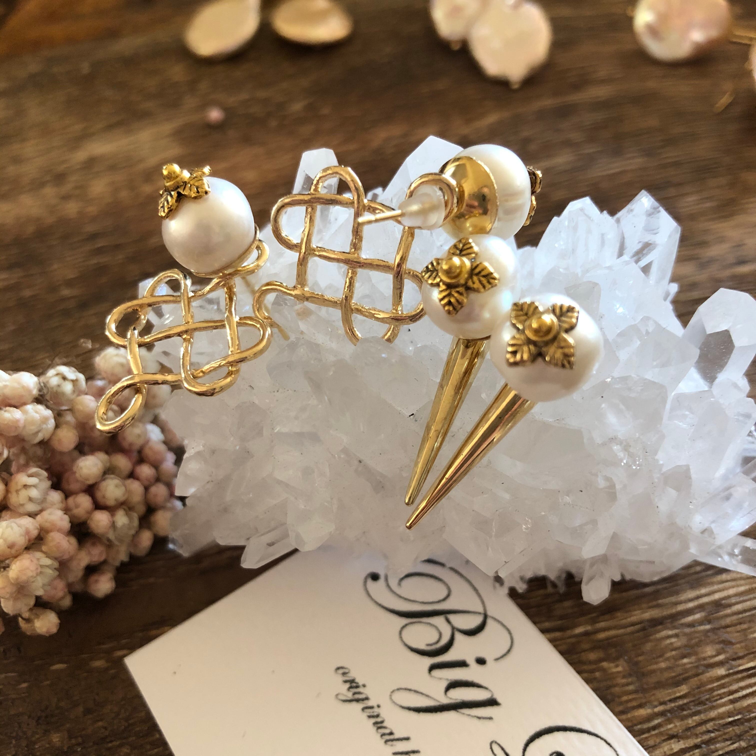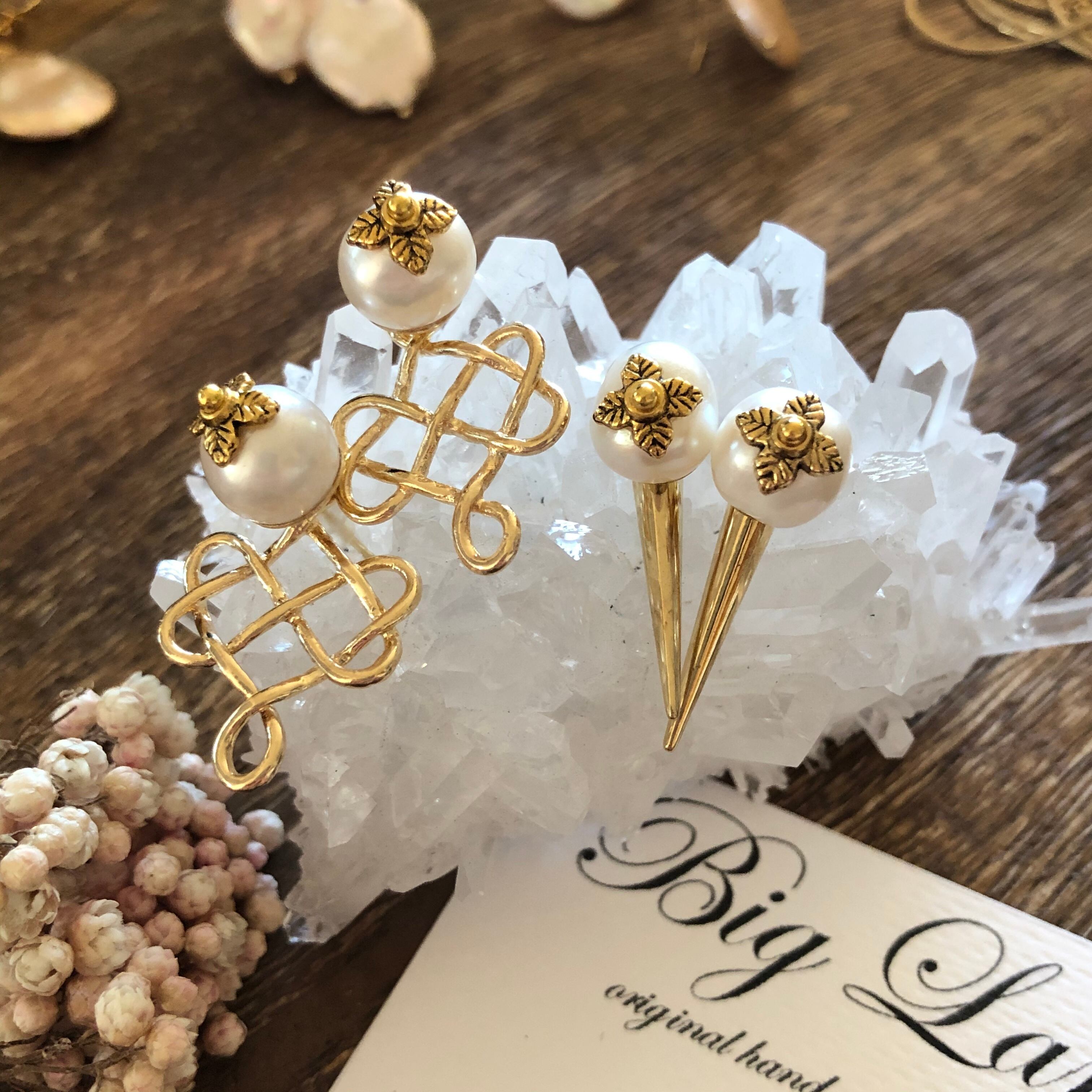一粒パールだけでも大変高見えするデザインでシンプルなお洋服にも合わせれ、時々パンチが欲しい時にはスタッズを組み合わせたりと、その時の気分で使える優秀アイテム✨