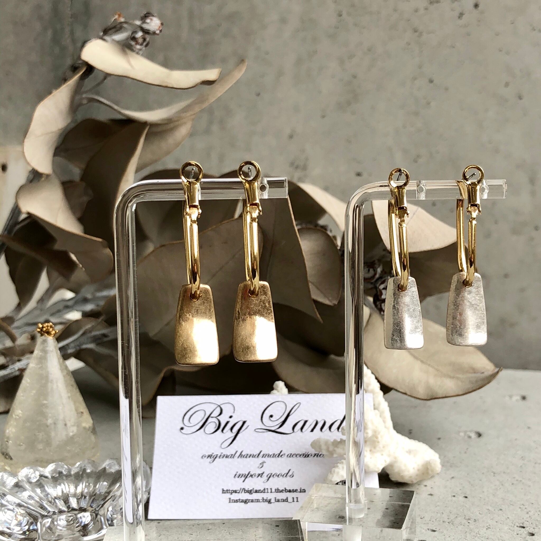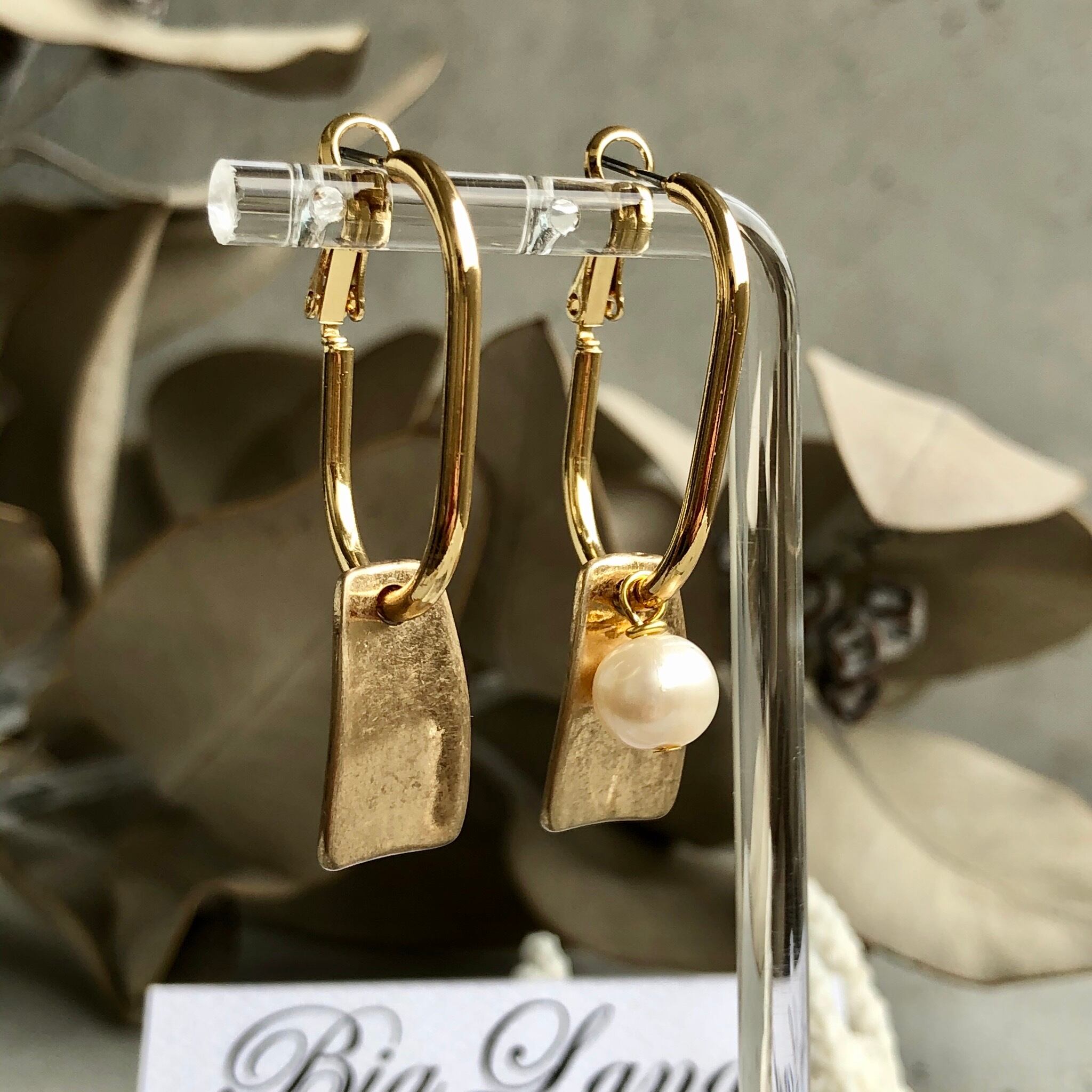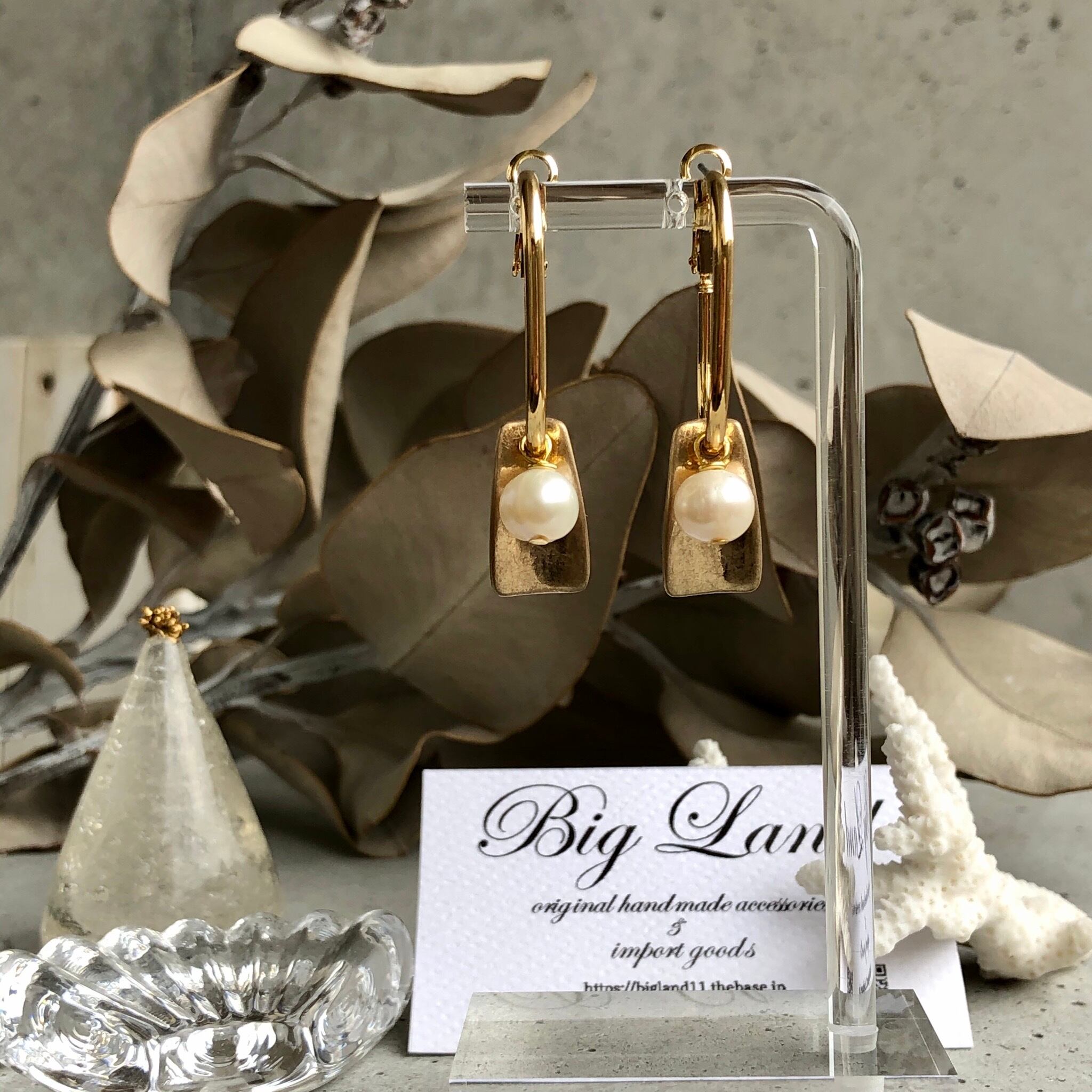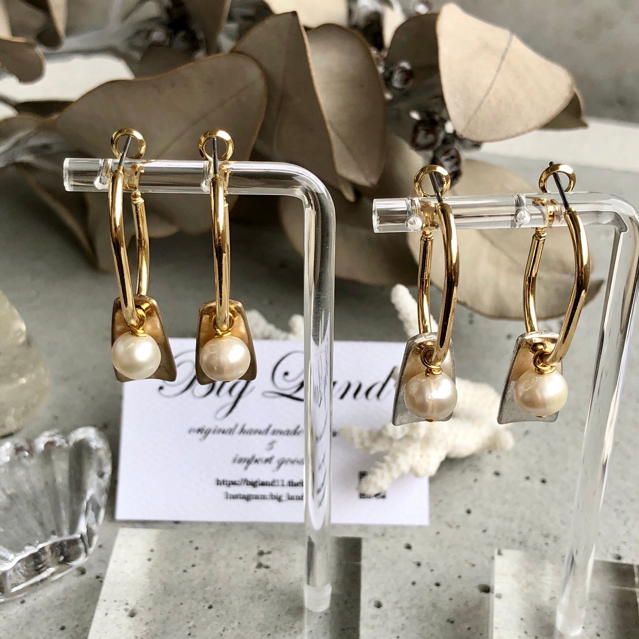 ゴールドとホワイトパールはどんなお洋服にも合わせ易く楕円の大振りフープとの組み合わせが大人っぽくてオシャレ度が高いデザインです✨