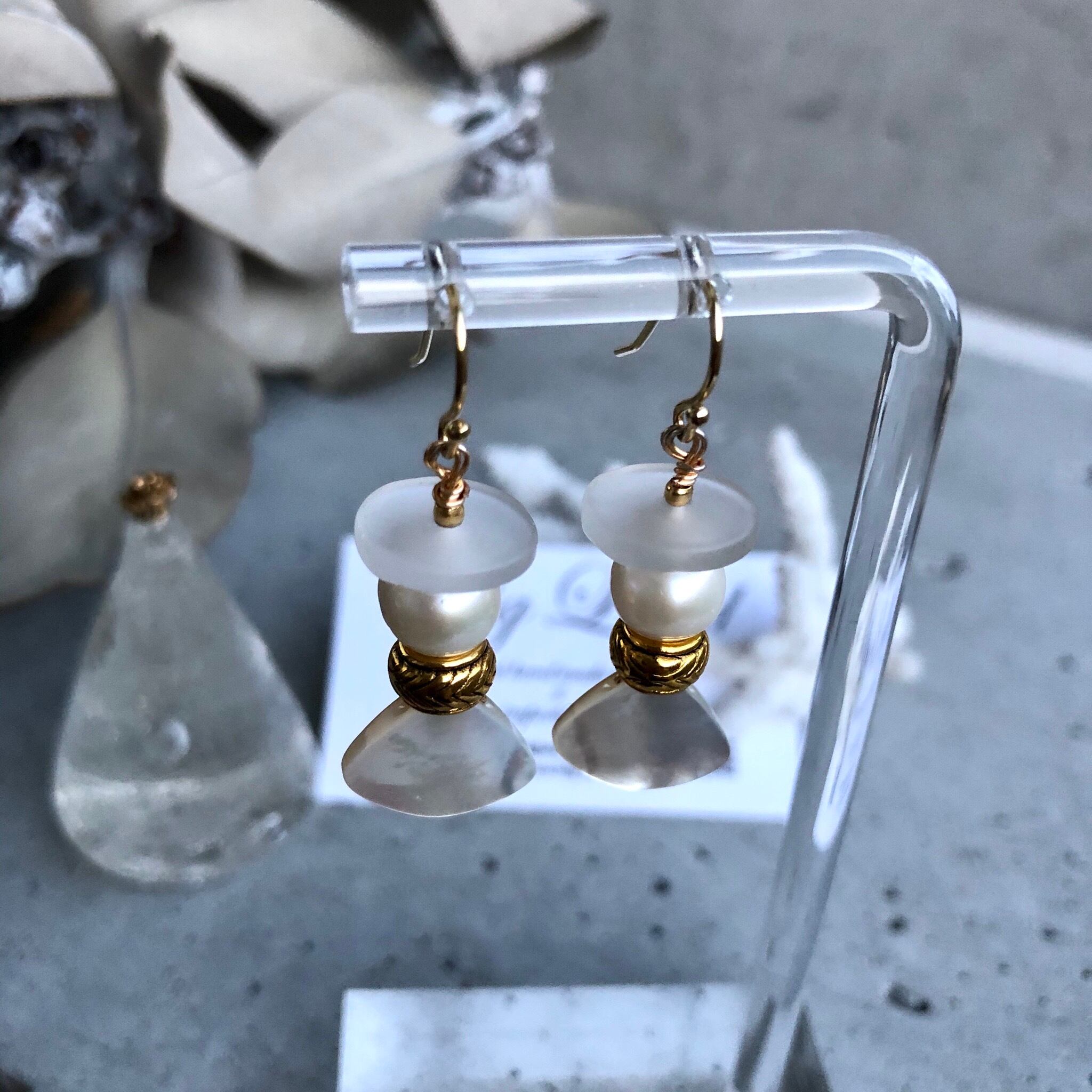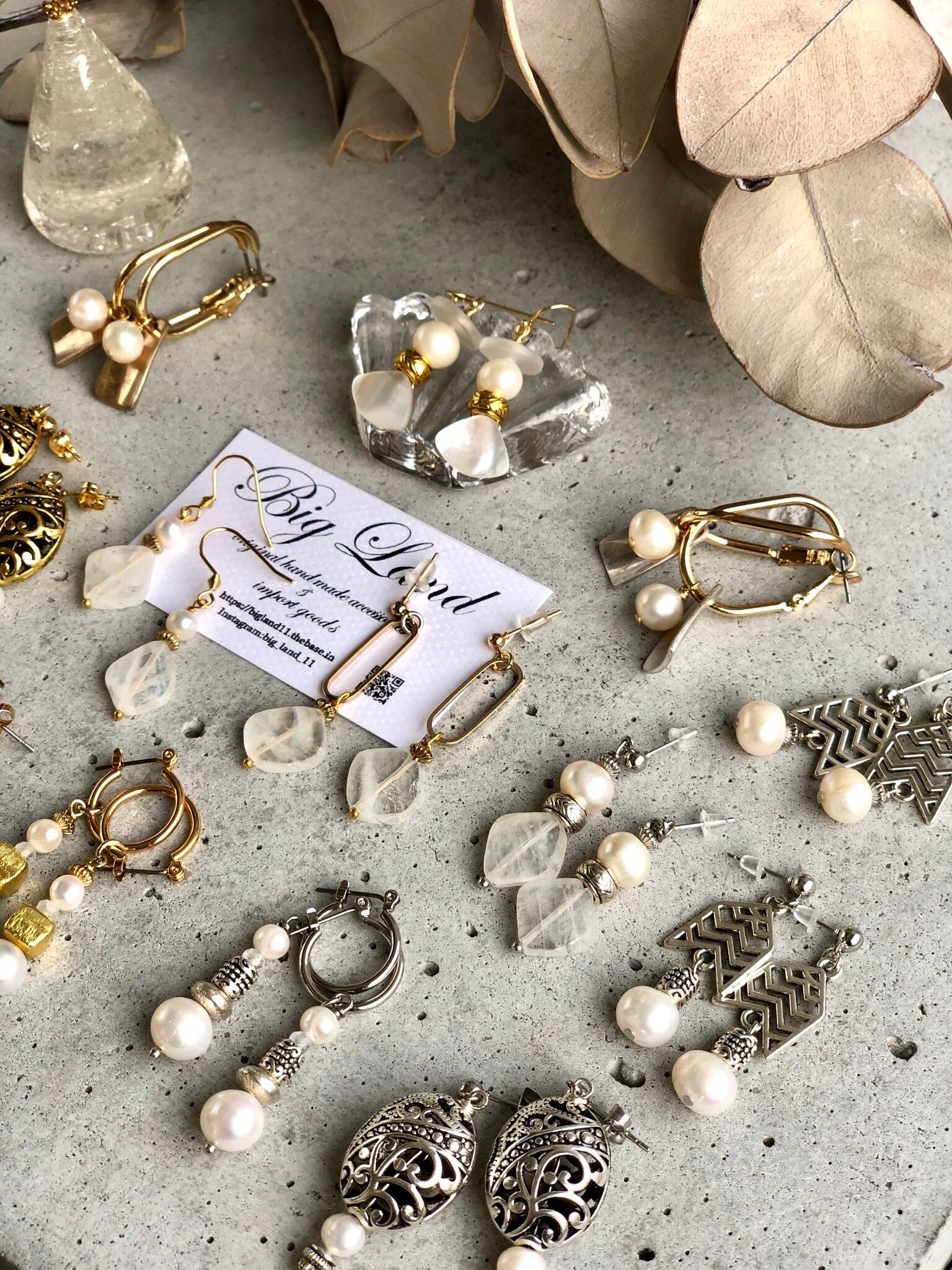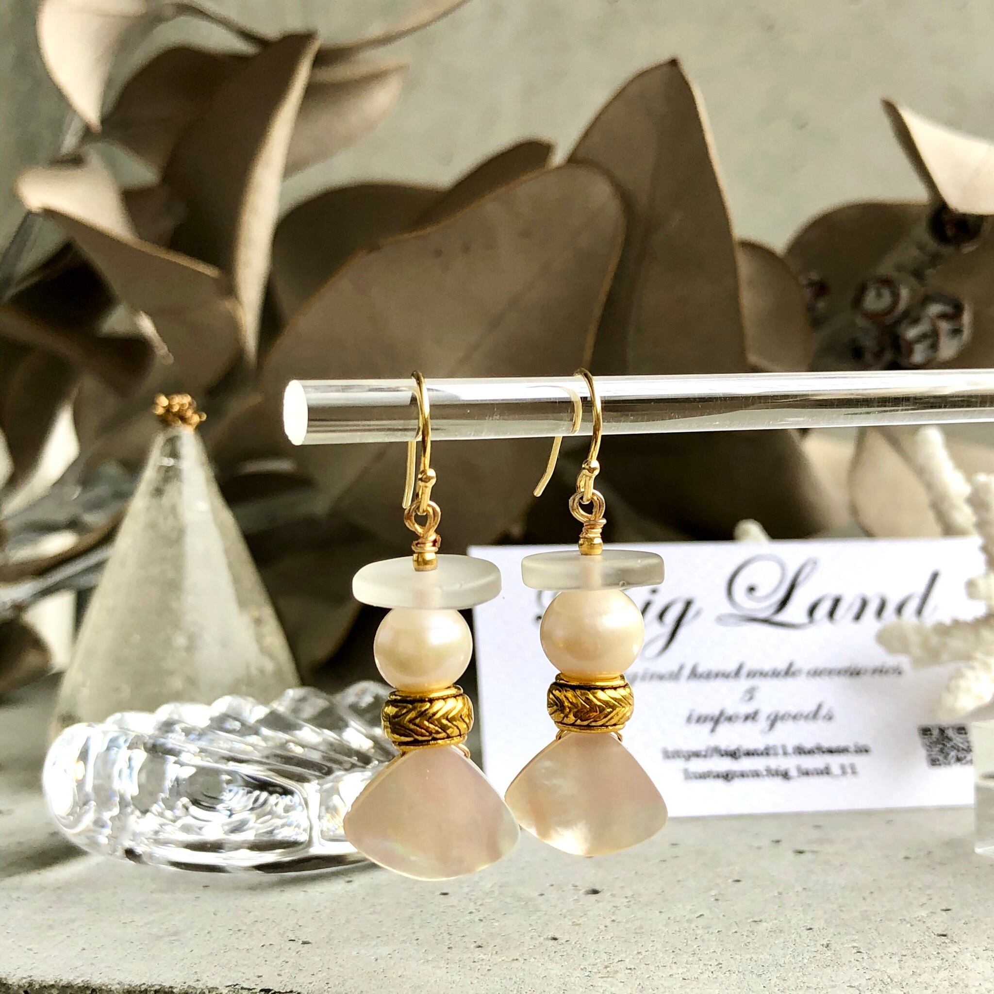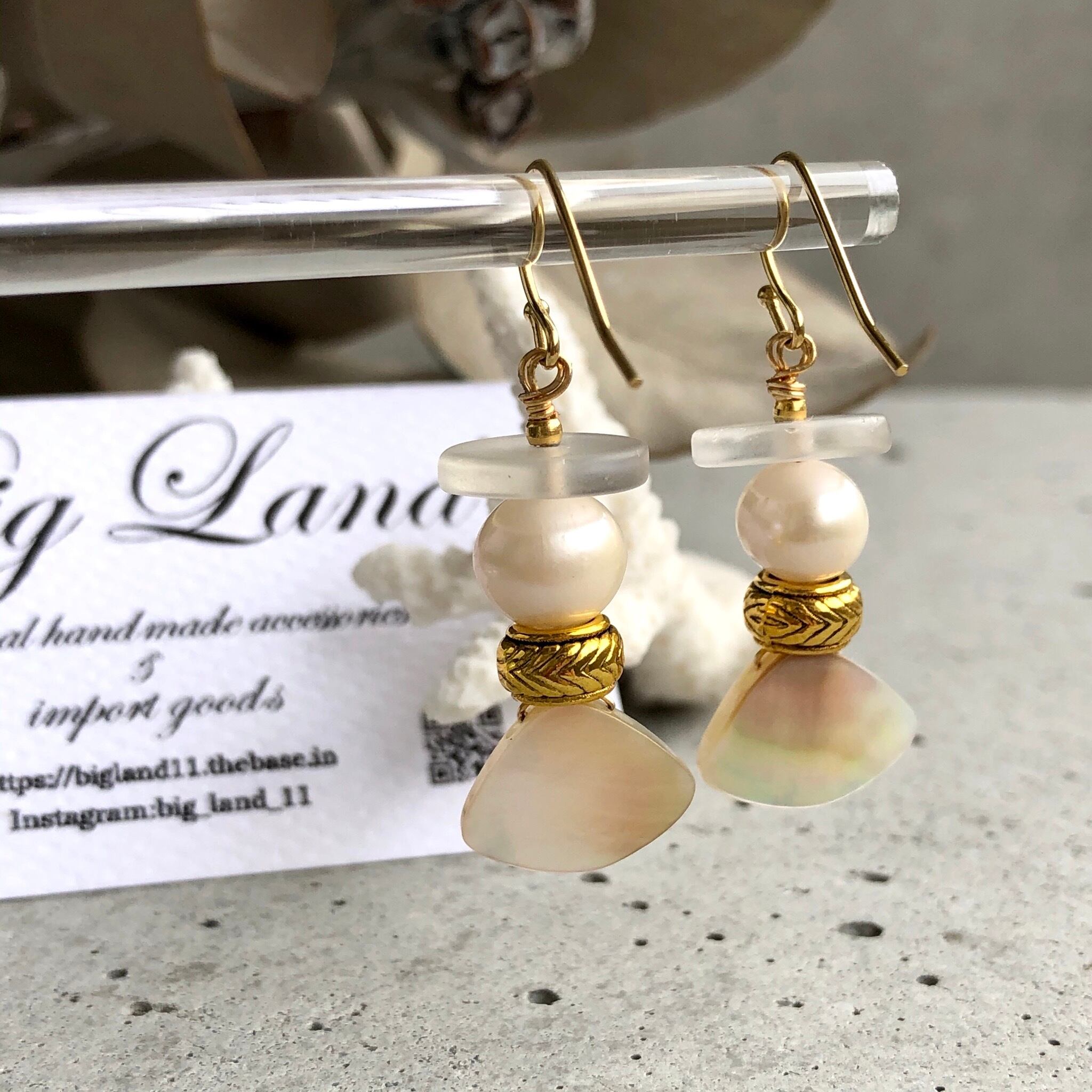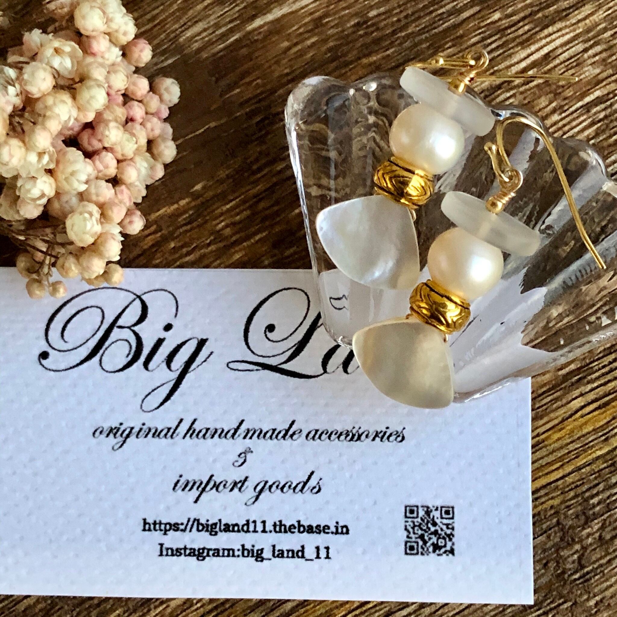 パール.シェル.マット水晶.アンティークゴールドと組み合わせカジュアルにも綺麗めにもお使いできる雰囲気に仕上げてみました✨