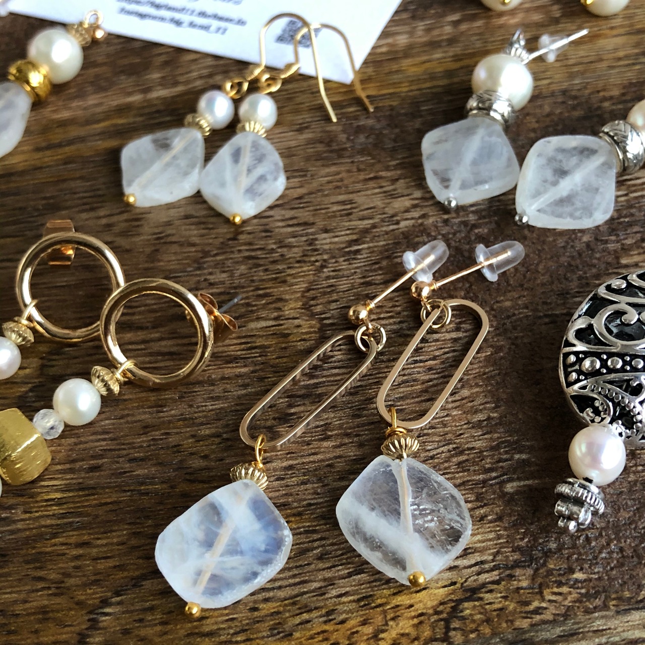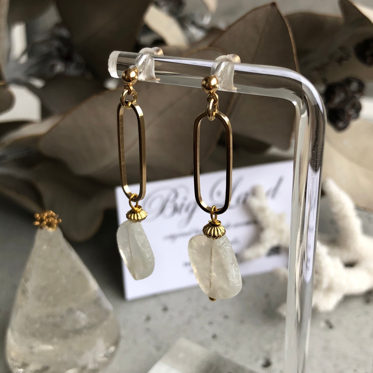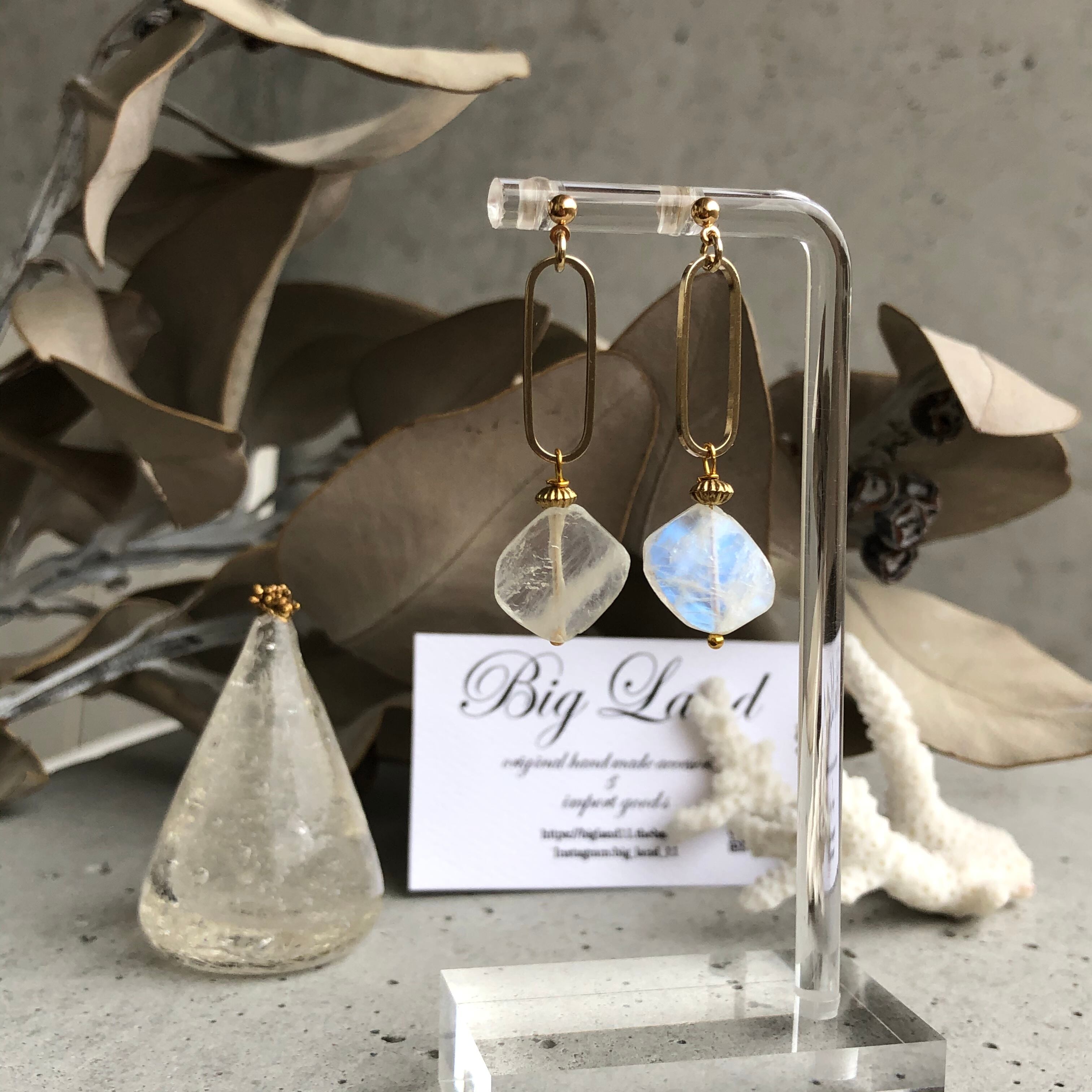 ロイヤルブルームーンストーンの原石スライスを夏らしい揺れるピアスに仕上げました✨