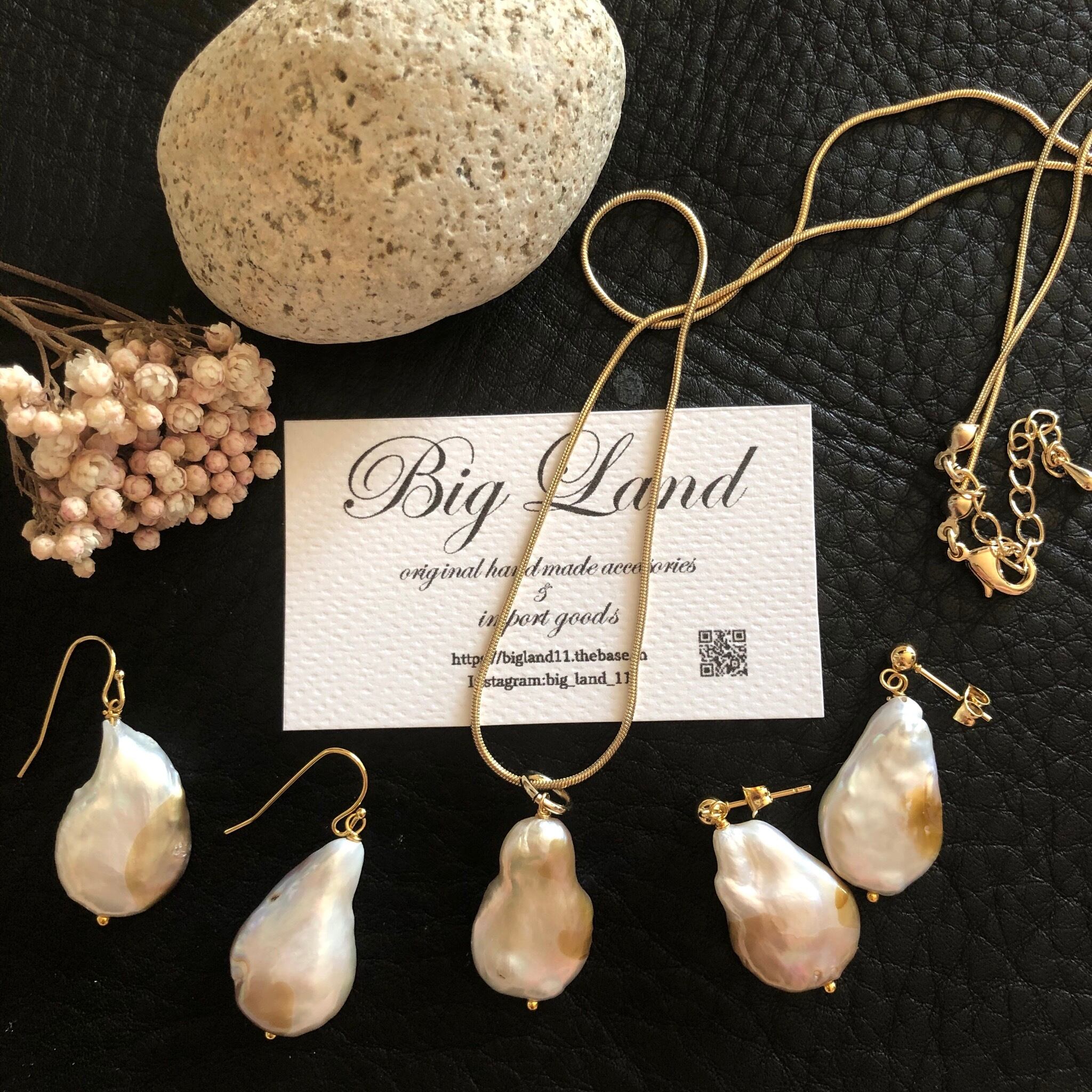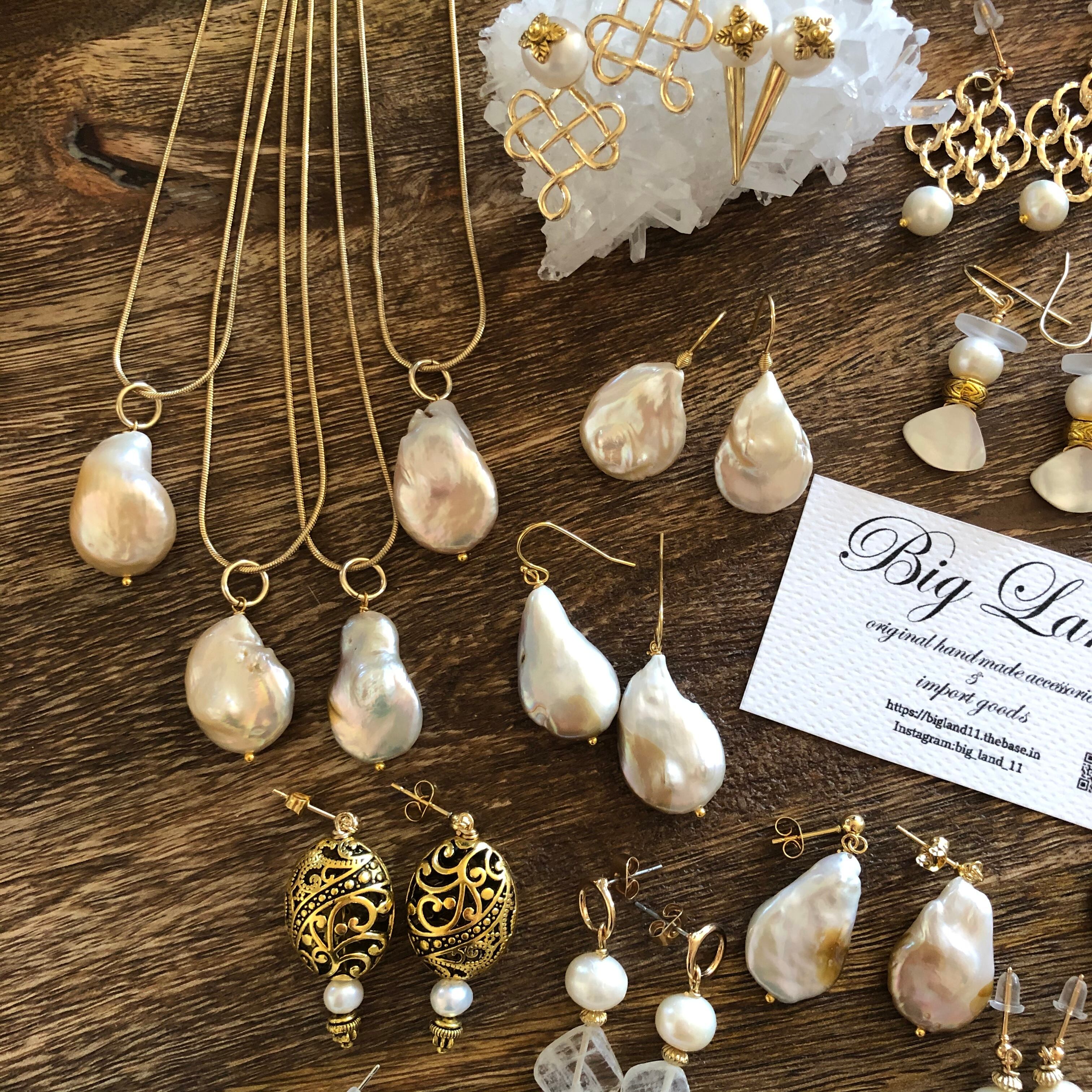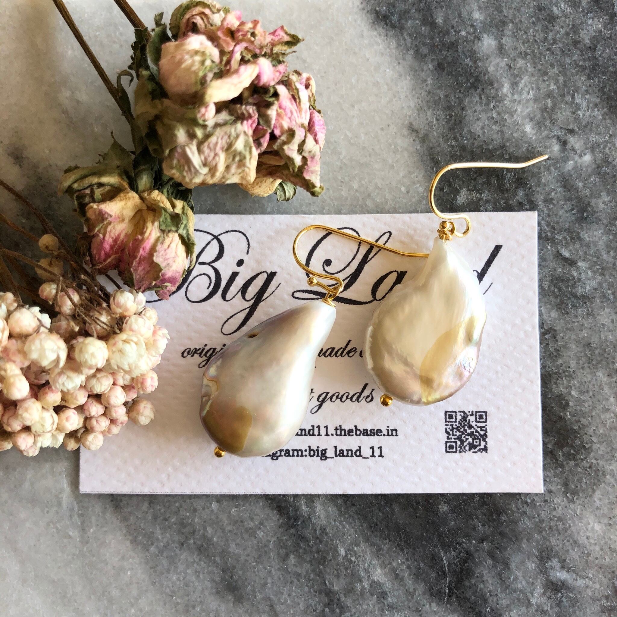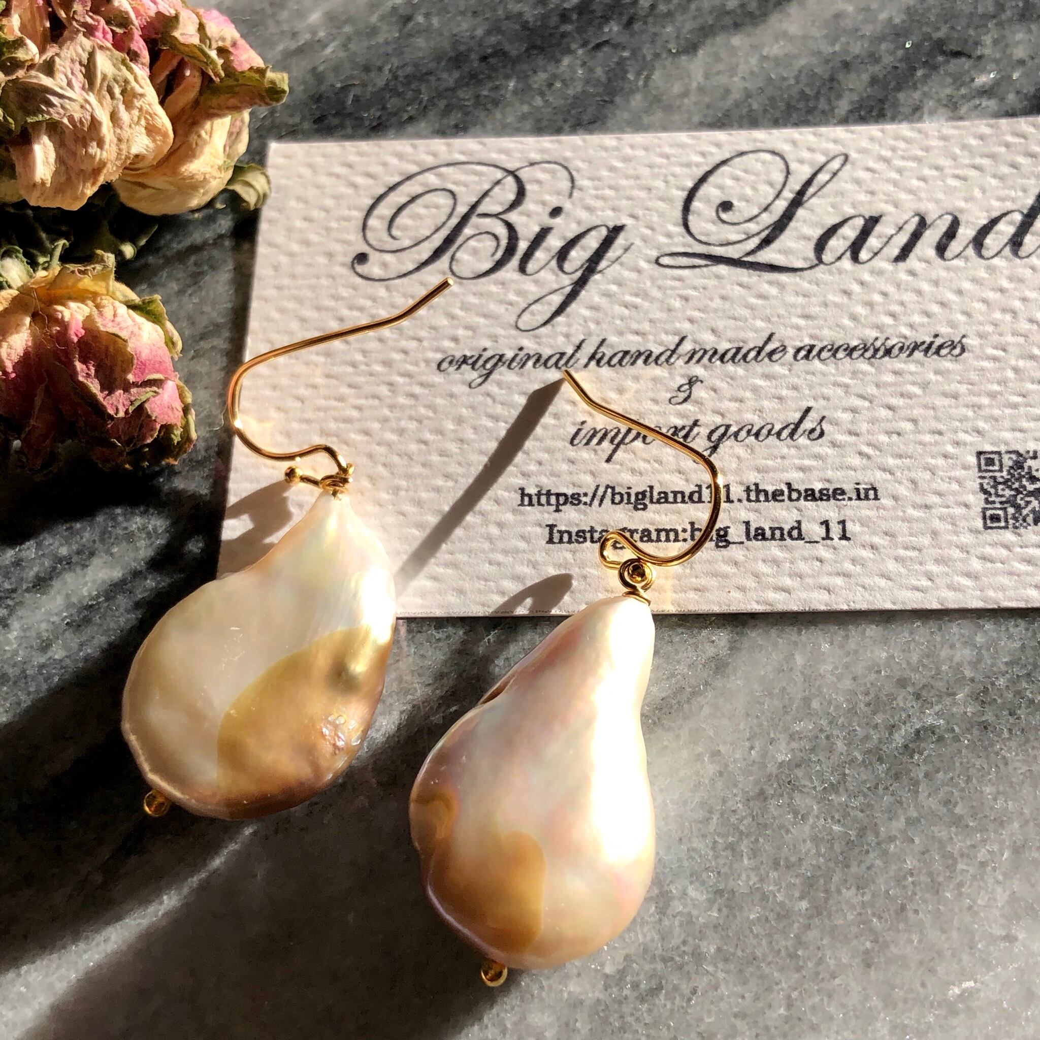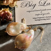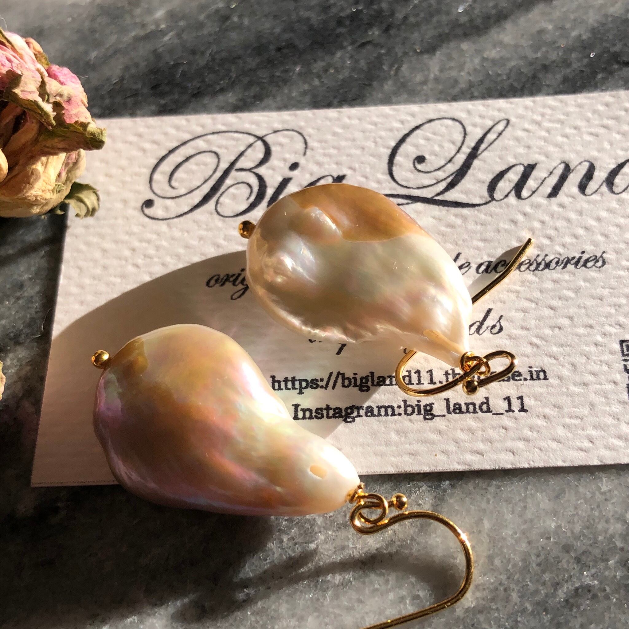 照り艶が大変美しい一点もの天然バロックパールピアス✨