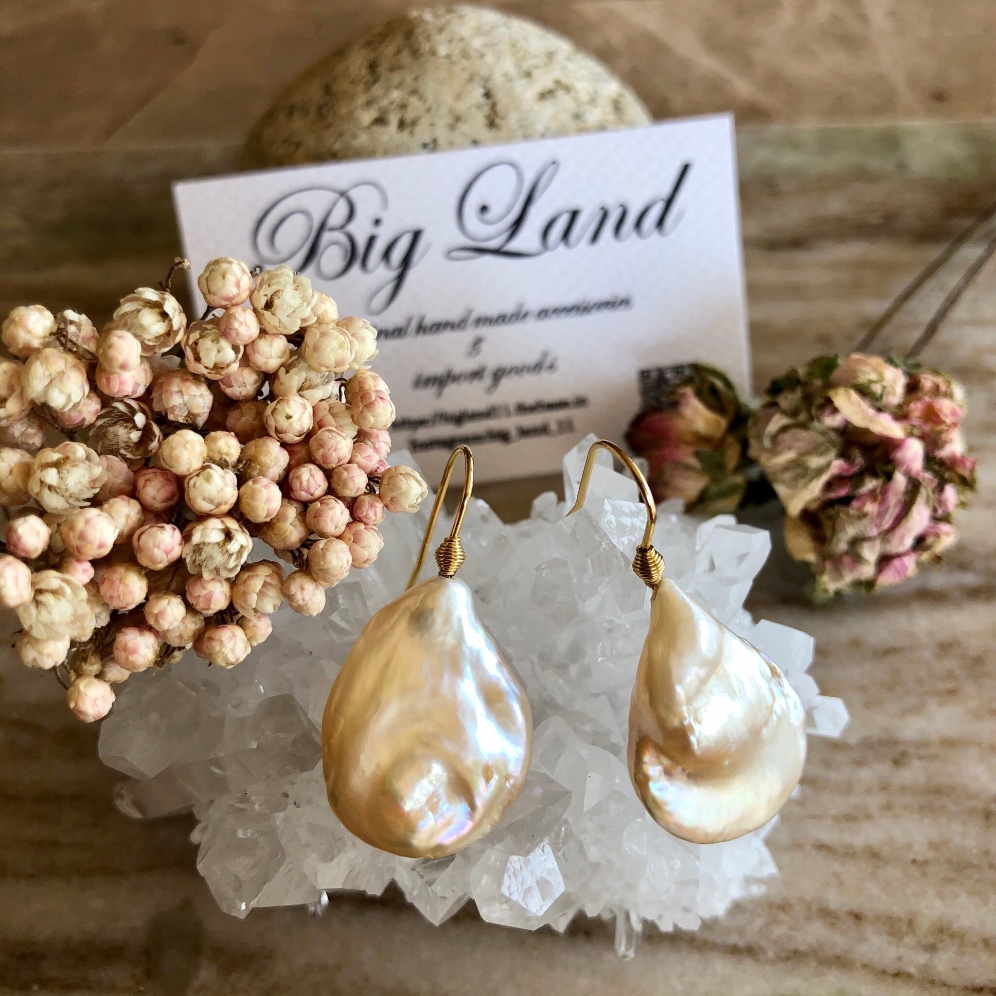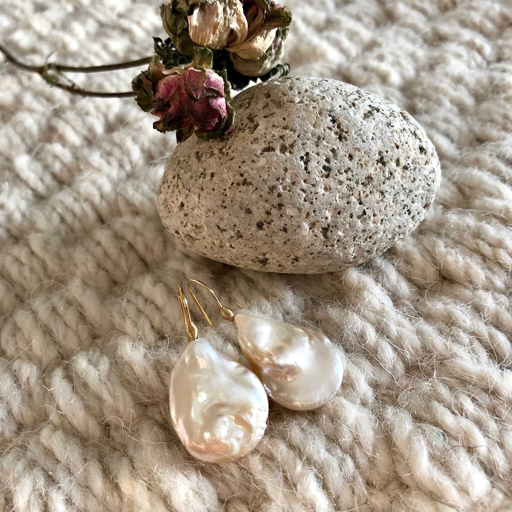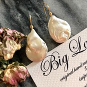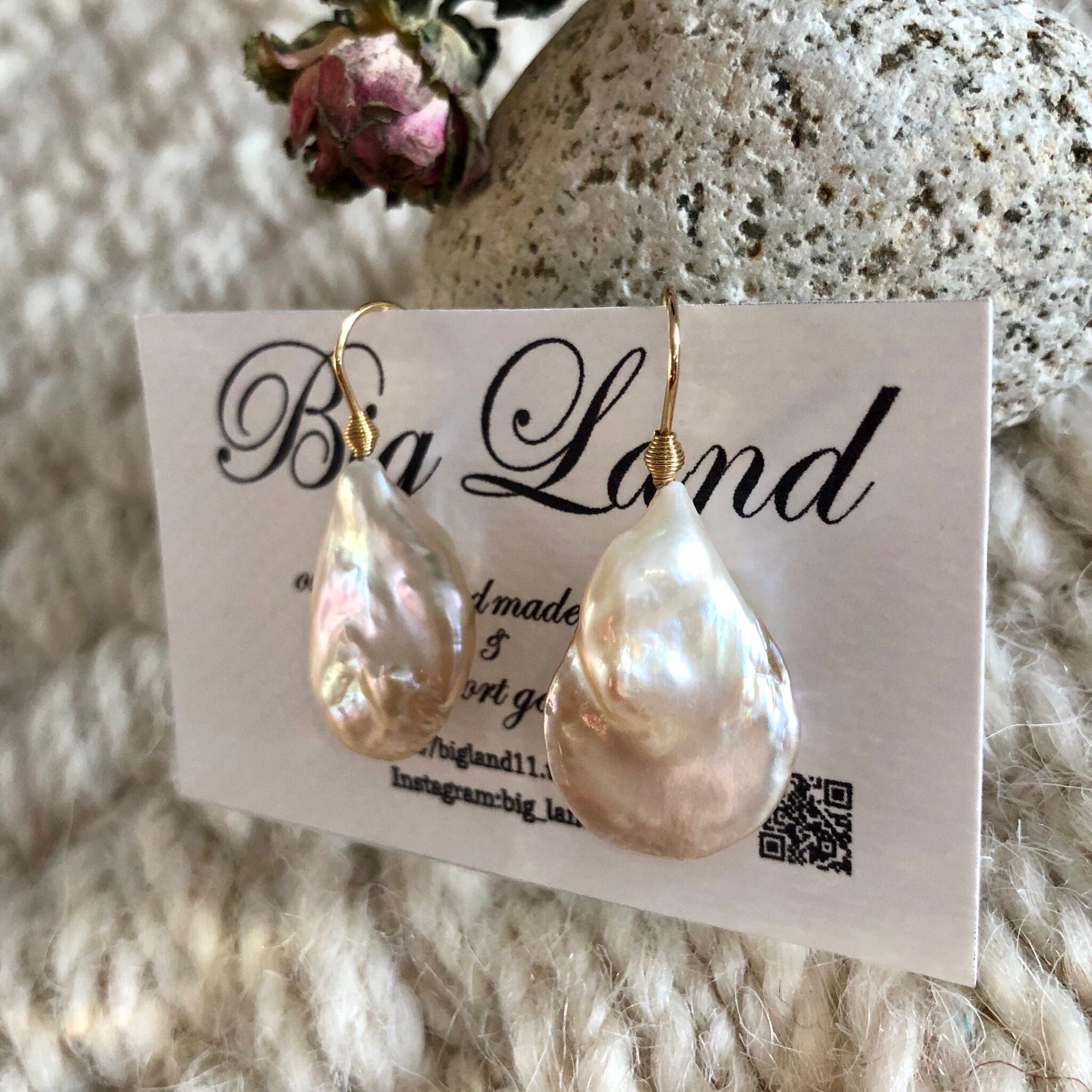 照り艶が大変美しい一点もの天然バロックパールピアス✨