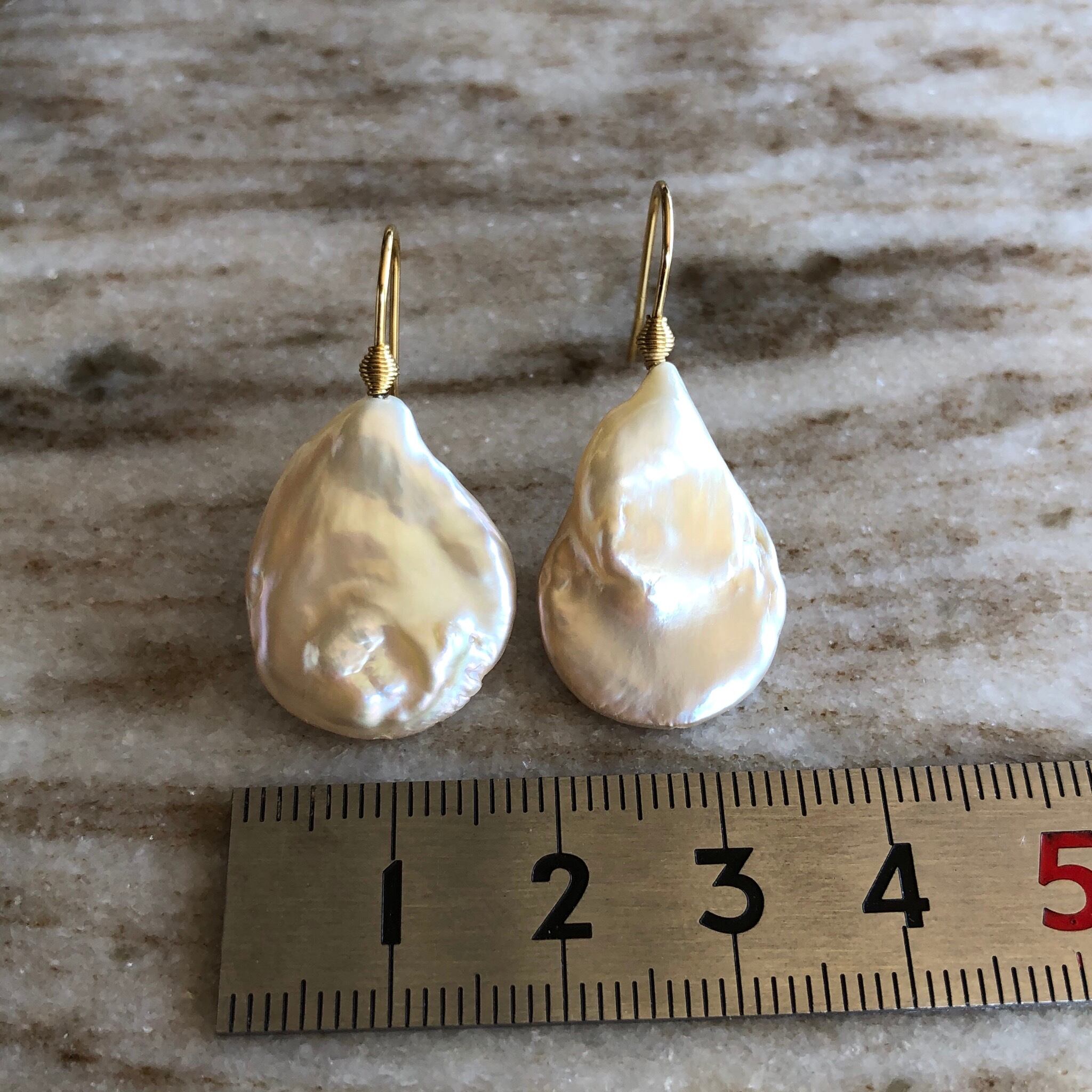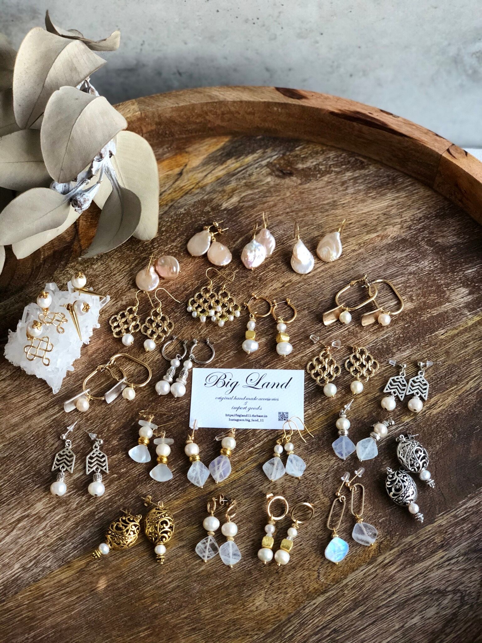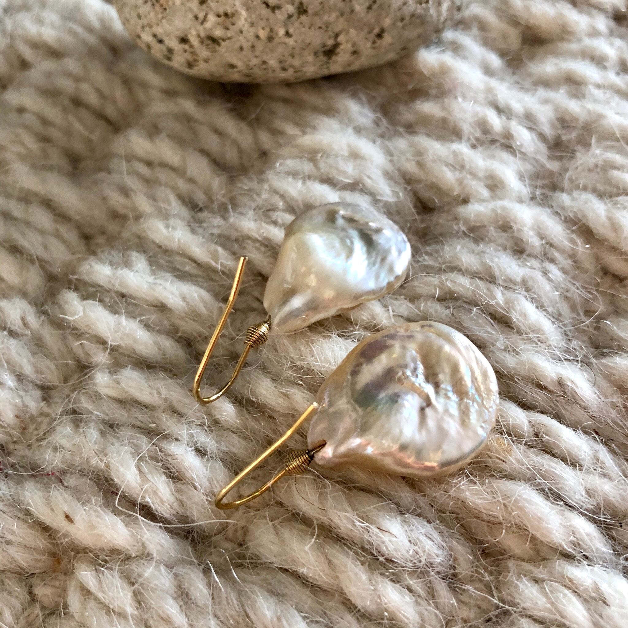 照り艶が大変美しい一点もの天然バロックパールピアス✨
