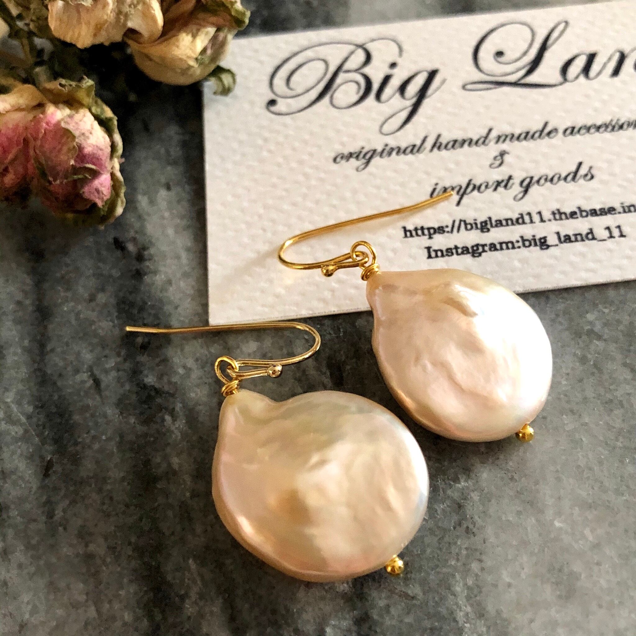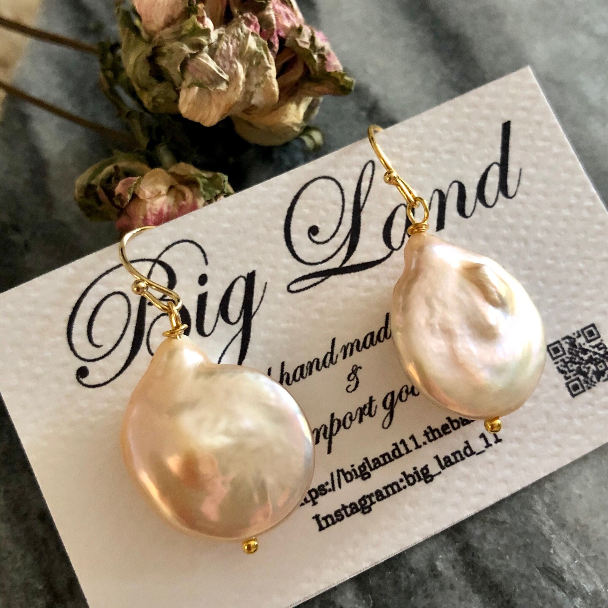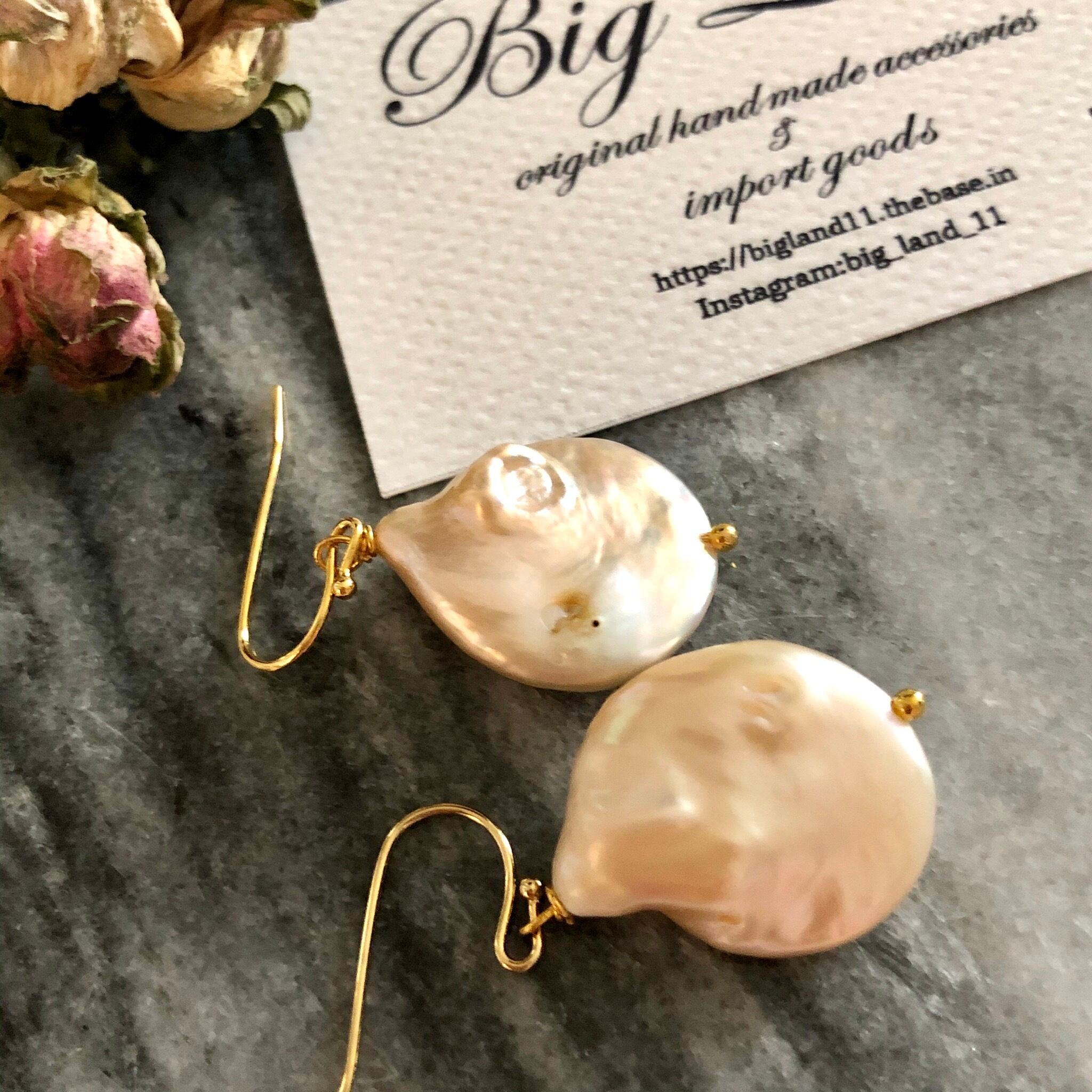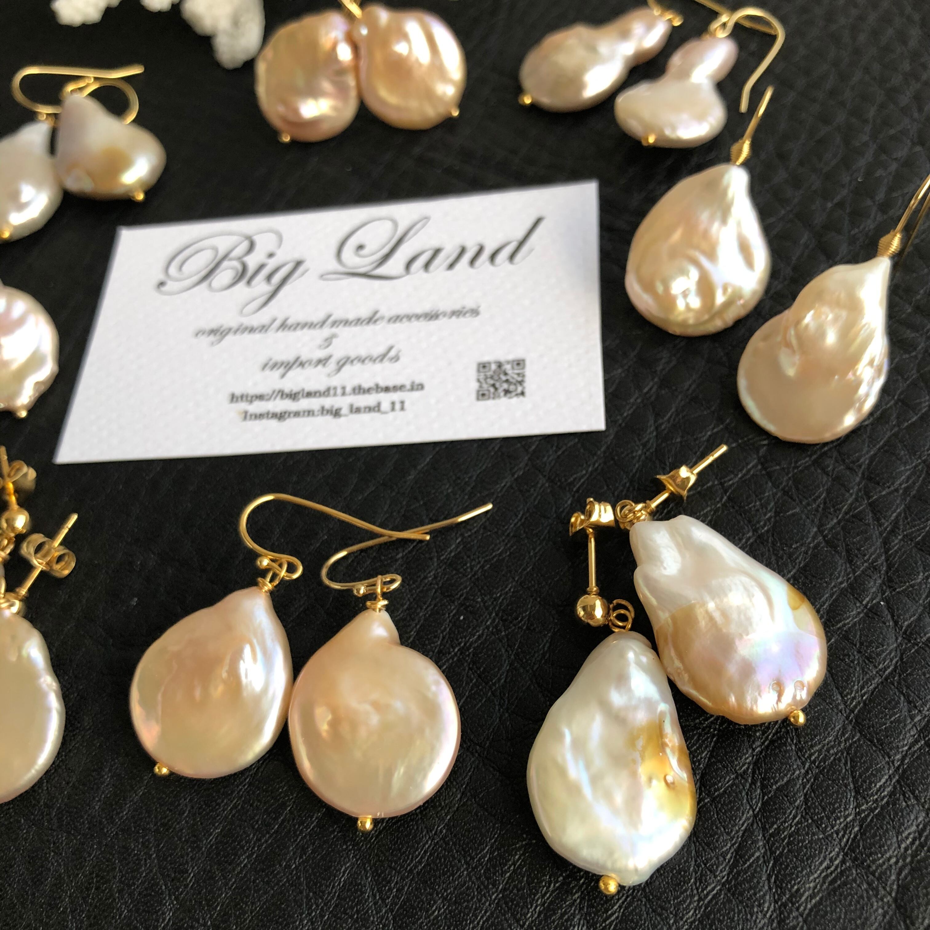 照り艶が大変美しい一点もの天然バロックパールピアス✨