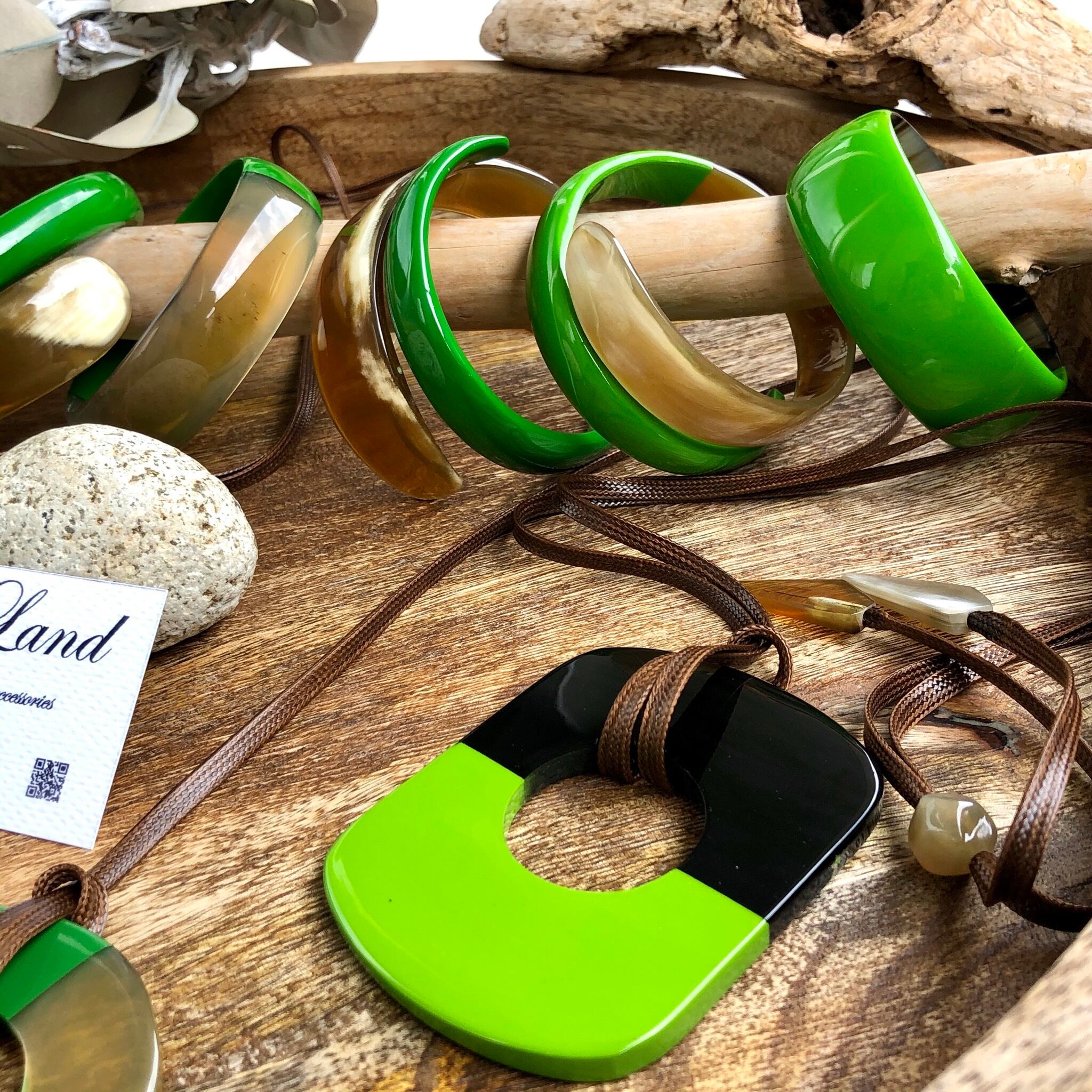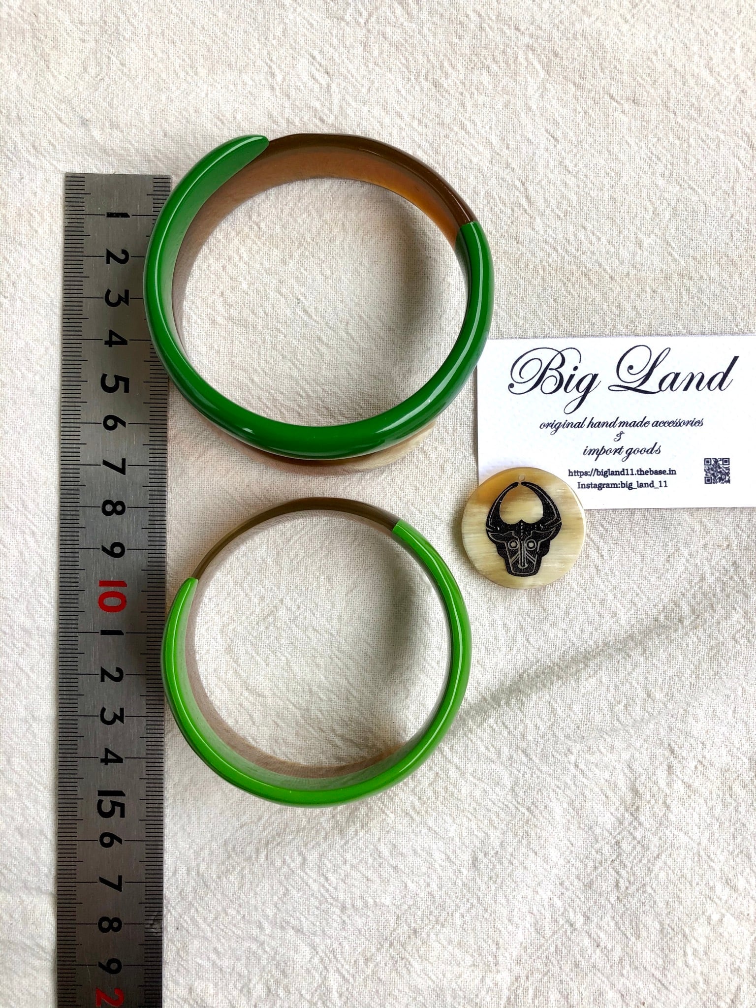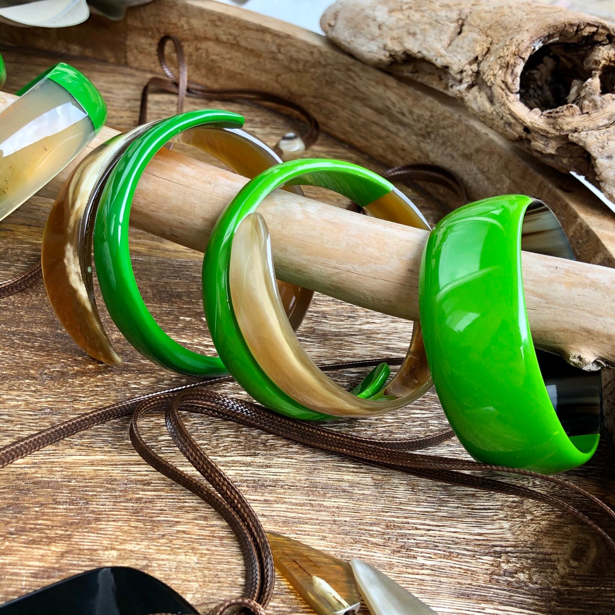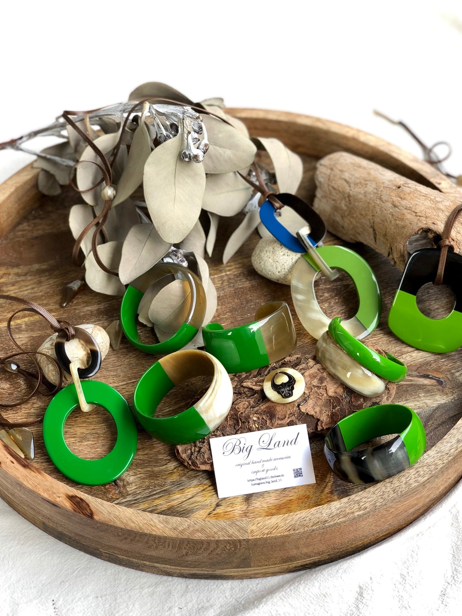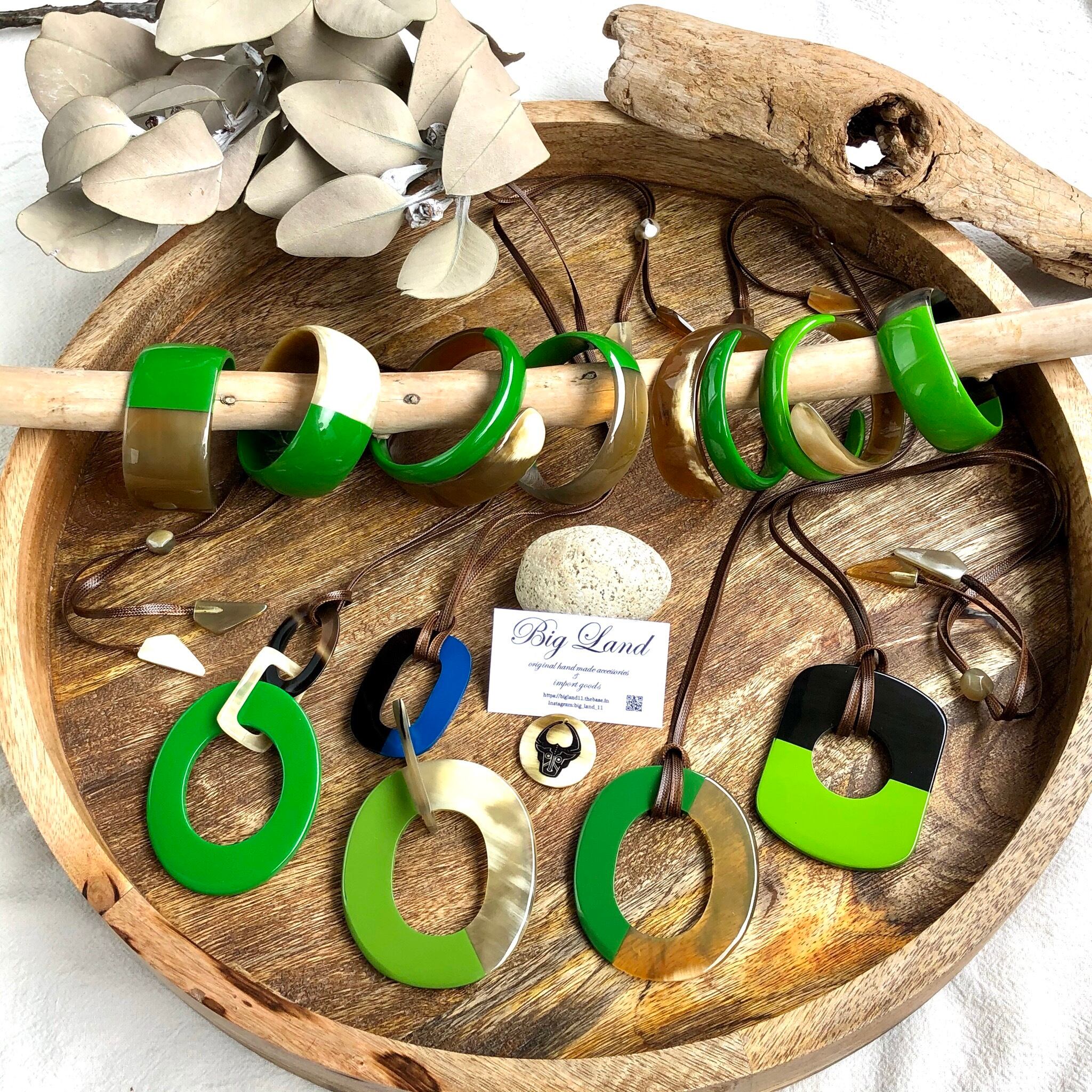 天然の水牛角に今年のトレンドカラー、グリーンの漆塗で仕上げた高見え旬アクセサリー‼️