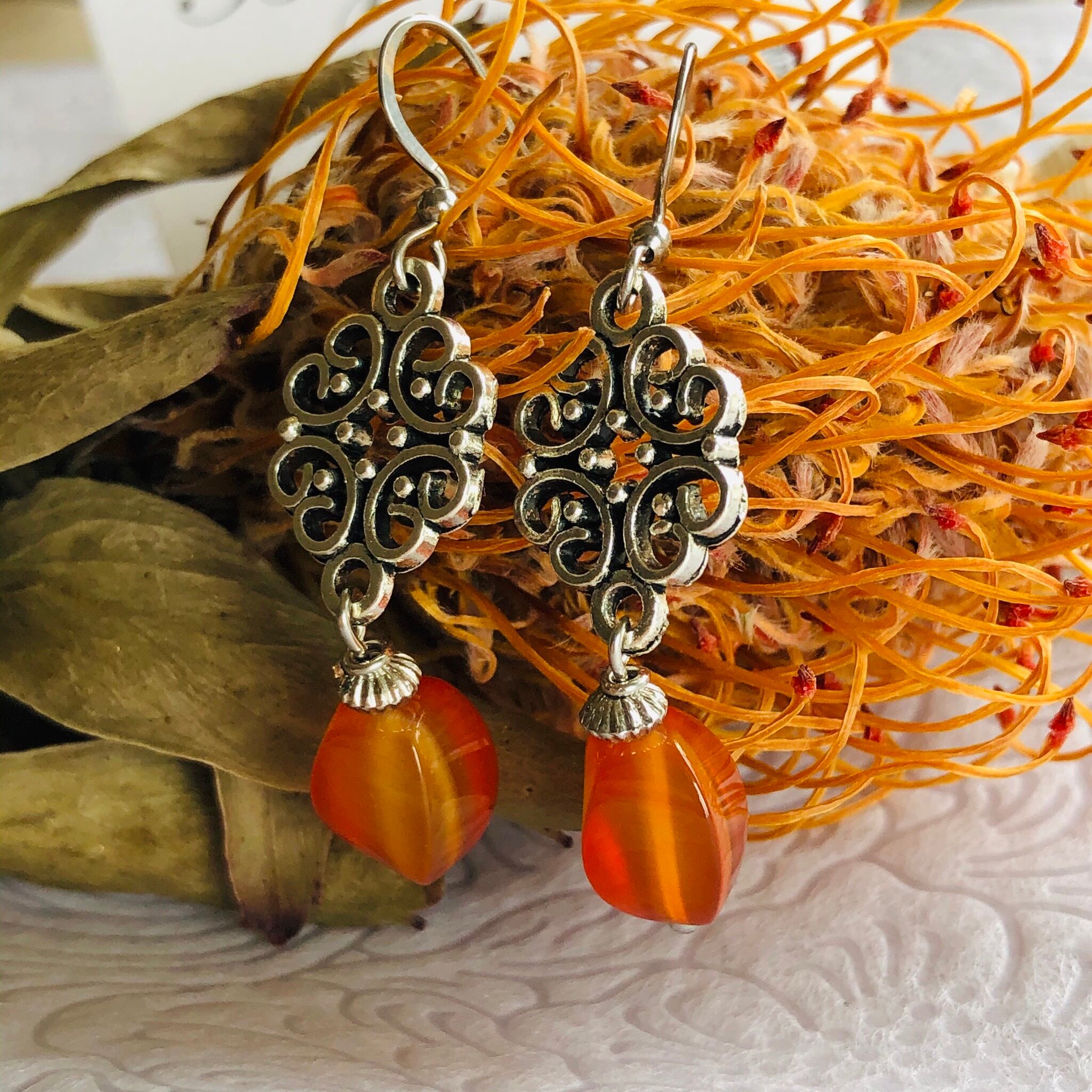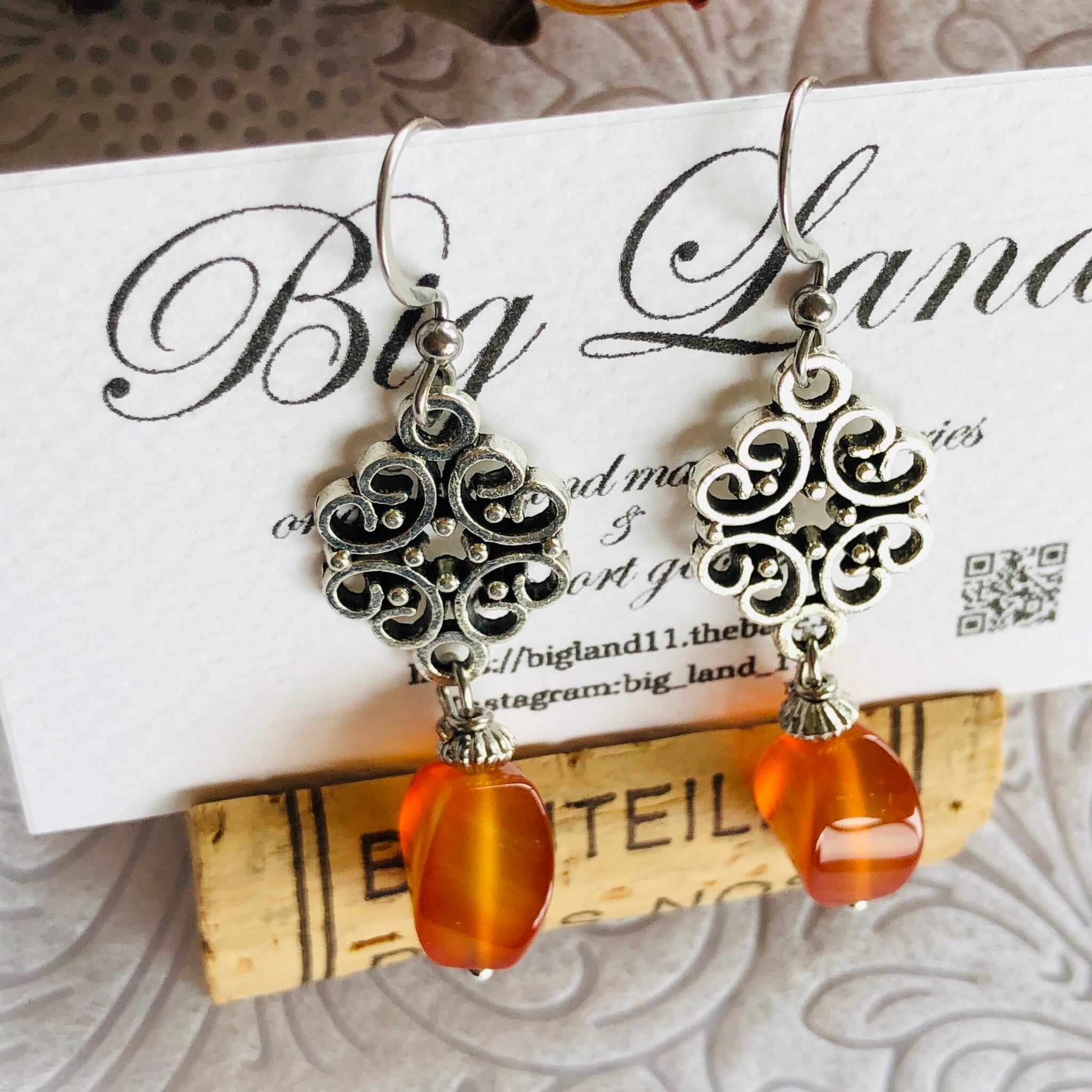 透かしデザインとカーネリアンを組み合わせ、オリエンタルなデザインに仕上げました✨