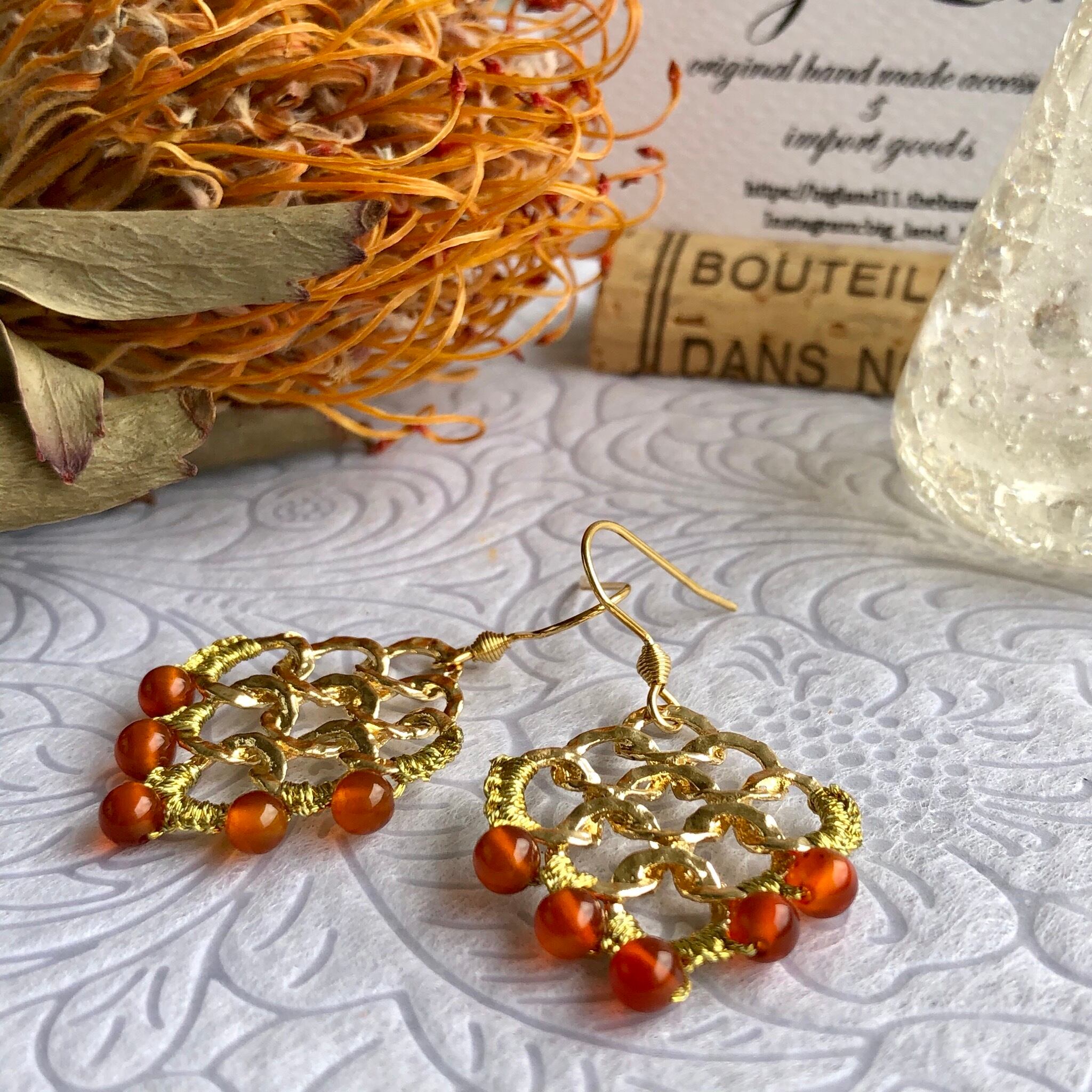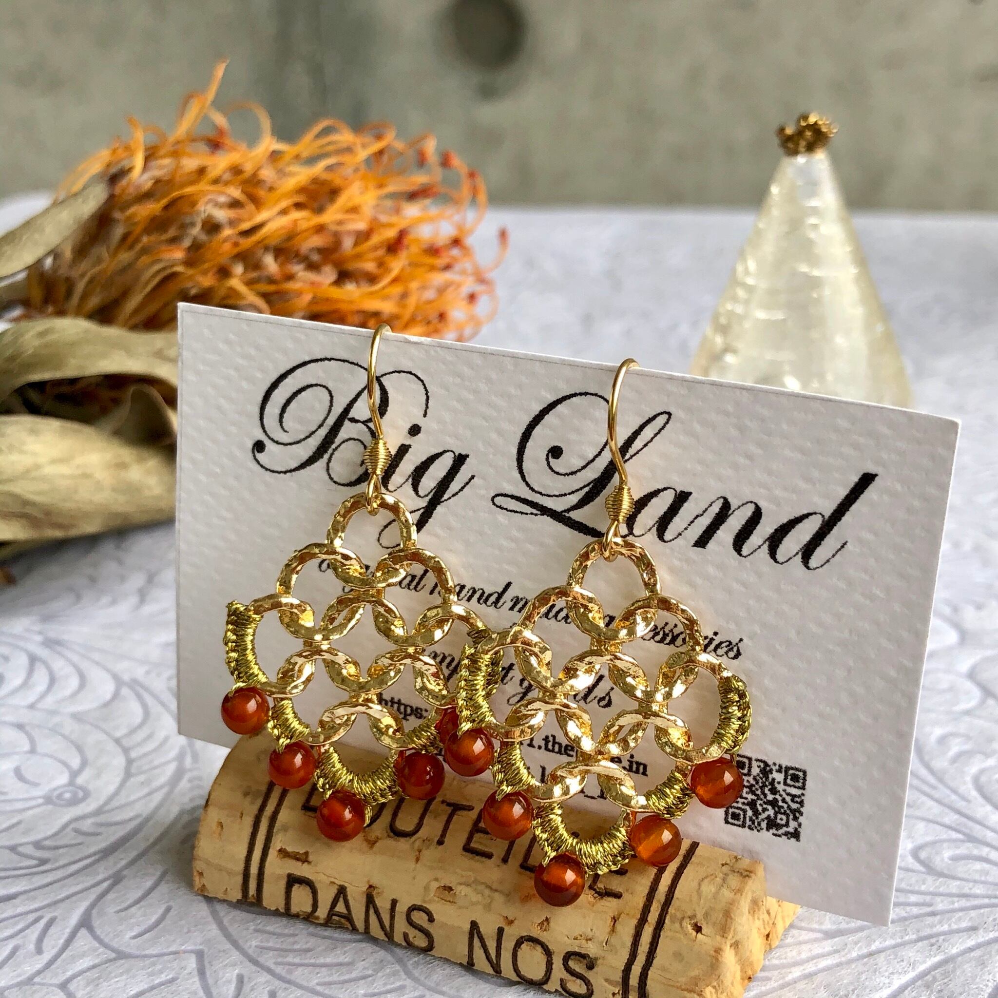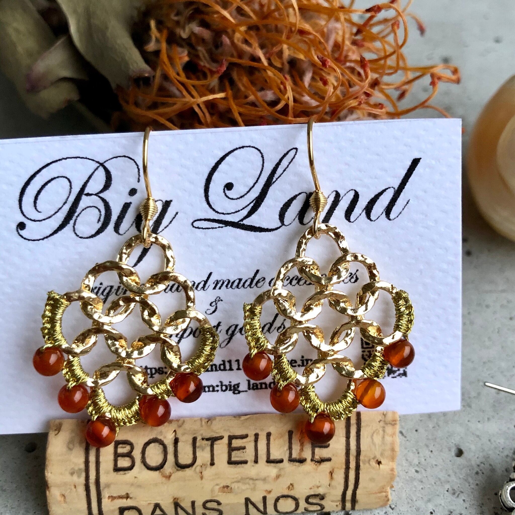 カーネリアンを透かしデザインに編み込みオリエンタルな雰囲気で華やかな色合い✨