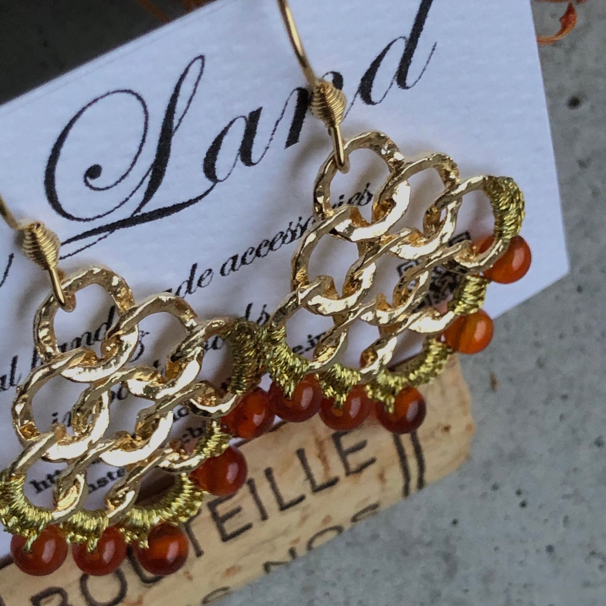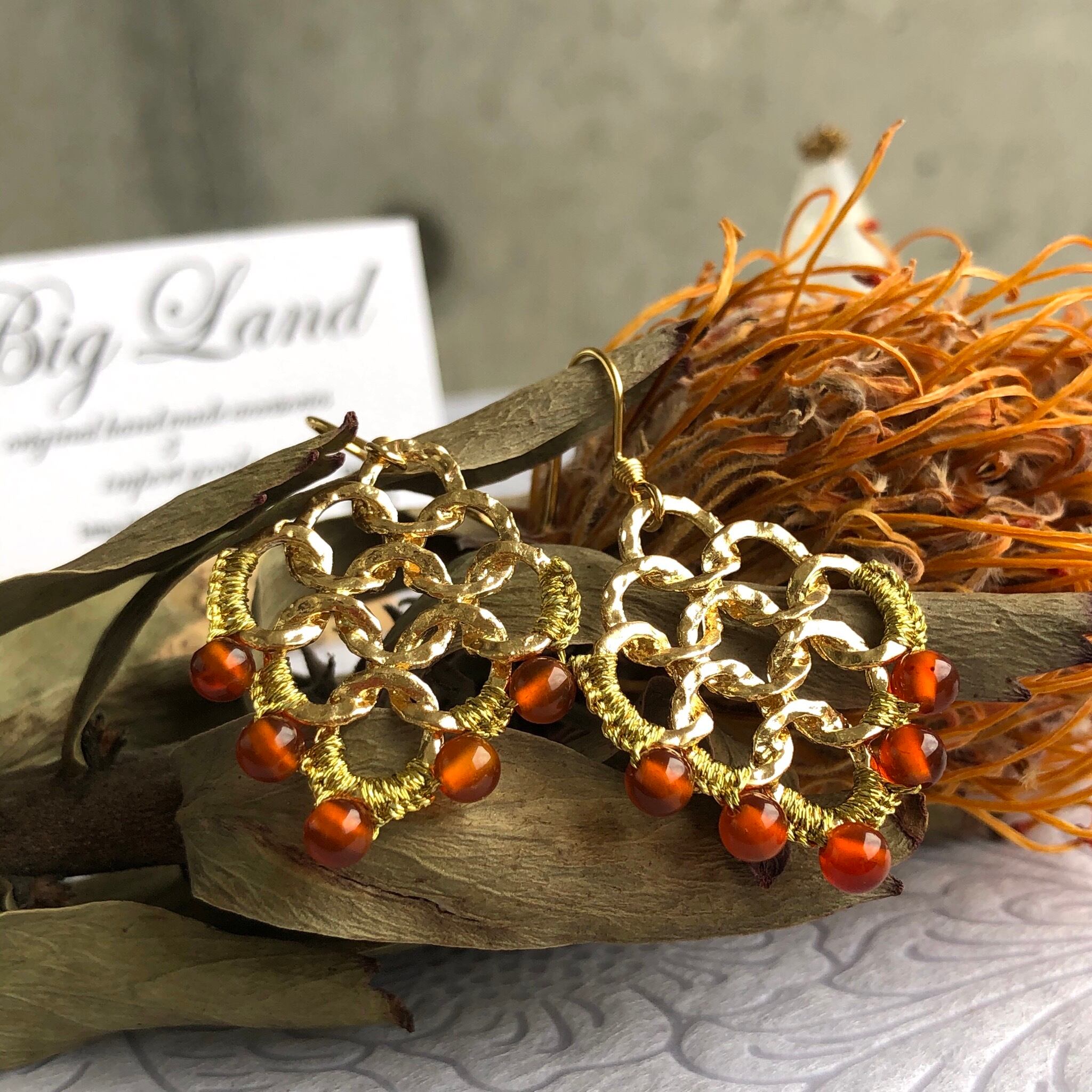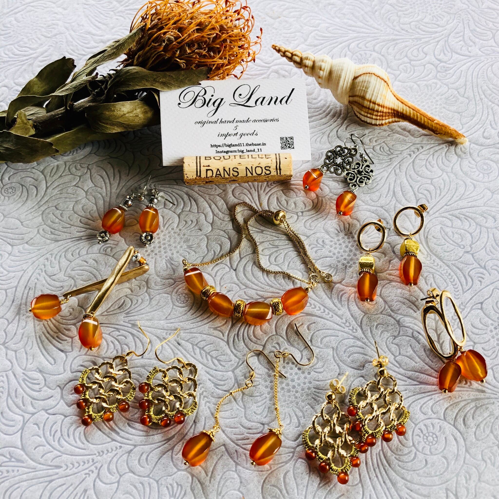 カーネリアンを透かしデザインに編み込みオリエンタルな雰囲気で華やかな色合い✨
