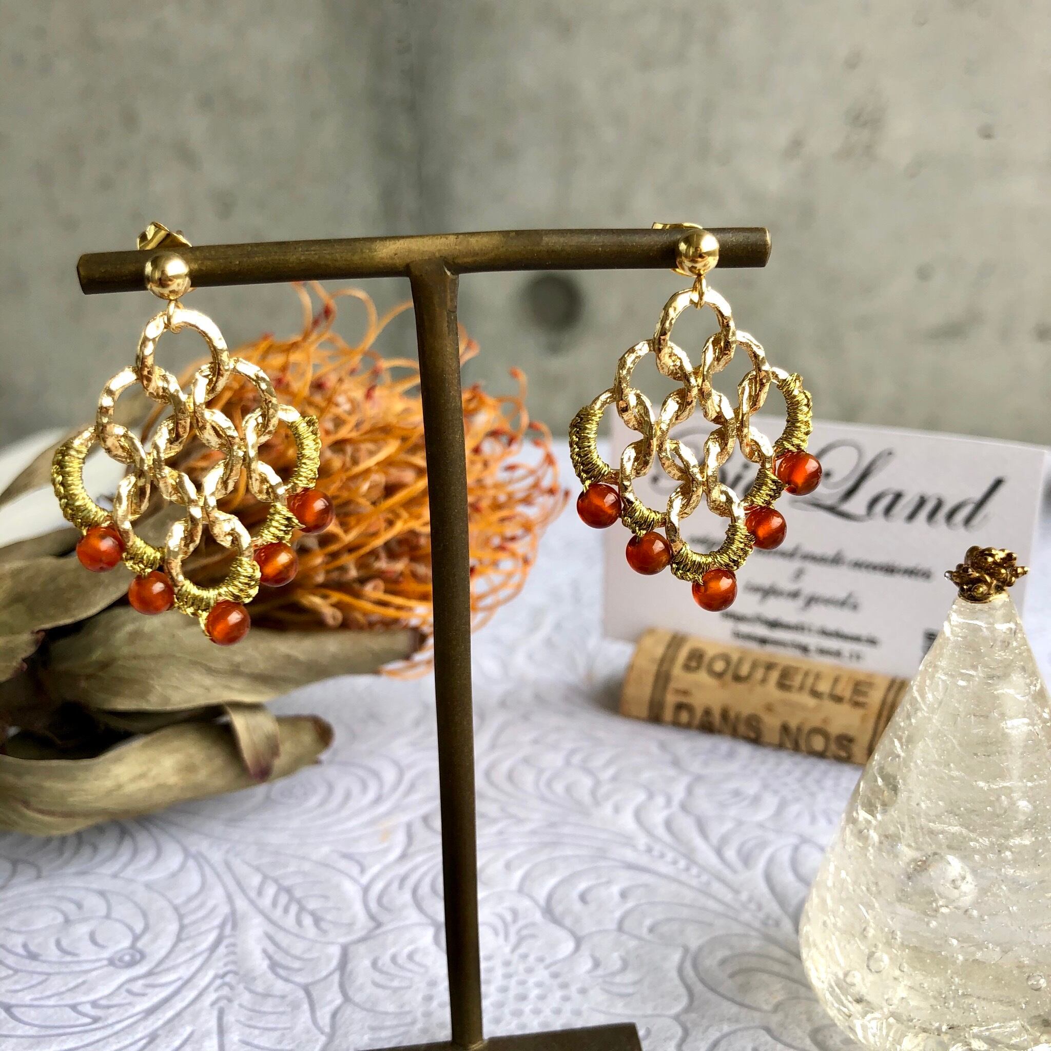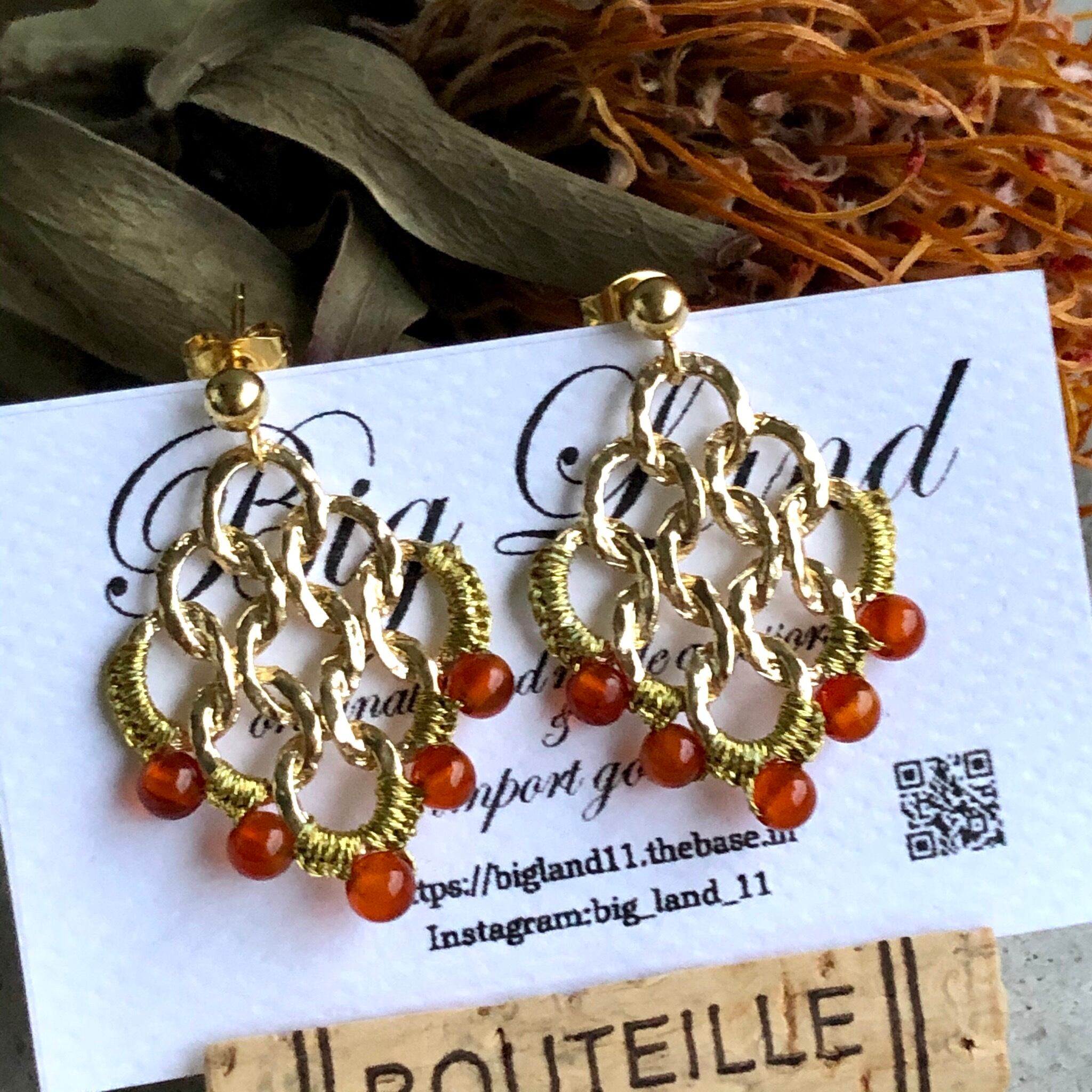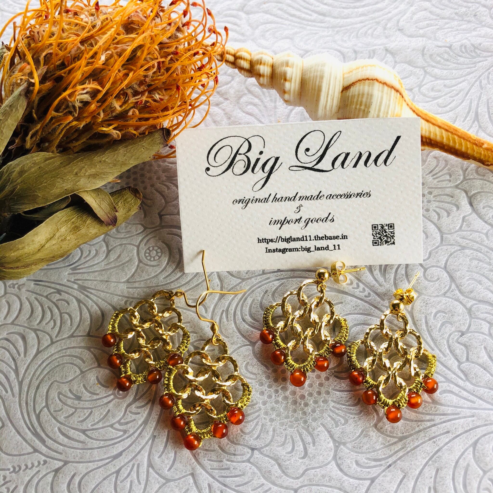 カーネリアンを透かしデザインに編み込みオリエンタルな雰囲気で華やかな色合い✨