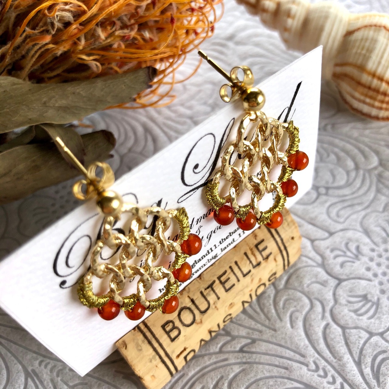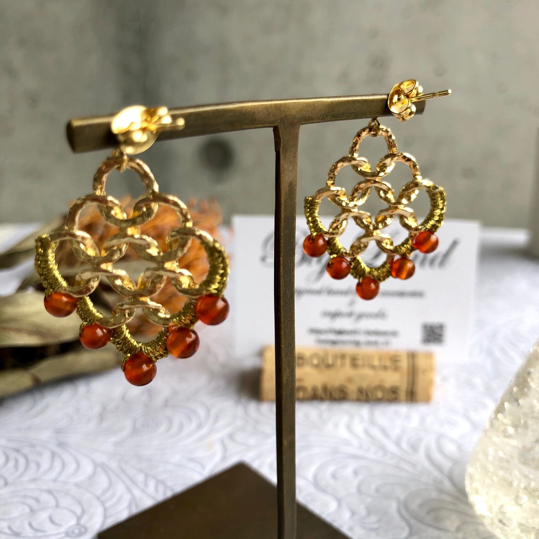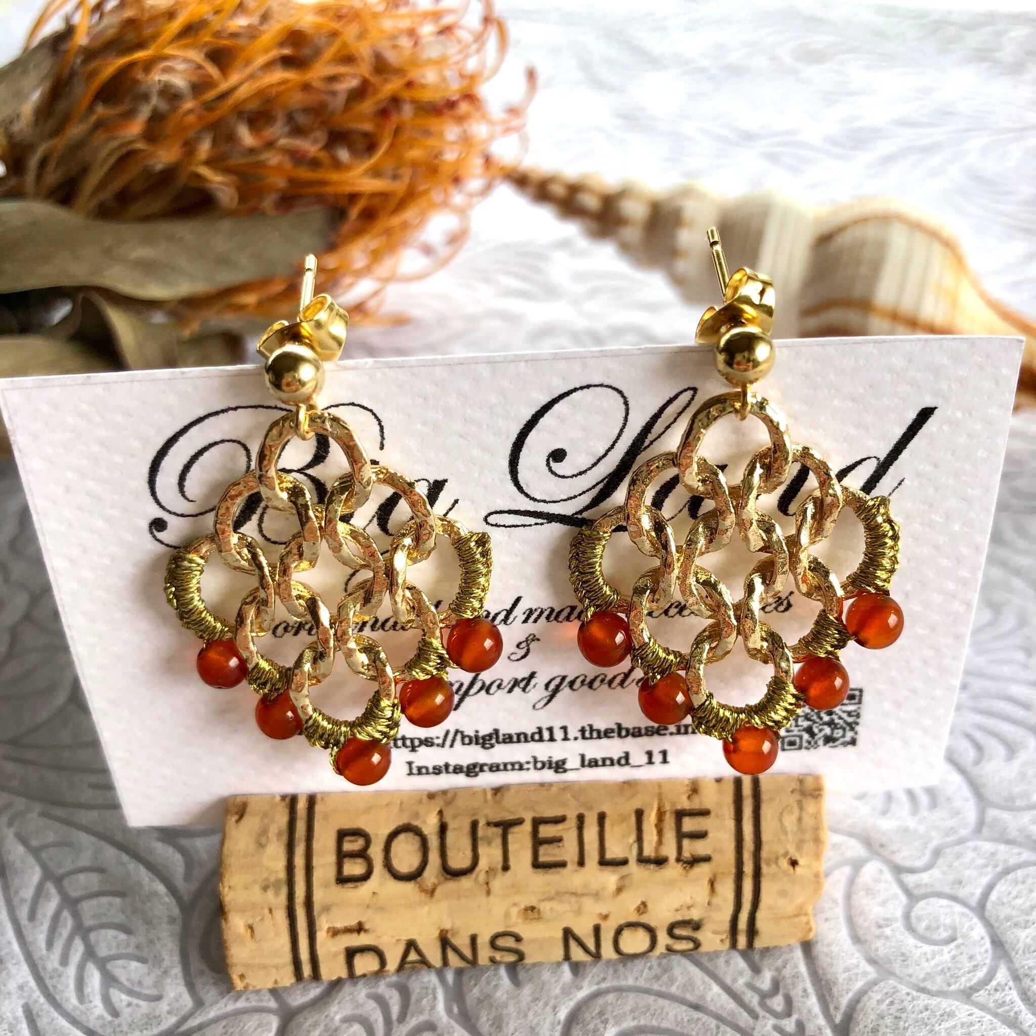 カーネリアンを透かしデザインに編み込みオリエンタルな雰囲気で華やかな色合い✨