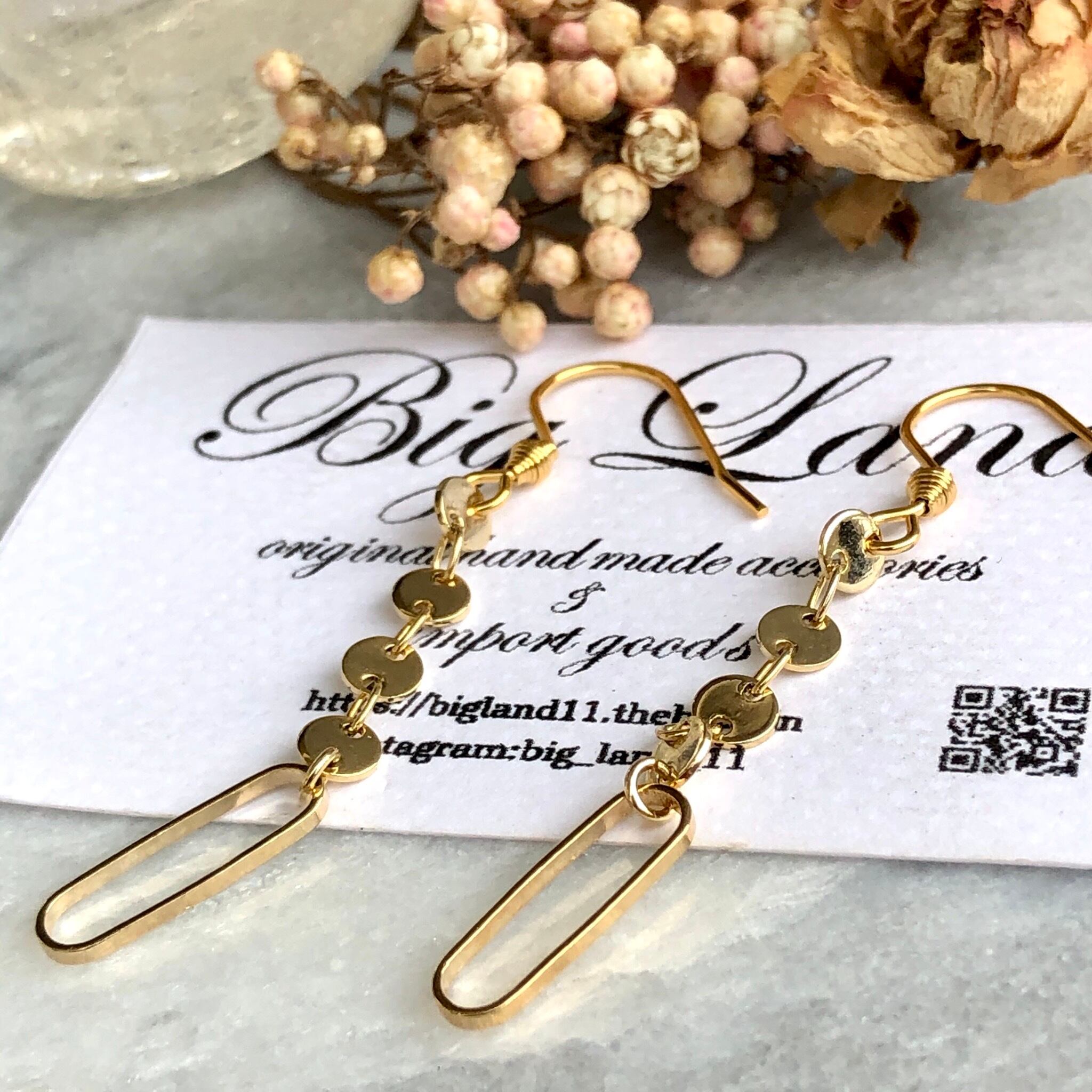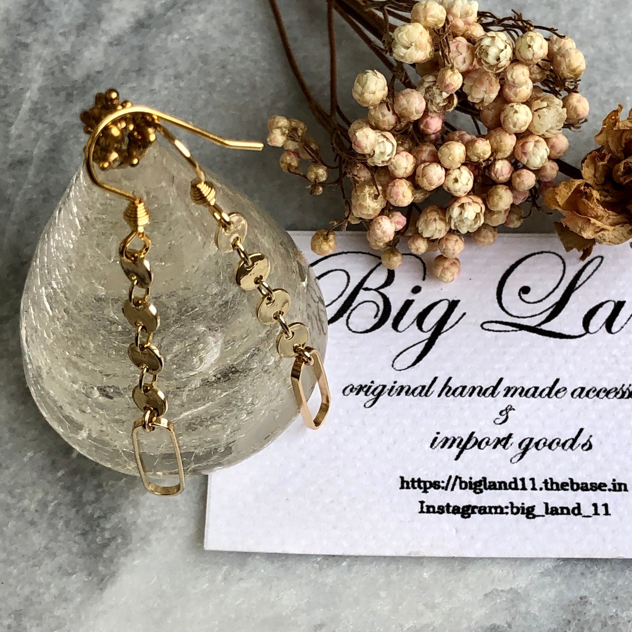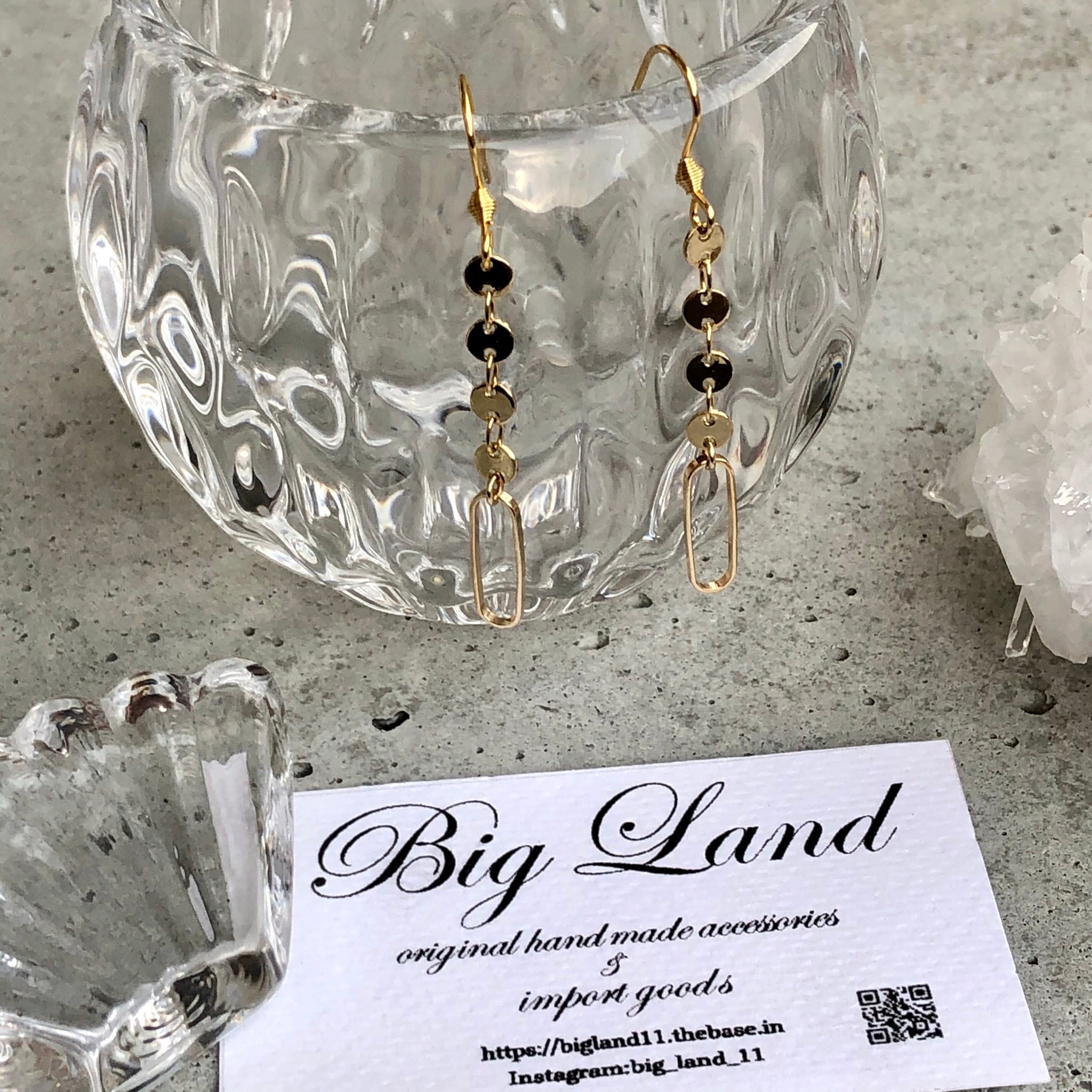 べーシックなお洋服にトレンドのメタルで今風コーデにキマリ、縦長で揺れるピアスは女子力アップのモテピアスで洗練された雰囲気に✨