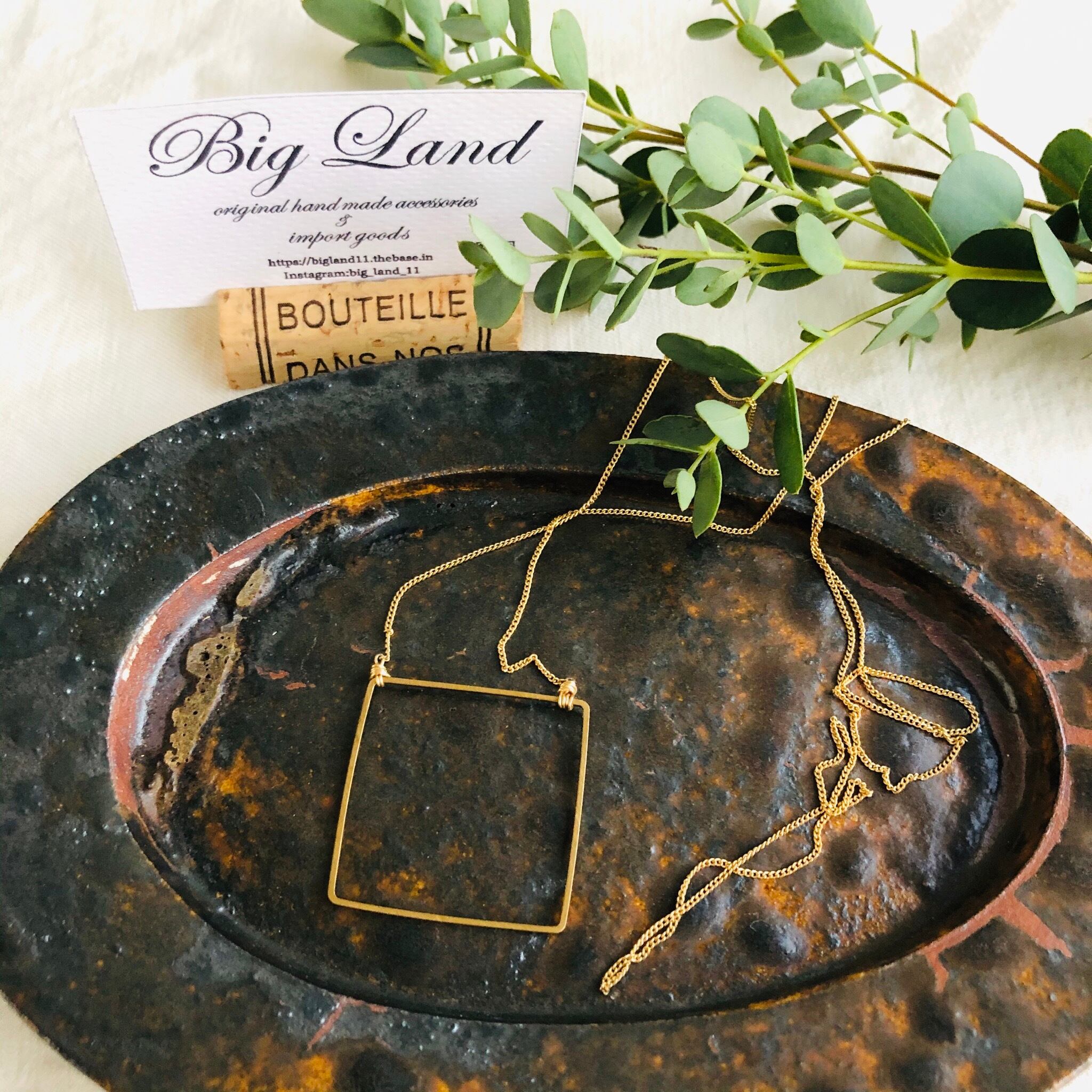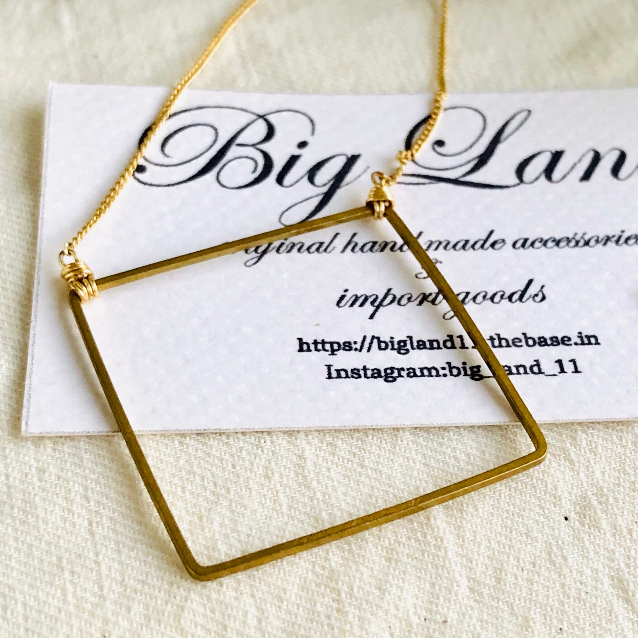 真鍮素材のスクエアをシンプルにネックレスにしてみました‼︎こなれ感あるアンティーク風な感じに仕上がり真鍮ピアスとセットコーデもオススメです❤️