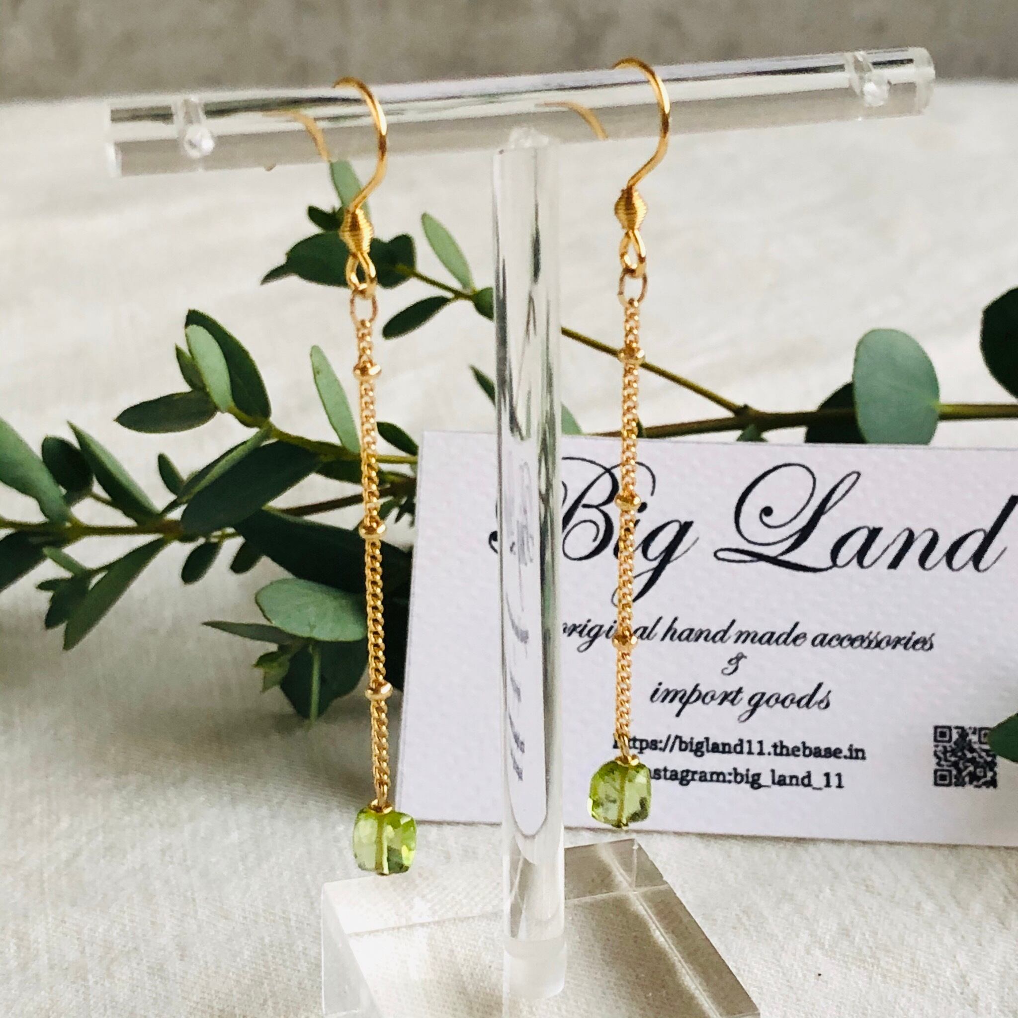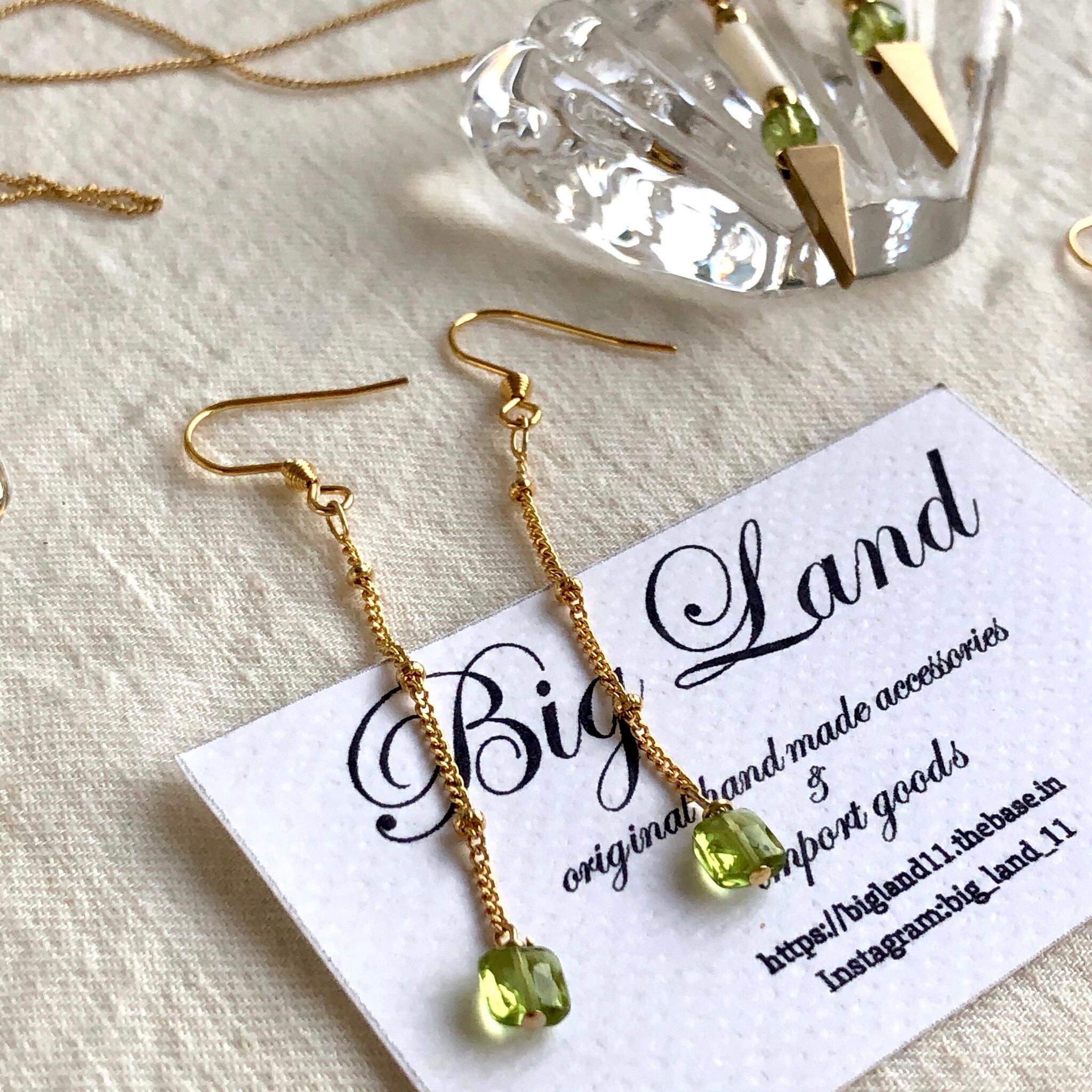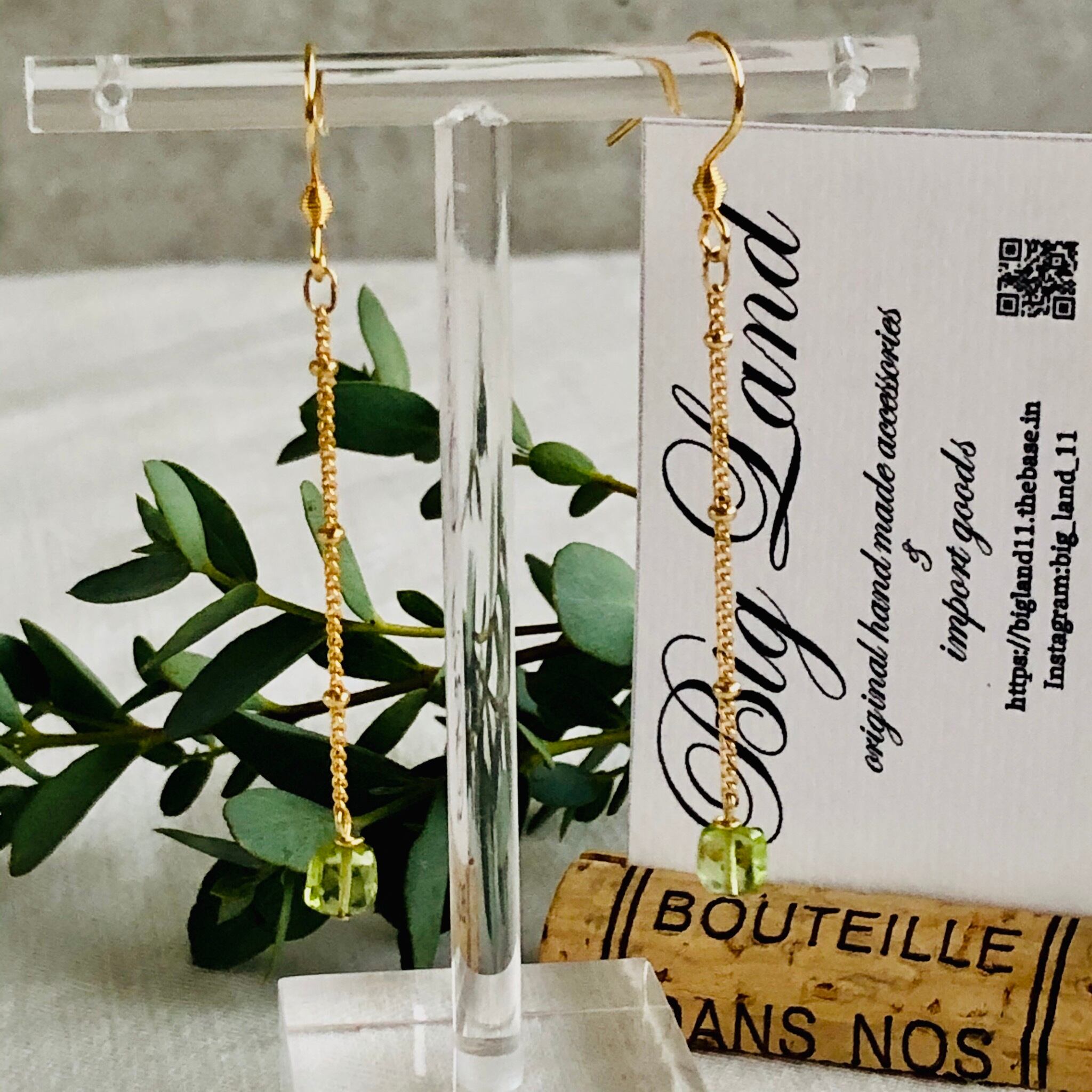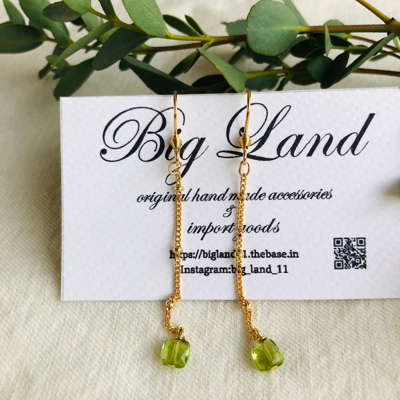 8月誕生石ペリドットと遊び心あるチェーンと組み合わせ揺れ感あるモテピアスに仕上げました✨綺麗目ファッションからカジュアルスタイルにもgood✨