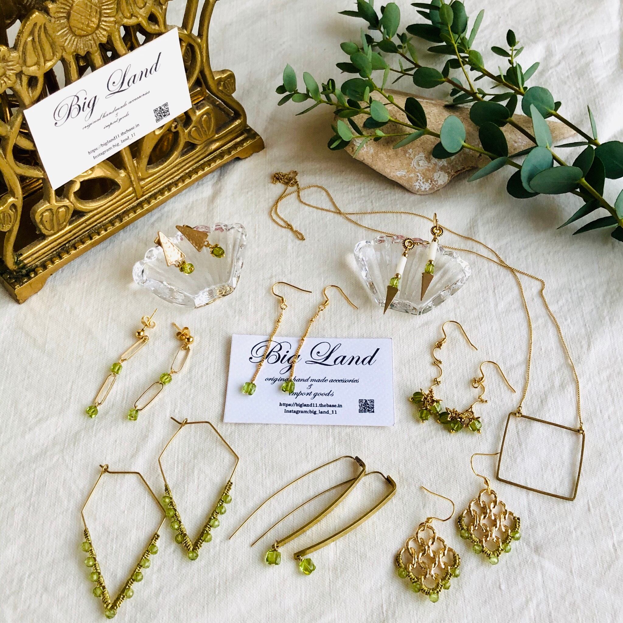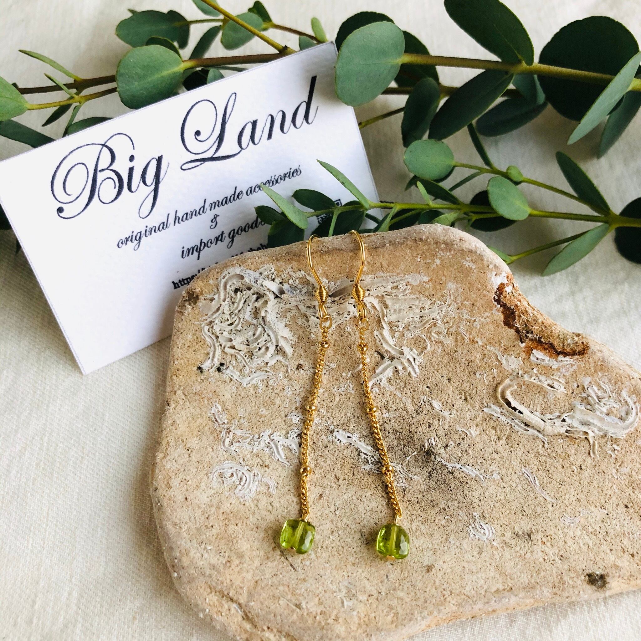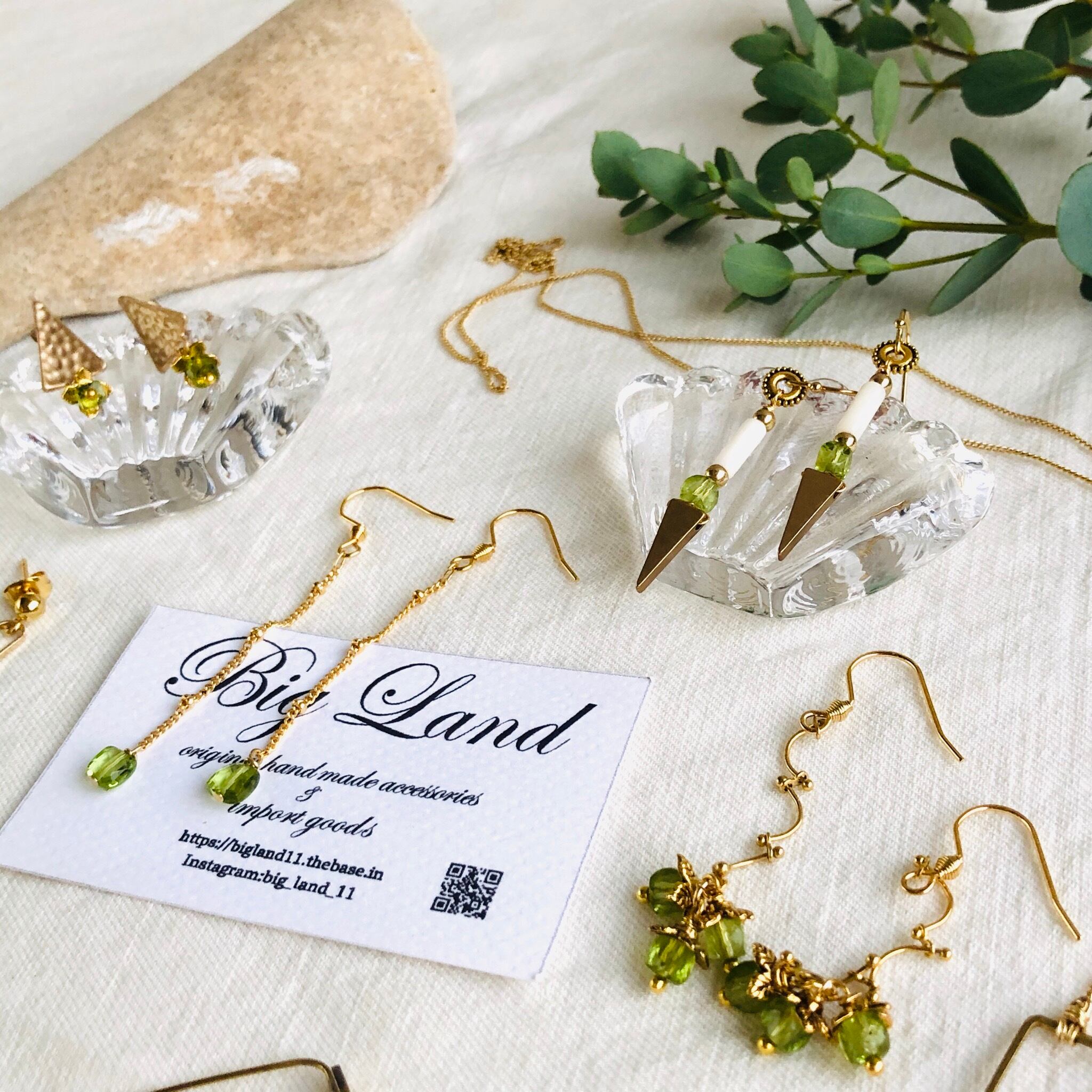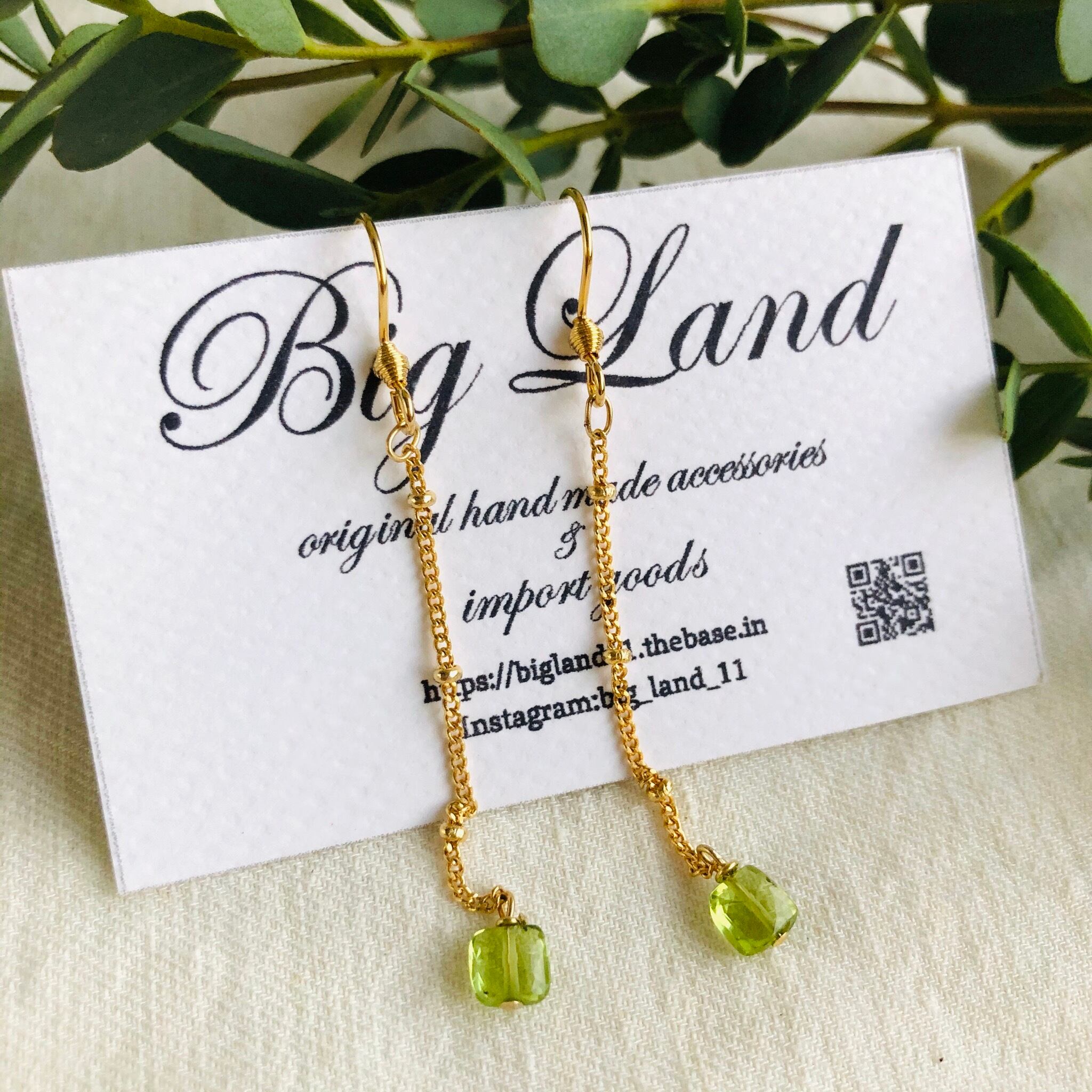 8月誕生石ペリドットと遊び心あるチェーンと組み合わせ揺れ感あるモテピアスに仕上げました✨綺麗目ファッションからカジュアルスタイルにもgood✨
