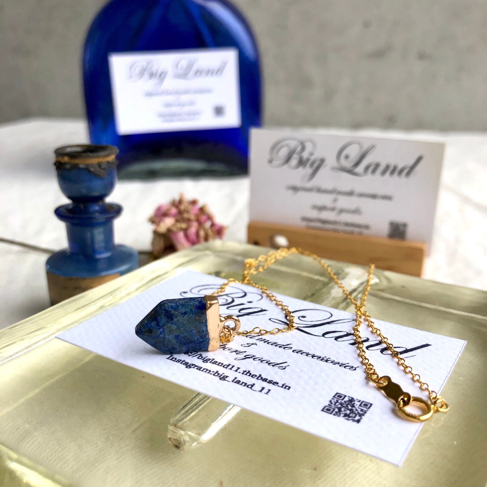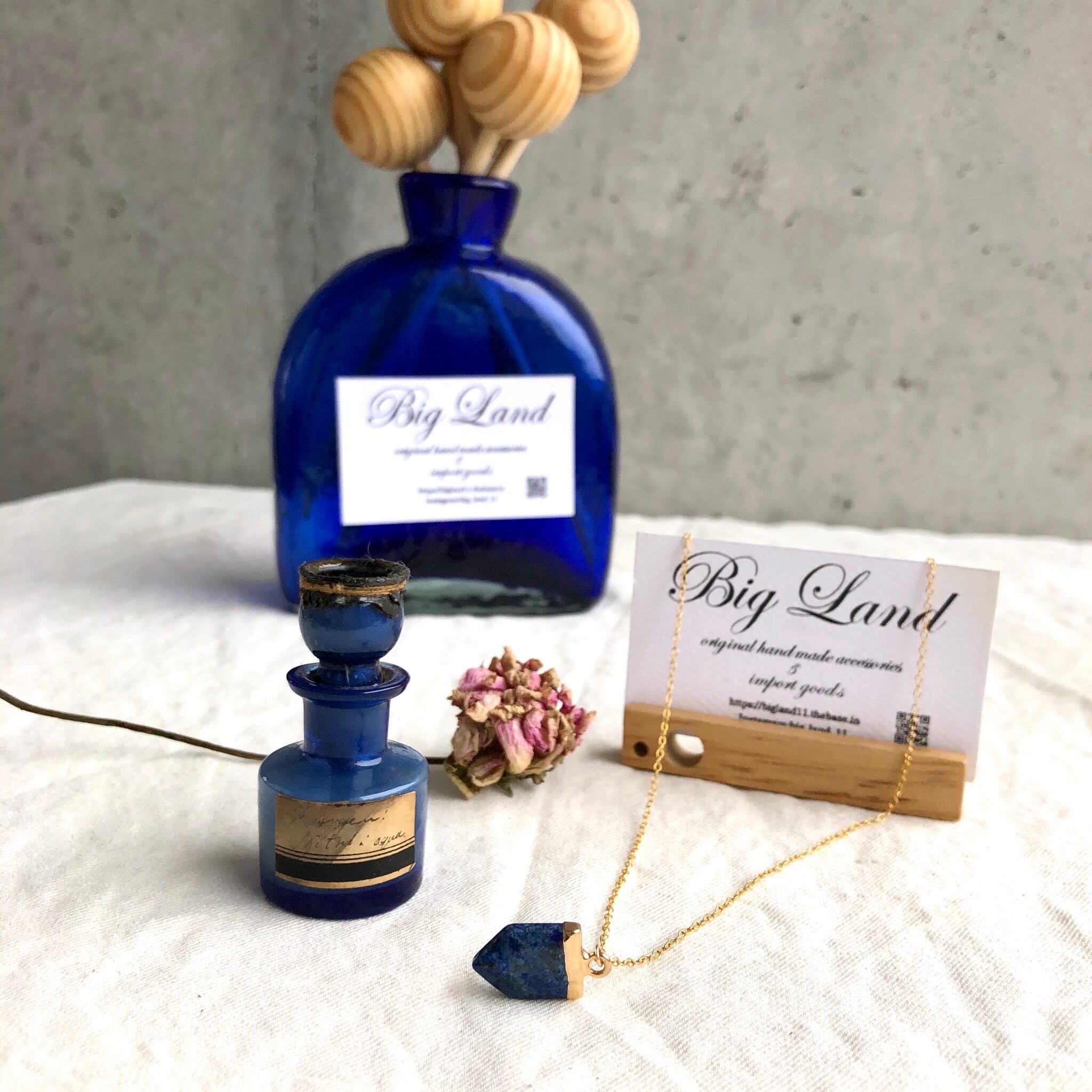 9月&12月の誕生石ラピスラズリを14kgfチェーン(アレルギーの方にオススメ)とアンティークな雰囲気のトップを組み合わせシンプルデザインに!!
