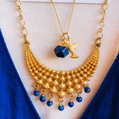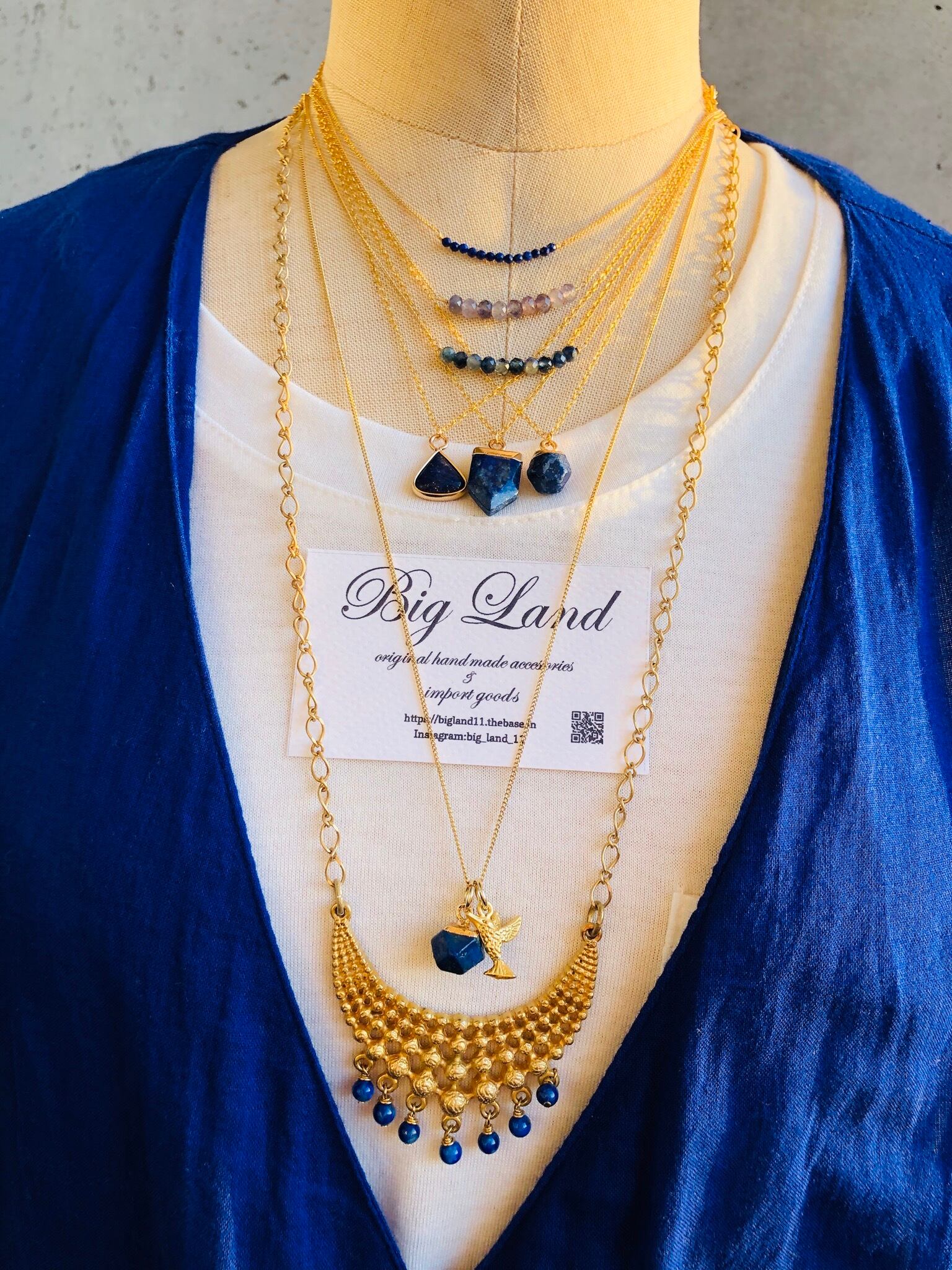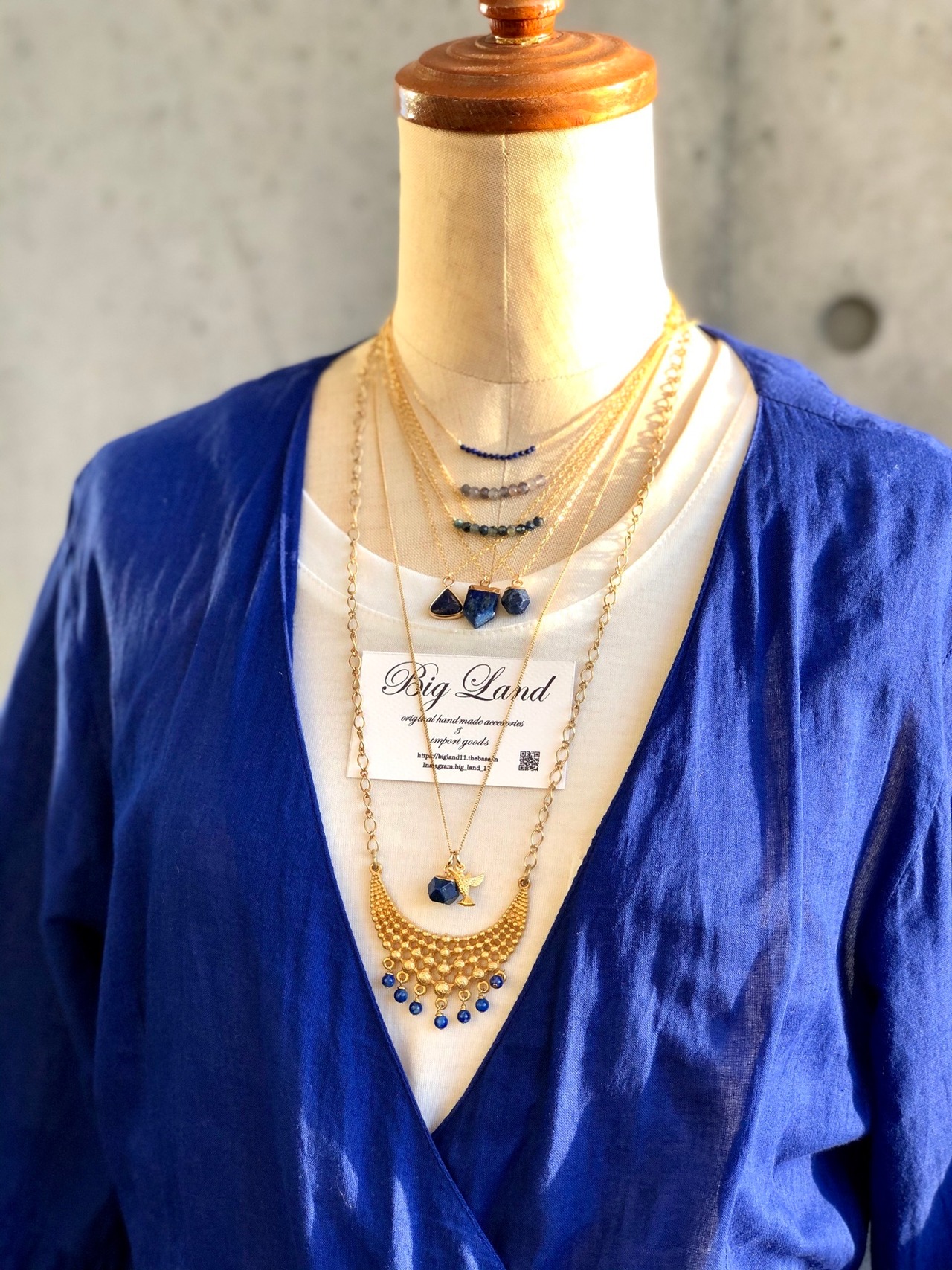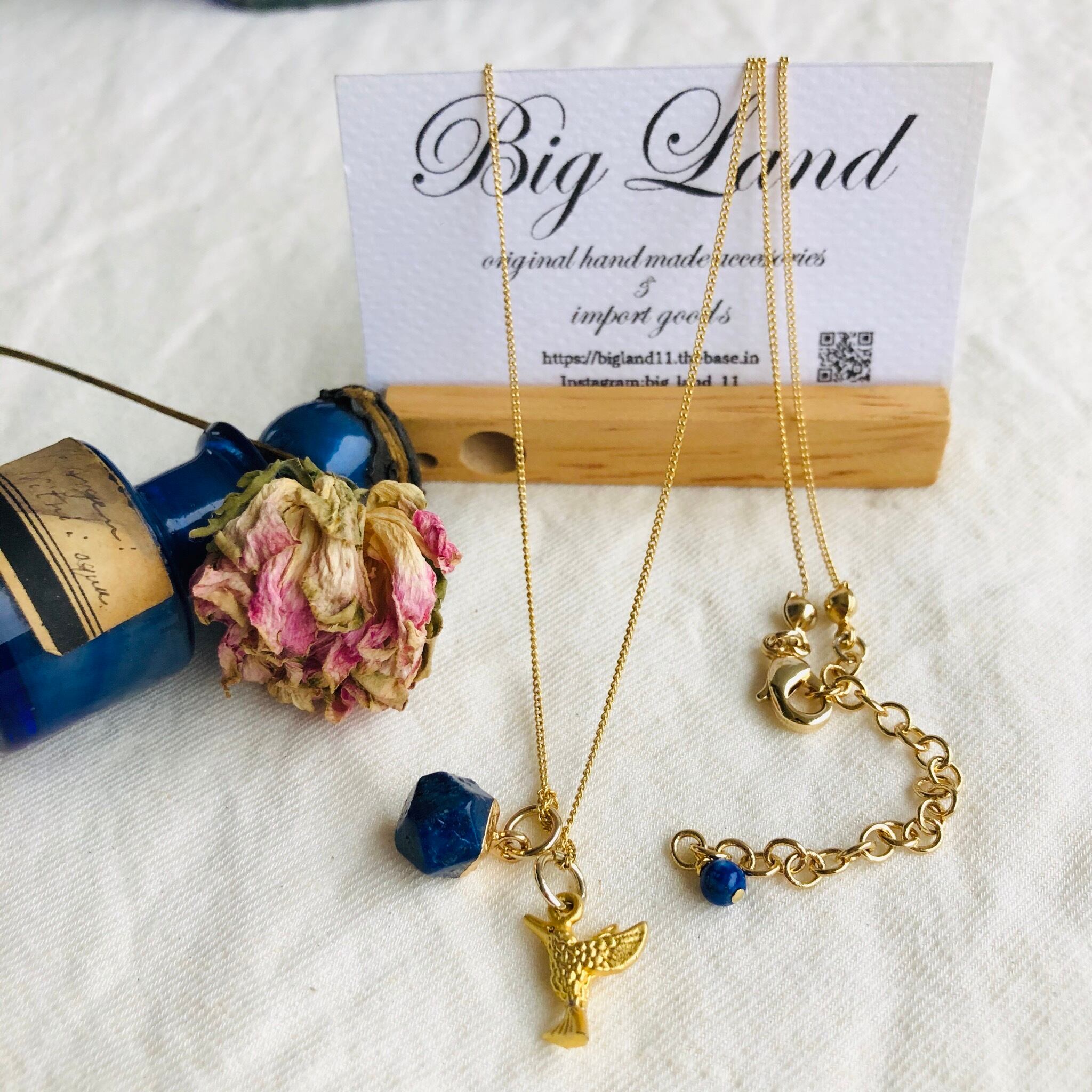 9月&12月の誕生石ラピスラズリを落ち感ある丹銅チェーンと幸運の青い鳥をイメージした組み合わせで遊び心のあるデザインに仕上げました‼︎