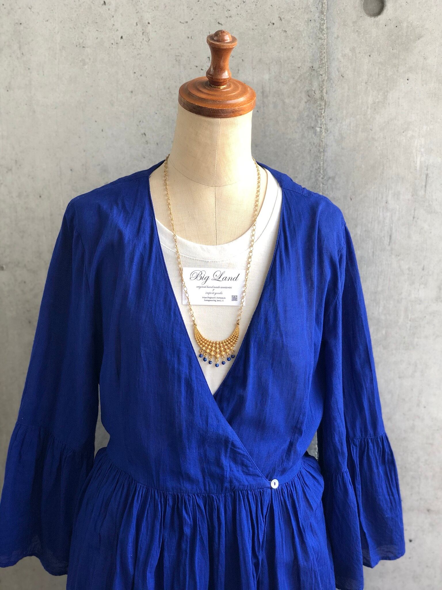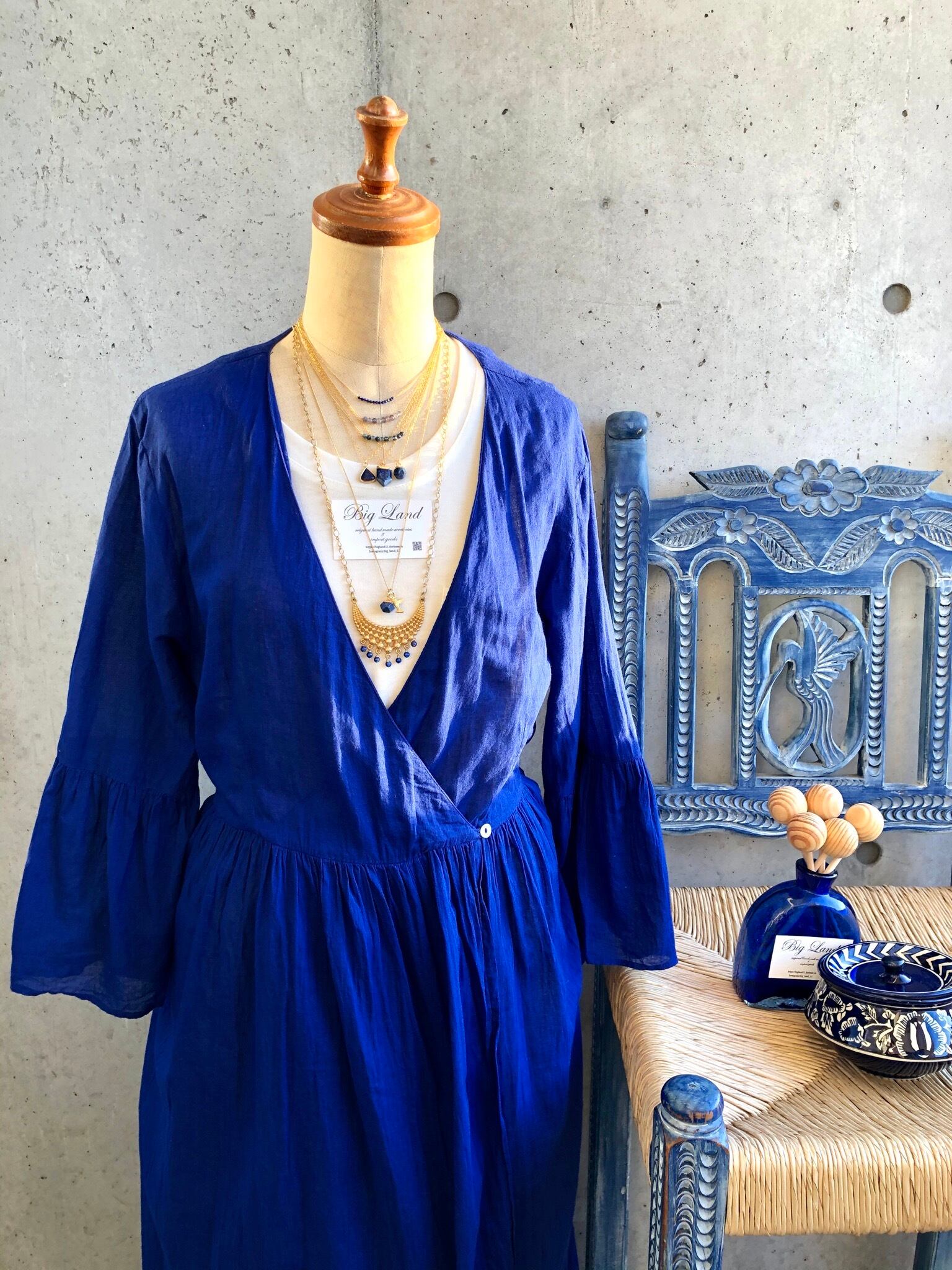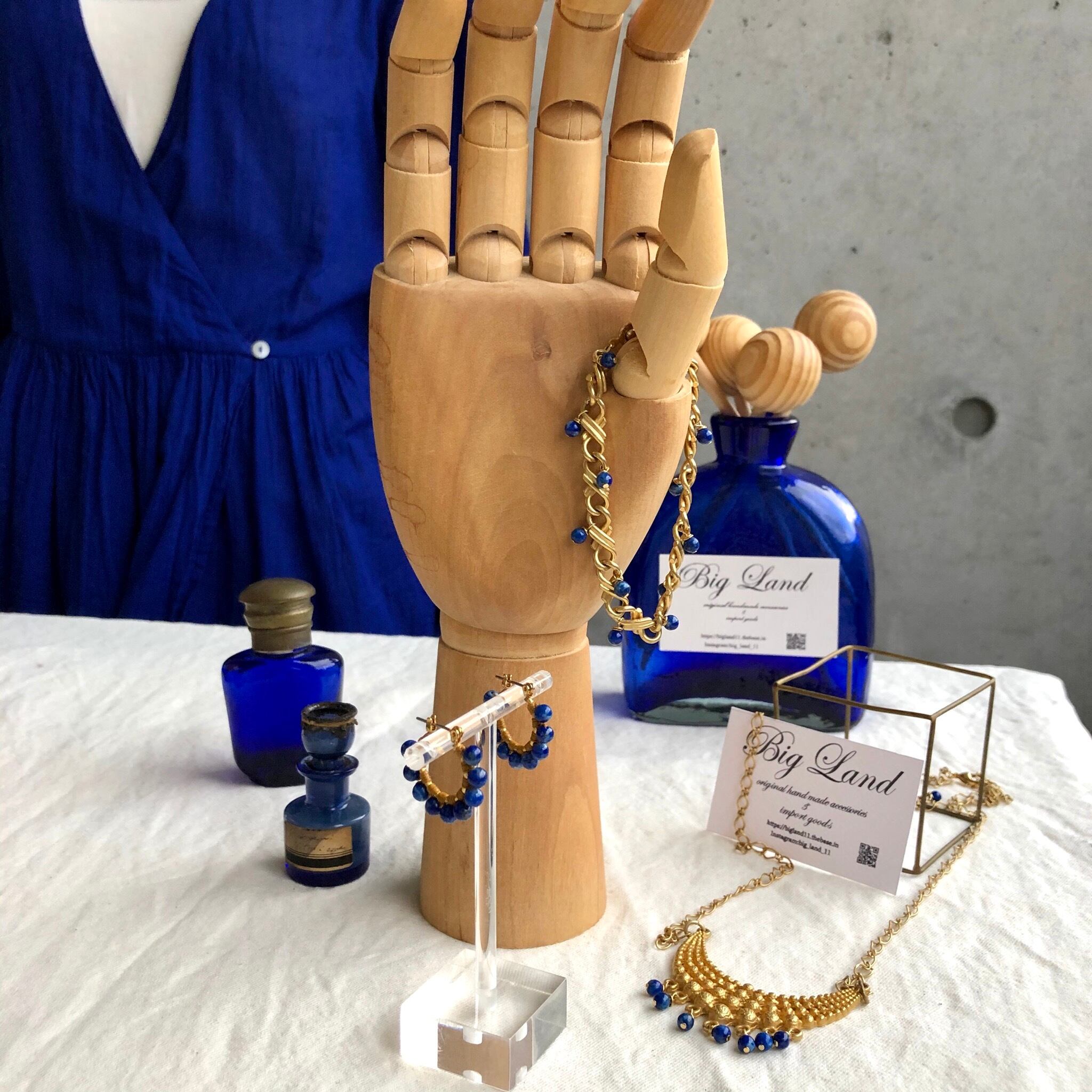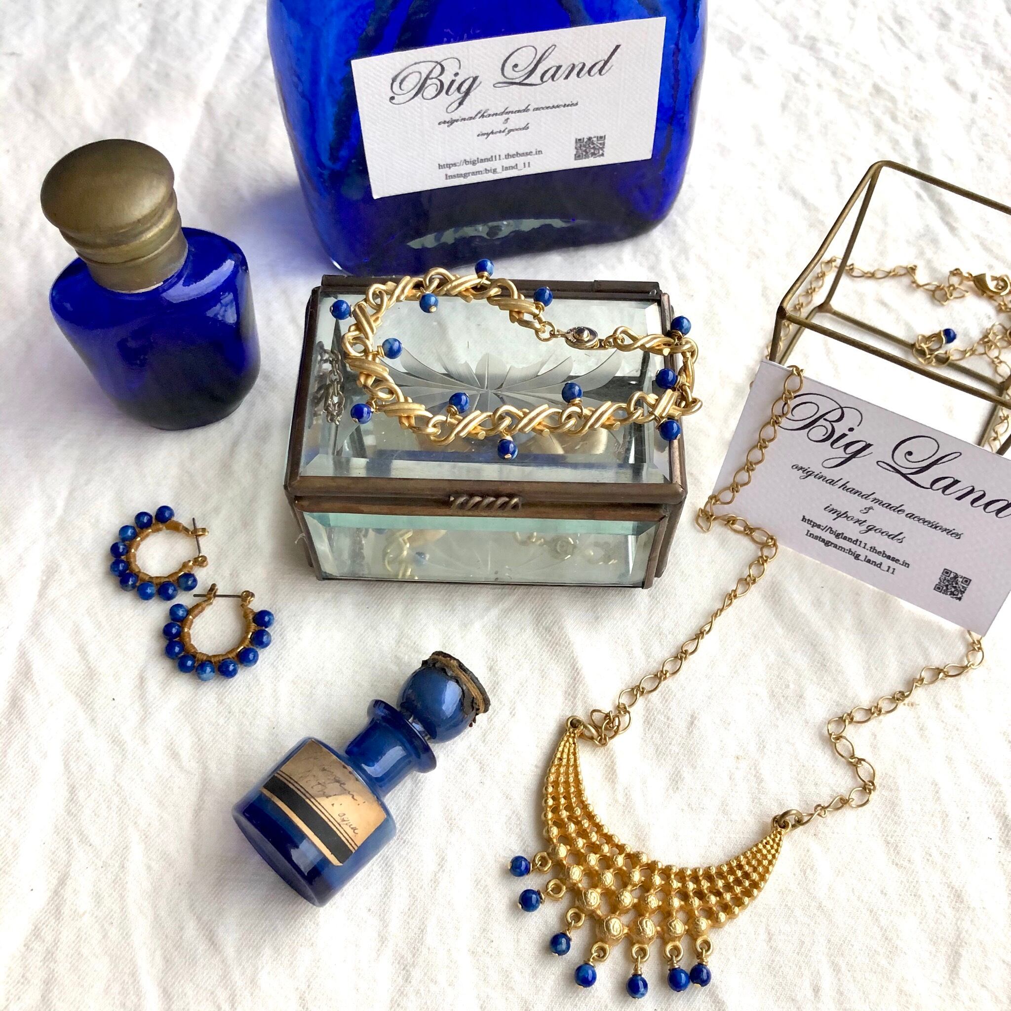 9月&12月の誕生石ラピスラズリを一点モノの真鍮と組み合わせオリエンタルな雰囲気でカフタンシャツやシンプルなお洋服にもネックレスだけで個性が光る遊び心あるデザインに仕上げました‼︎