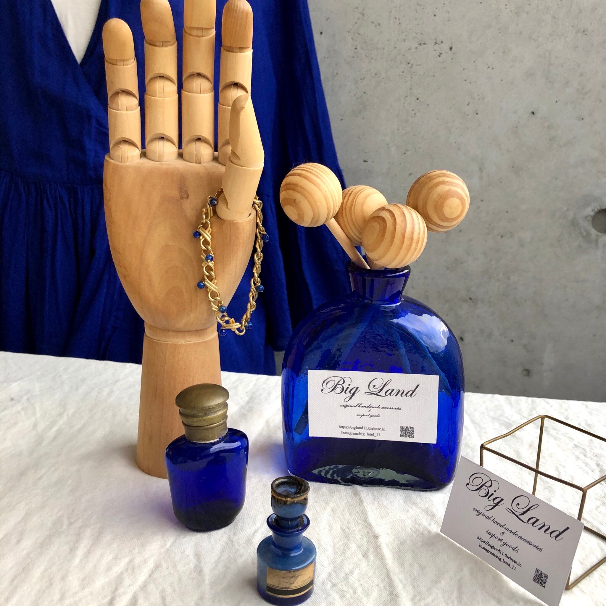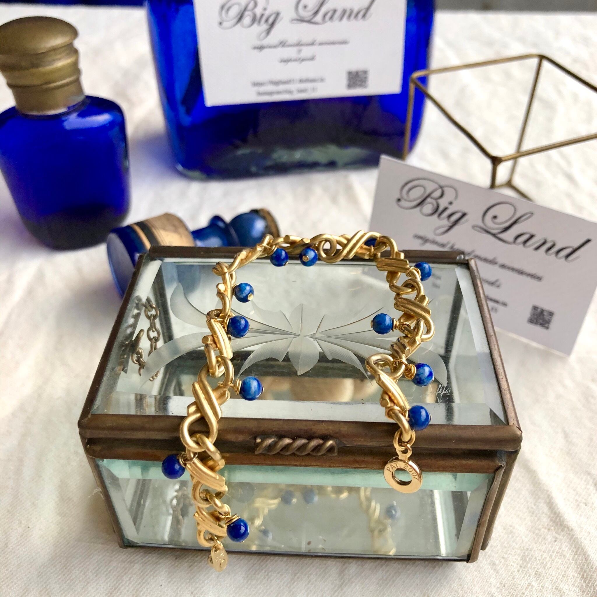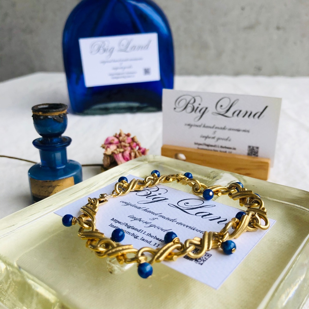 9月&12月の誕生石ラピスラズリブレスのザ一点モノ‼️重厚感ある真鍮チェーンで個性が光る遊び心あるデザインに仕上げました^_^