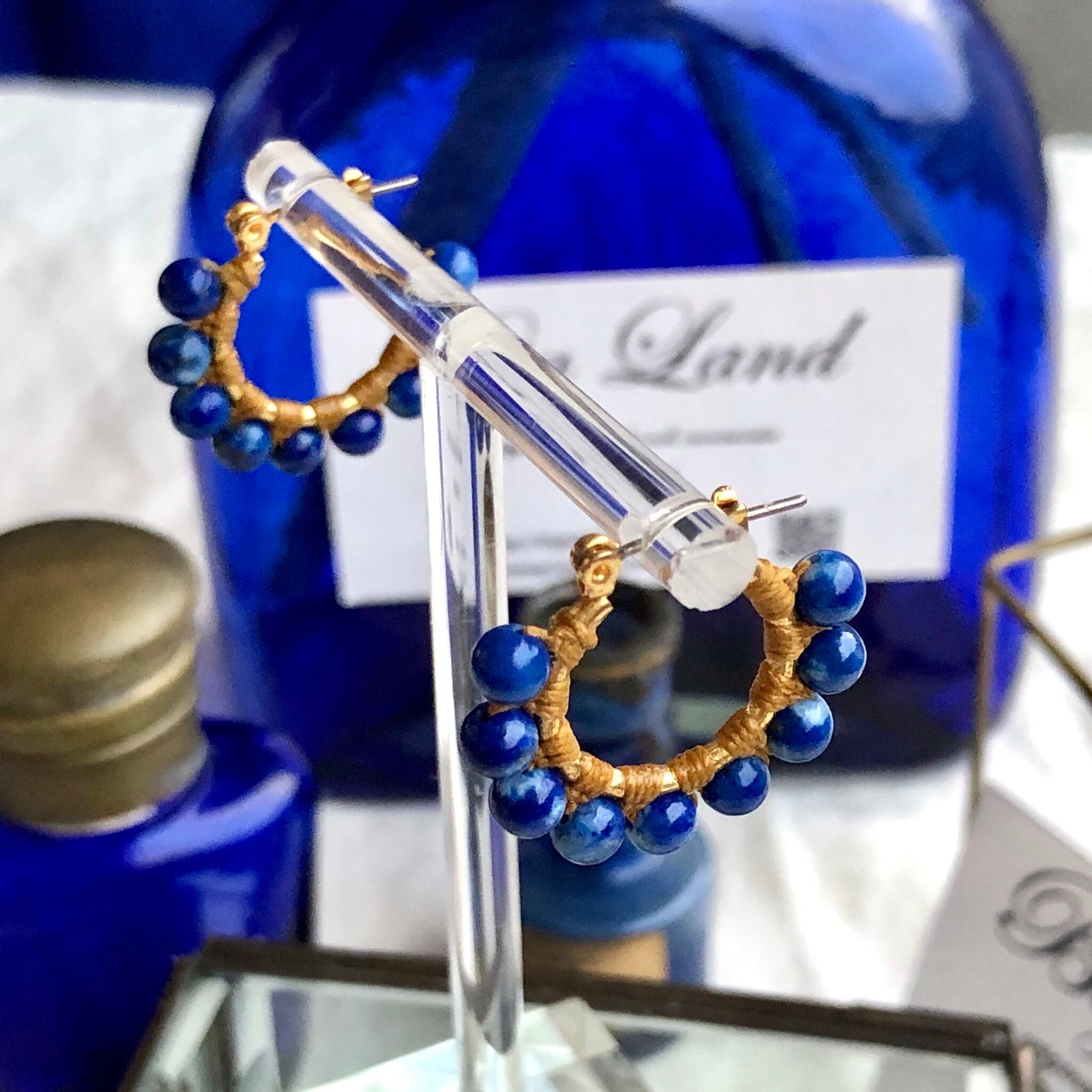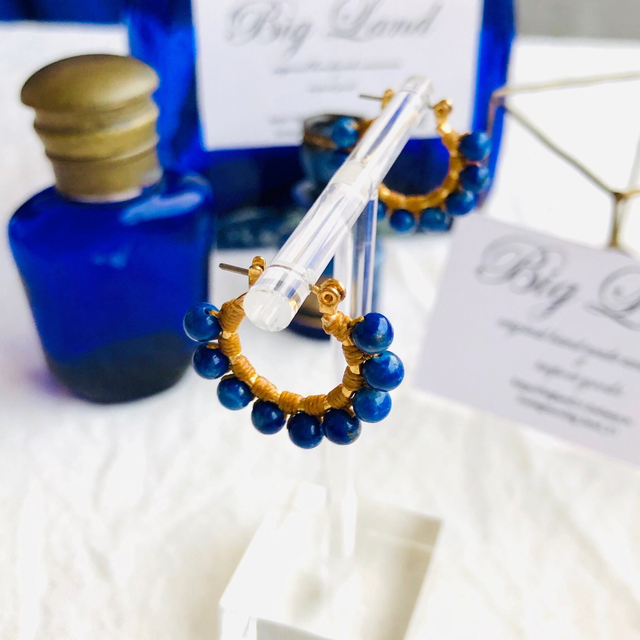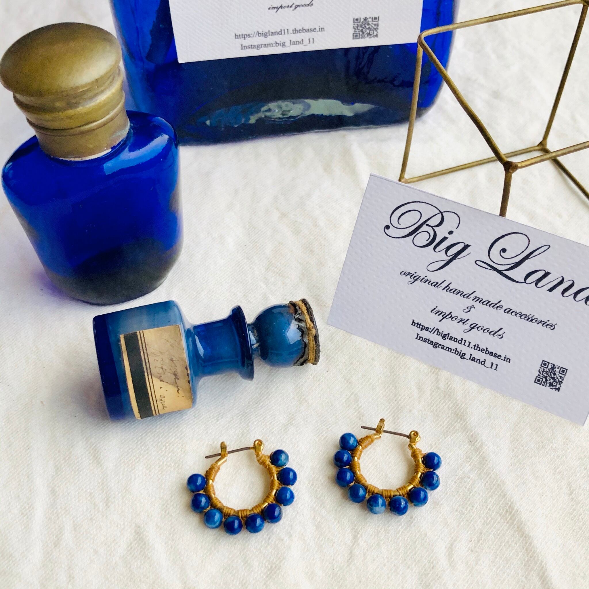 9月&12月誕生石ラピスラズリを糸でひと編みひと編みしてシンプルなフープに仕上げました‼️