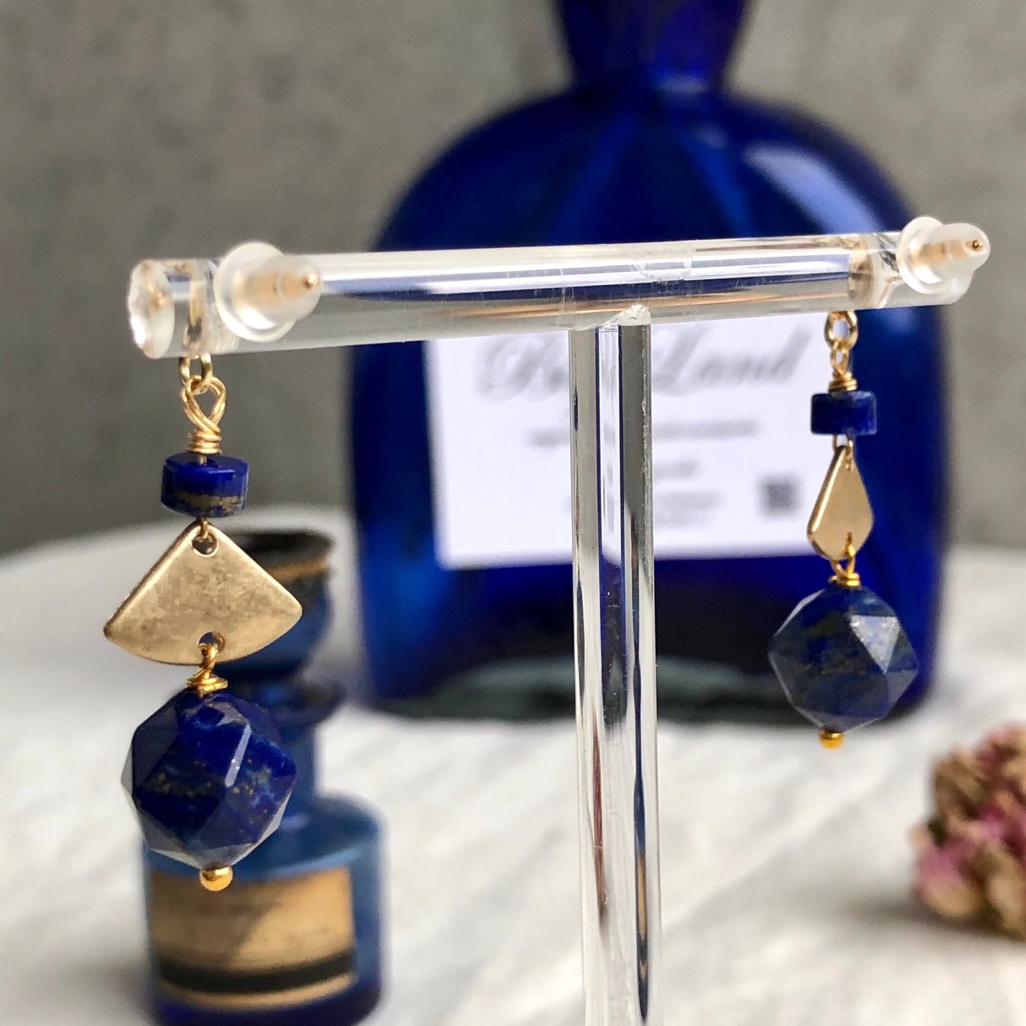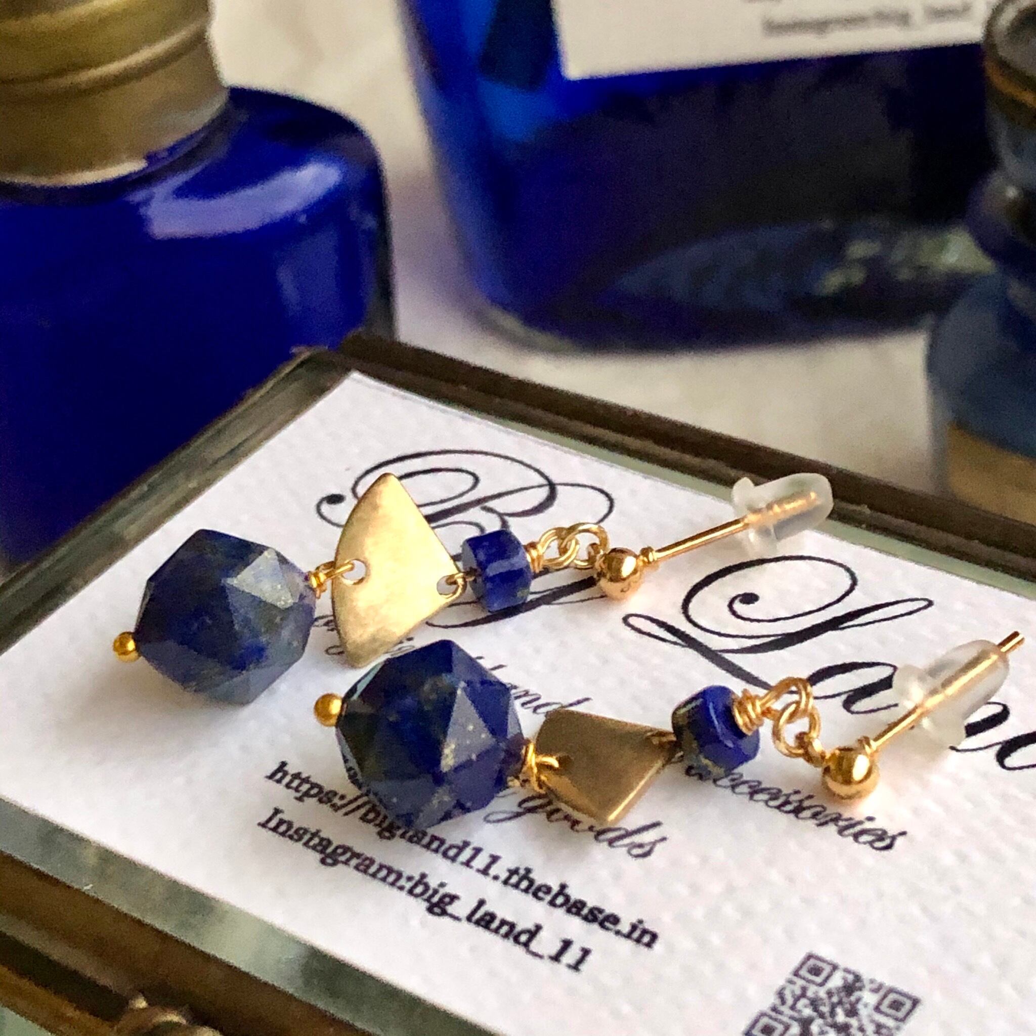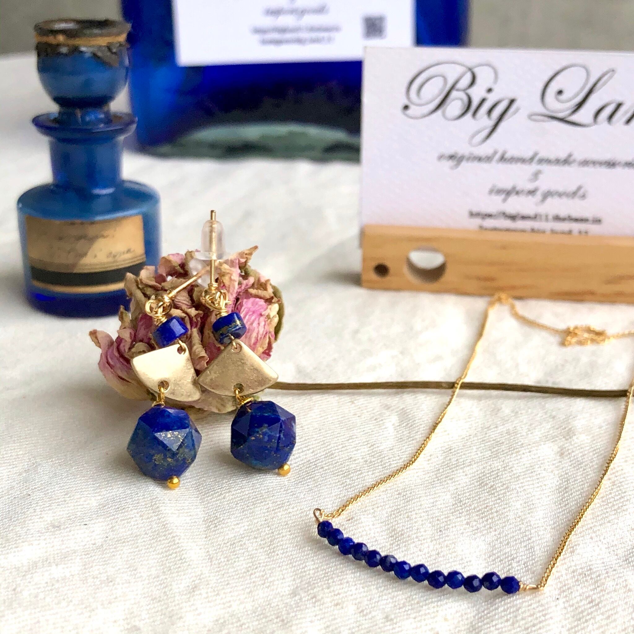 上質カットされた深い青色のラピスラズリとマットゴールドのコントラストが何とも言えない神秘さと妖艶な美しさ....ネックレスやブレス等セットで12月のお誕生日プレゼントにも使えそうですね!
