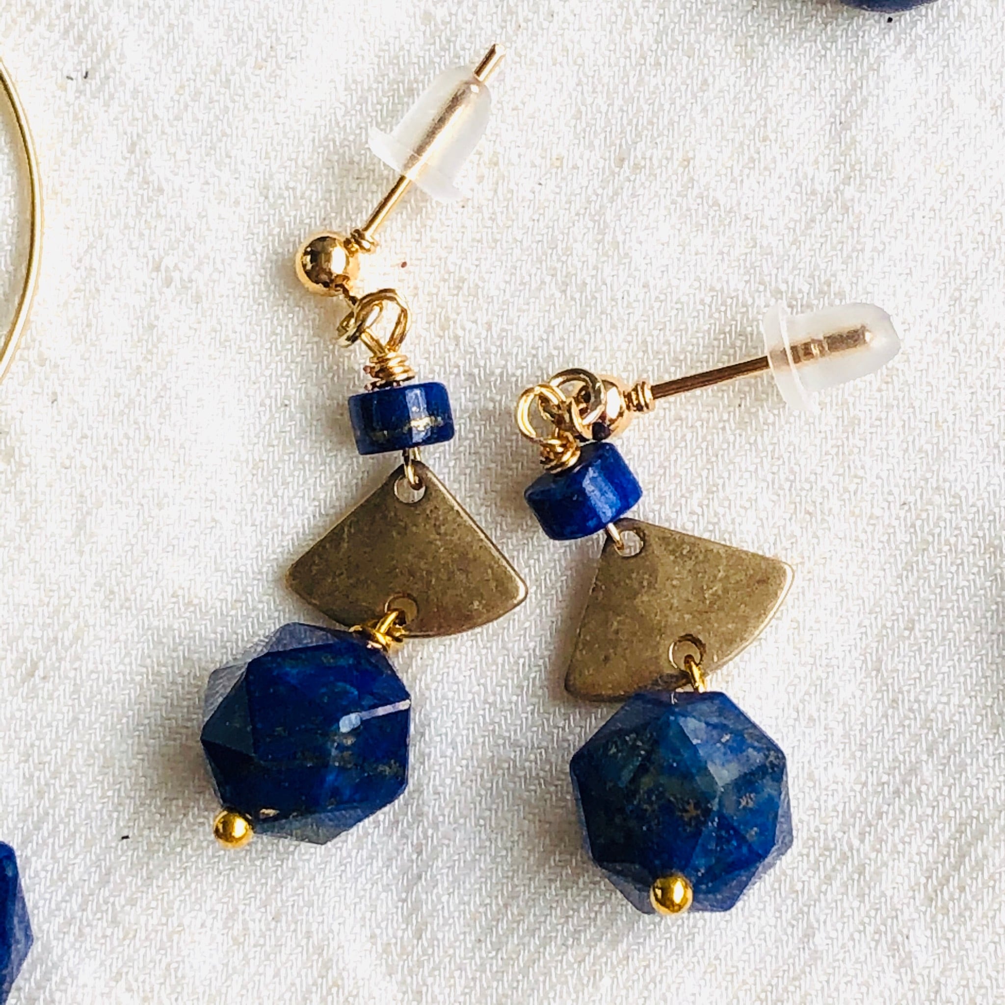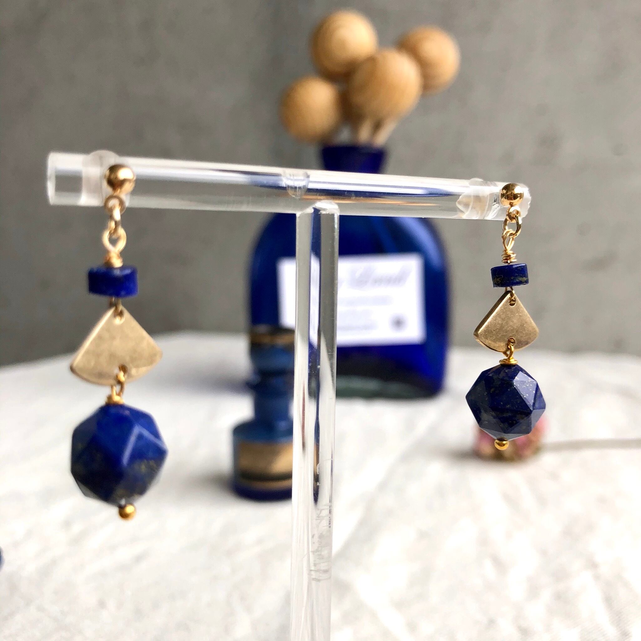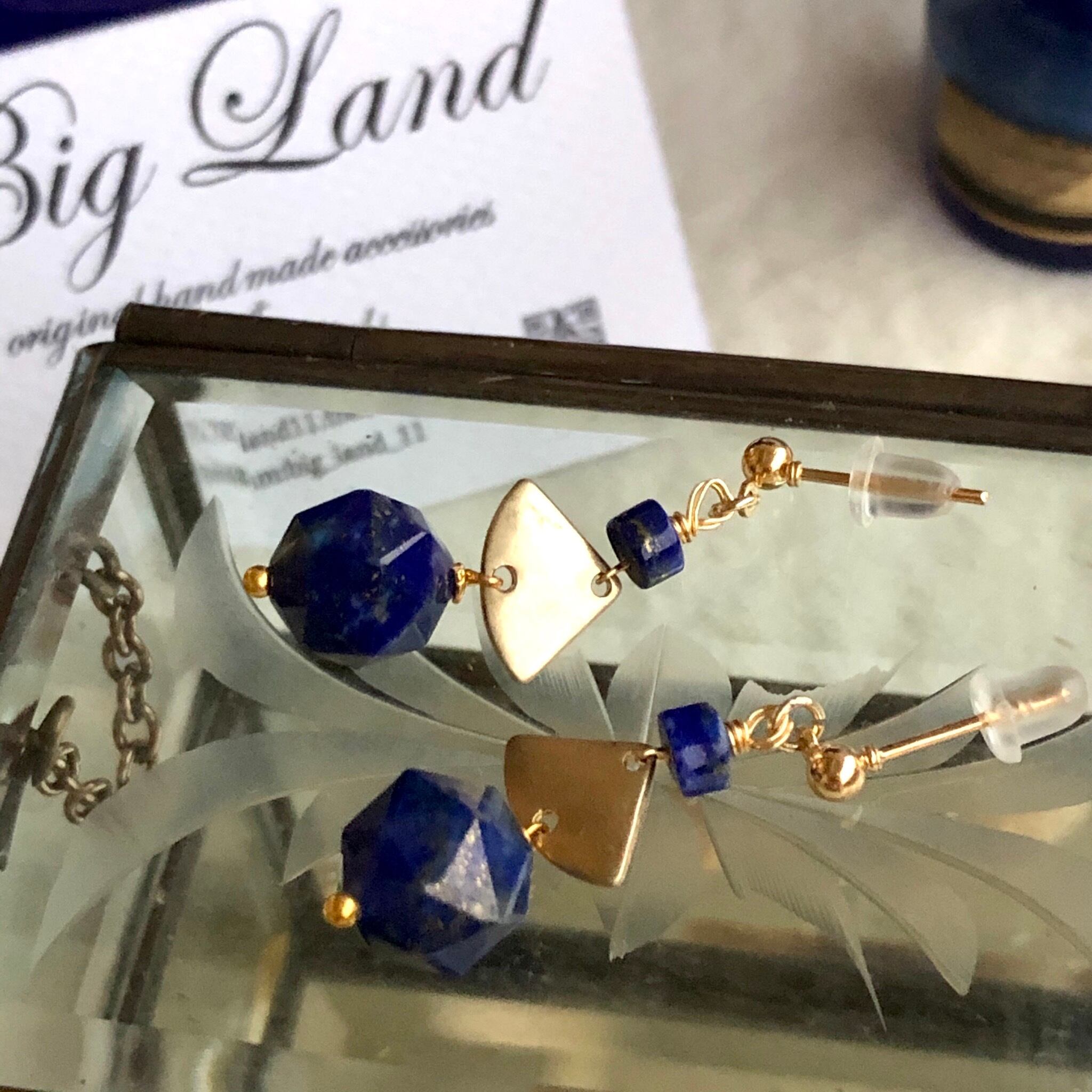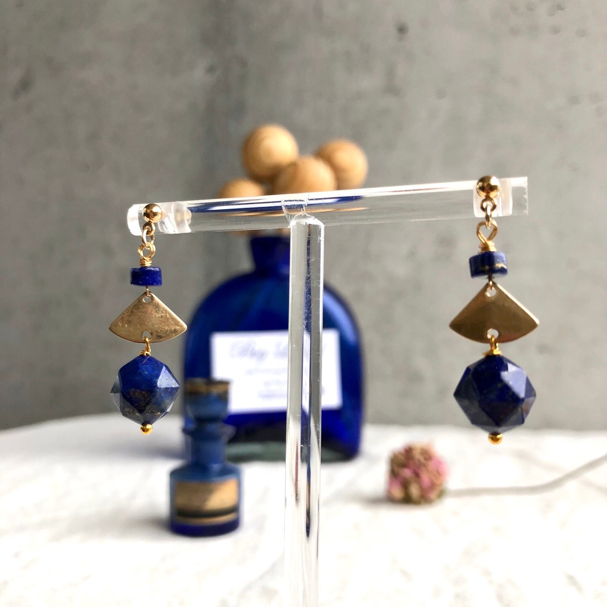 上質カットされた深い青色のラピスラズリとマットゴールドのコントラストが何とも言えない神秘さと妖艶な美しさ....ネックレスやブレス等セットで12月のお誕生日プレゼントにも使えそうですね!