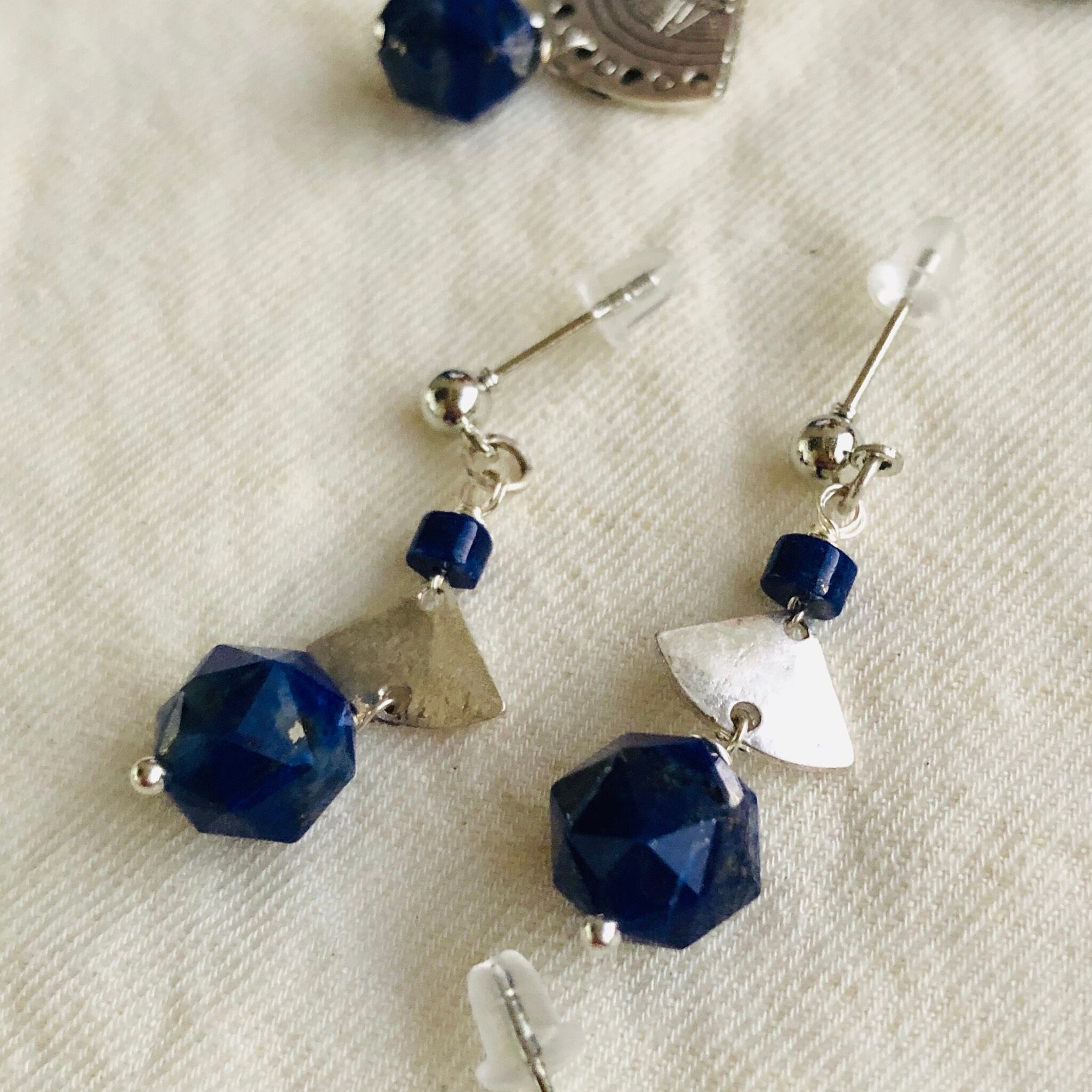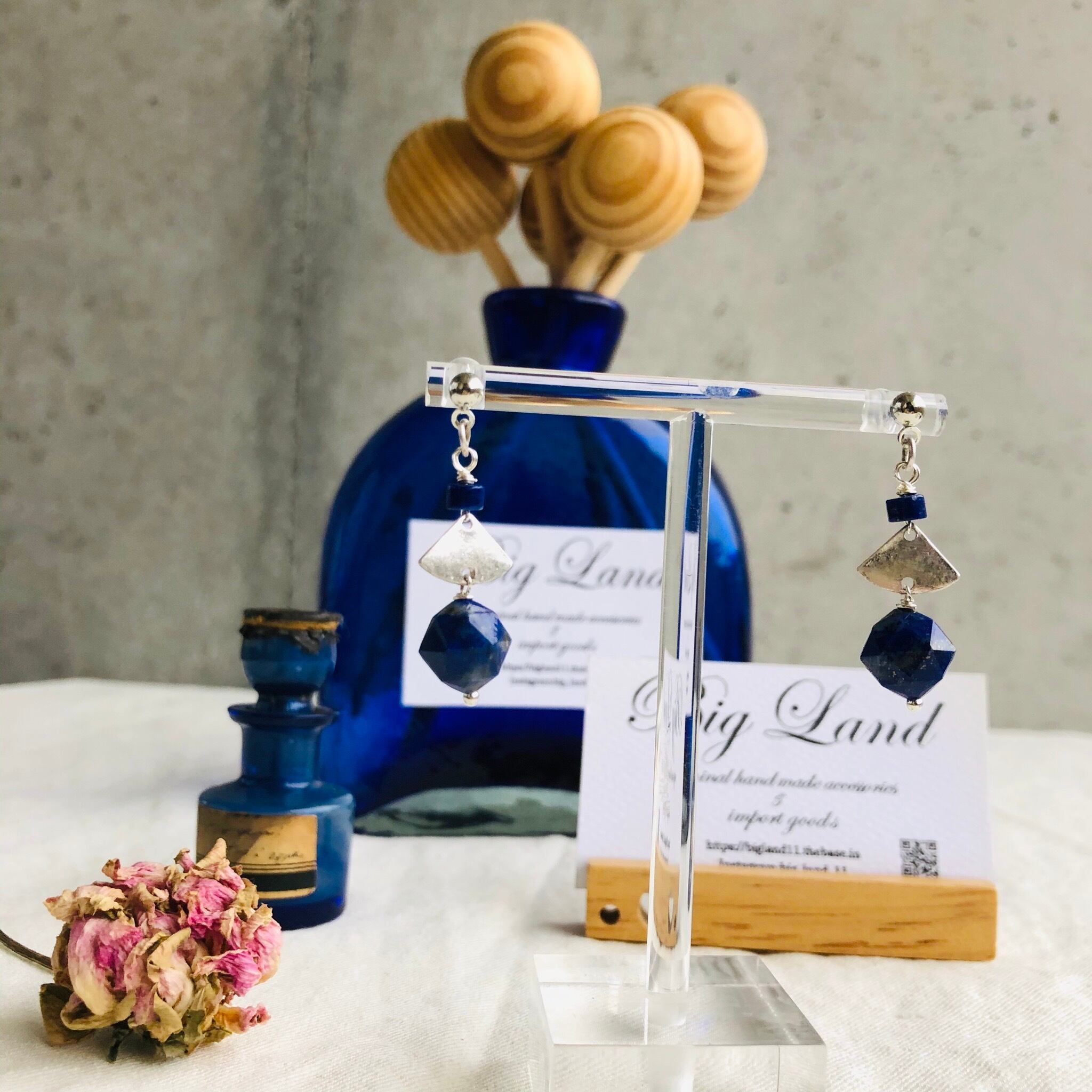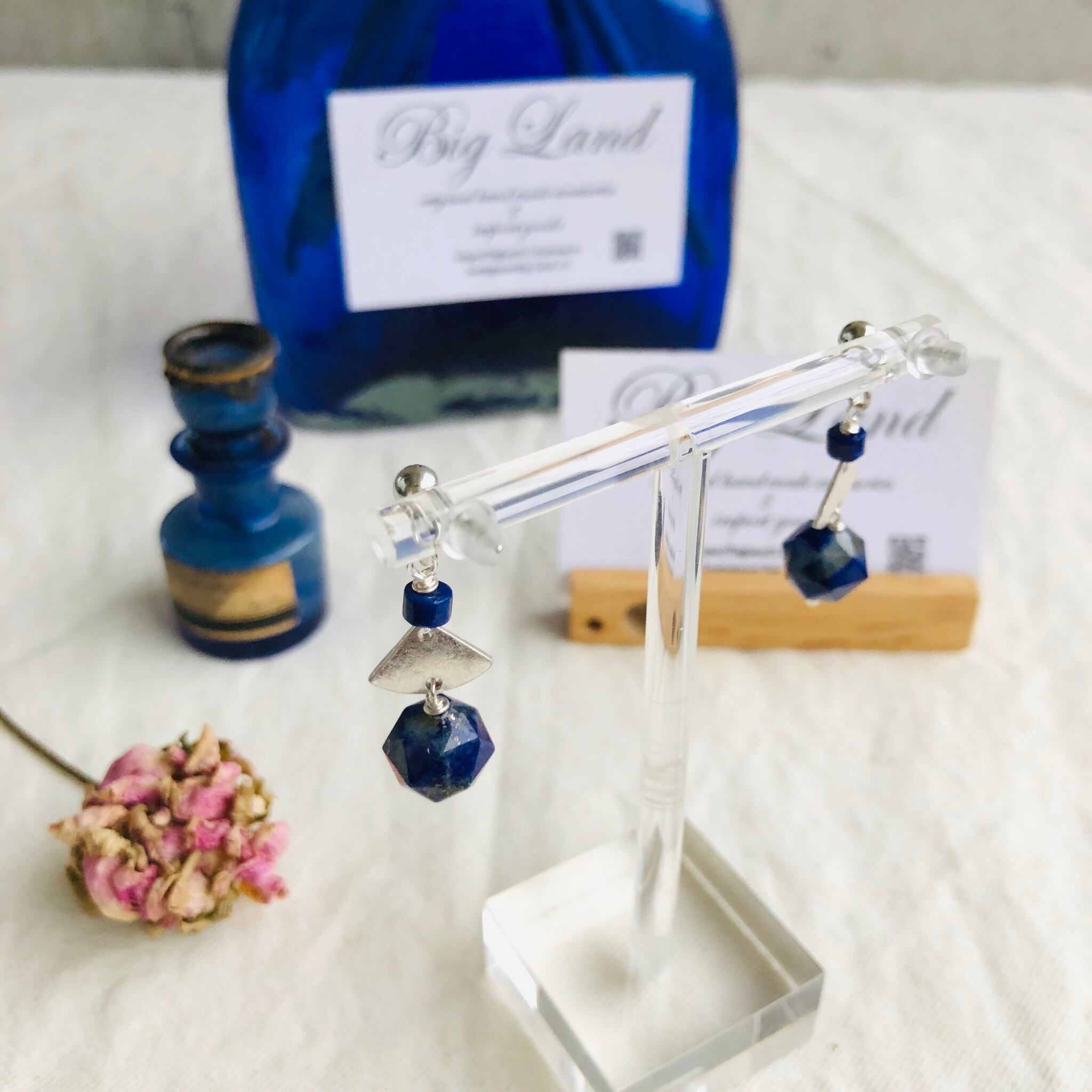 上質カットされた深い青色のラピスラズリとマットシルバーのコントラストが何とも言えない神秘さと妖艶な美しさで涼しそうな色合い✨