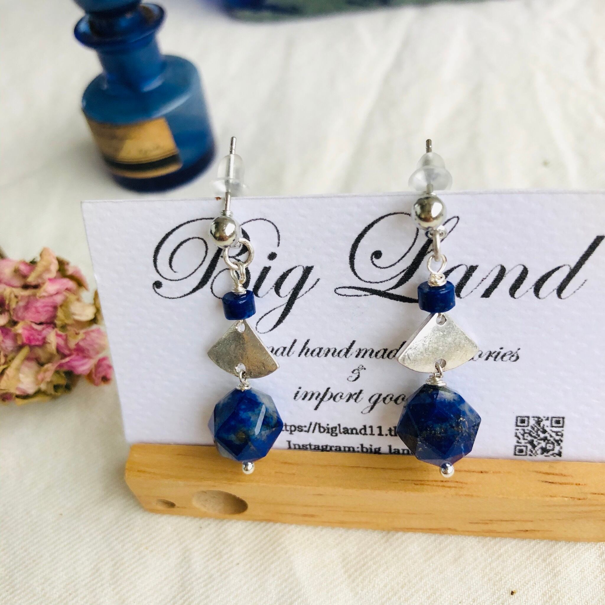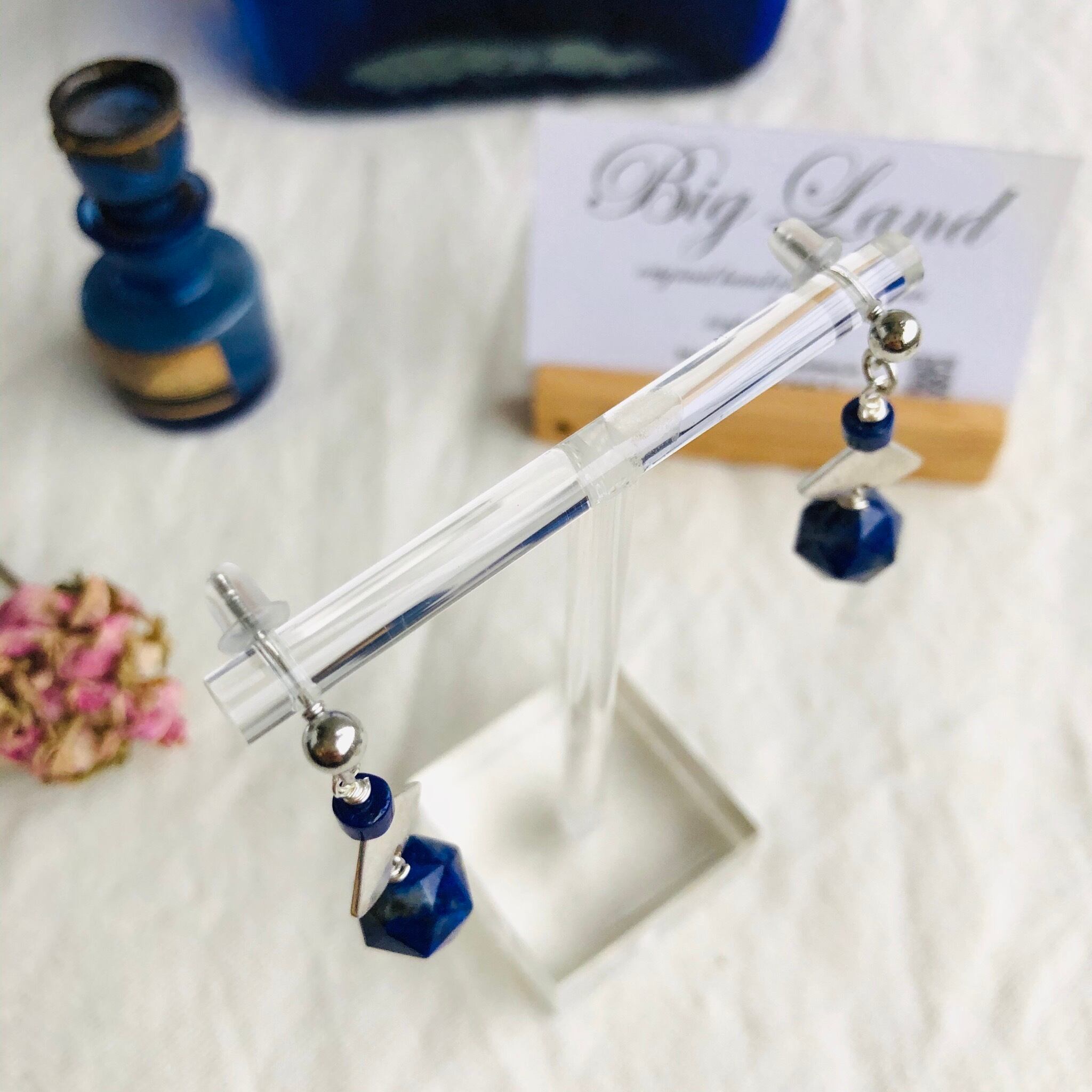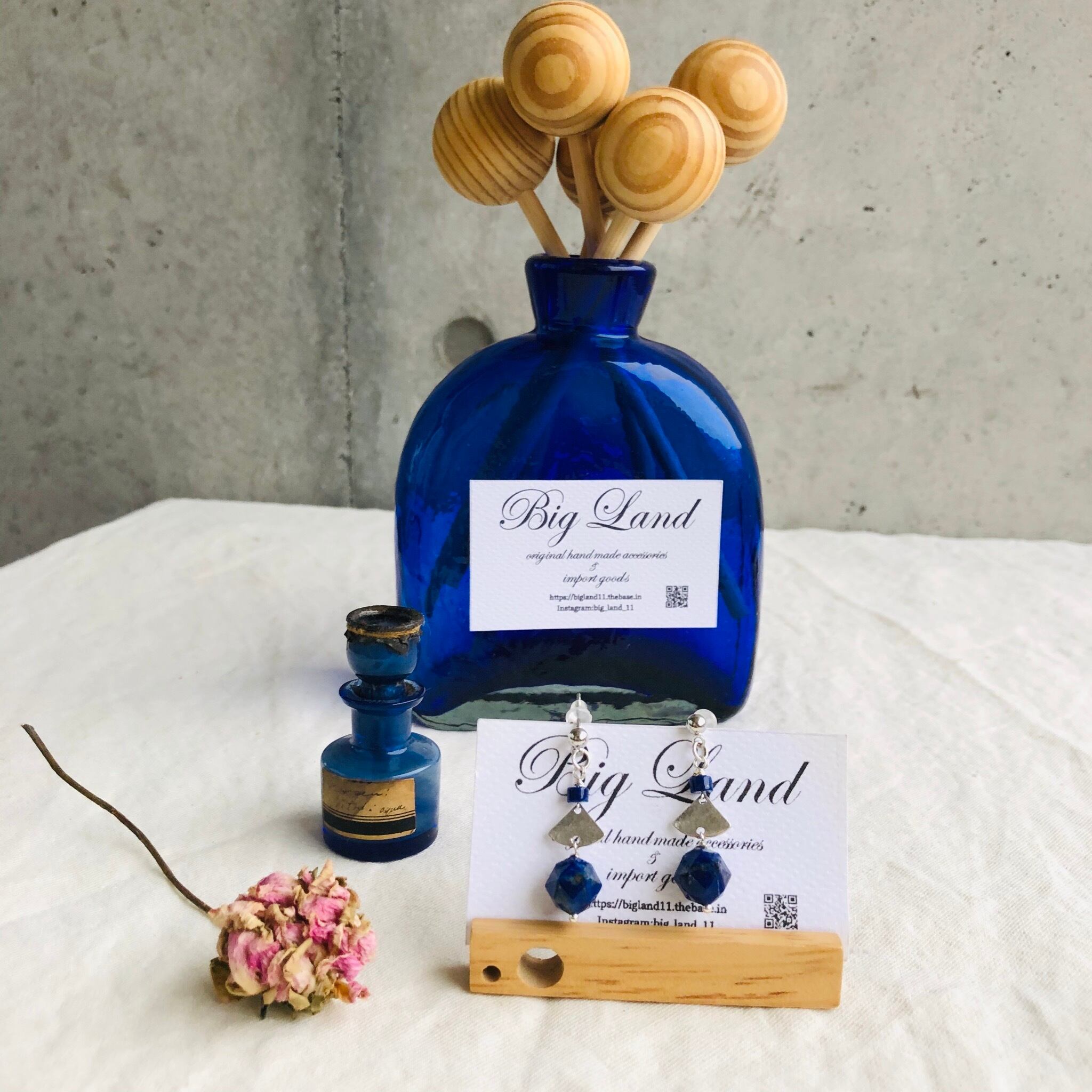 上質カットされた深い青色のラピスラズリとマットシルバーのコントラストが何とも言えない神秘さと妖艶な美しさで涼しそうな色合い✨