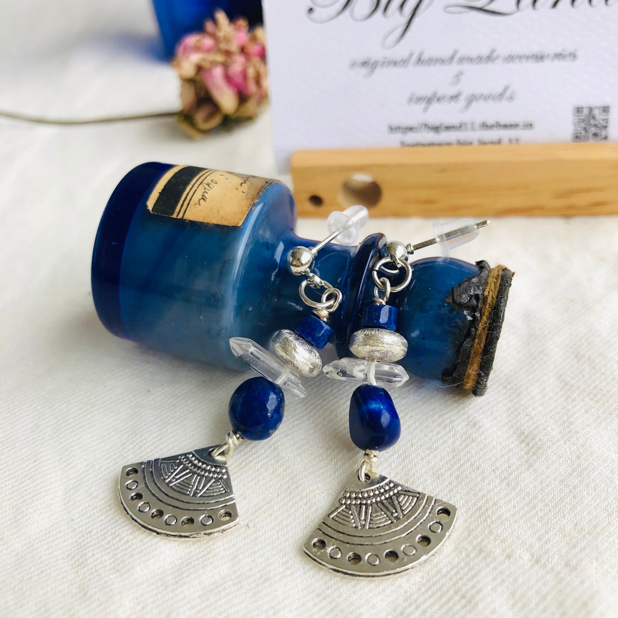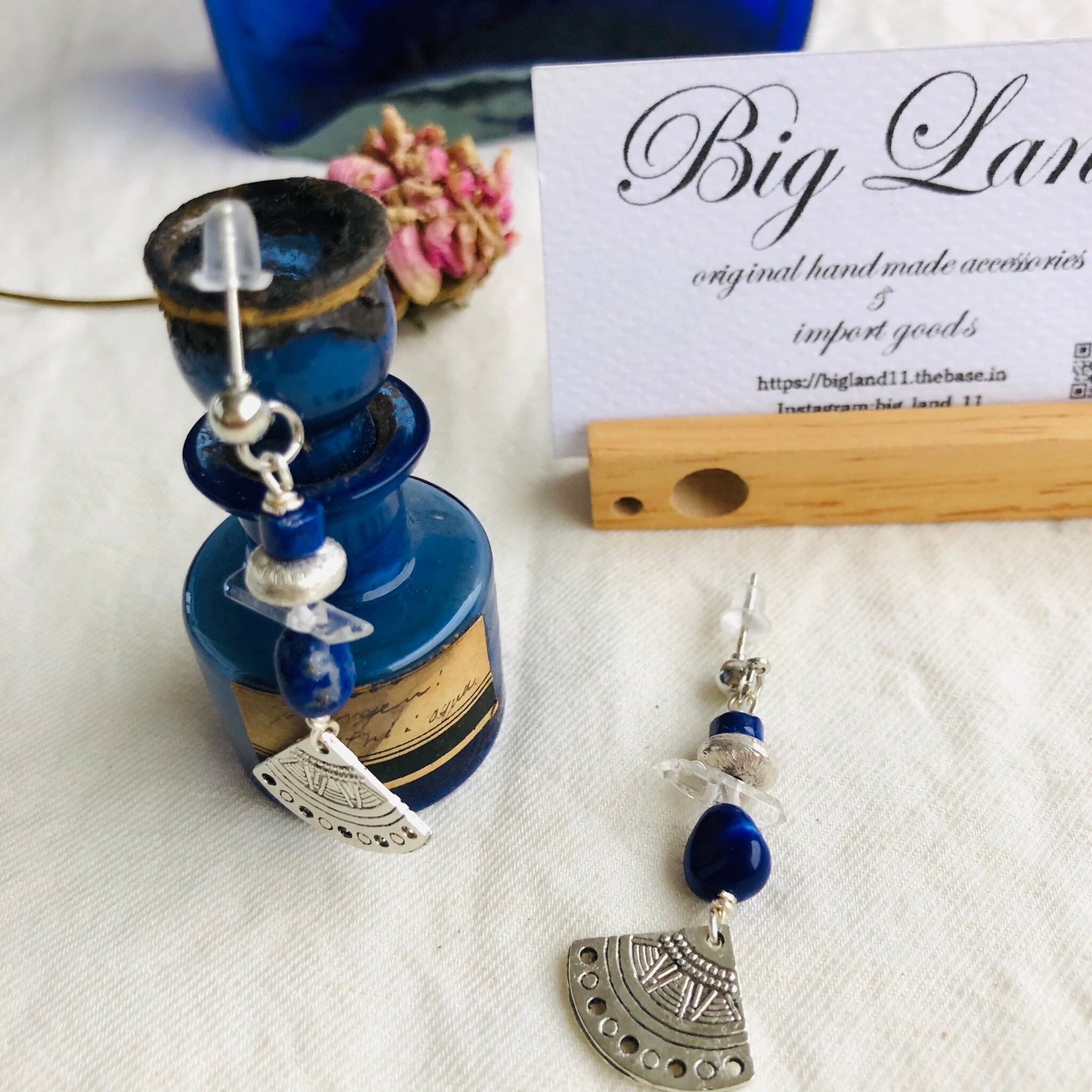 深い青色のラピスラズリとネイティブ柄のデザインやカレンシルバーでカジュアル好きな方にもオススメで、カフタンシャツ、ワンピ、デニム等幅広いコーデに使えます^o^