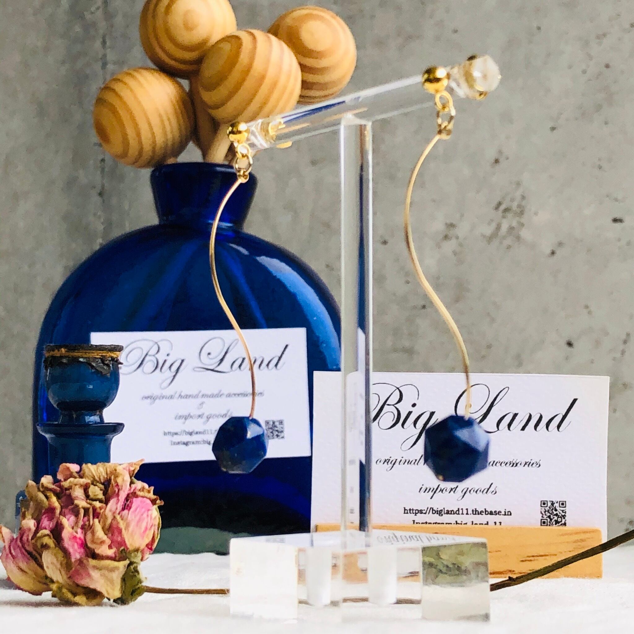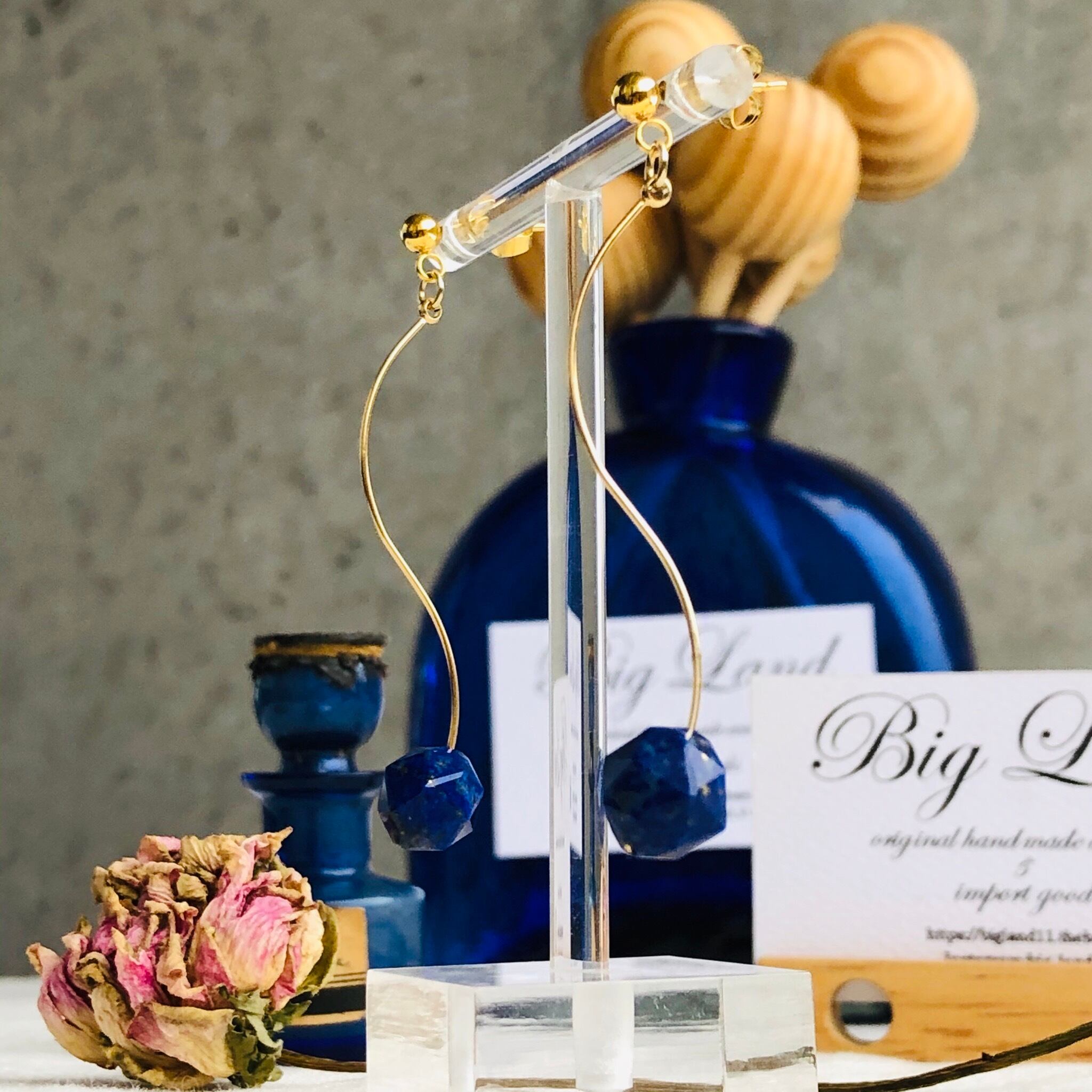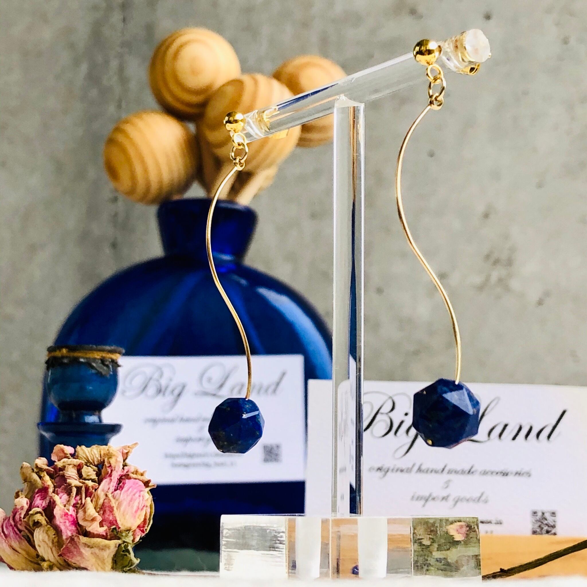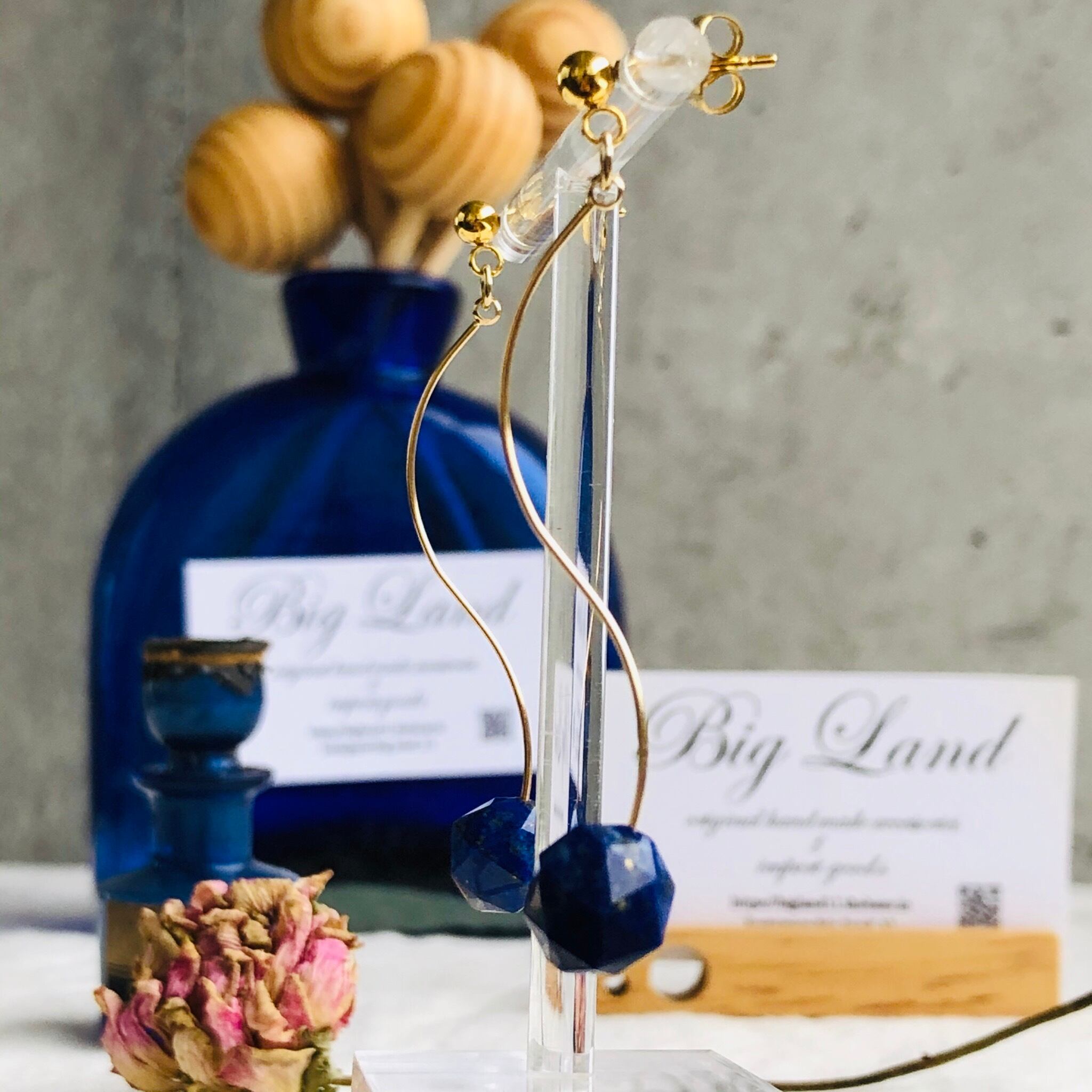 上質カットされた深い青色のラピスラズリが滑らかな曲線の先でキラキラ輝き洗練された雰囲気で