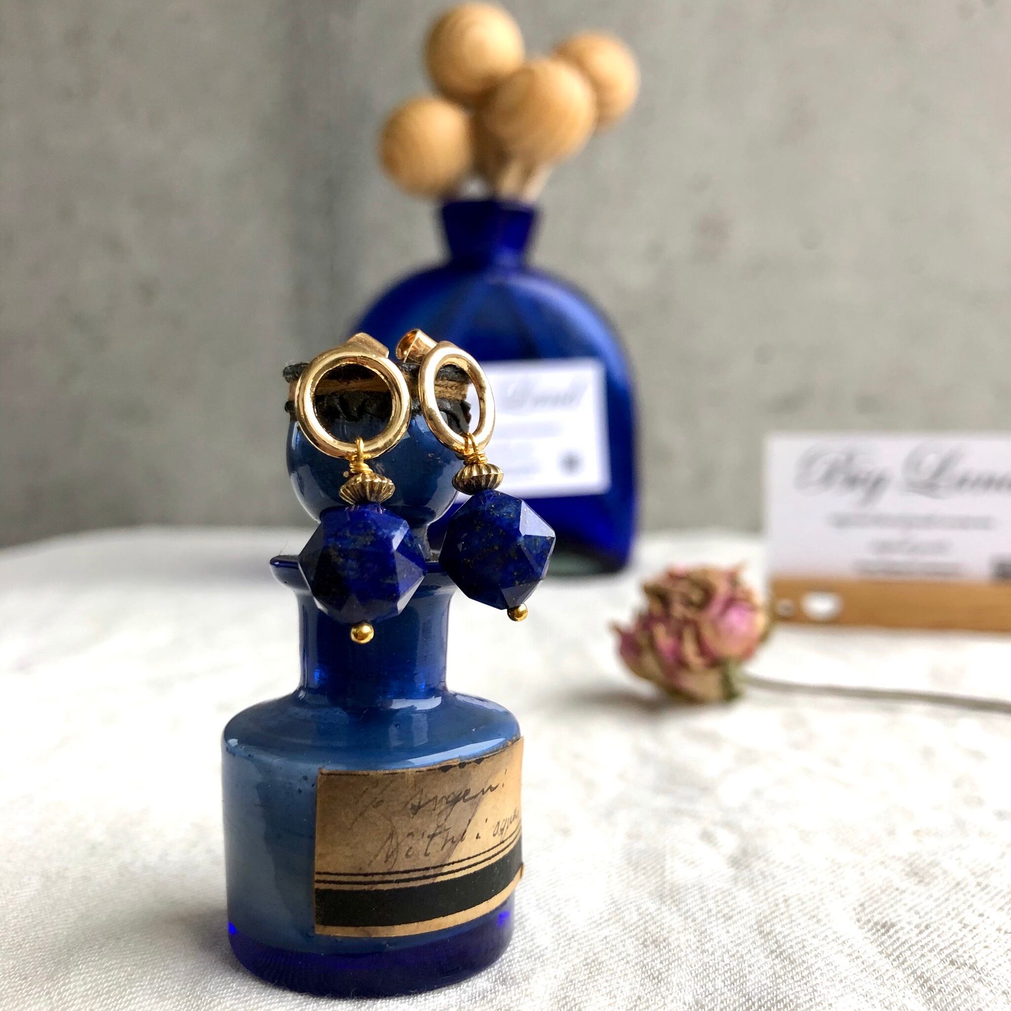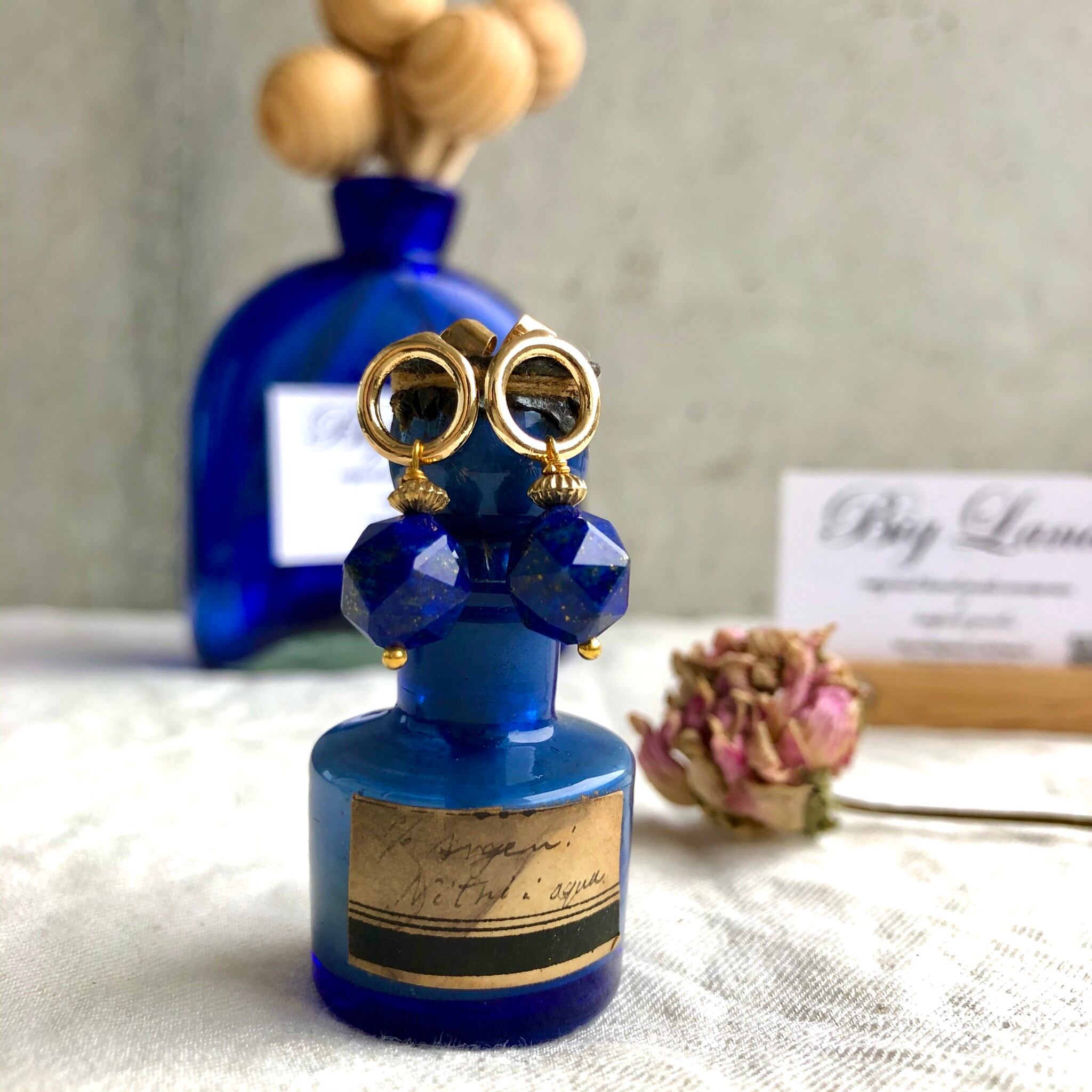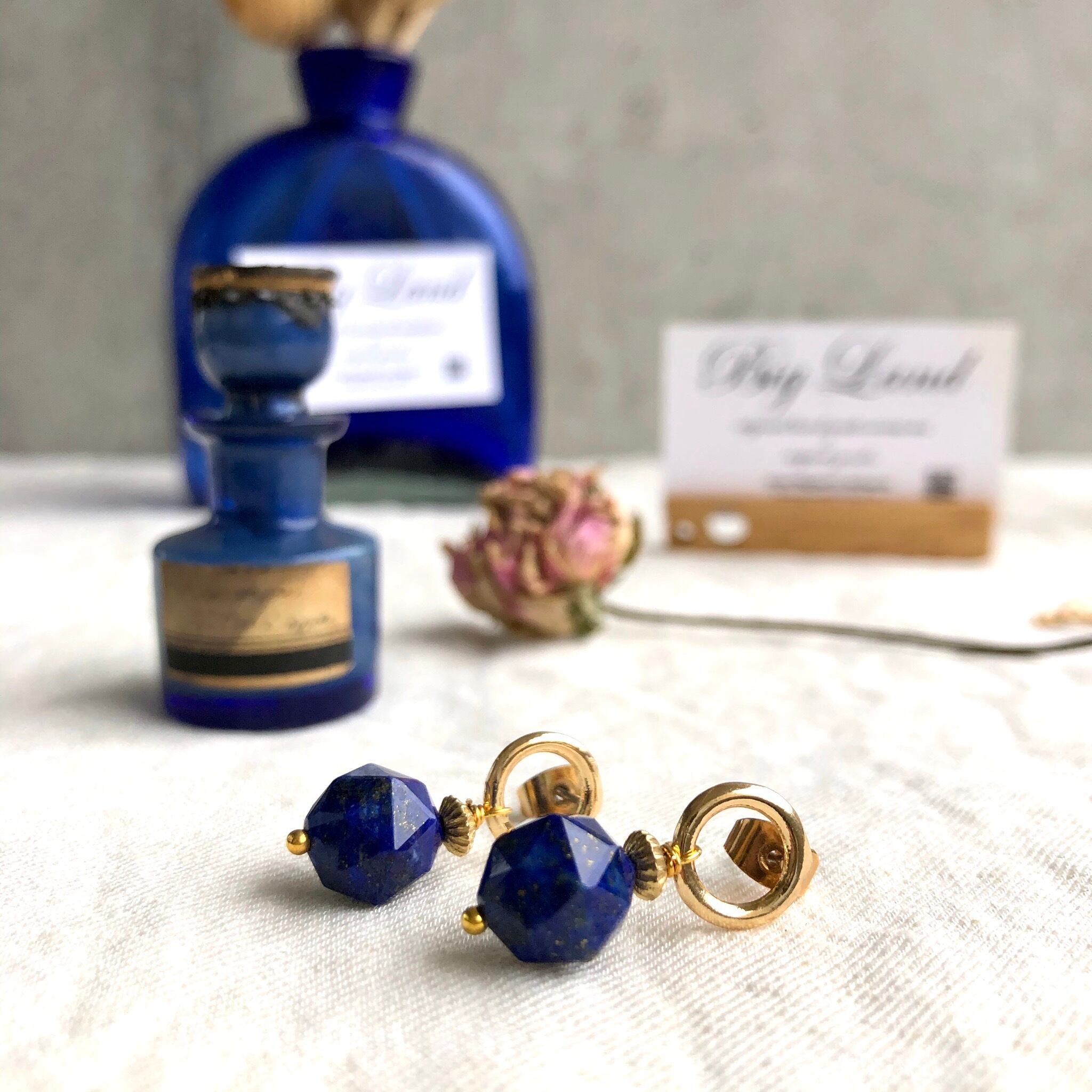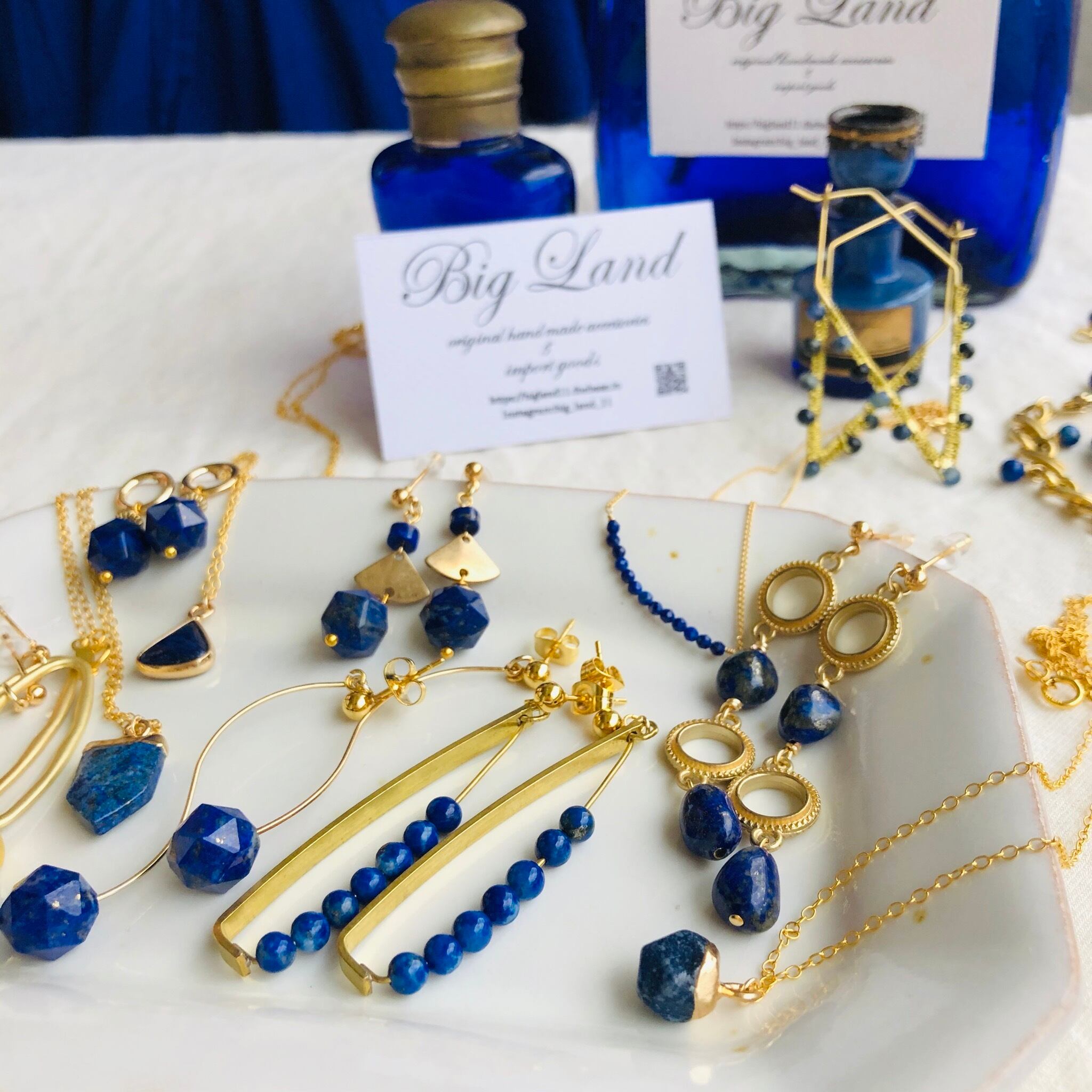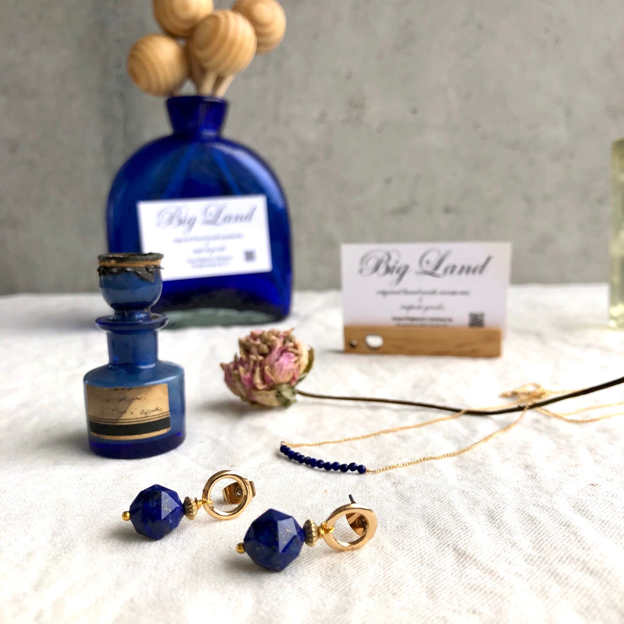 上質カットされた深い青色のラピスラズリが輝きシンプルながらも洗練された組み合わせにし職場コーデにも使えそうなさり気ないサイズ感‼️