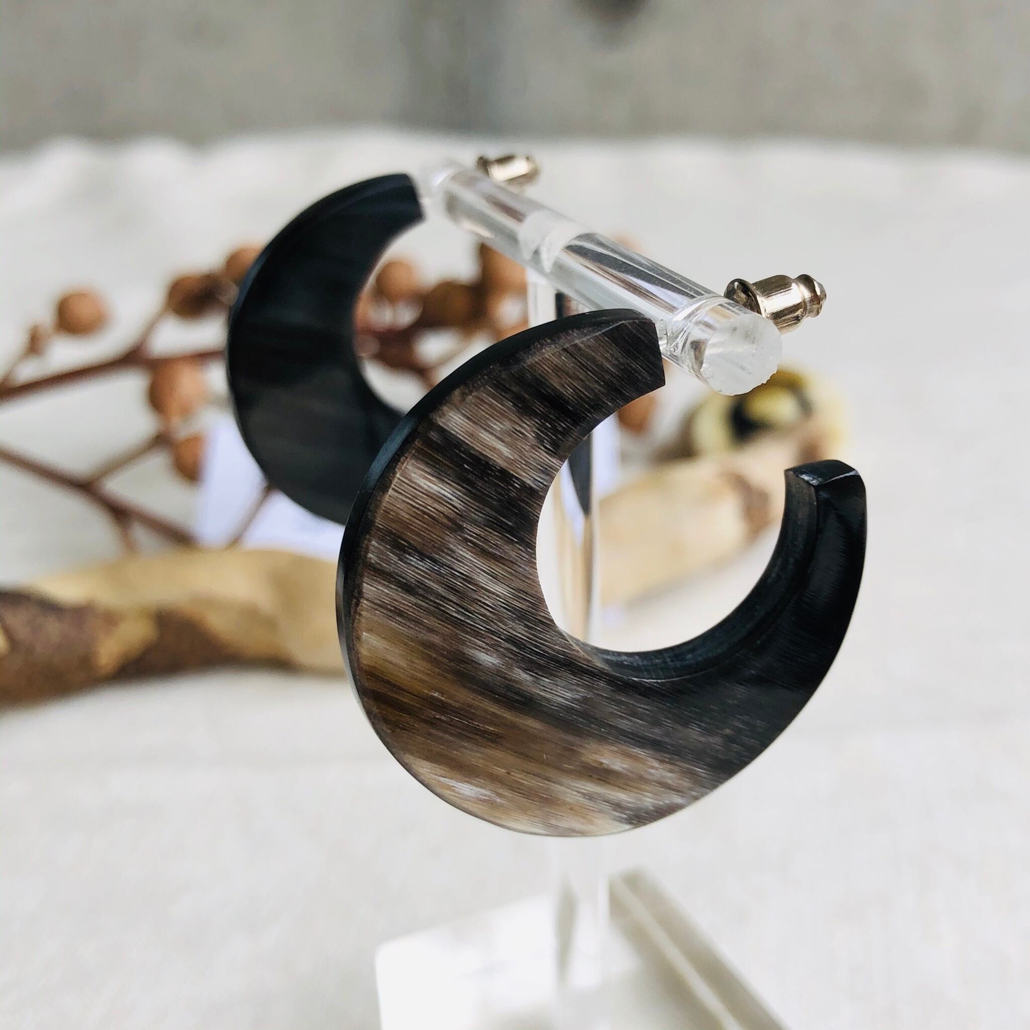 トレンドの水牛角で作られた個性が光る霜降りな柄のピアス✨