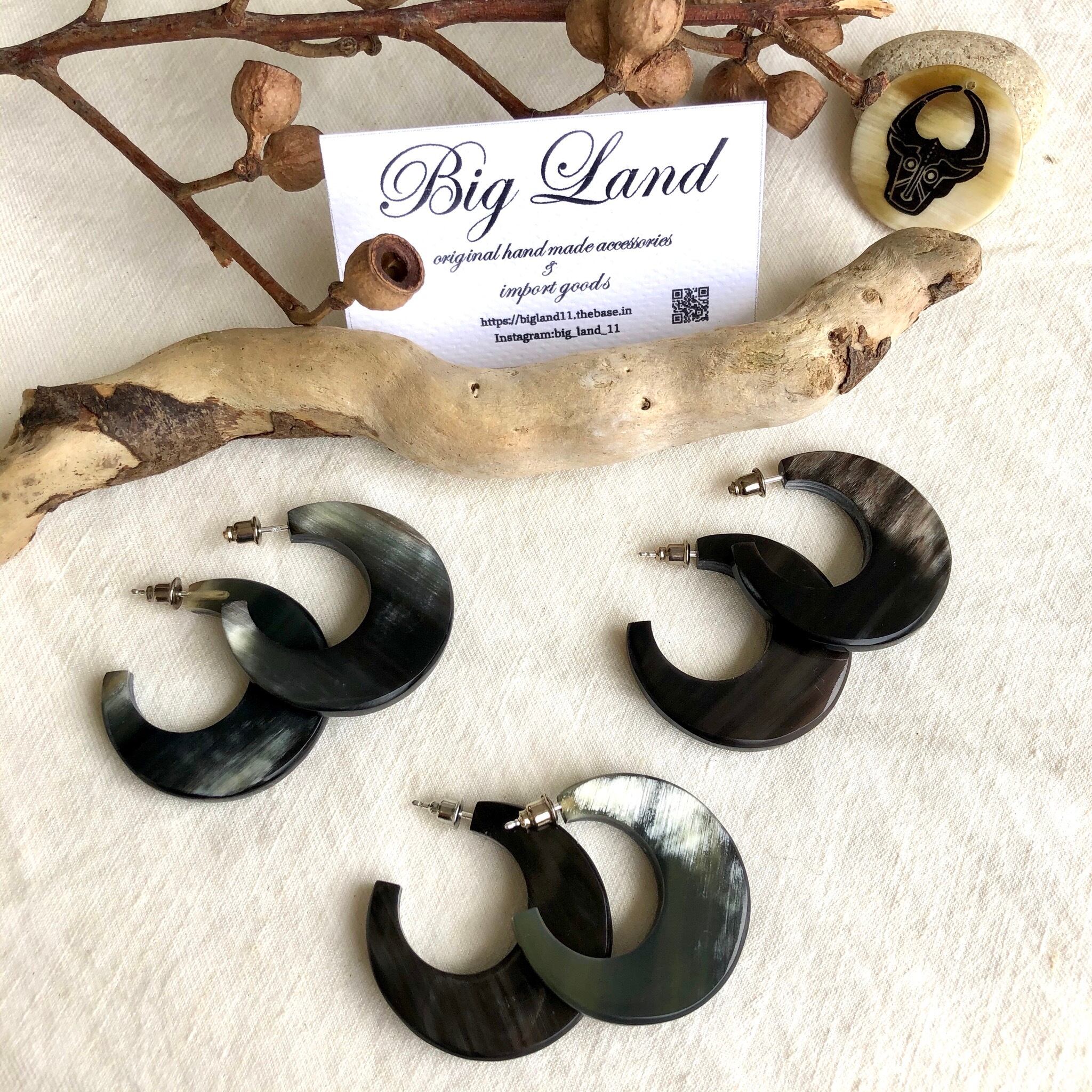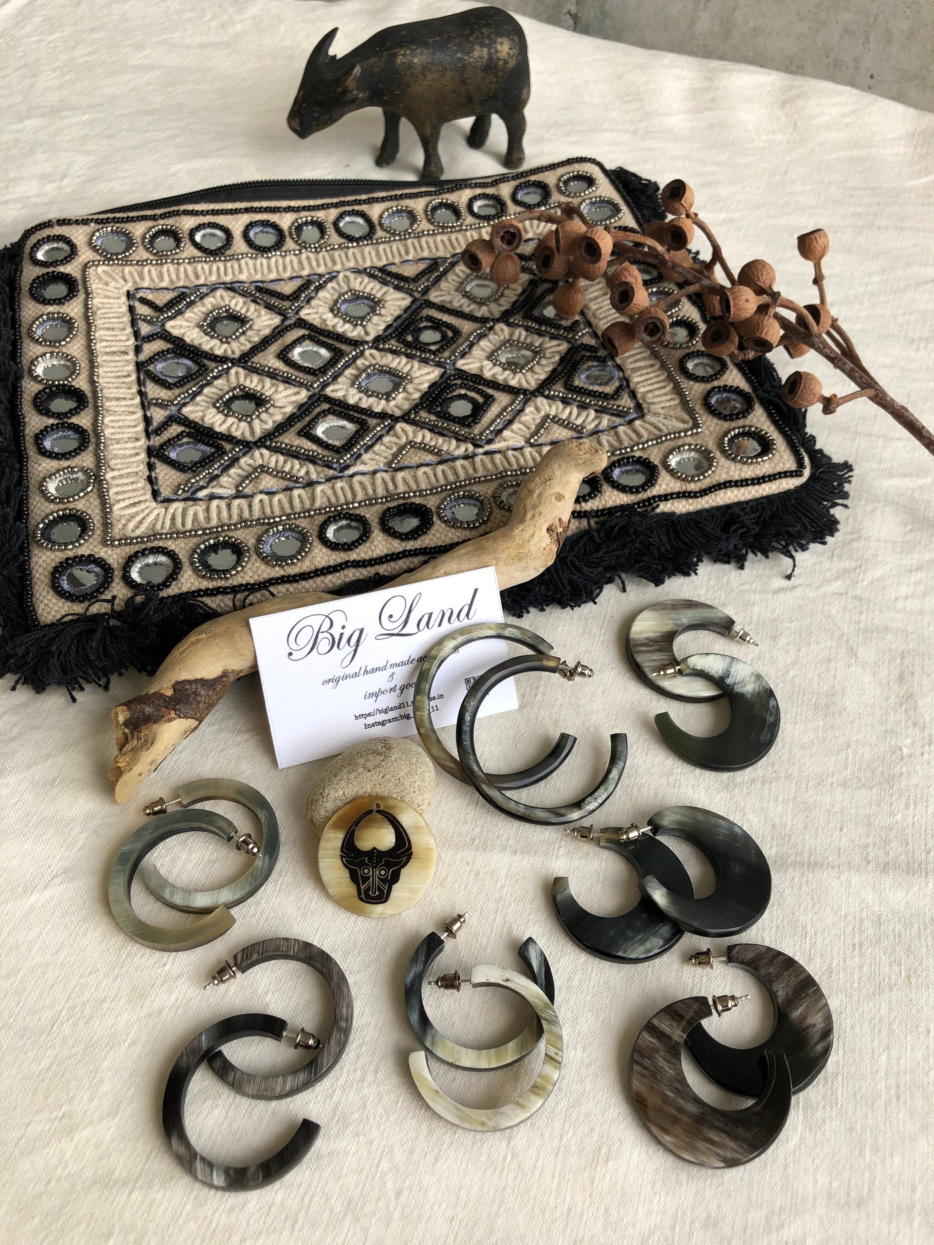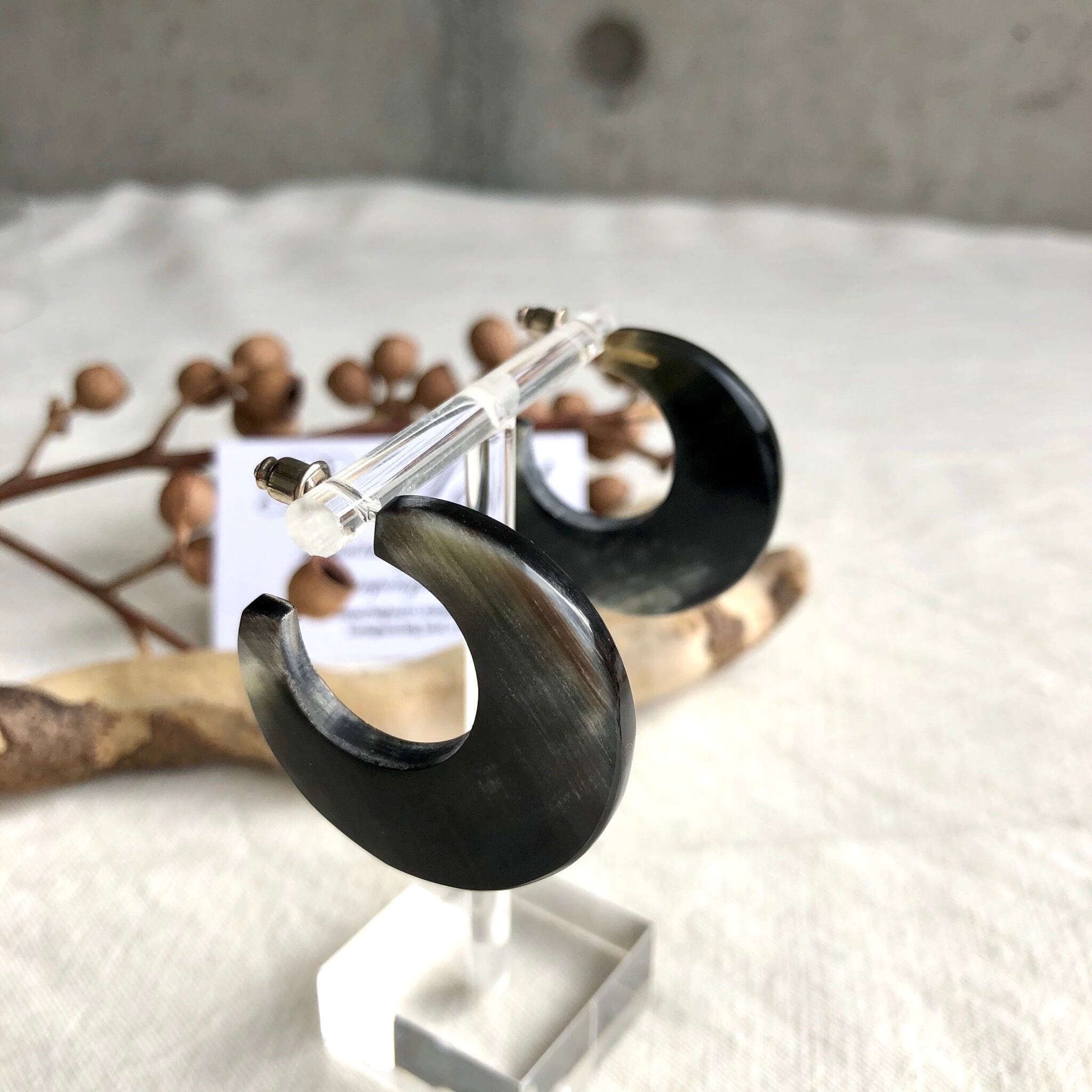 トレンドの水牛角で作られた個性が光る霜降りな柄のピアス✨