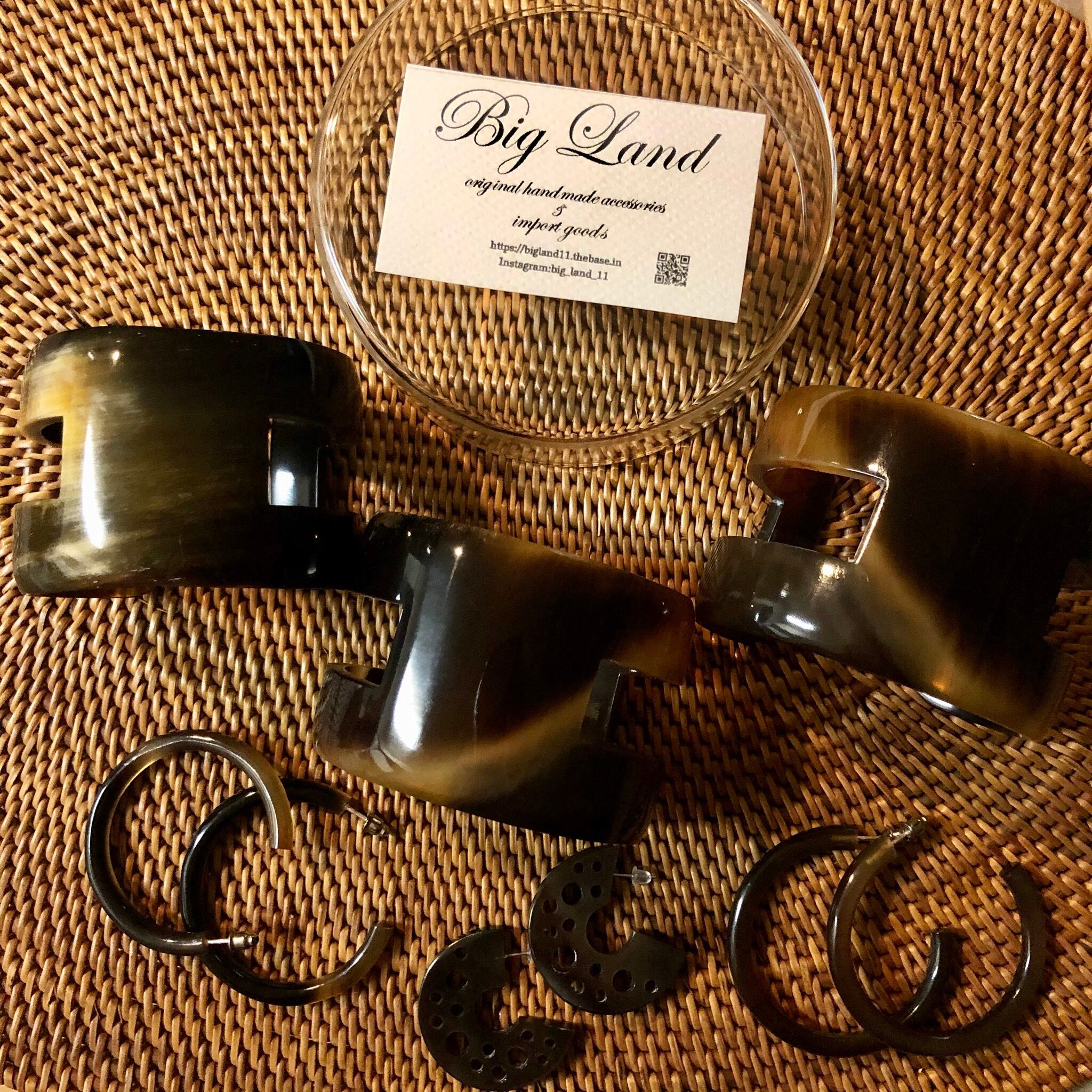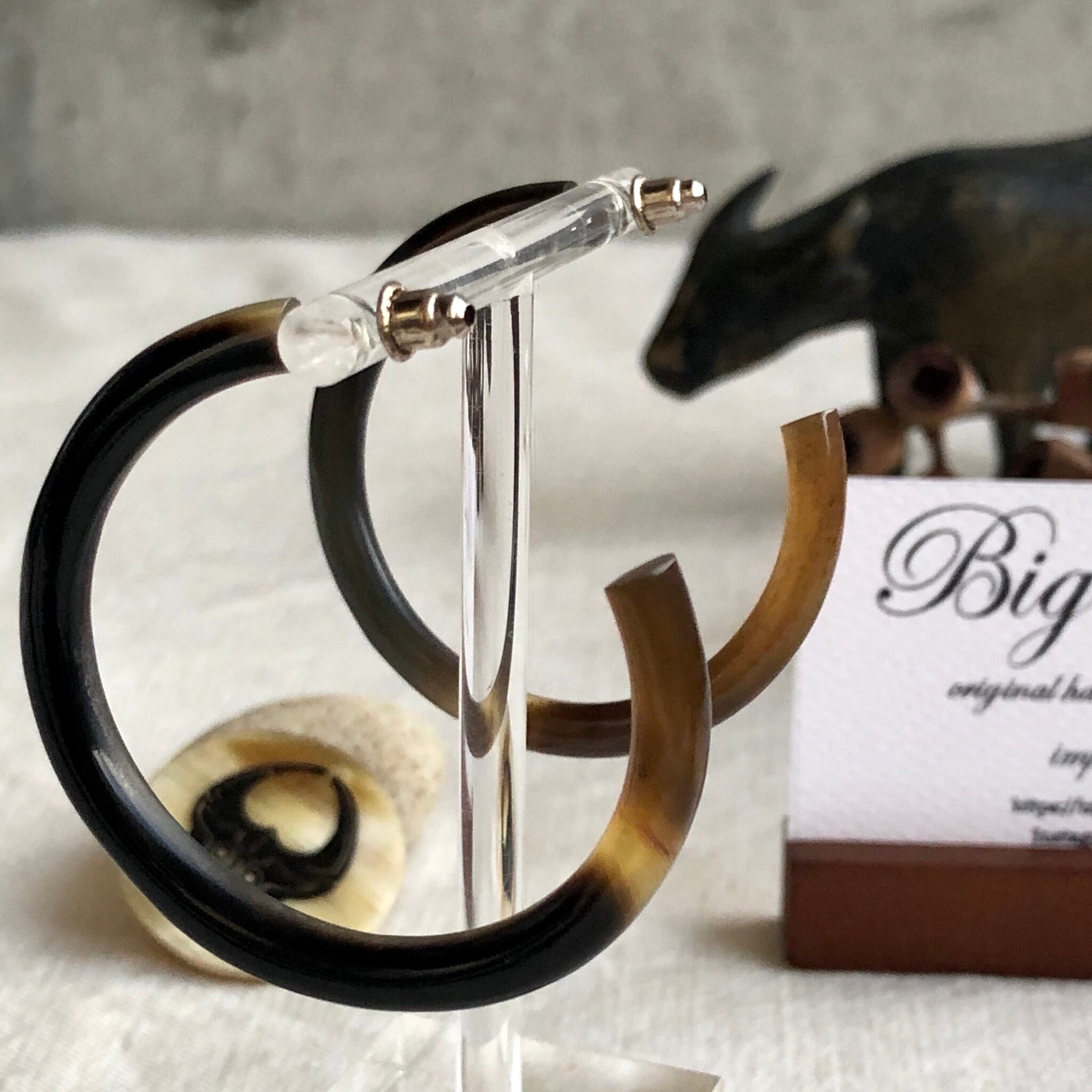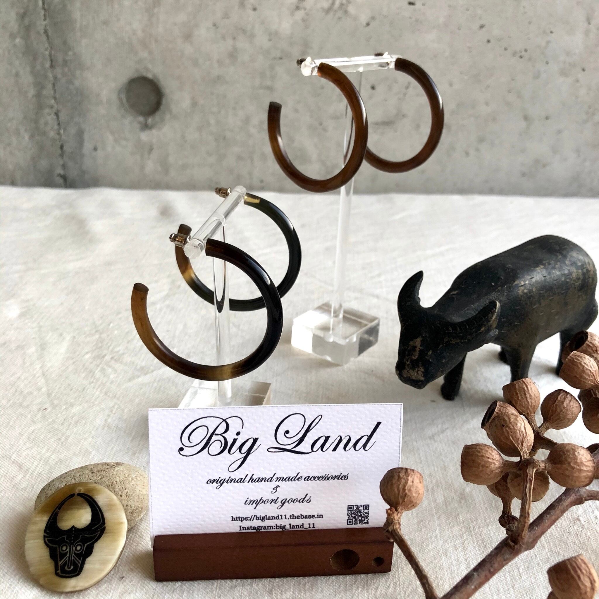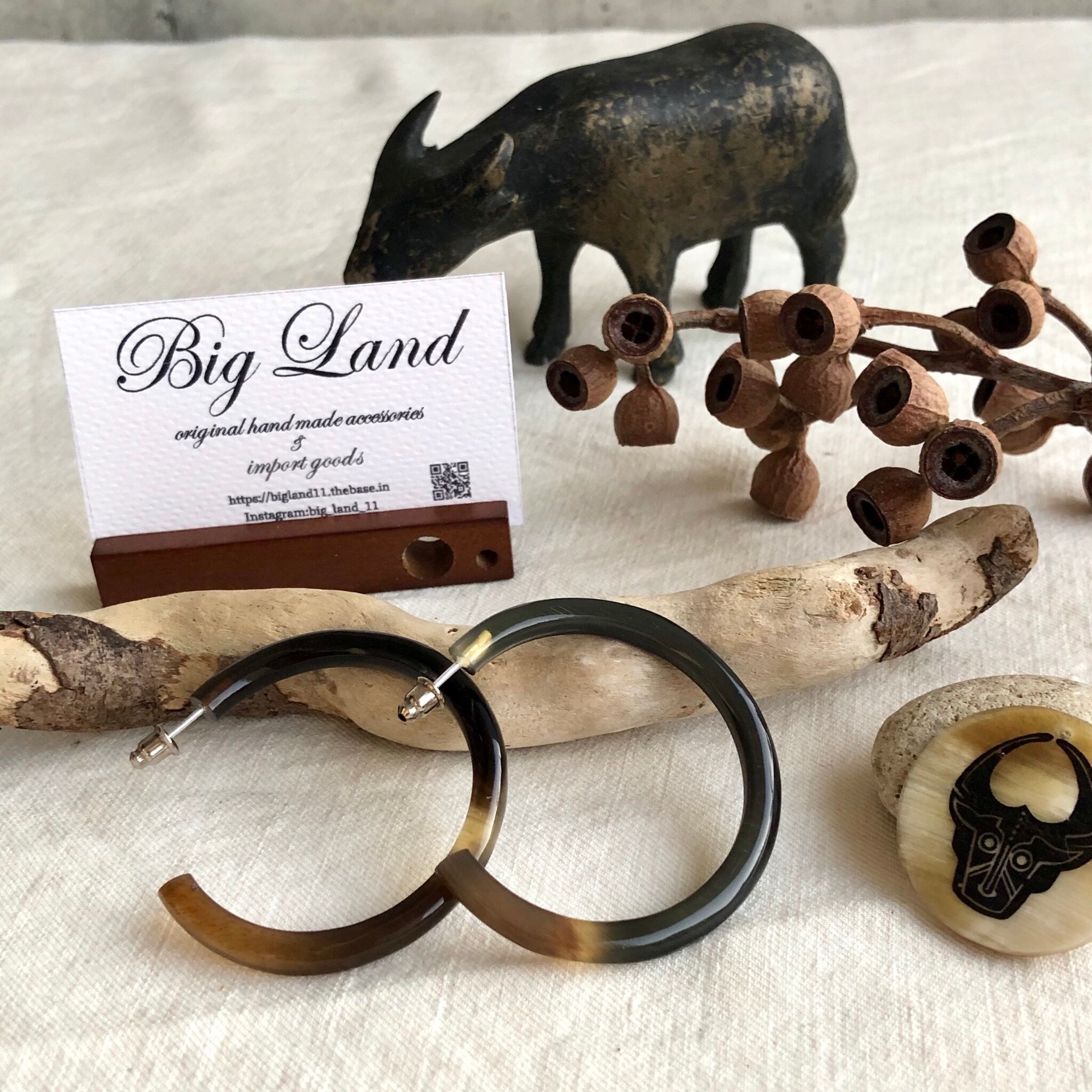 水牛ならではの柄は一点モノで、べっ甲好きな方には大好物な色柄で直径約4.5cmの存在感‼️これから冬になるとお顔まわりにお洋服やストールでボリュームが出るので大振りピアスがワンポイントになり小顔効果もあります‼️