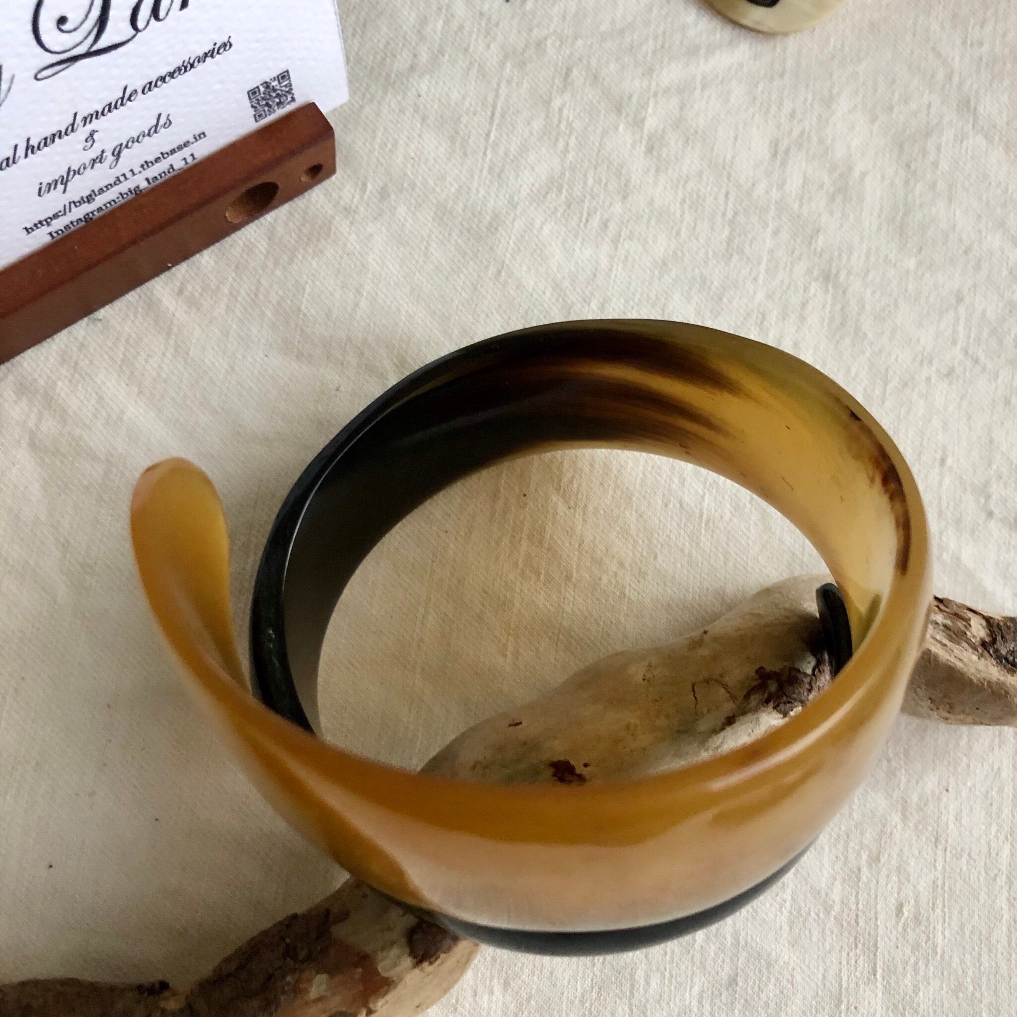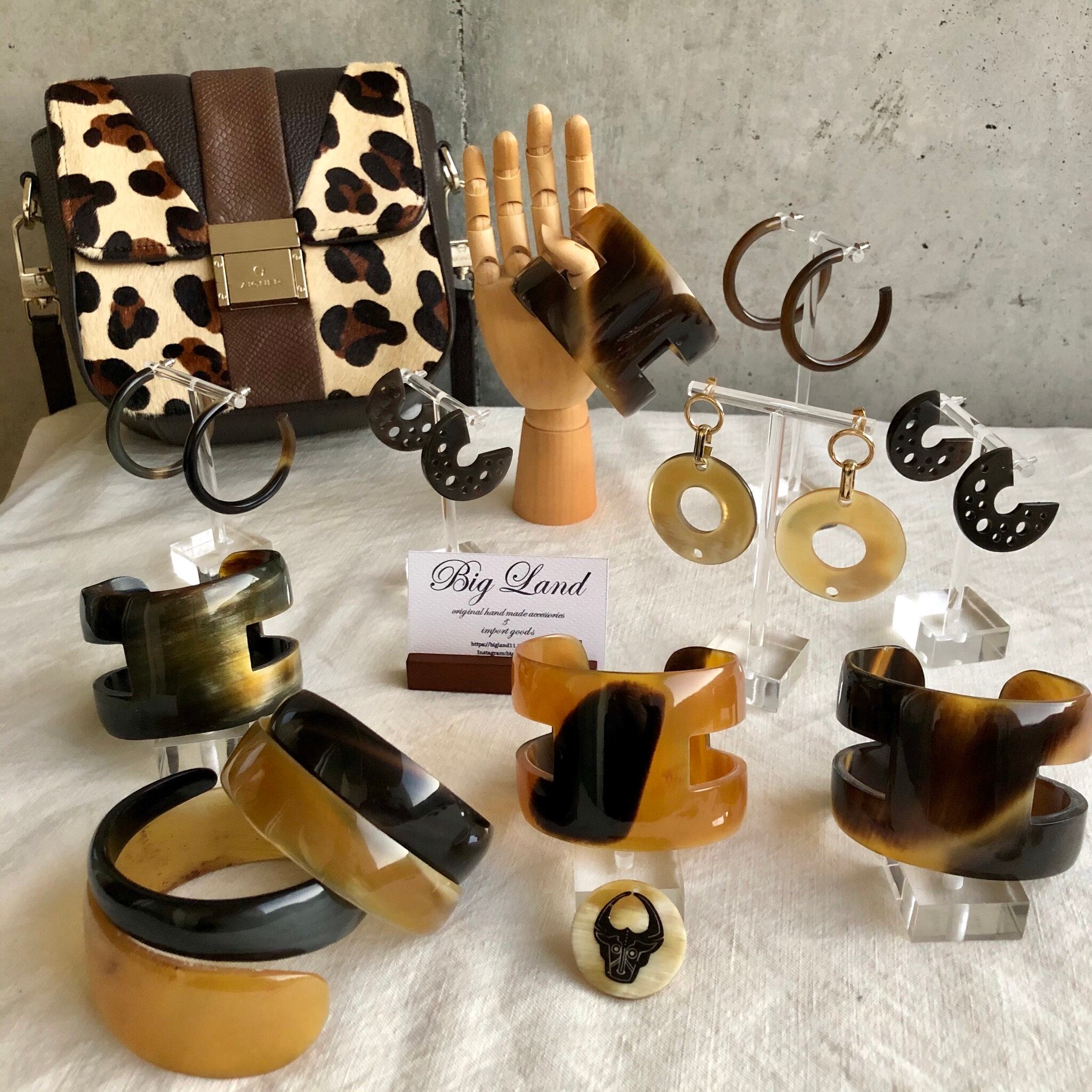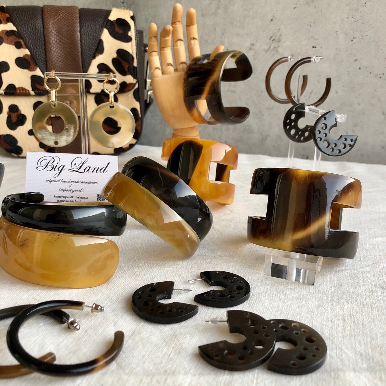 水牛ならではの軽い装着感とこなれたワンランク上の雰囲気を醸し出し、ブラウン&ブラックコーデにオススメで秋冬はニットカットソー等、お洋服の上から装着するとワンポイントになります‼︎