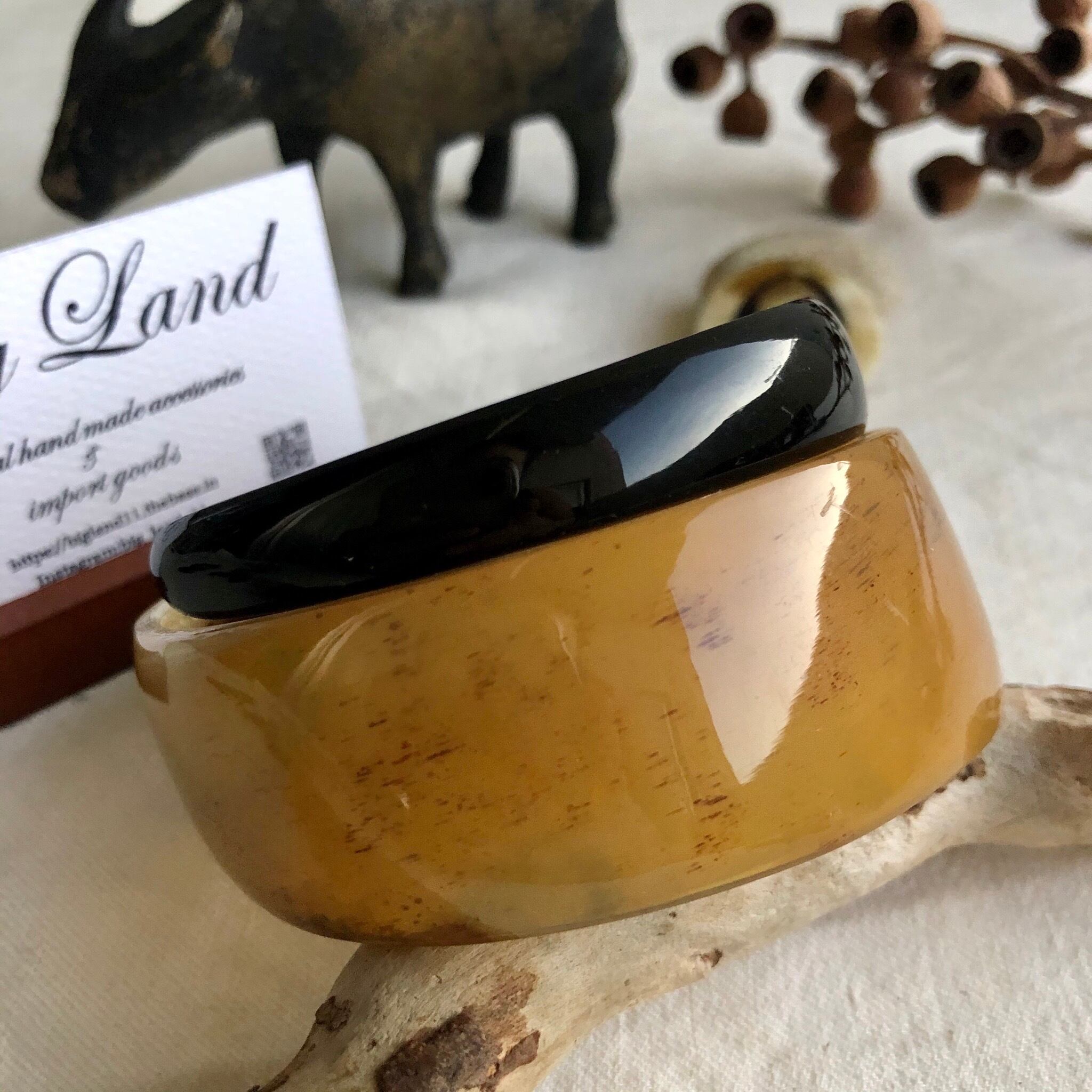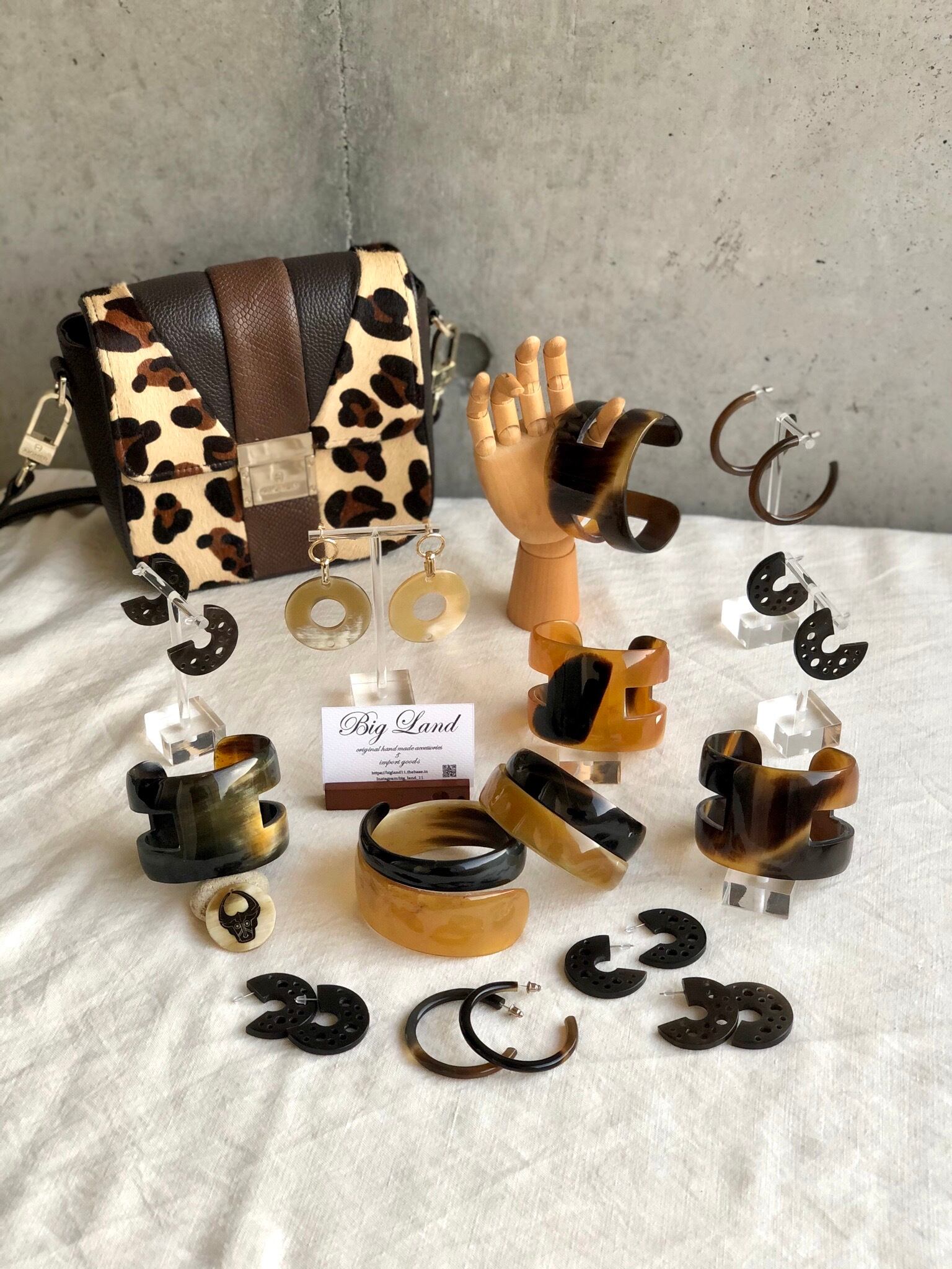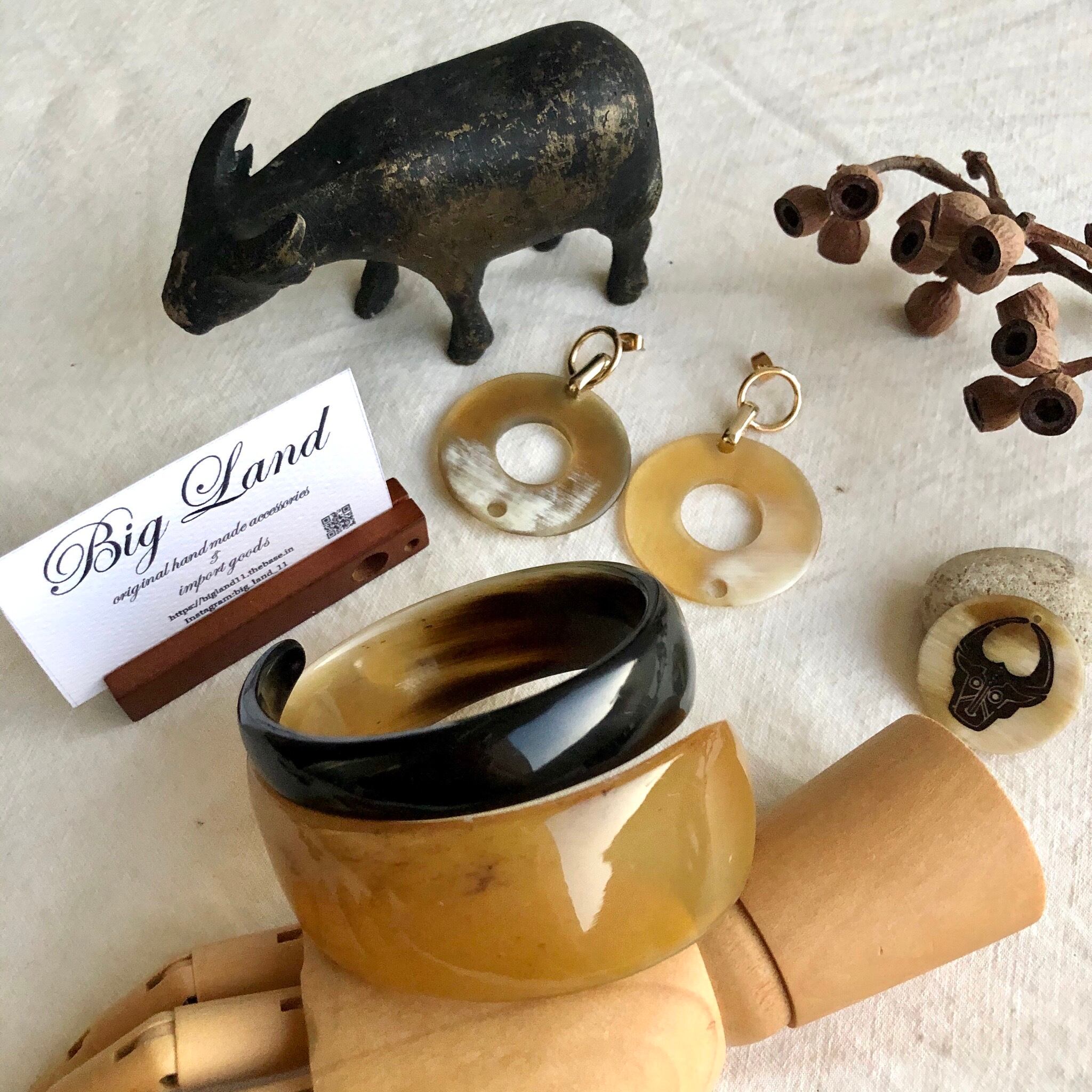水牛ならではの軽い装着感とこなれたワンランク上の雰囲気を醸し出し、ブラウン&ブラックコーデにオススメで秋冬はニットカットソー等、お洋服の上から装着するとワンポイントになります‼︎