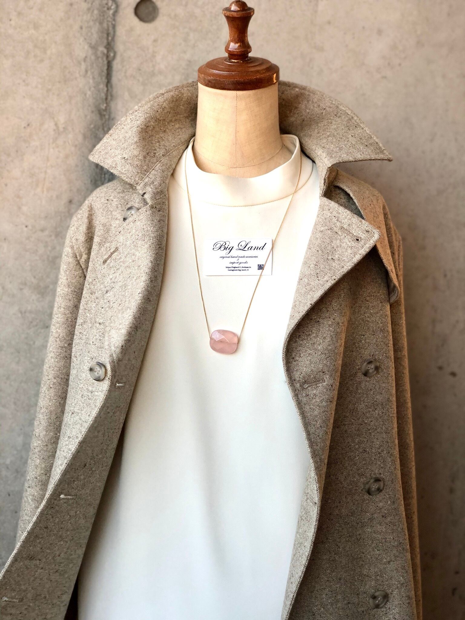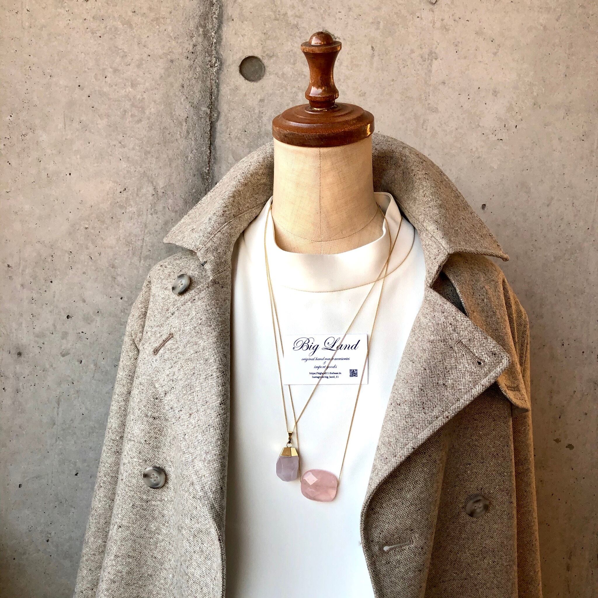 10月誕生石ローズクォーツに多面カットが施された存在感あるロングネックレス✨優しいピンク色で女子力アップ^o^
