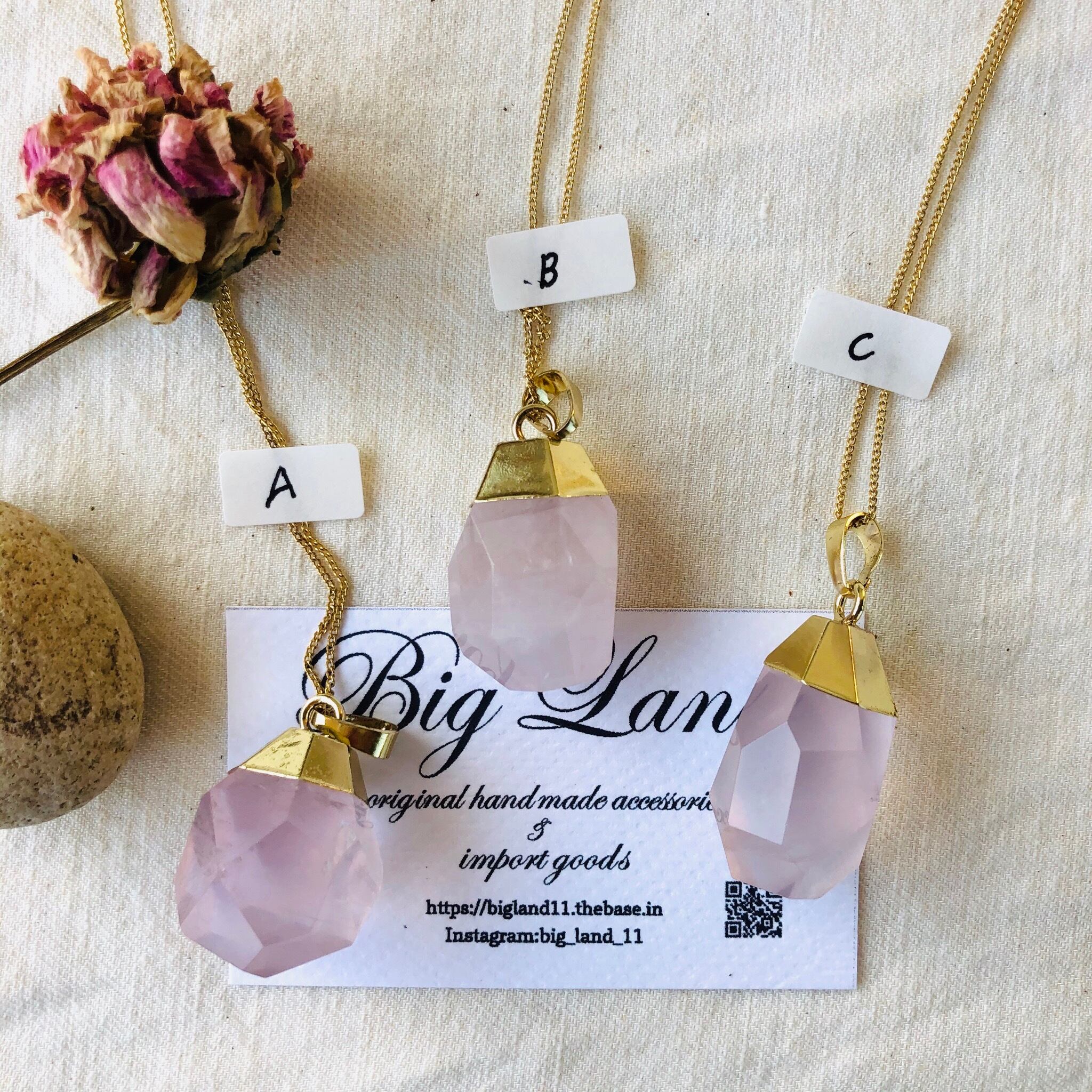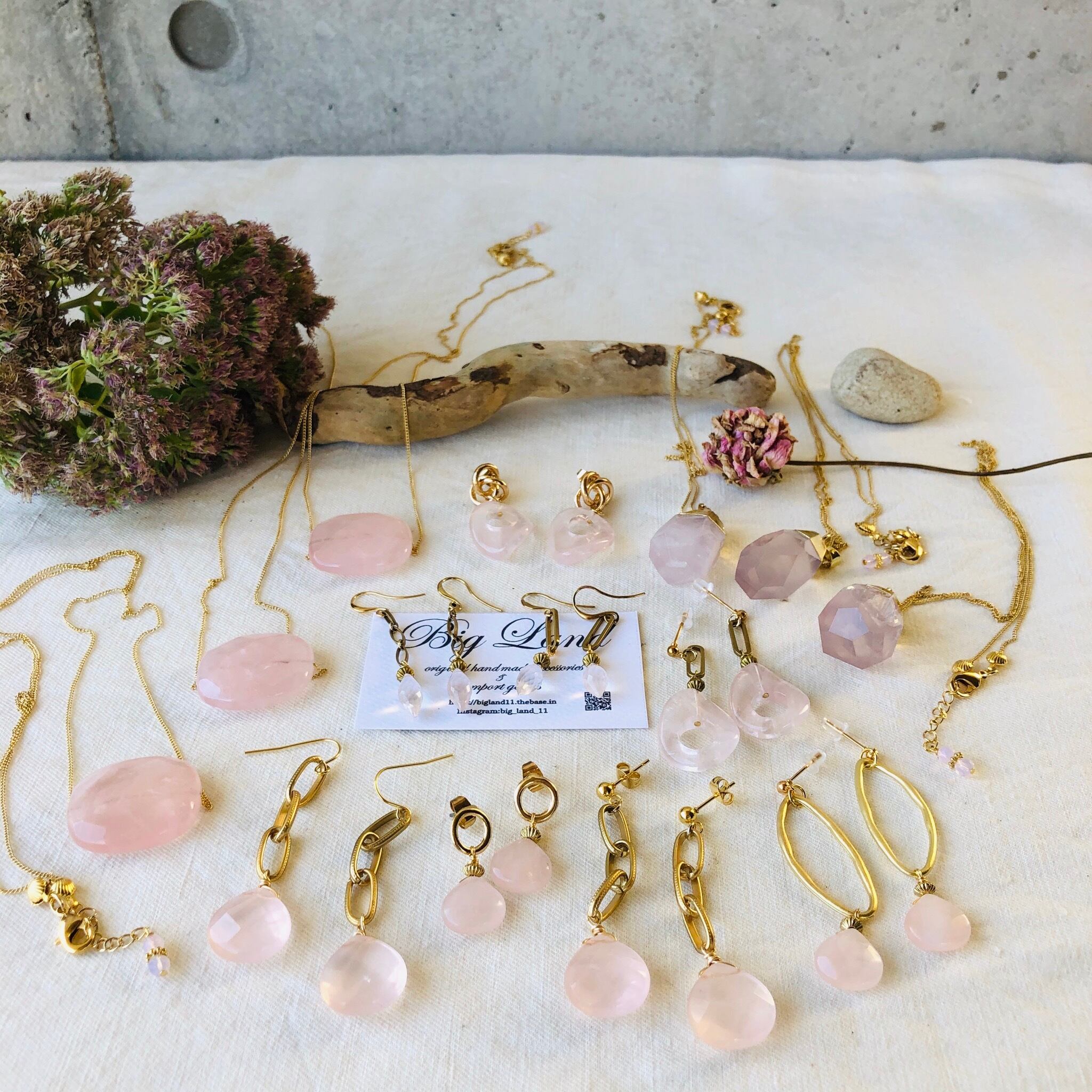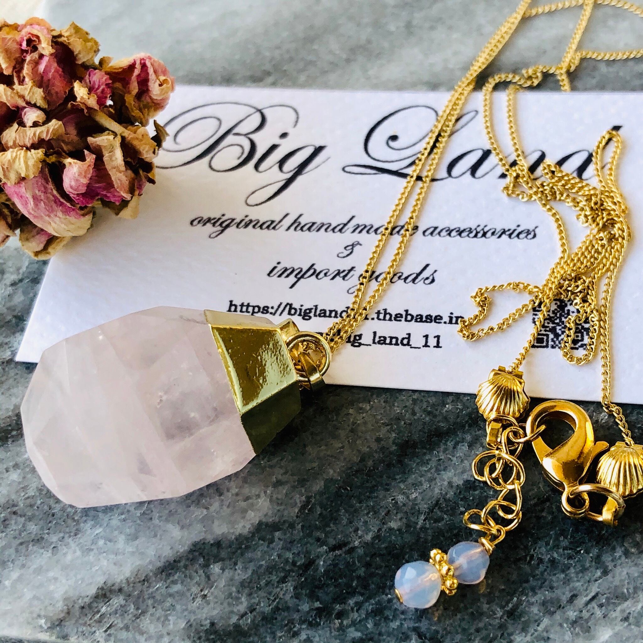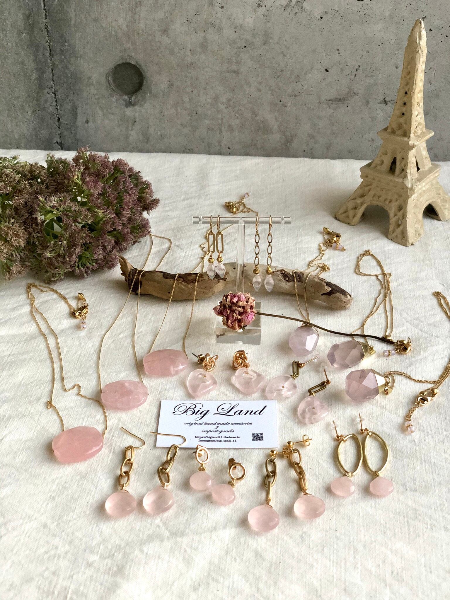 10月誕生石ローズクォーツに多面カットが施された存在感ある神秘的なロングネックレス✨