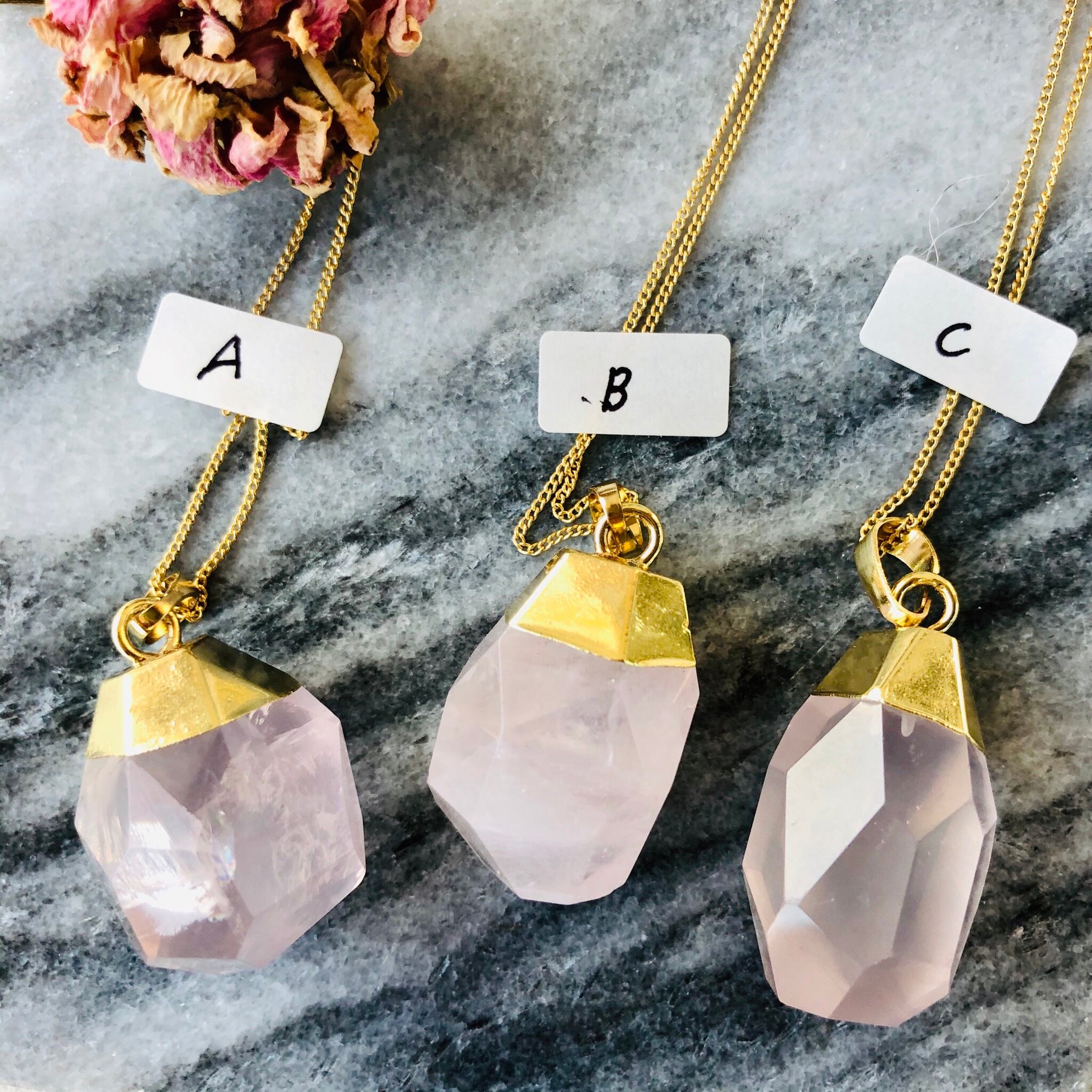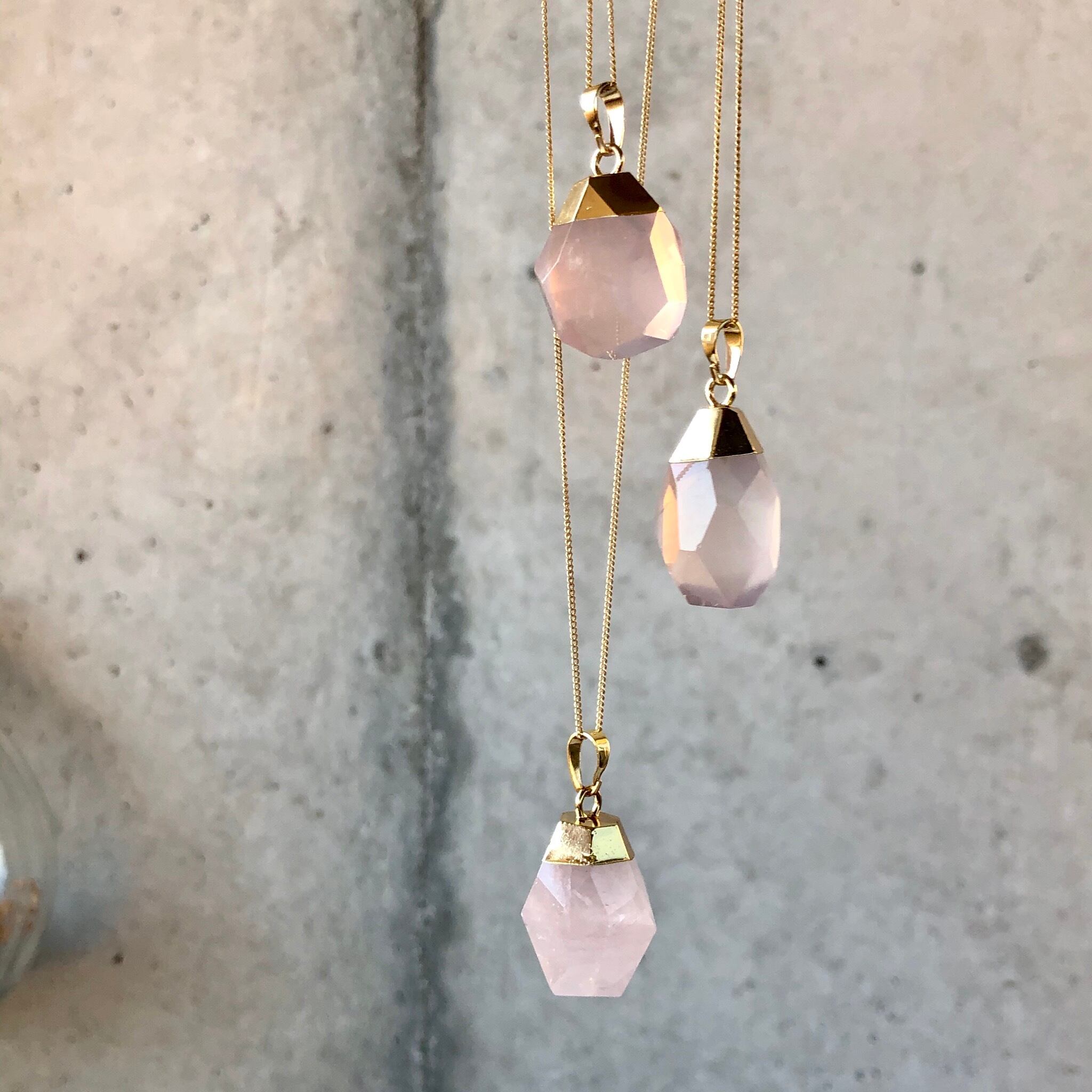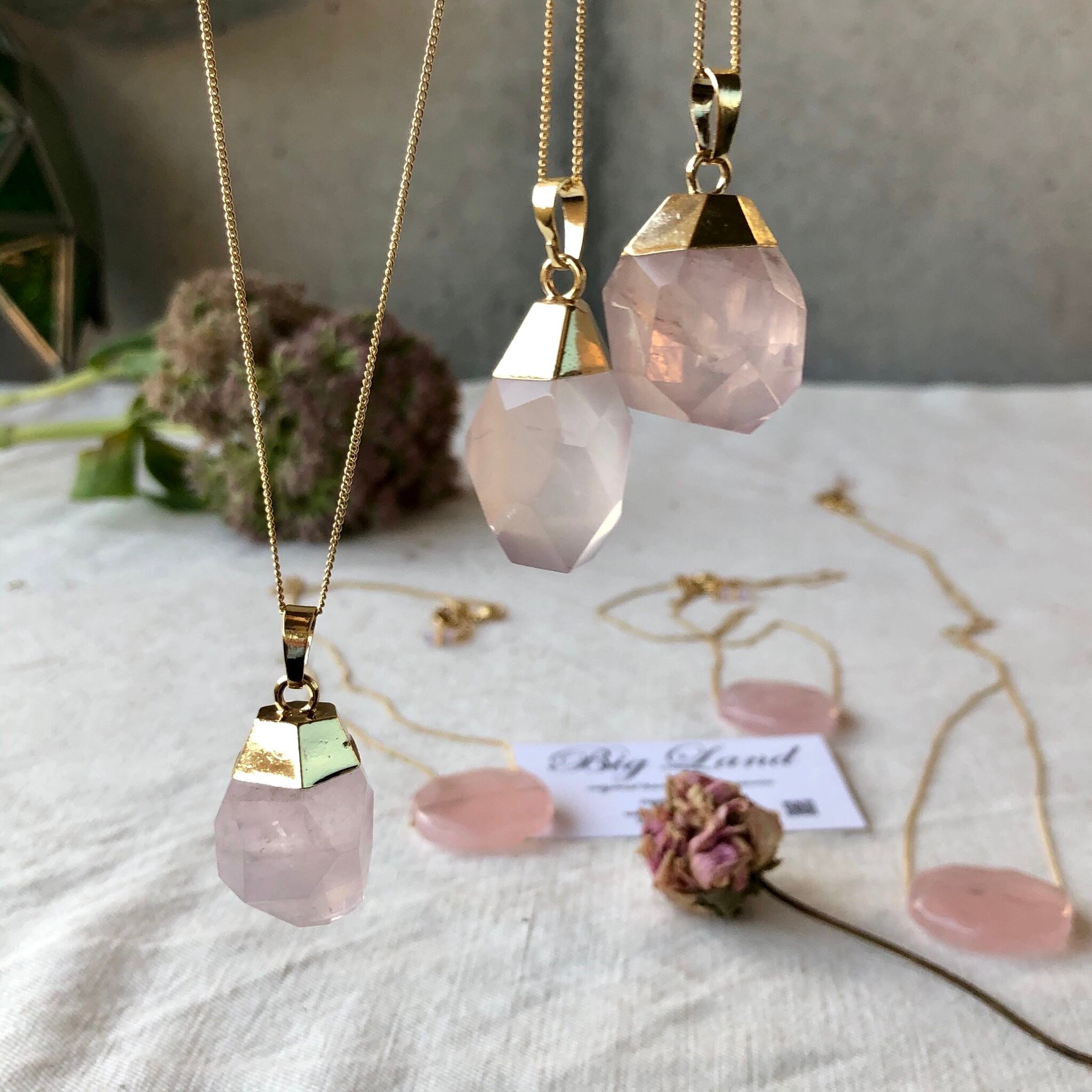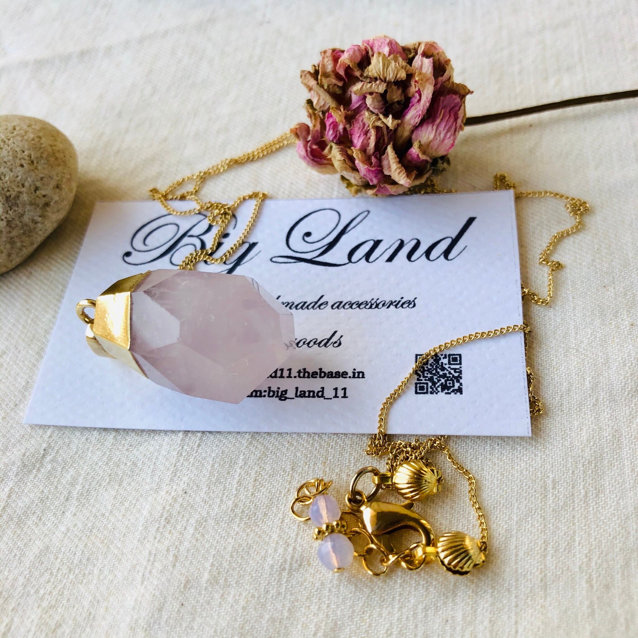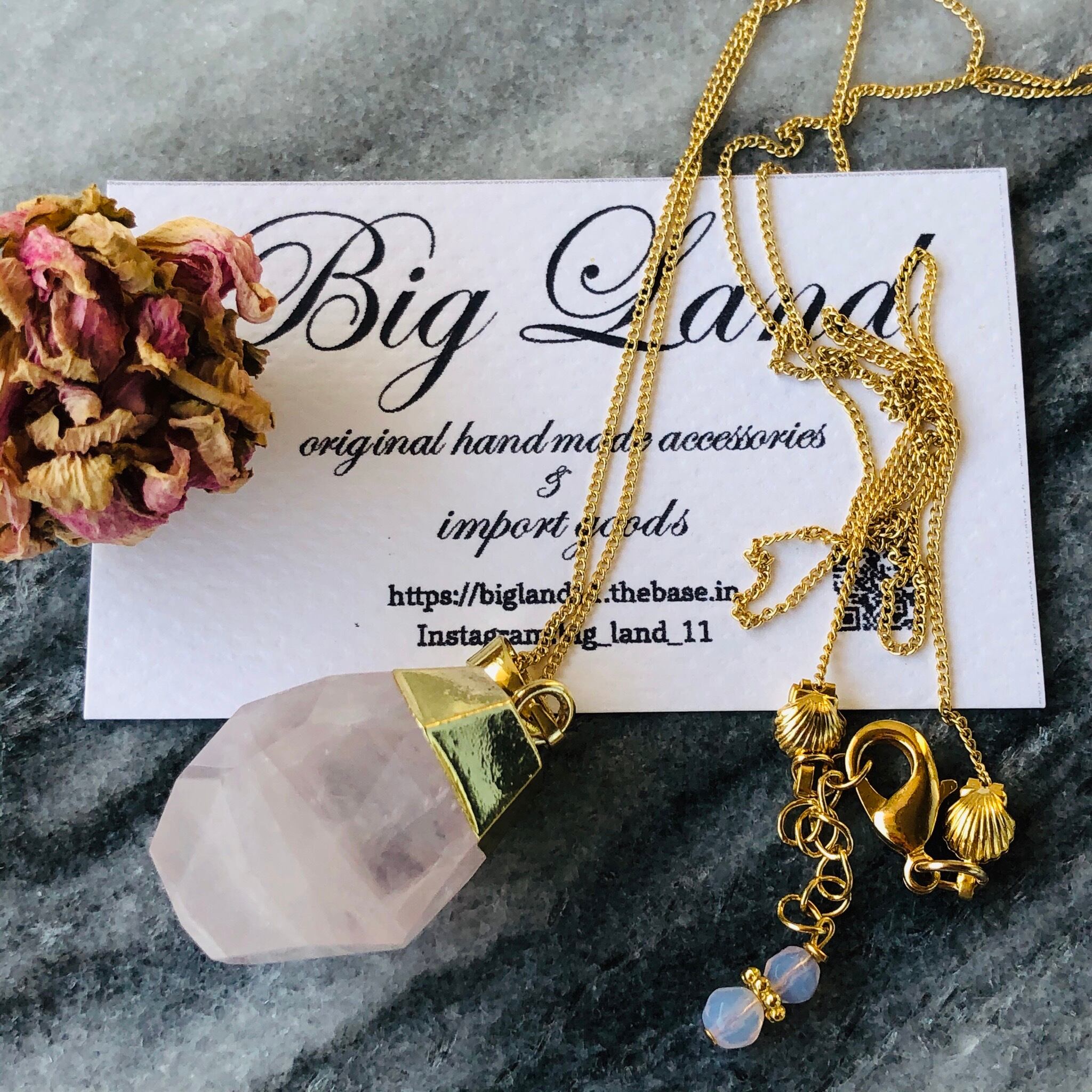 10月誕生石ローズクォーツに多面カットが施された存在感ある神秘的なロングネックレス✨