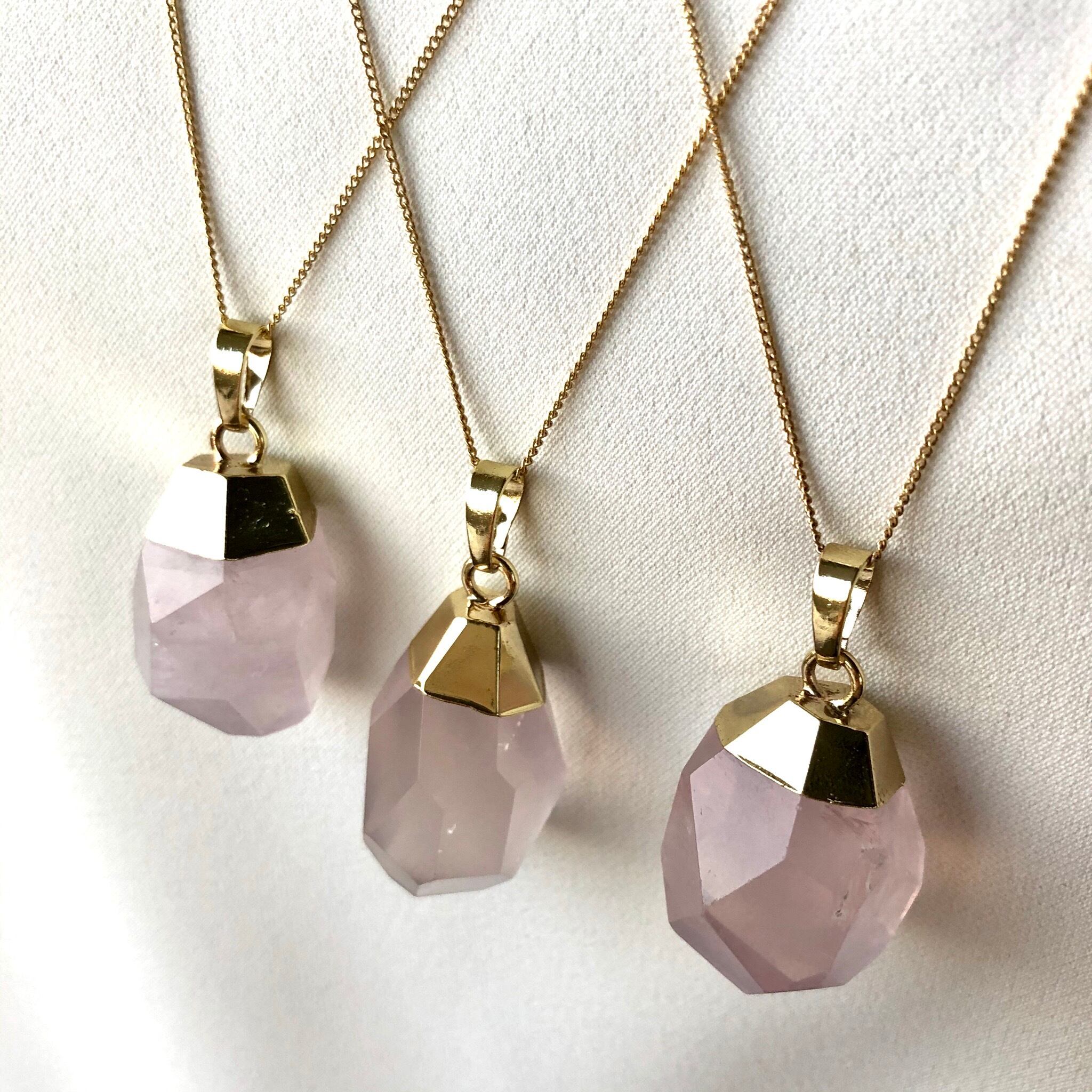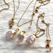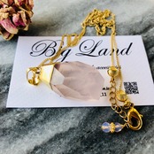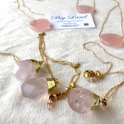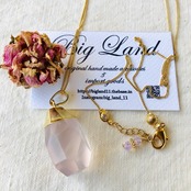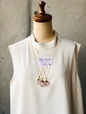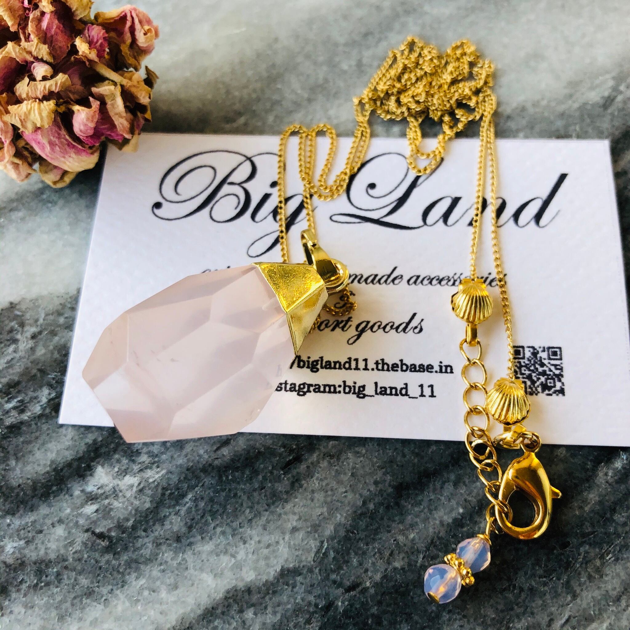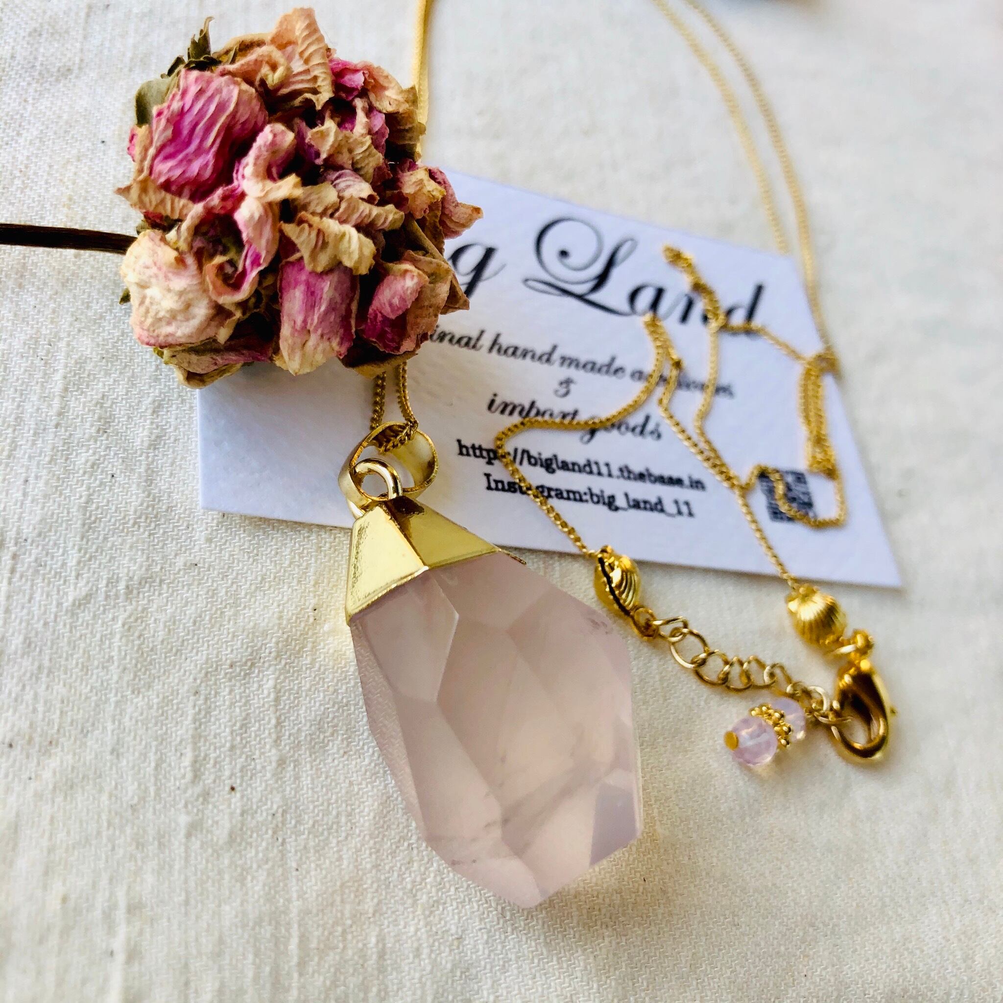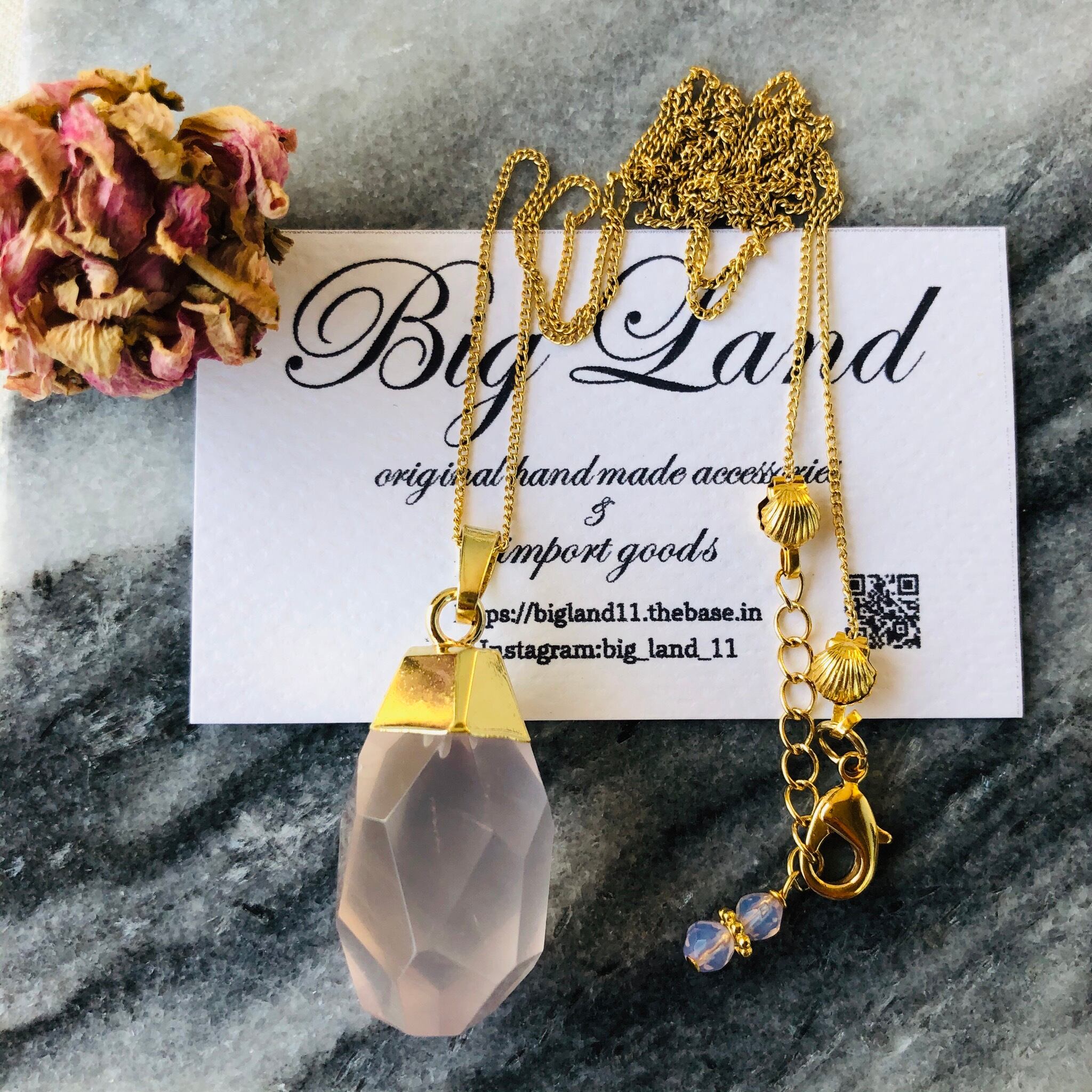 10月誕生石ローズクォーツに多面カットが施された存在感ある神秘的なロングネックレス✨