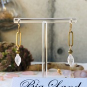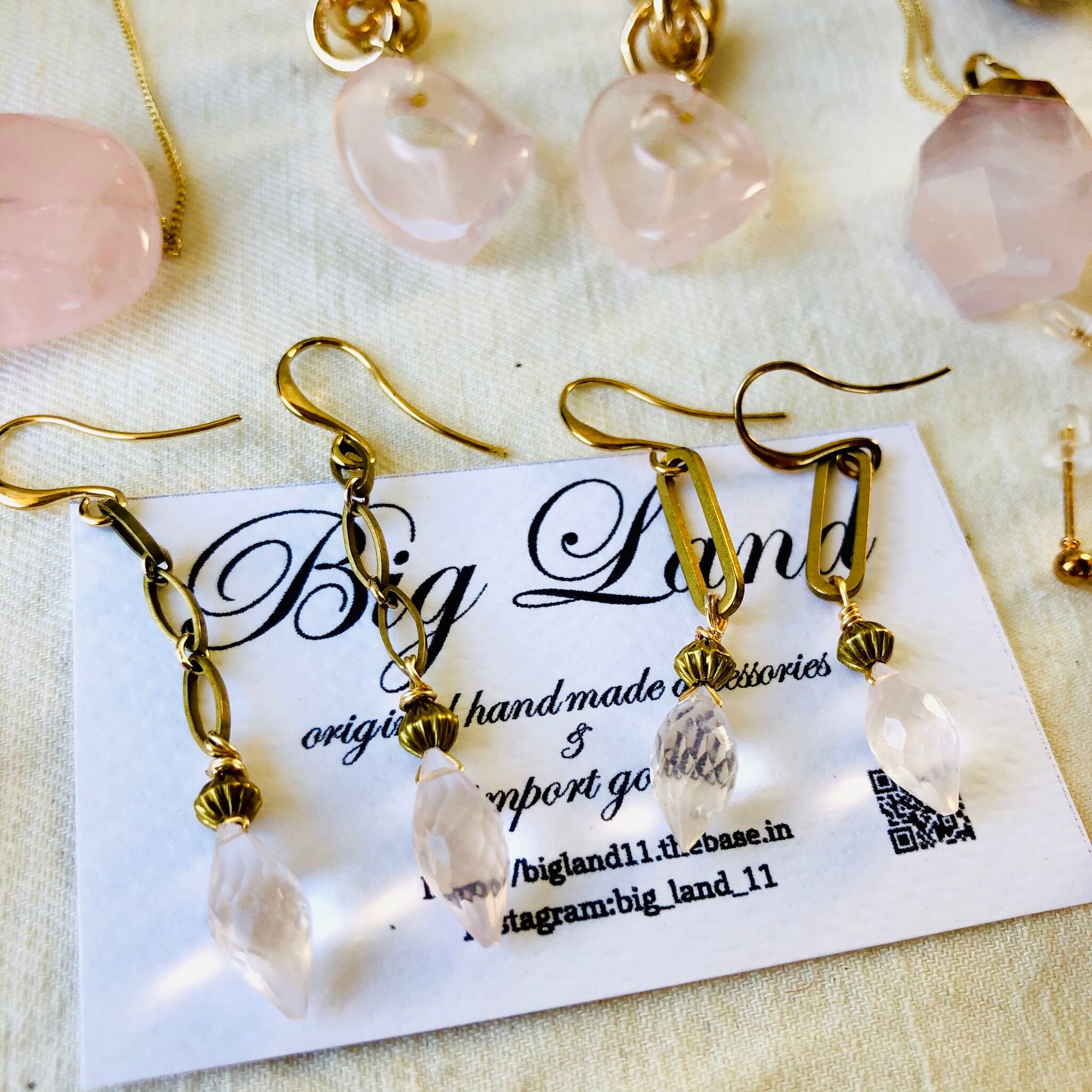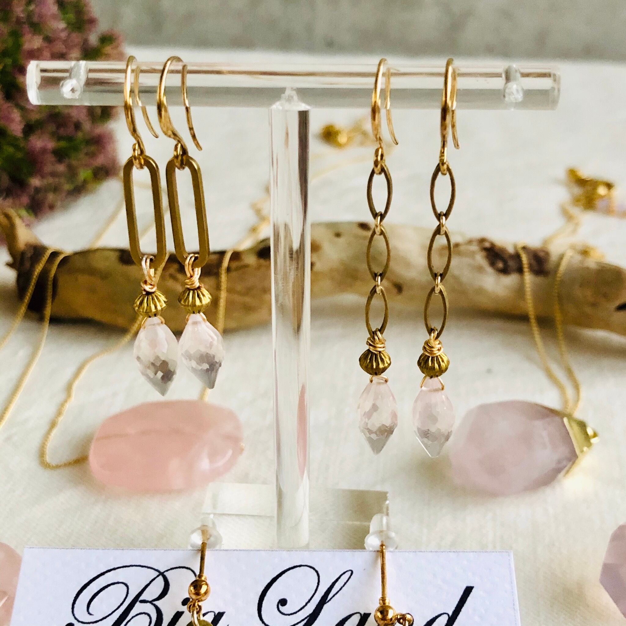 10月誕生石 ローズクォーツピアスと真鍮を組み合わせ宝石質の多面カットが大変美しいです✨