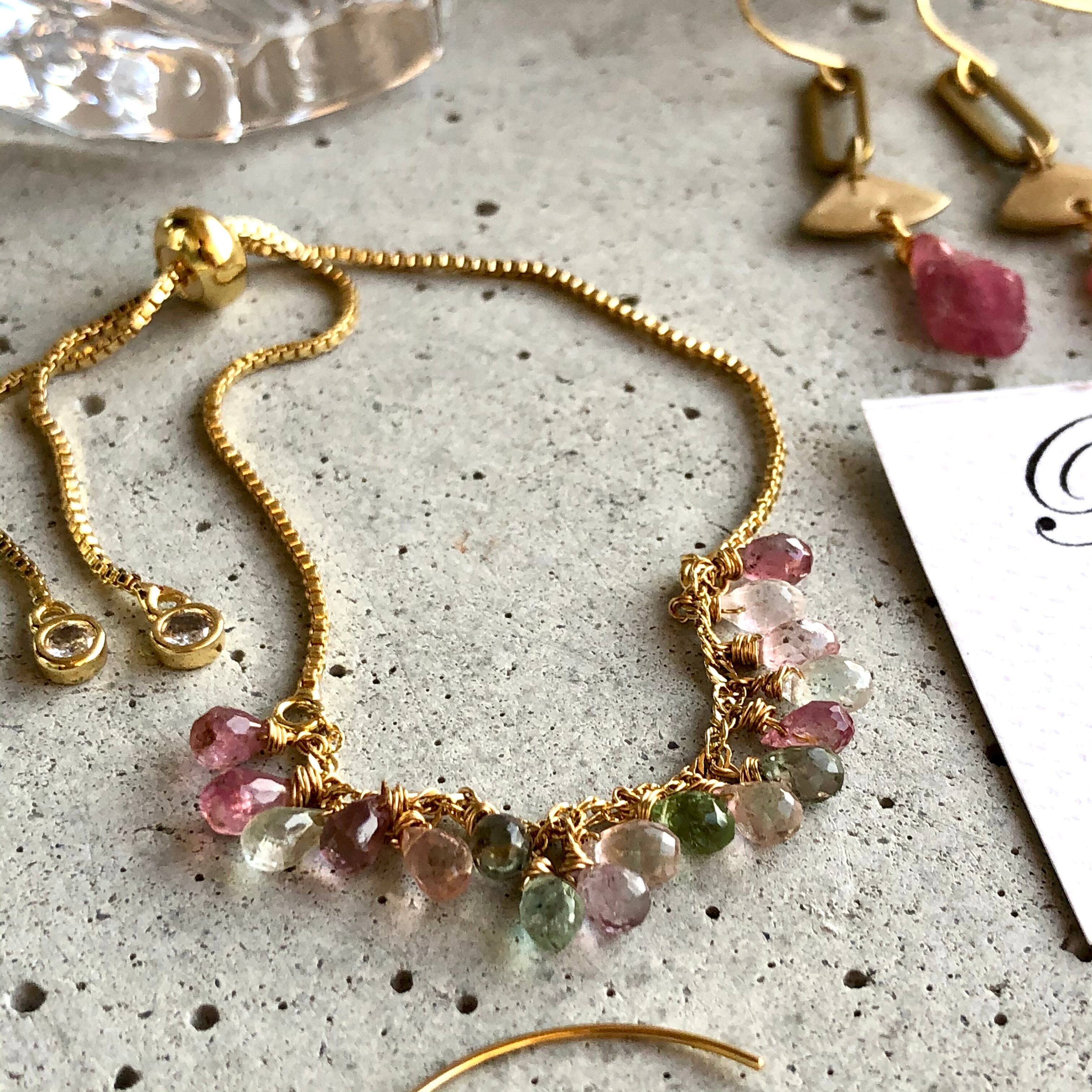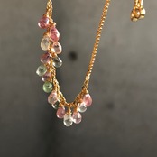 18Kゴールドメッキを使い大変繊細な多面カットの宝石質トルマリンをバランス良く盛り沢山施し洗練されたデザインに仕上げました✨