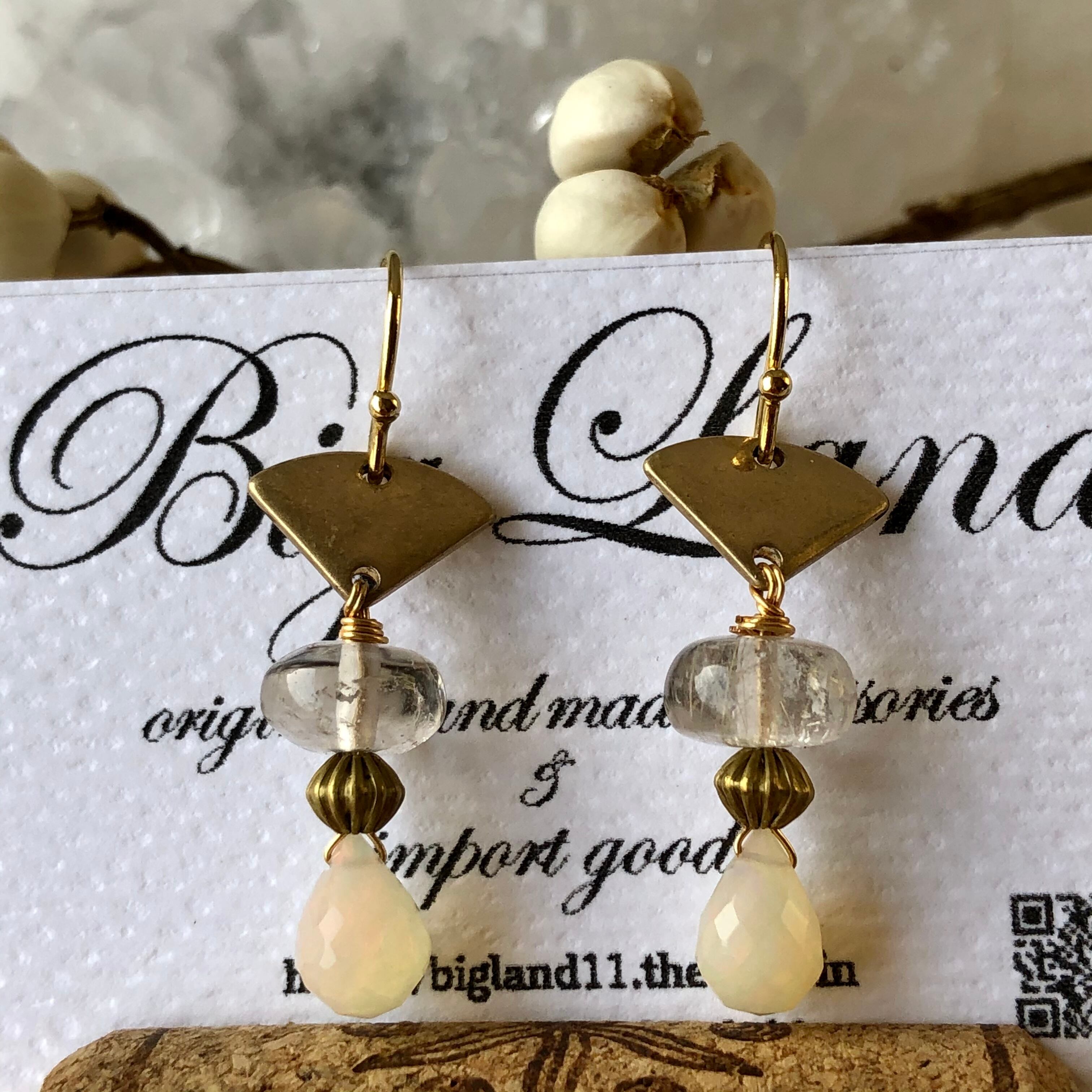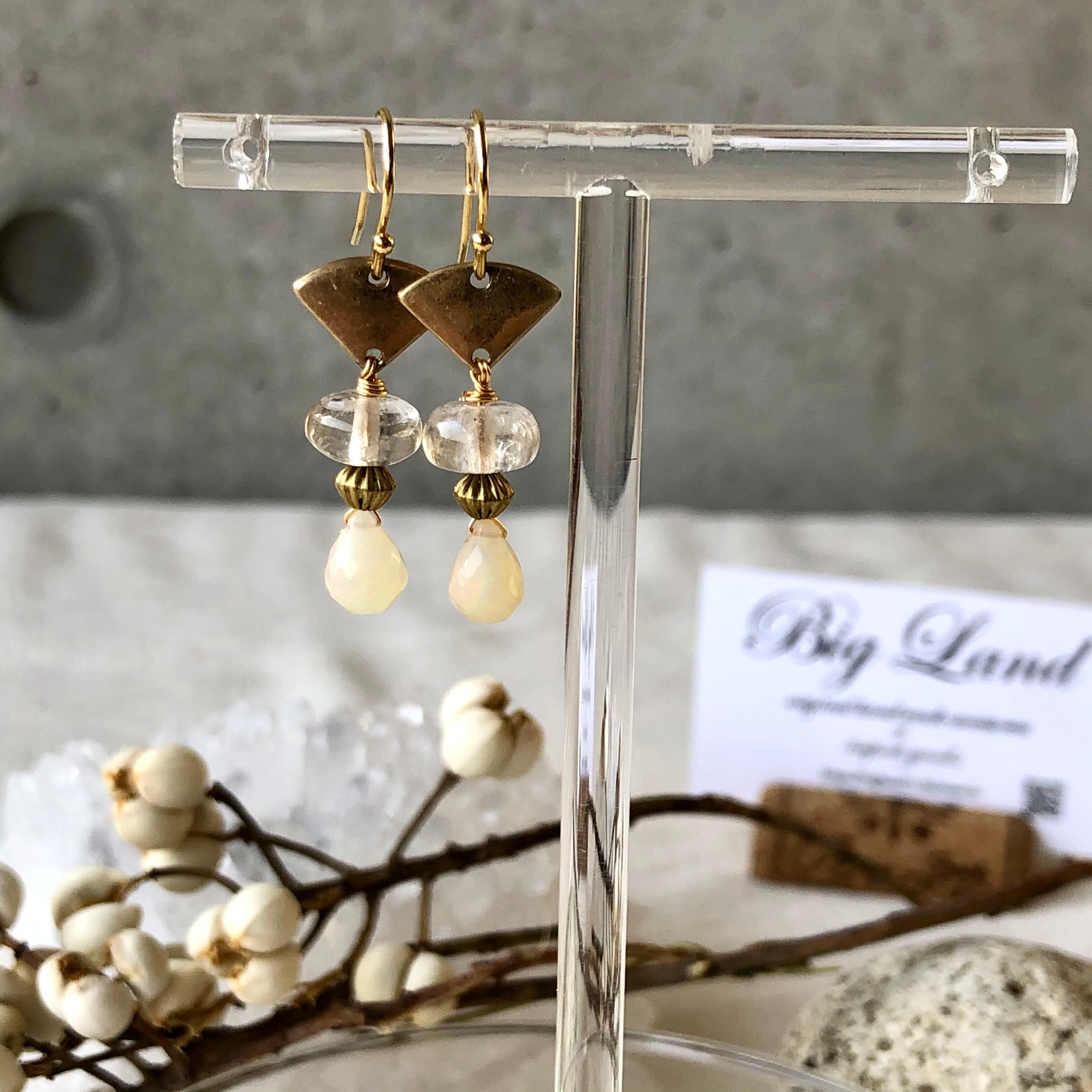 大変美しいカッティングAA+ランク宝石質のオパールは幻想的な虹色の遊色効果が何とも神秘的✨真鍮と針水晶を組み合わせ職場コーデにも使えるサイズ感の中に個性をギュっと詰めたデザインに仕上げました☺️