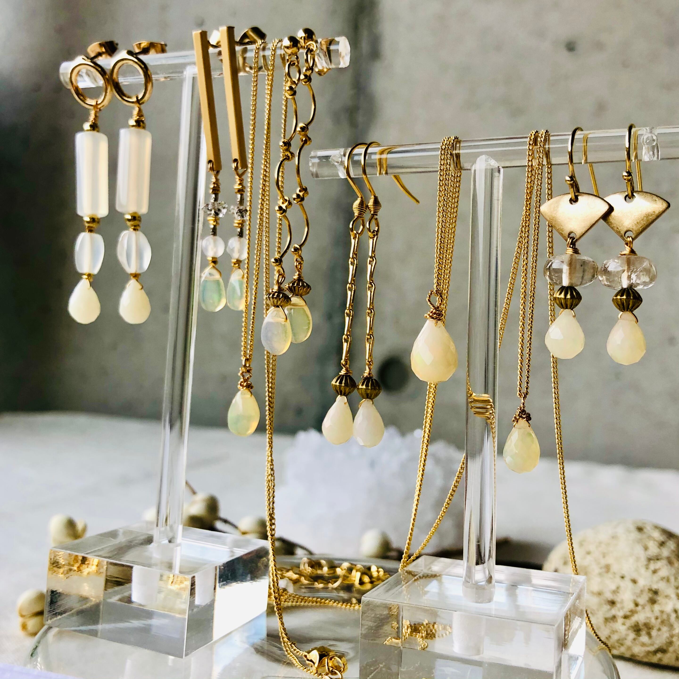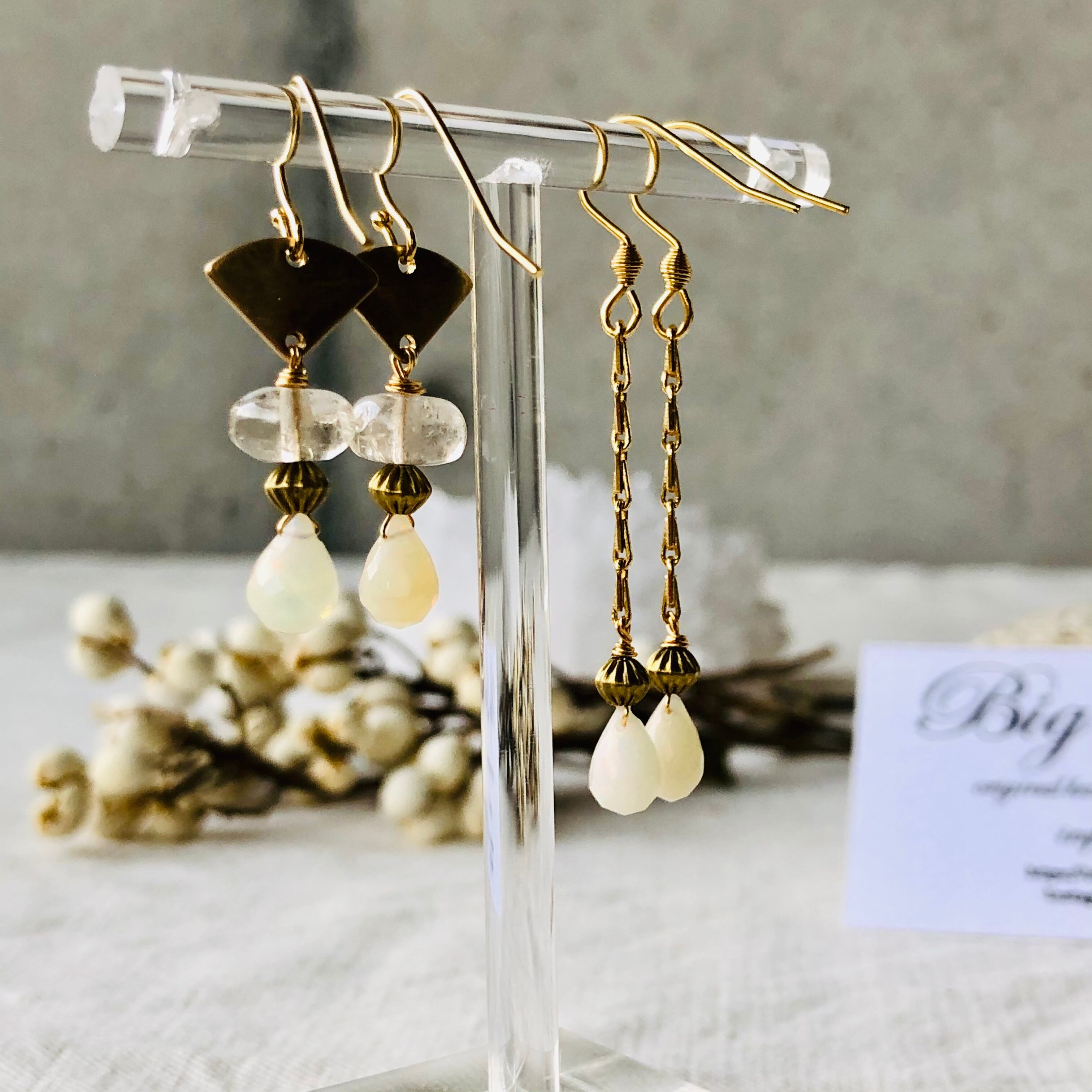 夏は勿論、これから冬の白やアイボリーでワントーコーデしたくなるピアスです‼︎