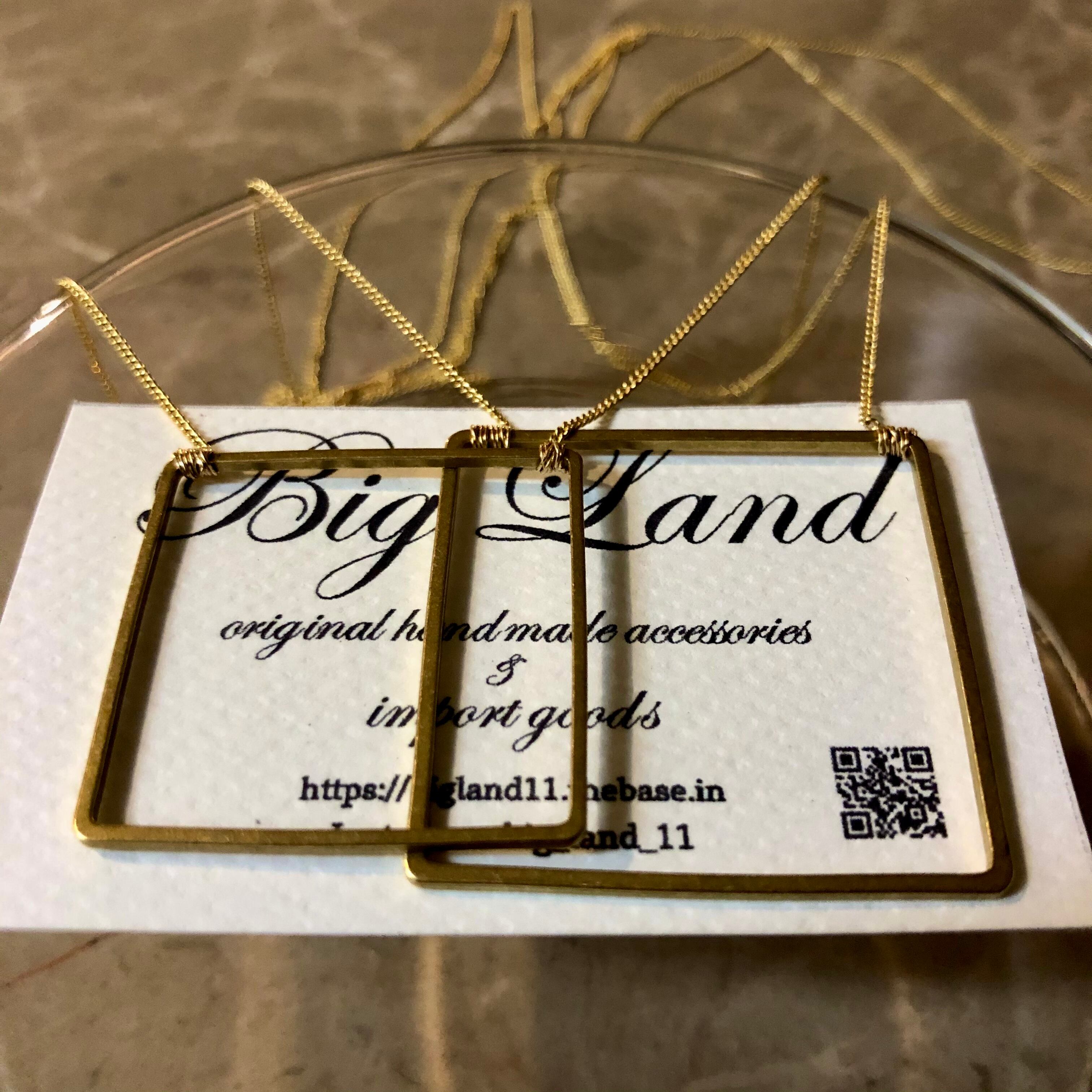 真鍮素材のスクエアをシンプルにネックレスにしてみました‼︎こなれ感あるアンティーク風な感じに仕上がり真鍮ピアスとセットコーデもオススメです❤️