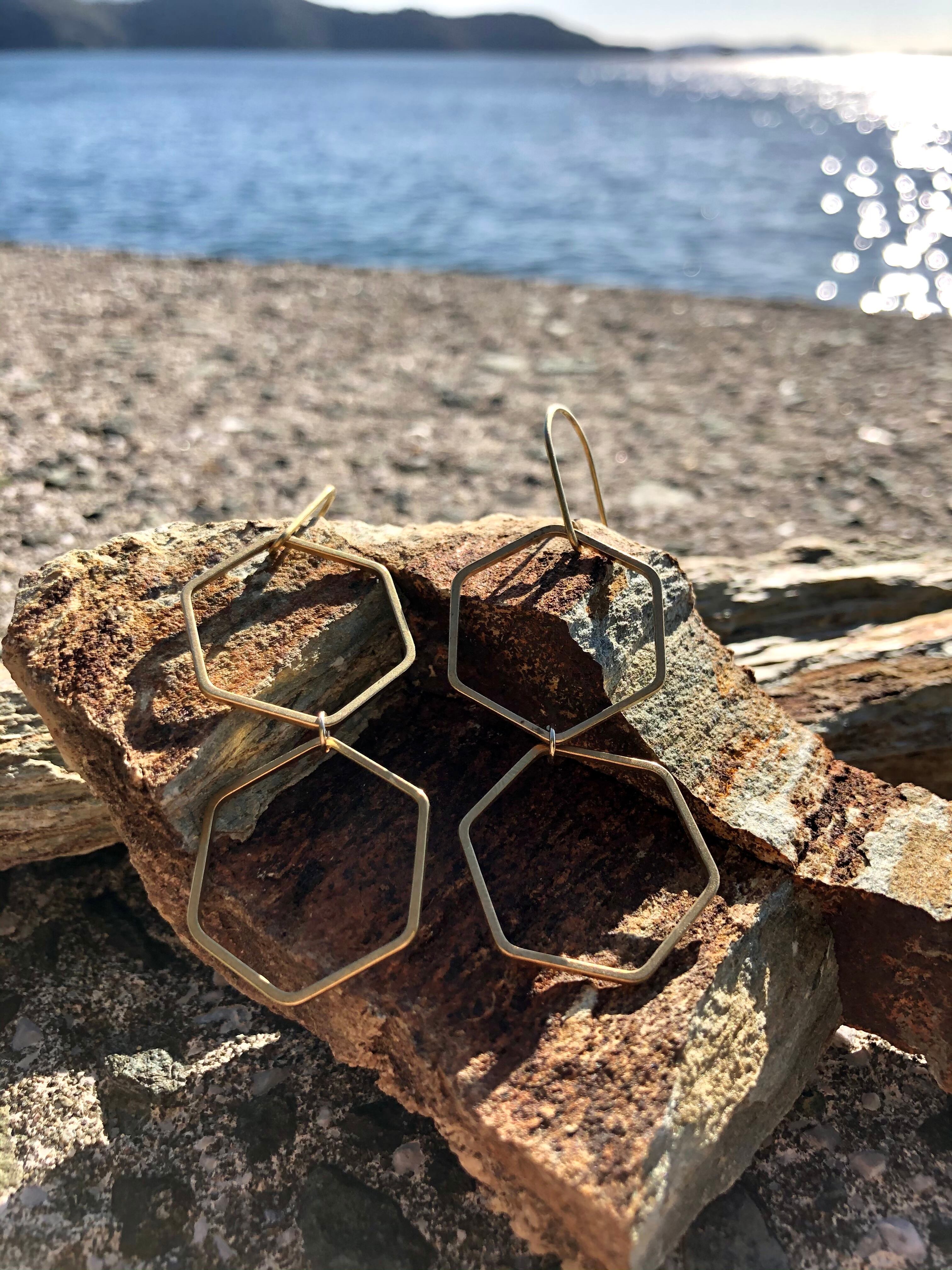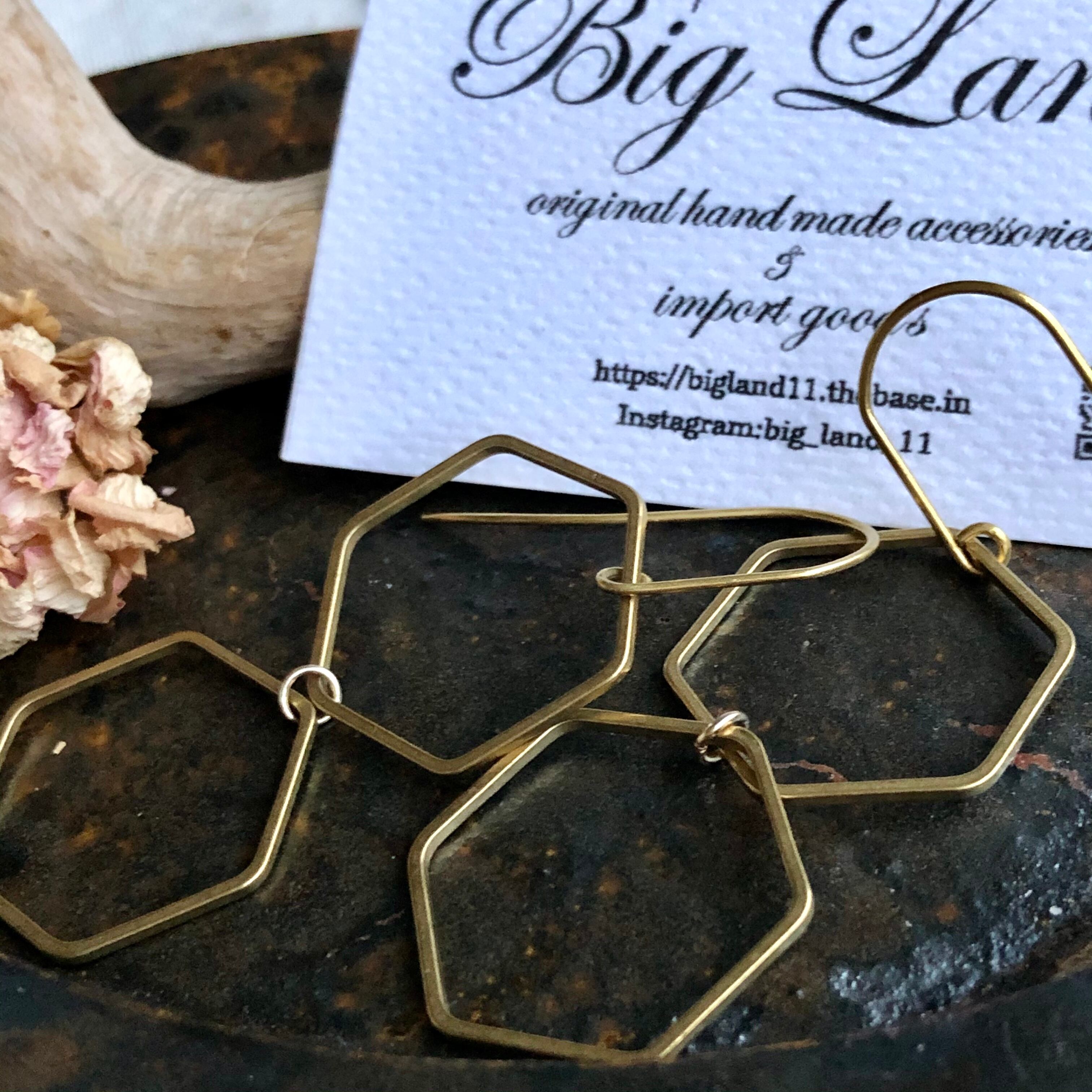 六角&ピアスフック全て真鍮素材を使いアンティーク且つデザイナーズなスタイルに仕上げピアスフックが長めなのがオシャレ