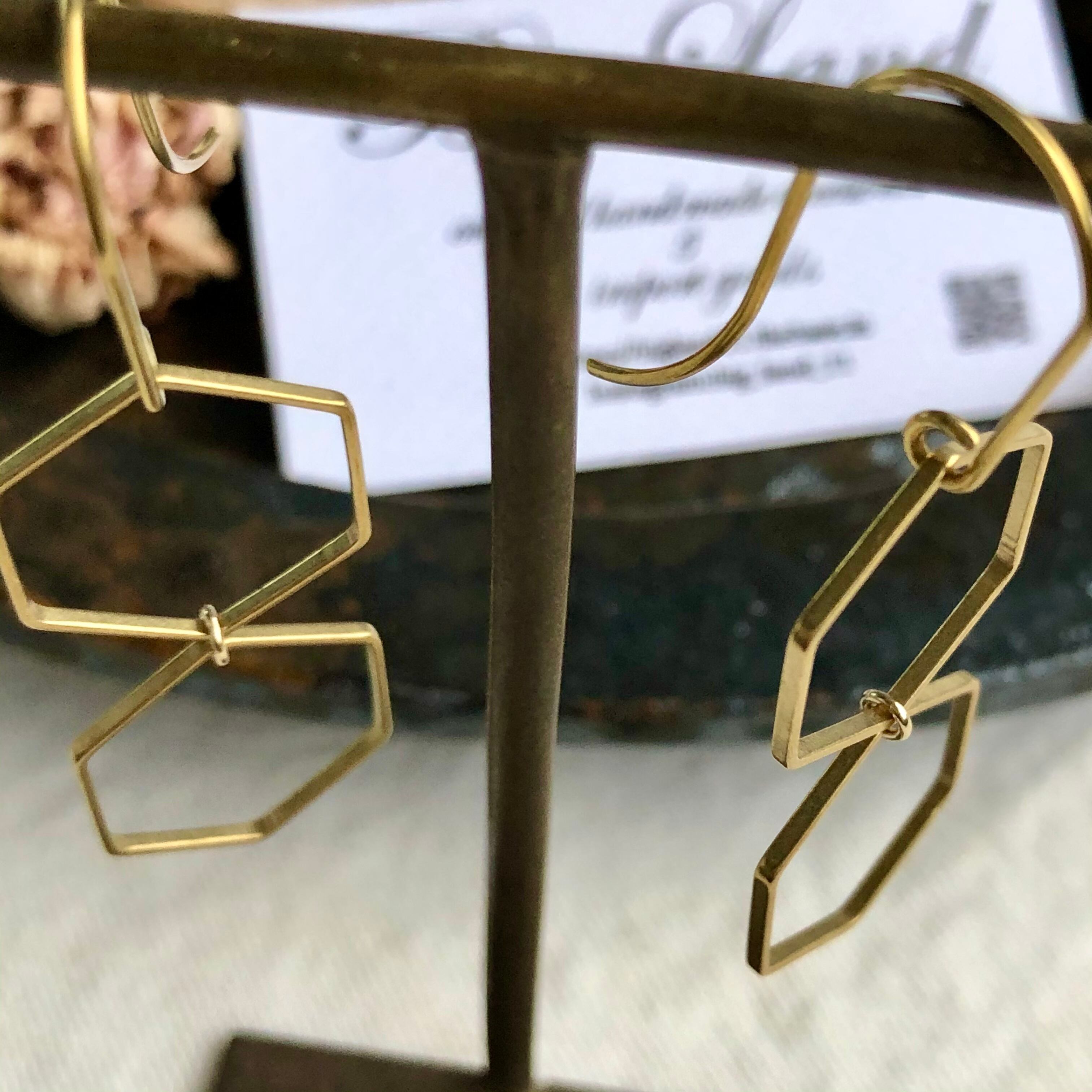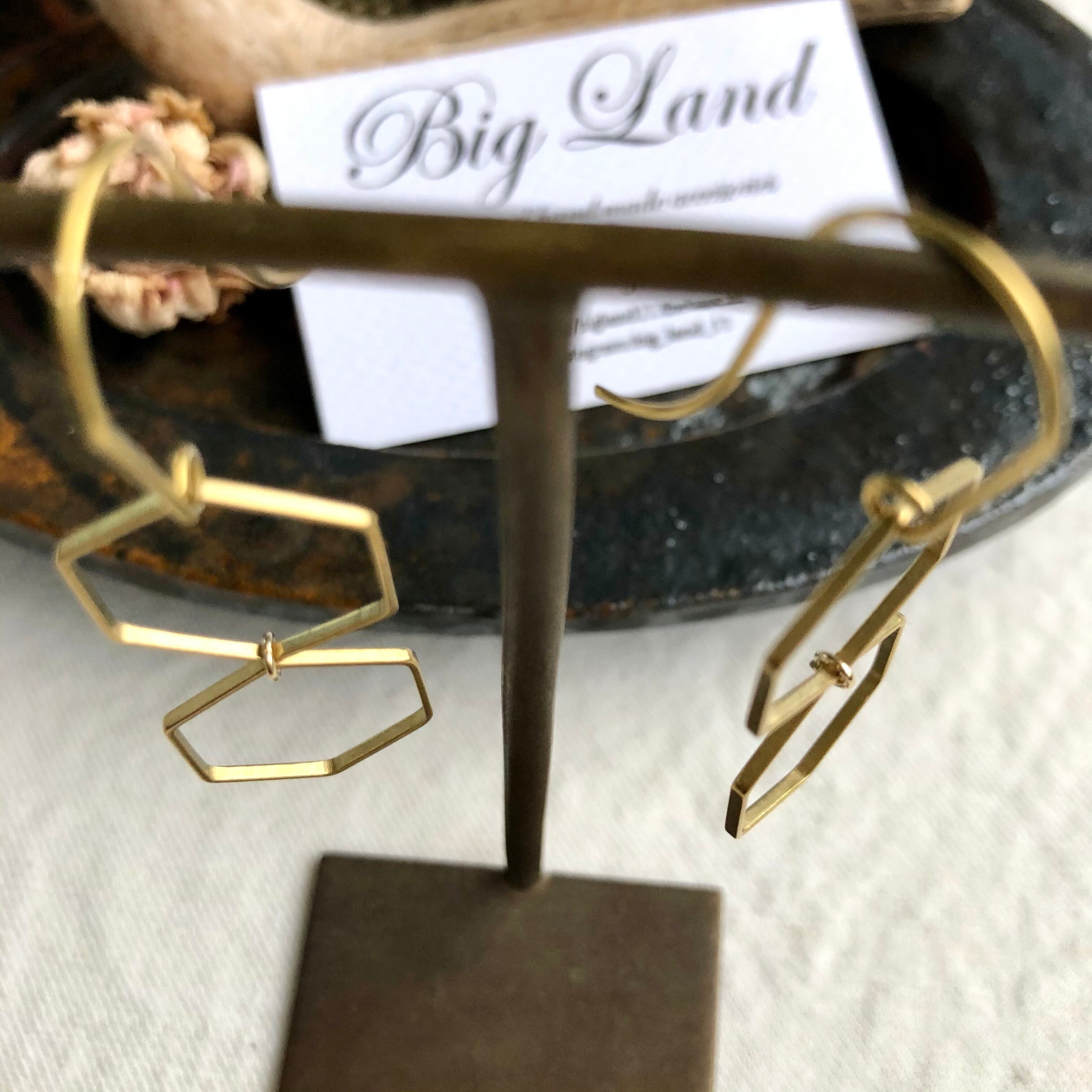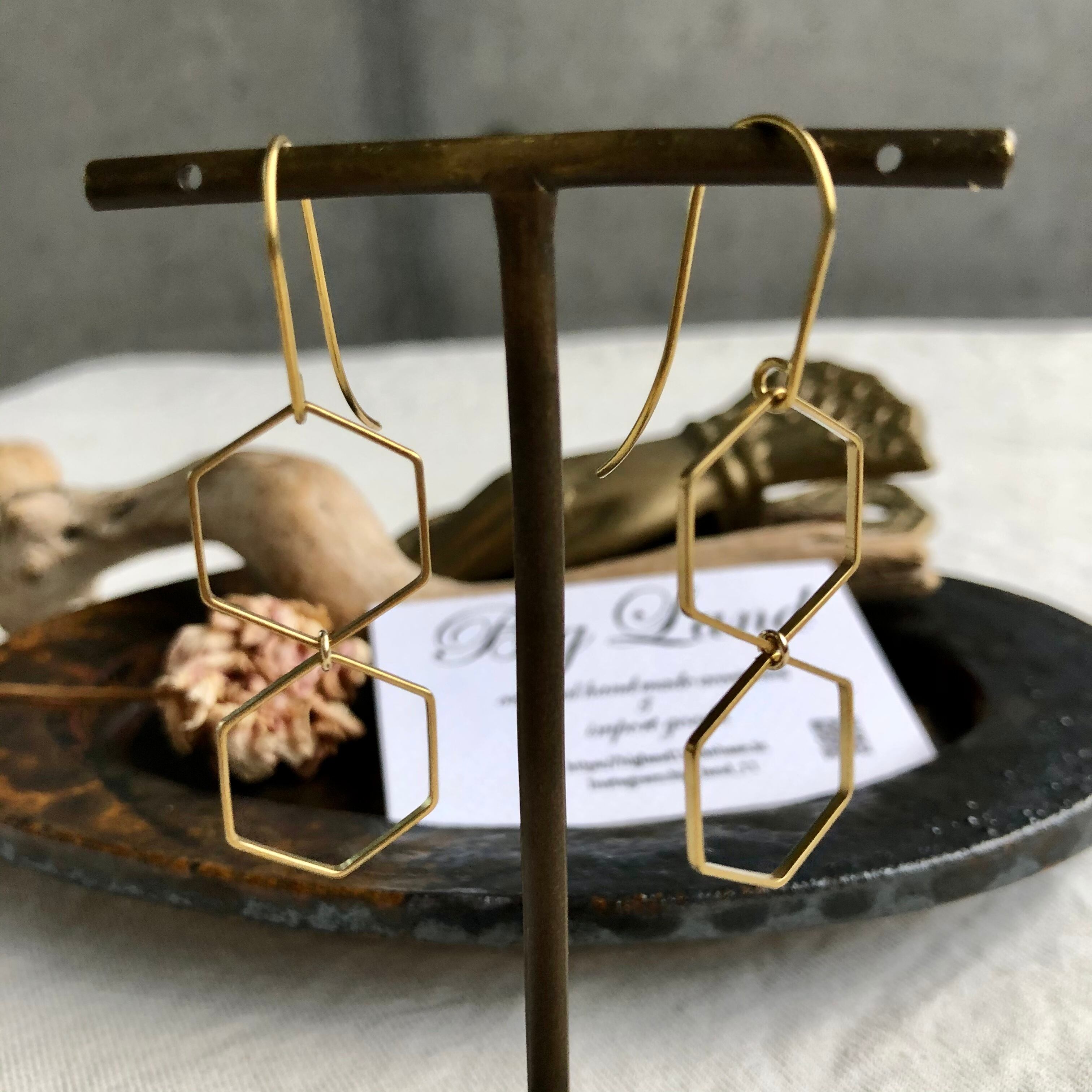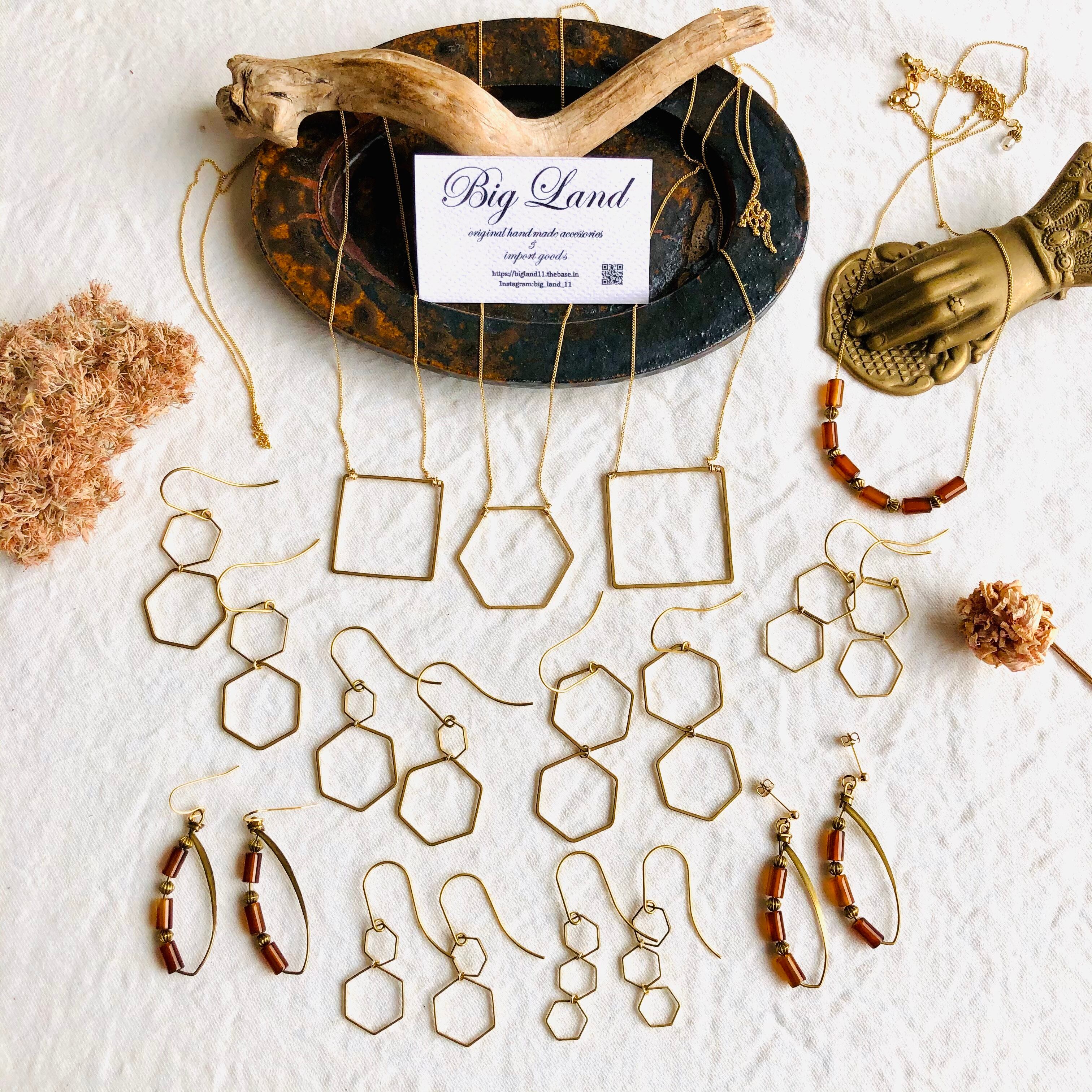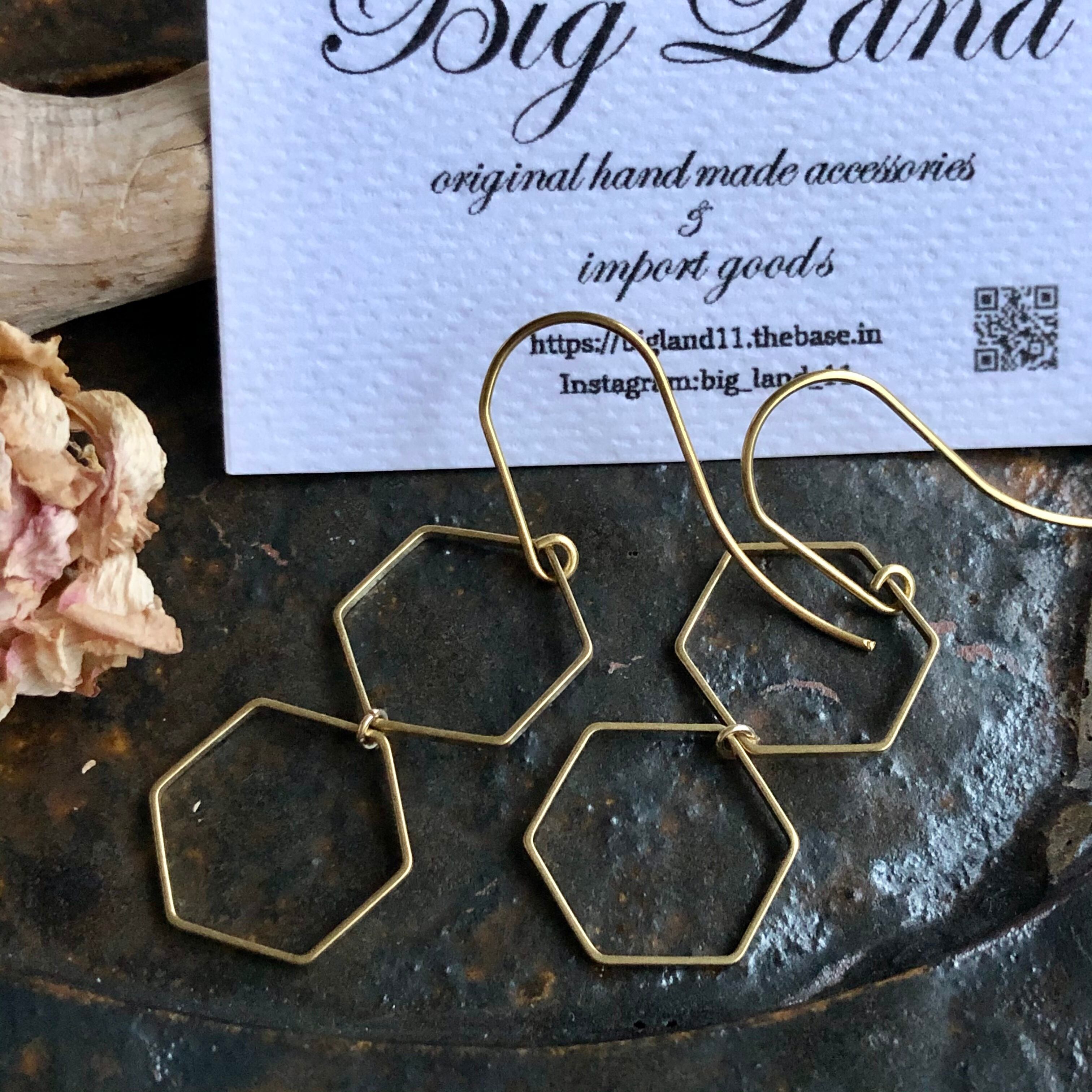 六角&ピアスフック全て真鍮素材を使いアンティーク且つデザイナーズなスタイルに仕上げピアスフックが長めなのがオシャレ