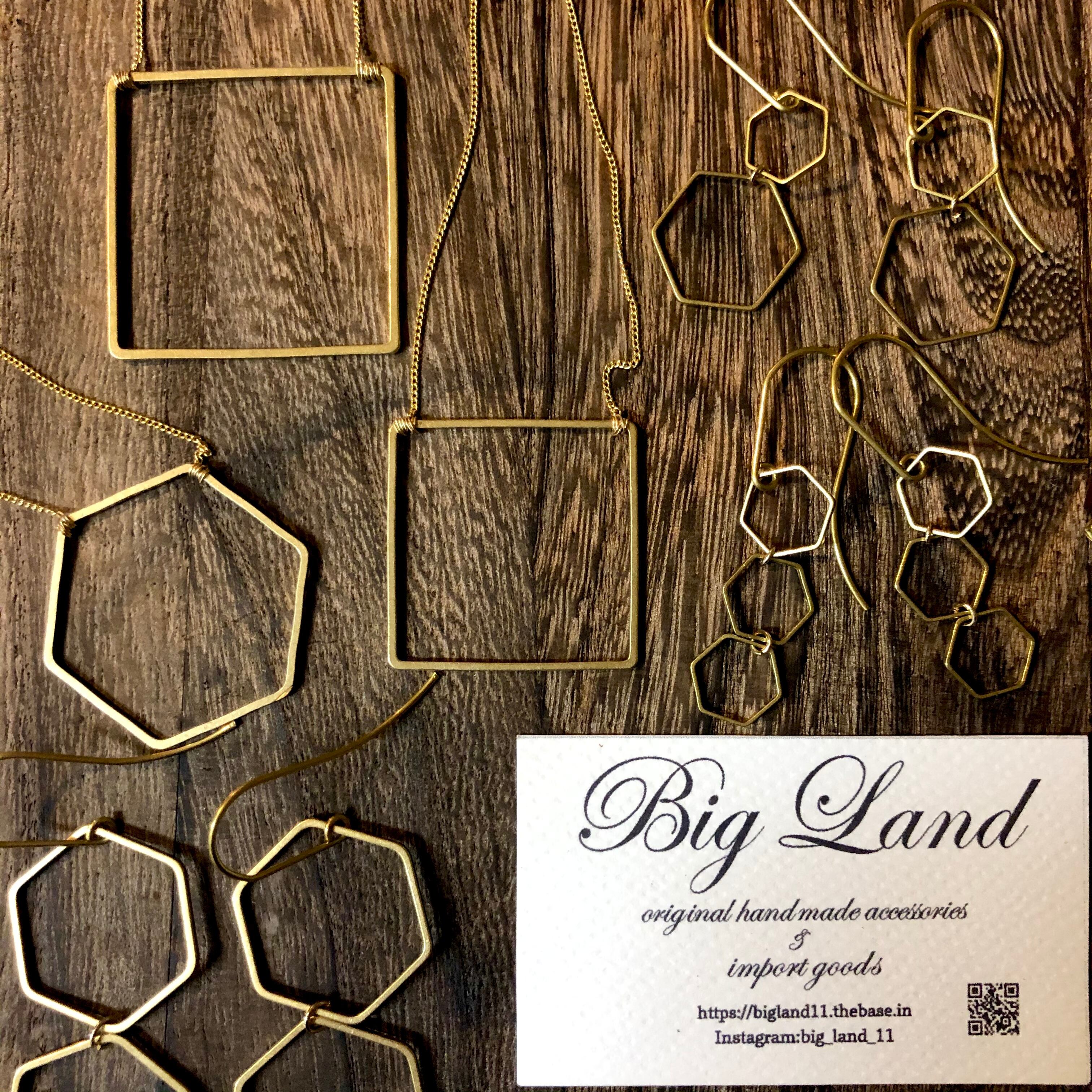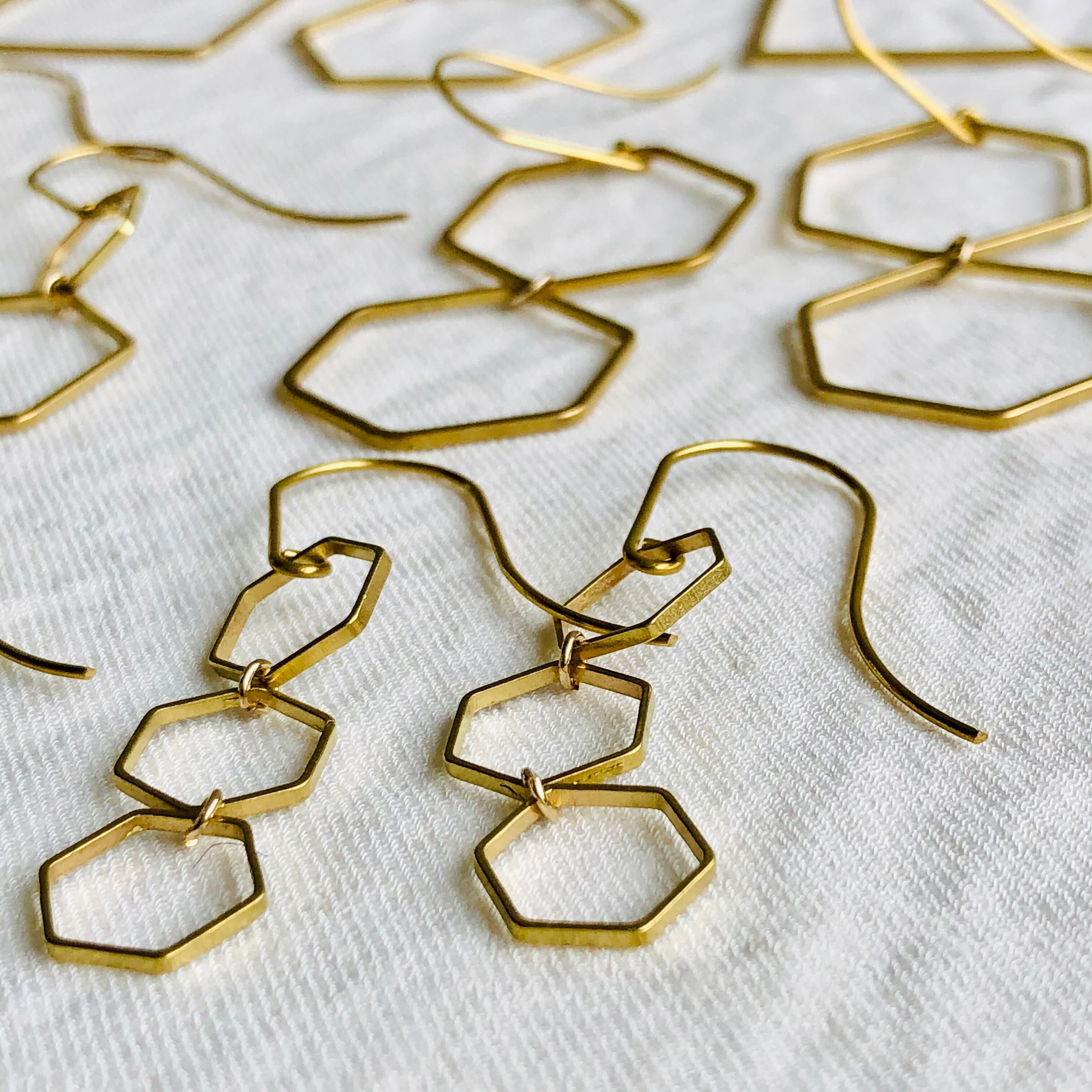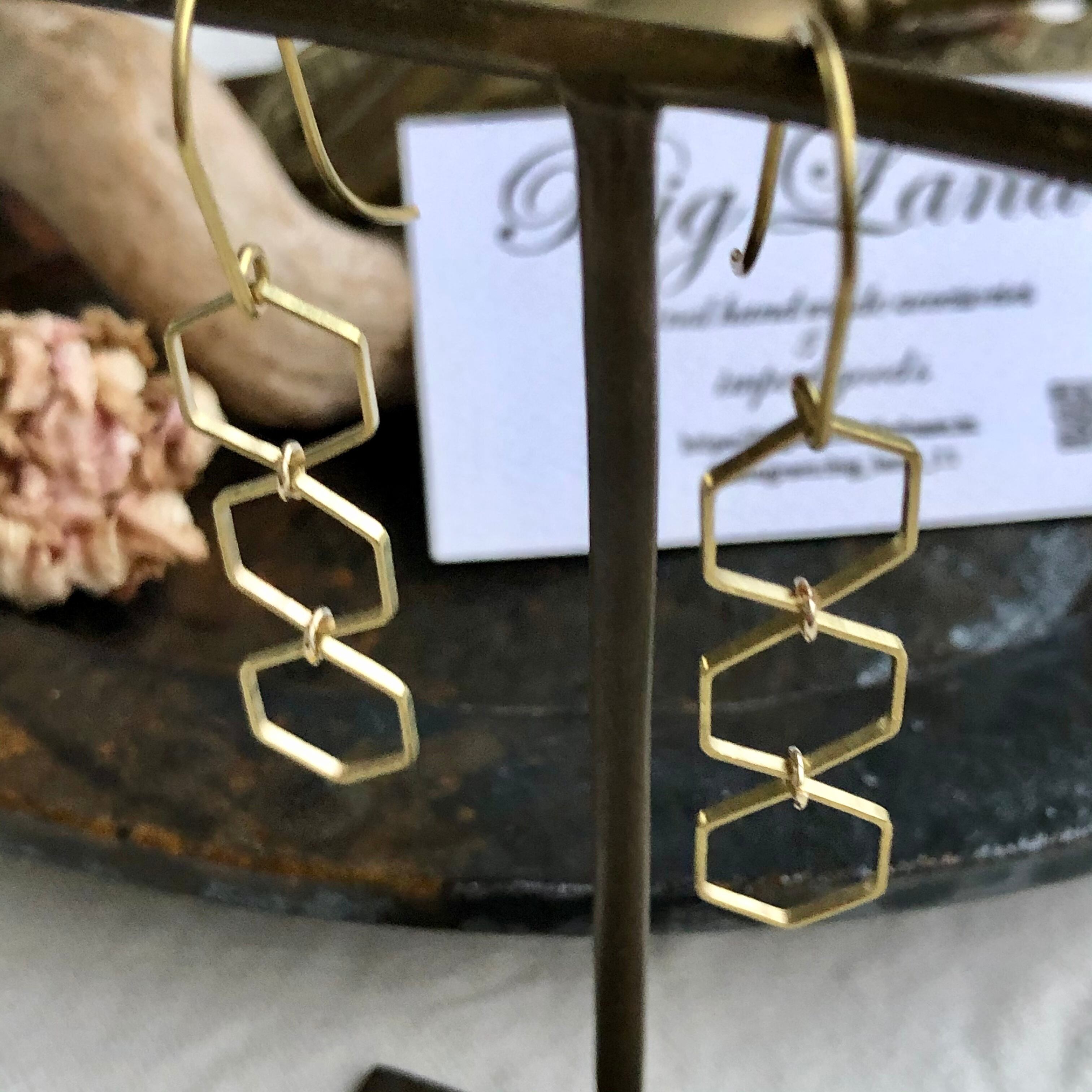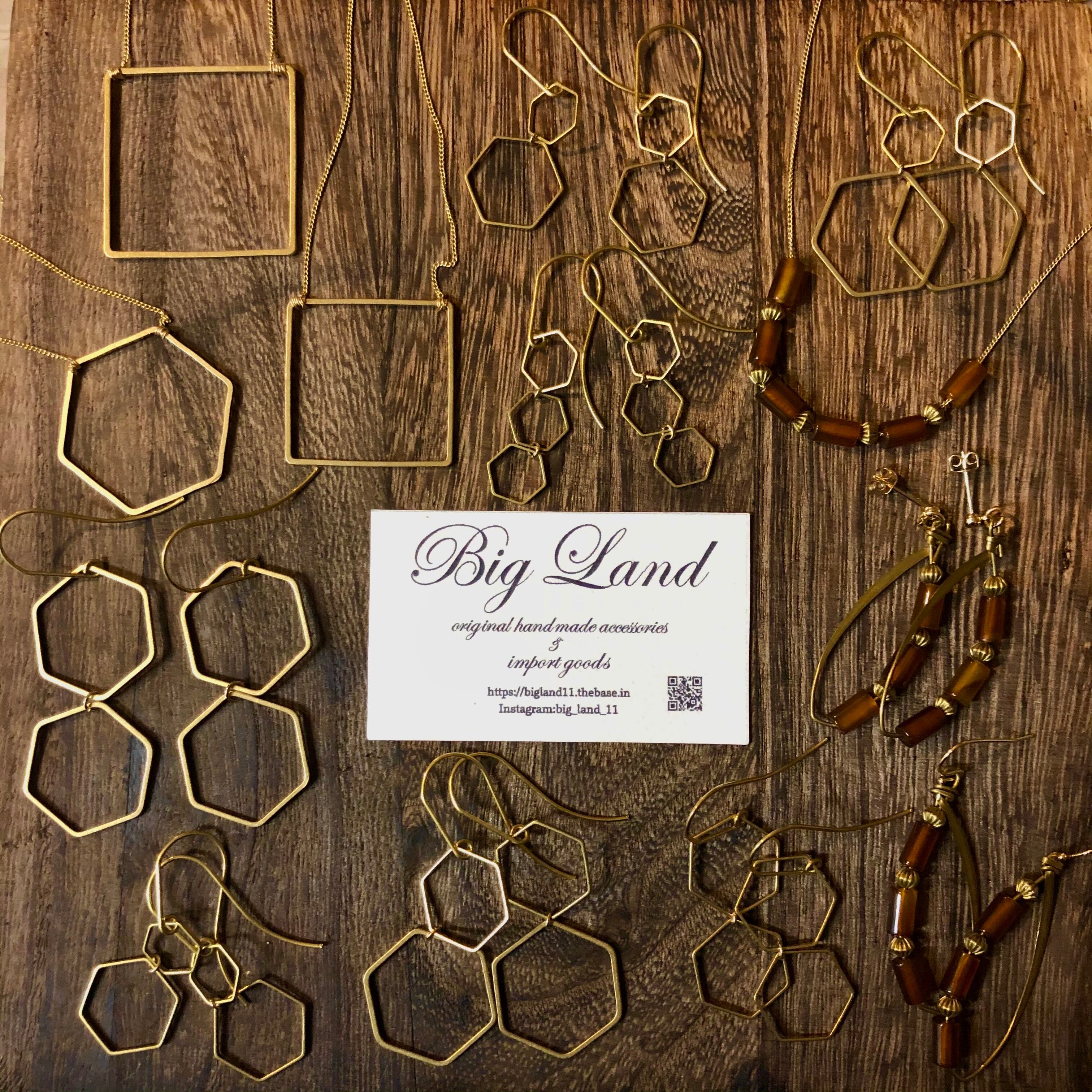 六角&ピアスフック全て真鍮素材を使いアンティーク且つデザイナーズなスタイルに仕上げピアスフックが長めなのがオシャレ