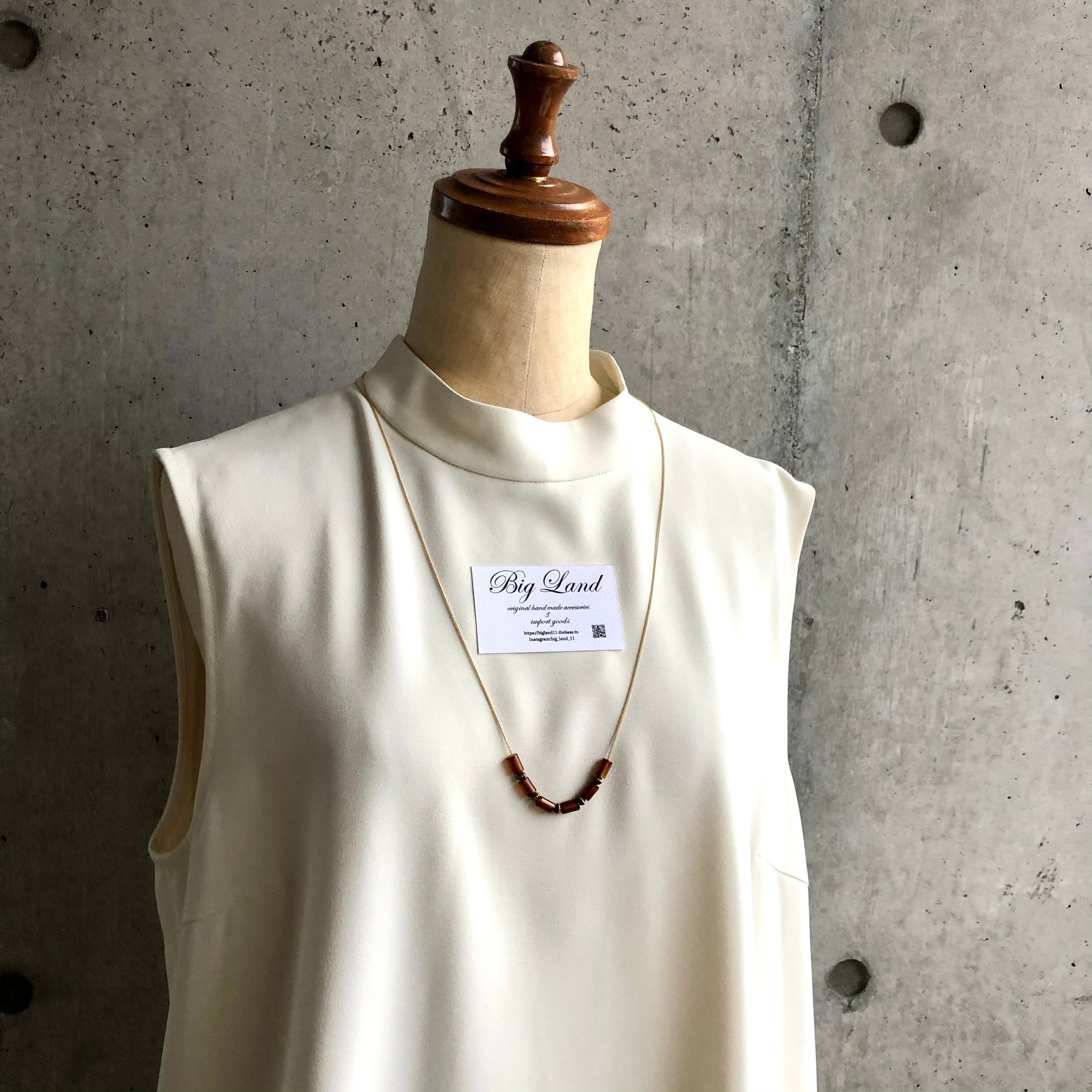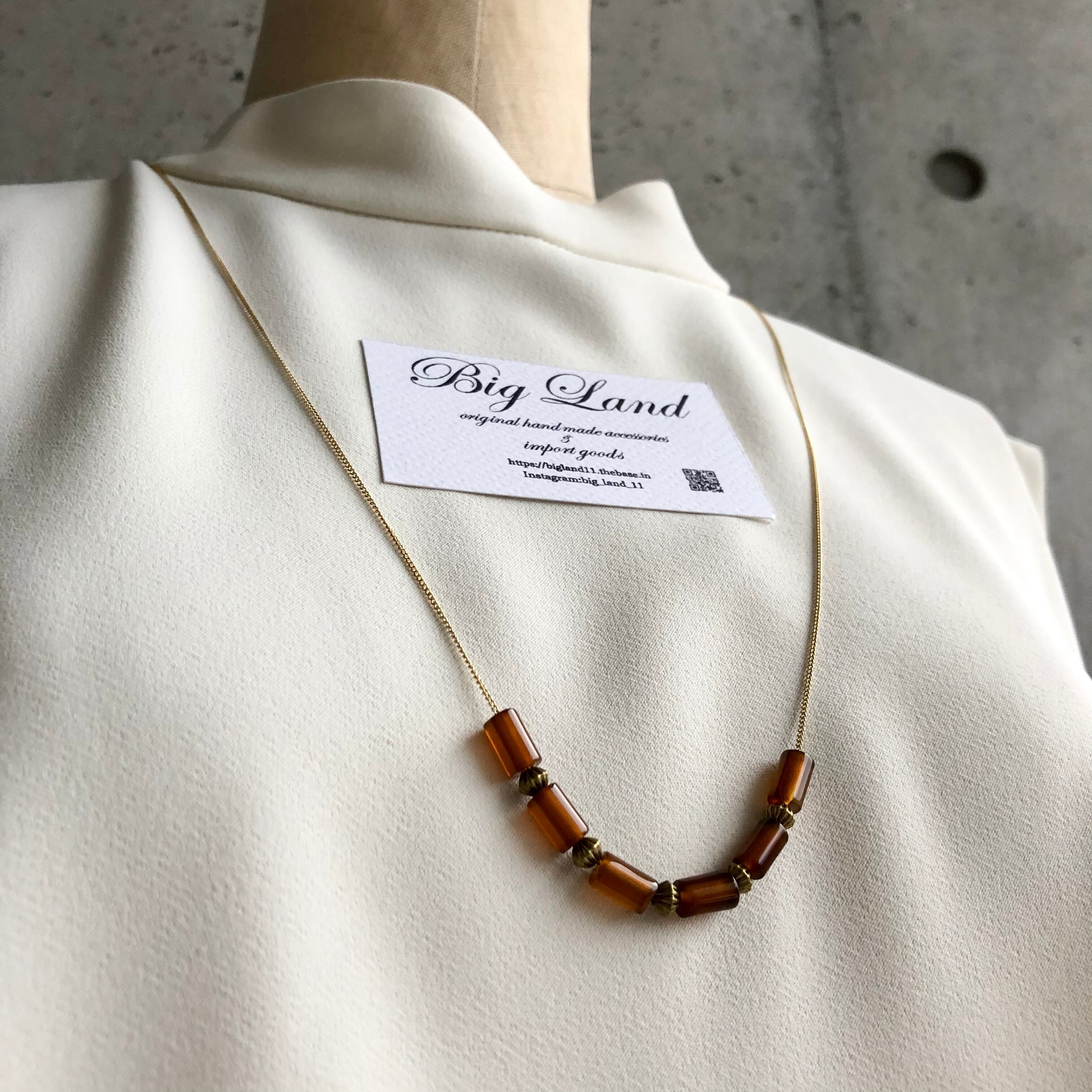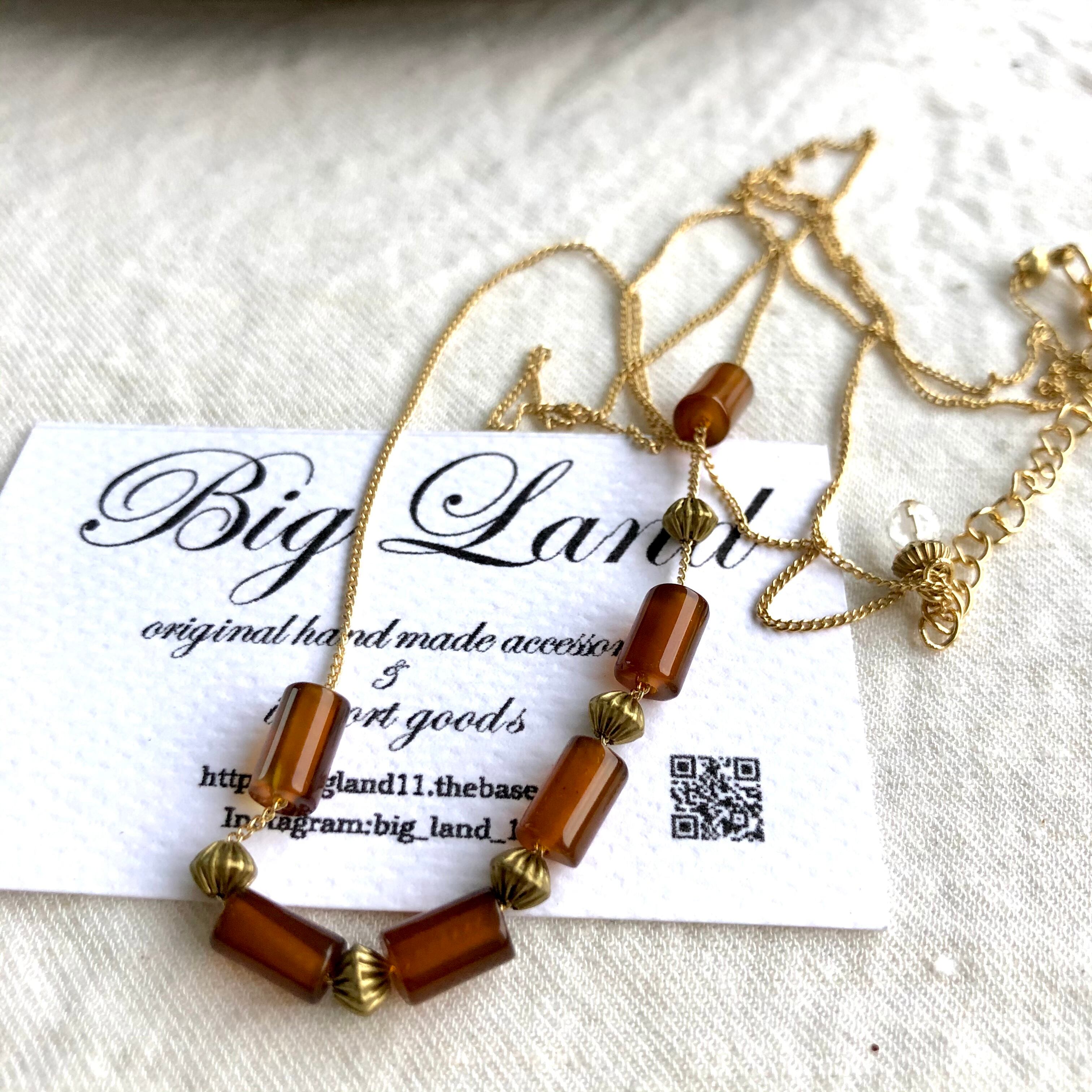 落ち感あるチェーンに艶のあるブラウン瑪瑙がスライドして長めにする事によりIラインで細く見える効果がありそうですね^_^