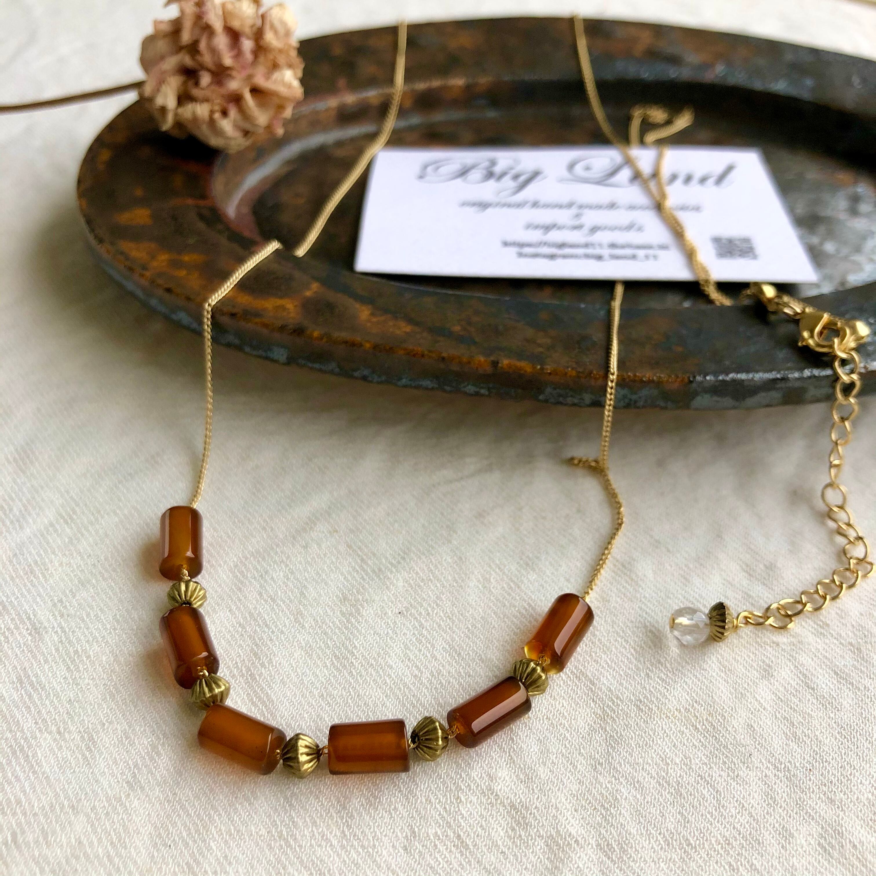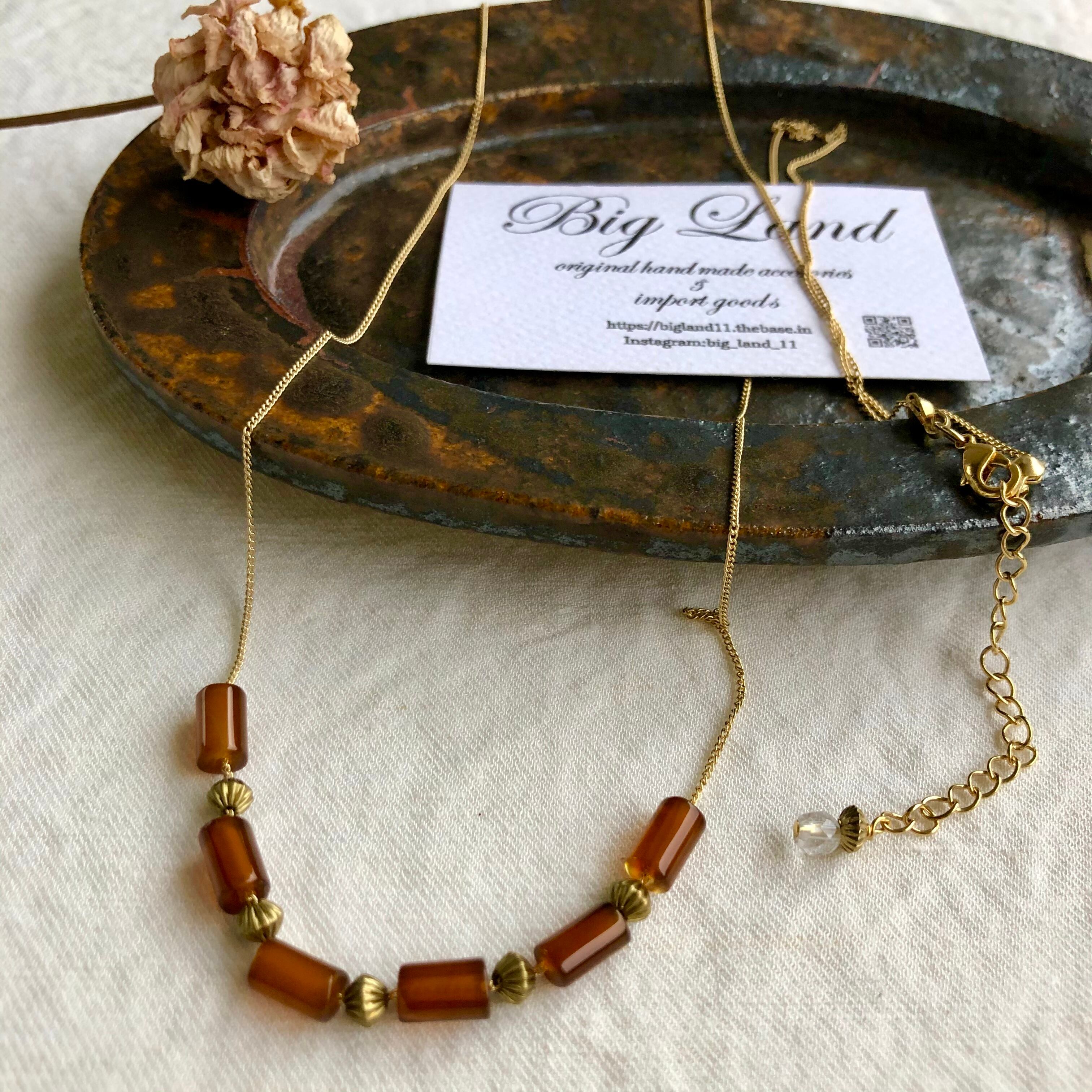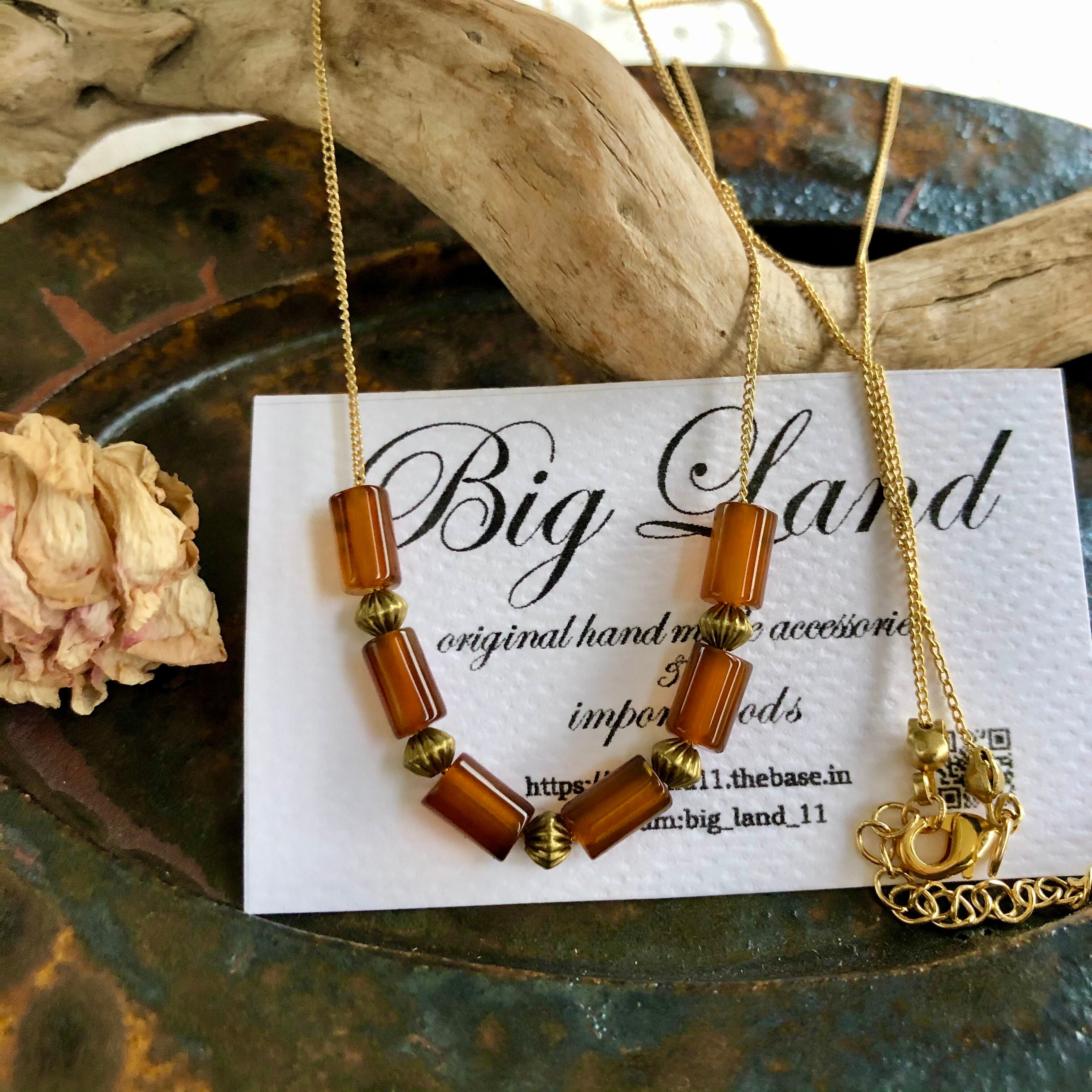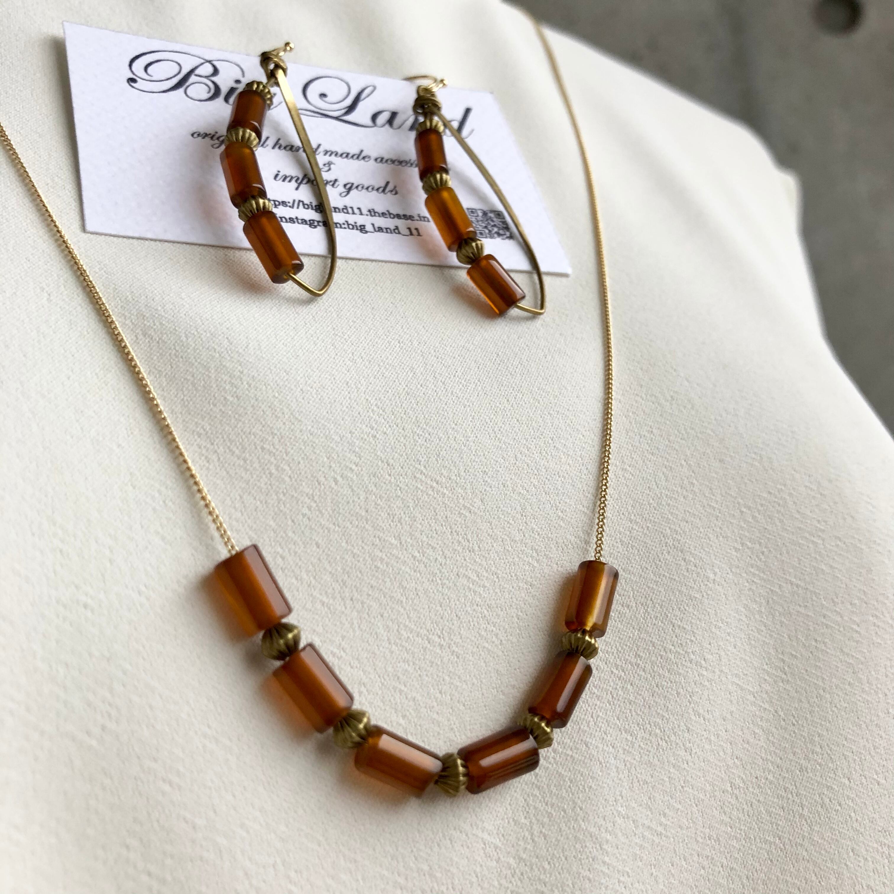 真鍮と瑪瑙を組み合わせシンプルで華奢なデザインに仕上げ、アンティーク好きな方やブラウンコーデが好きな方にピッタリです‼️