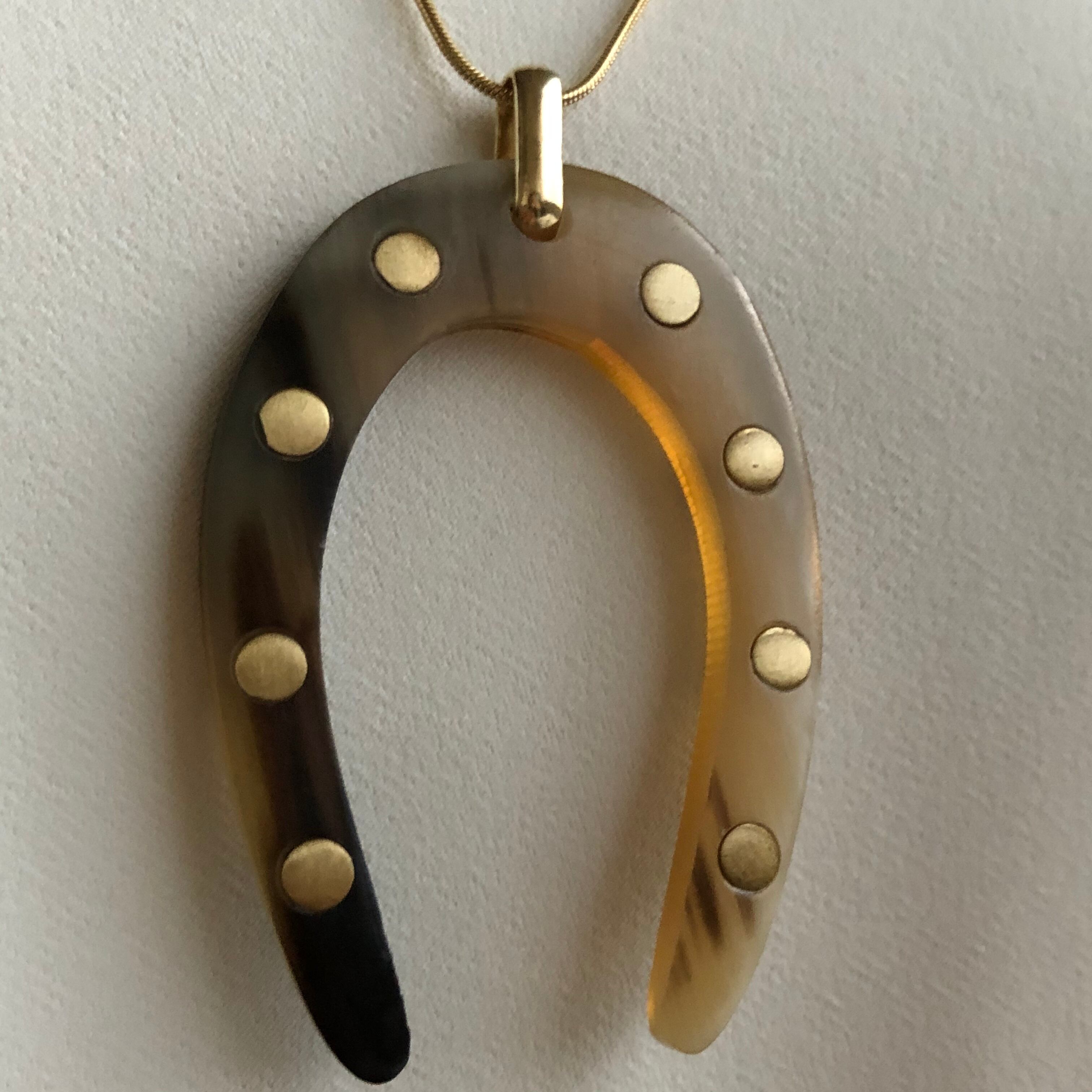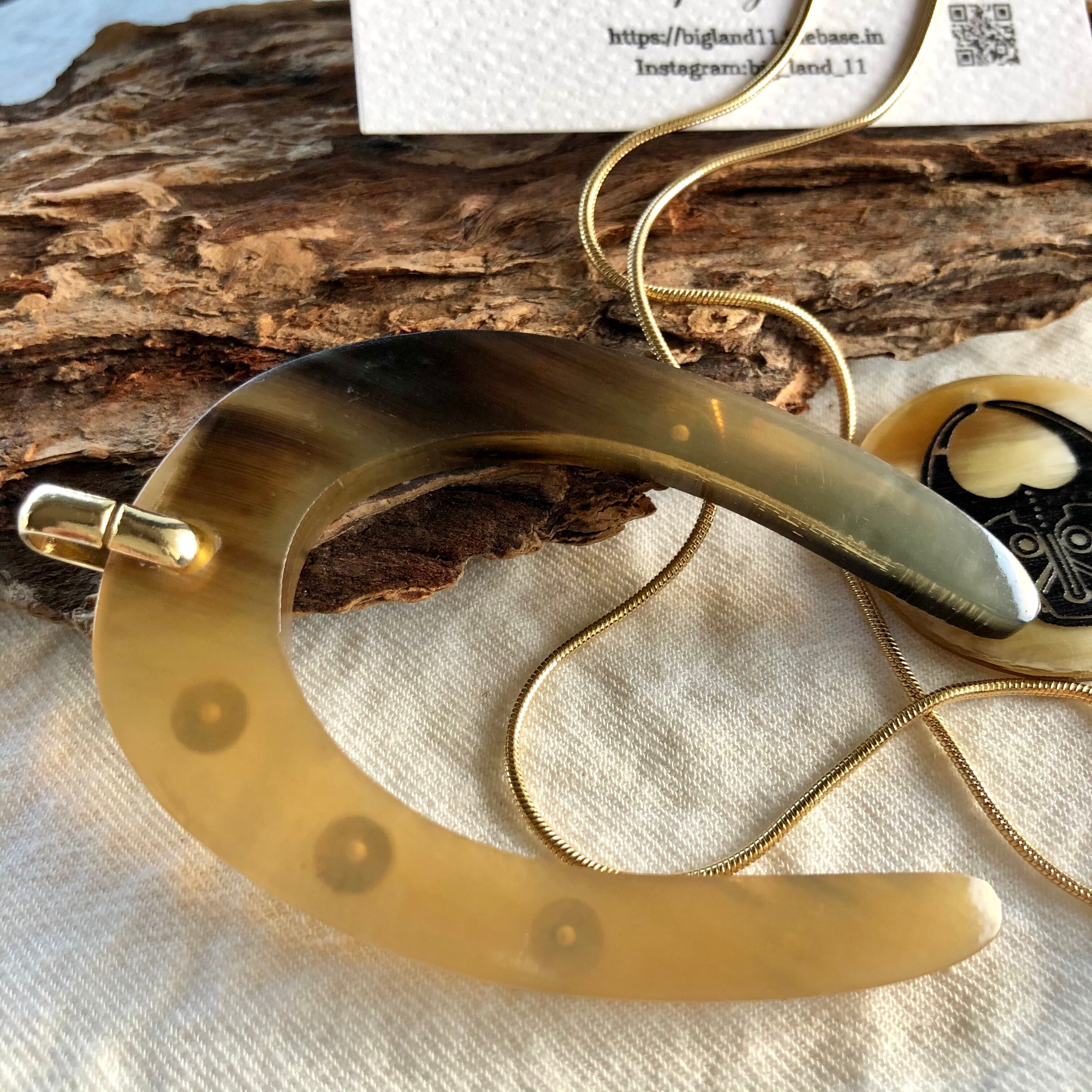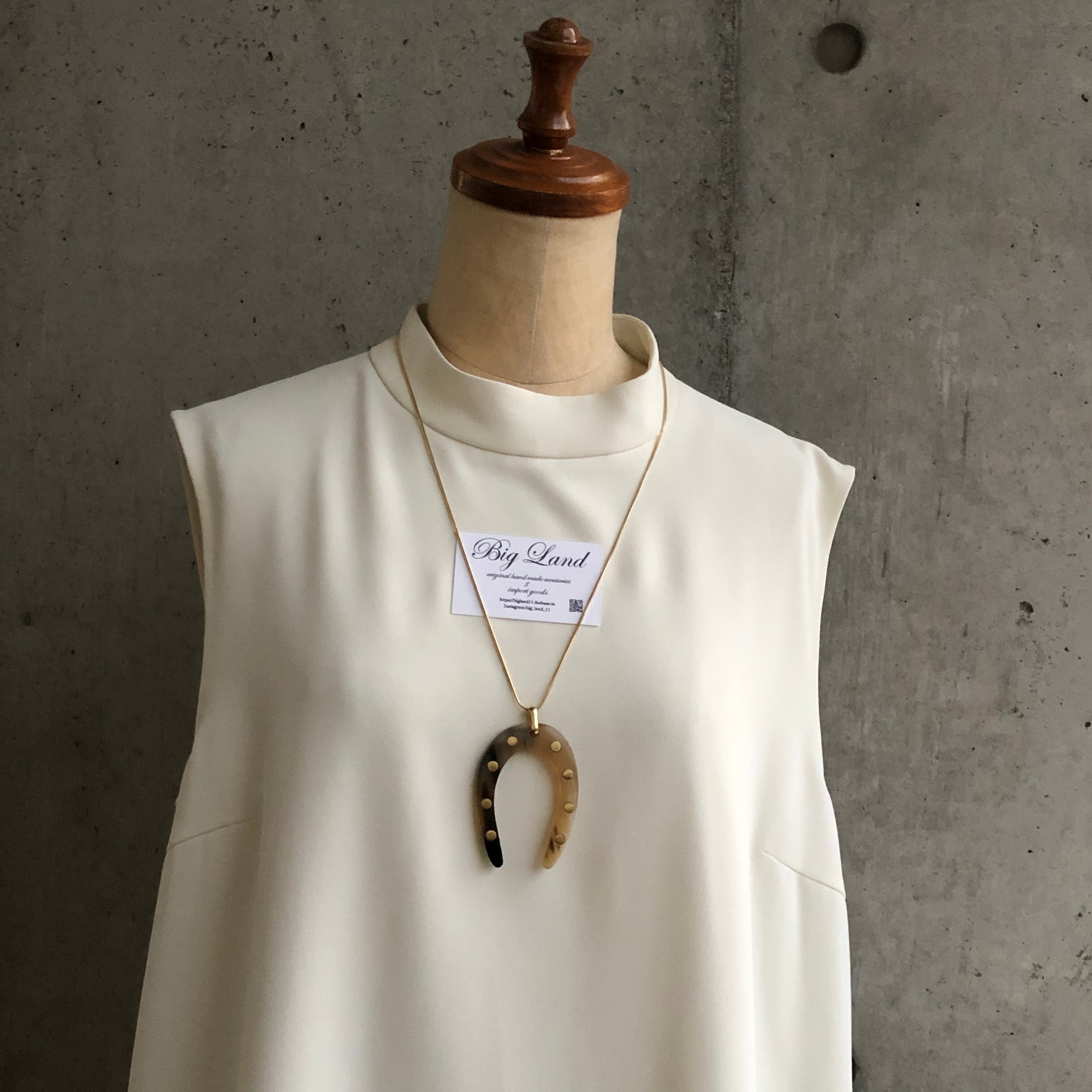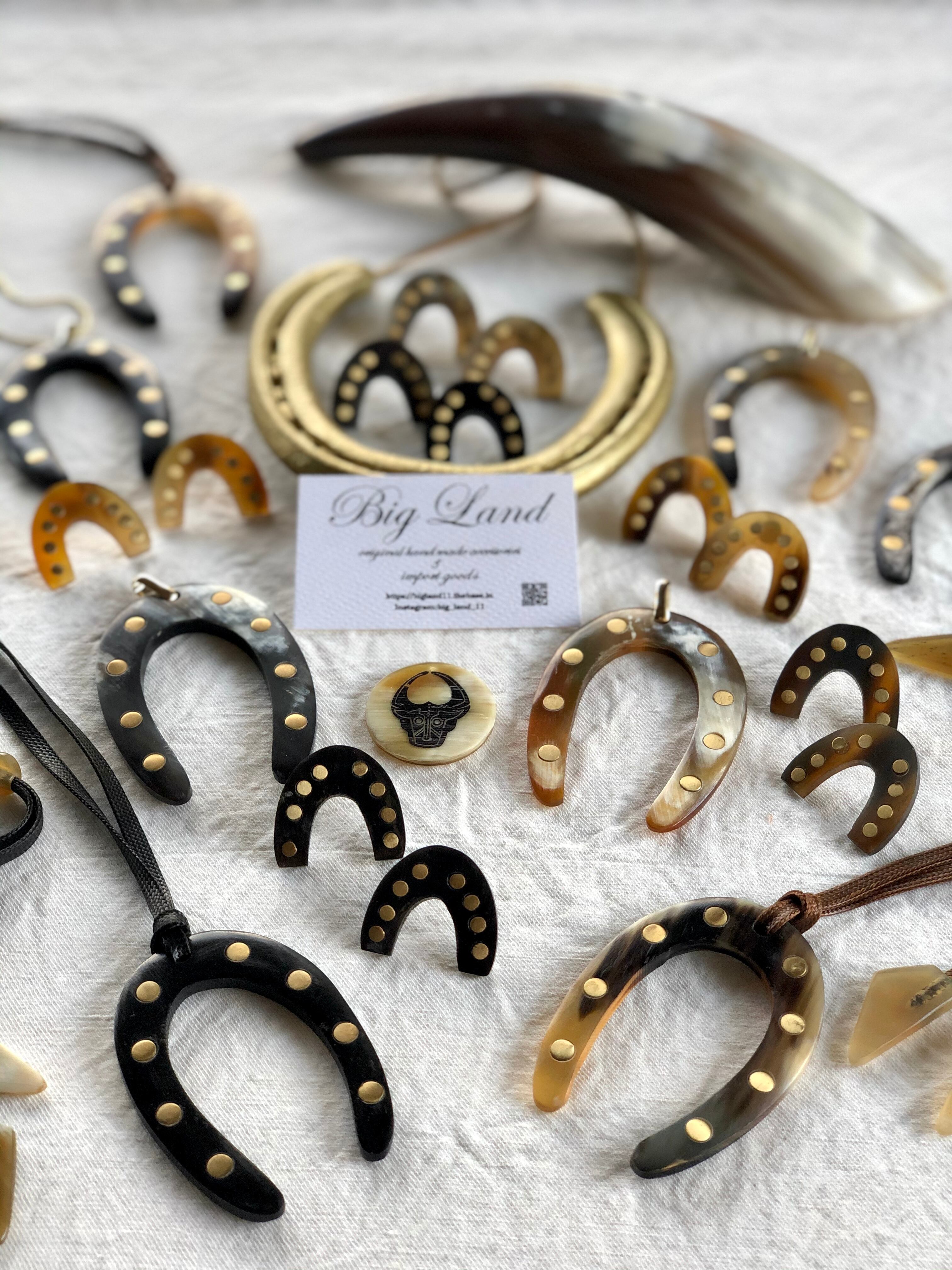 水牛と真鍮の異素材を組み合わせラッキーモチーフの馬蹄(ばてい)は品のあるアンティークな雰囲気で高見えします✨ペンダントはどんな方にも合わせやすいベストなサイズ感にし、ピアスとセットコーデもオススメで真鍮Loveなイチ推しデザインです☺️❤️